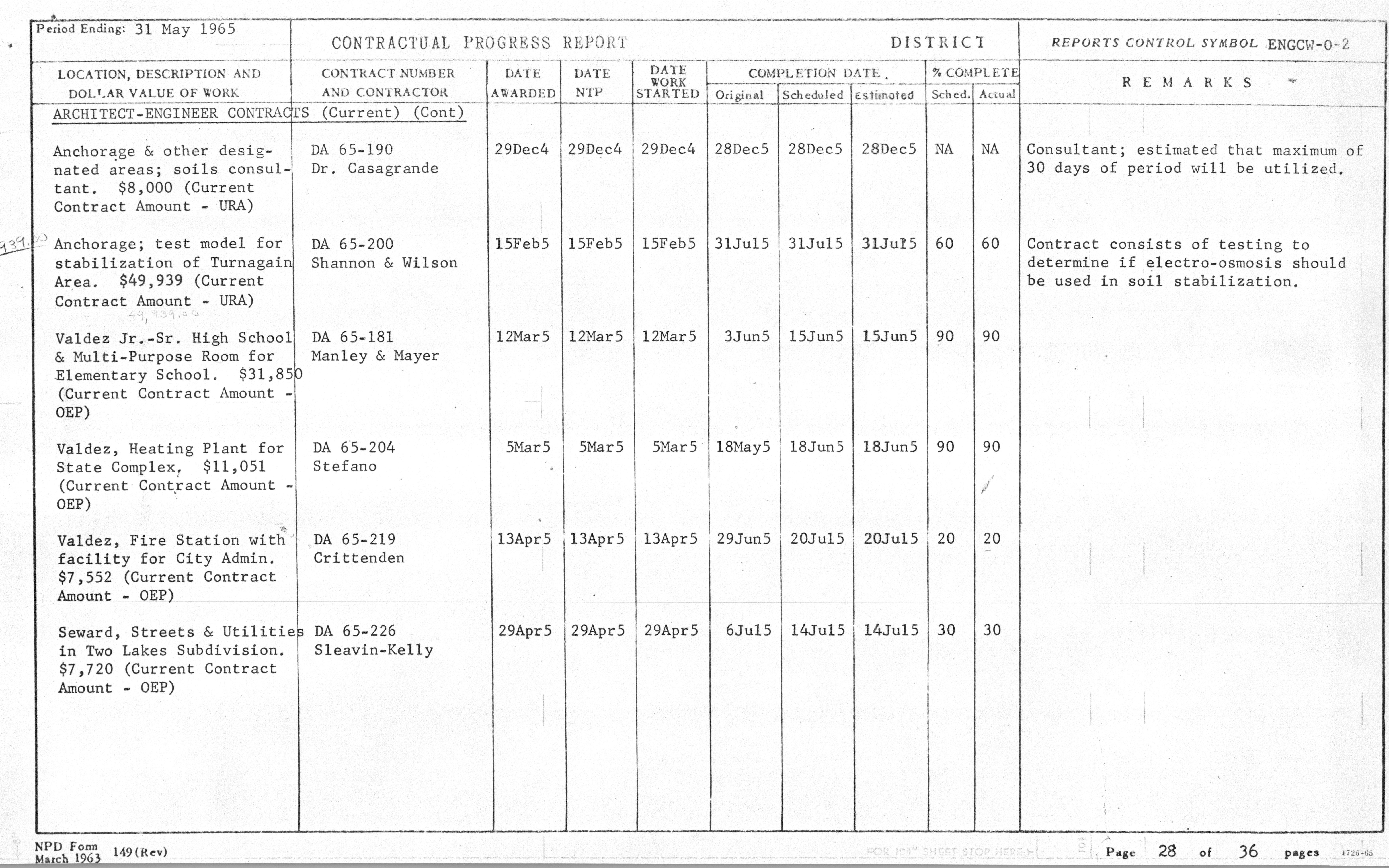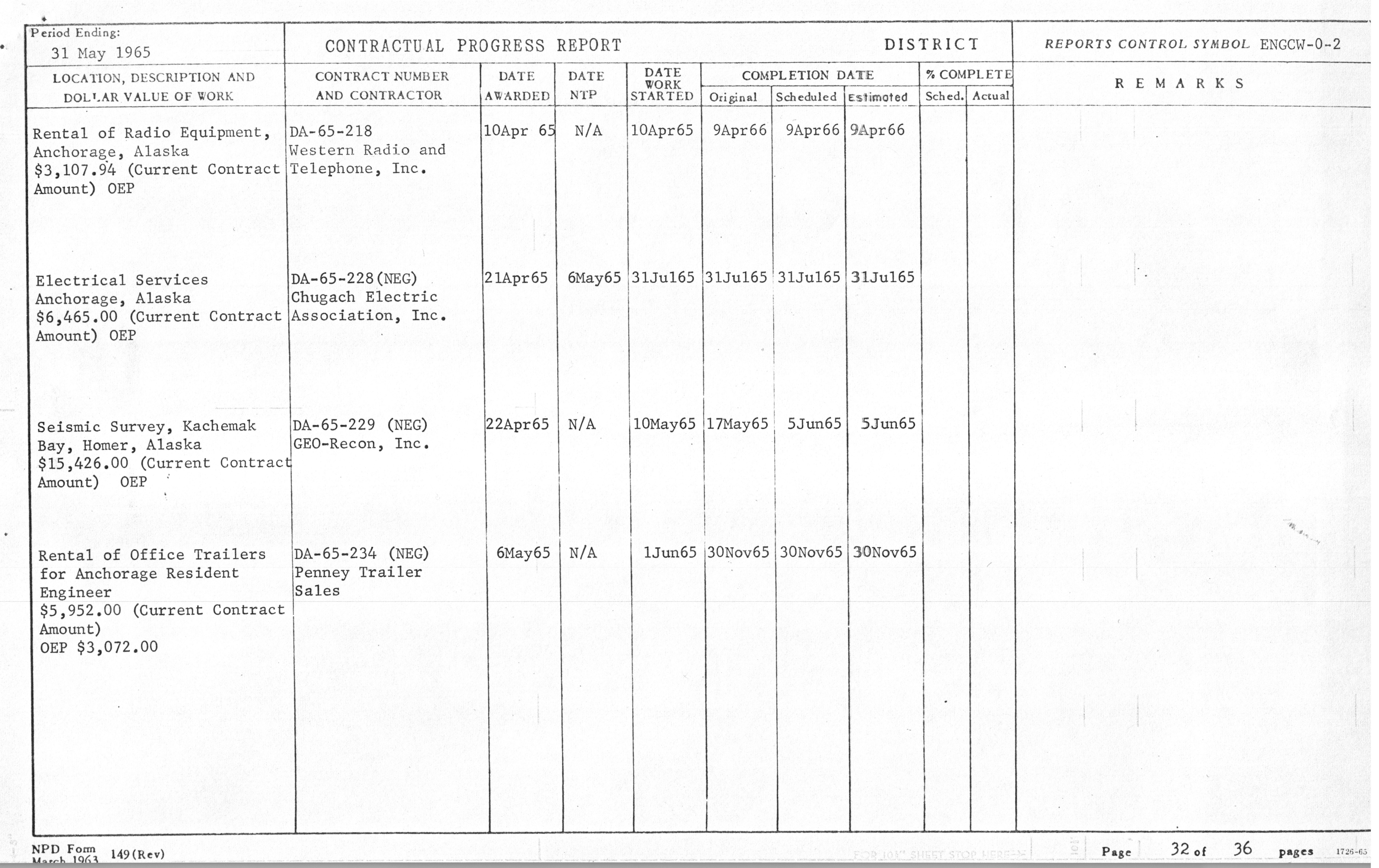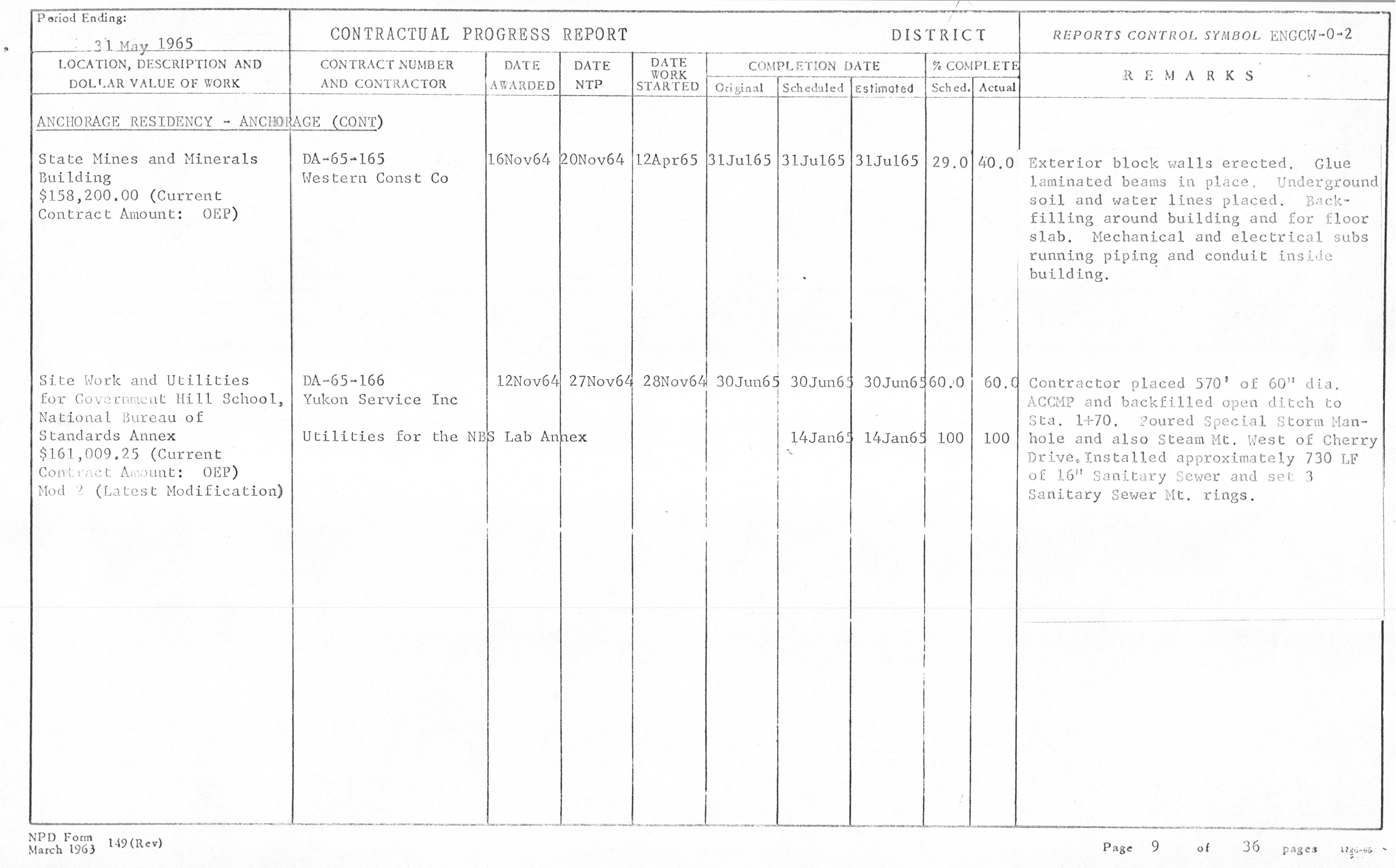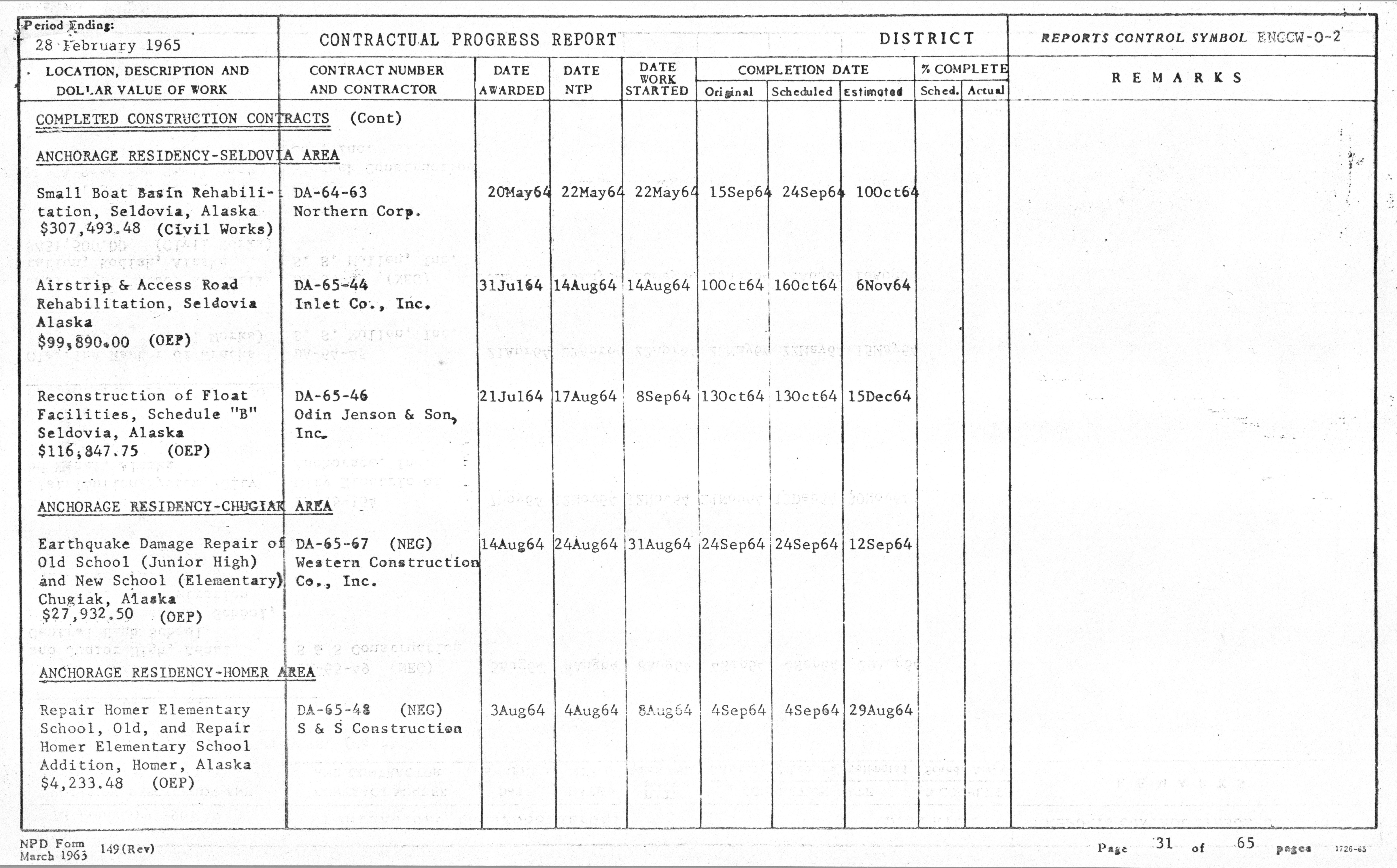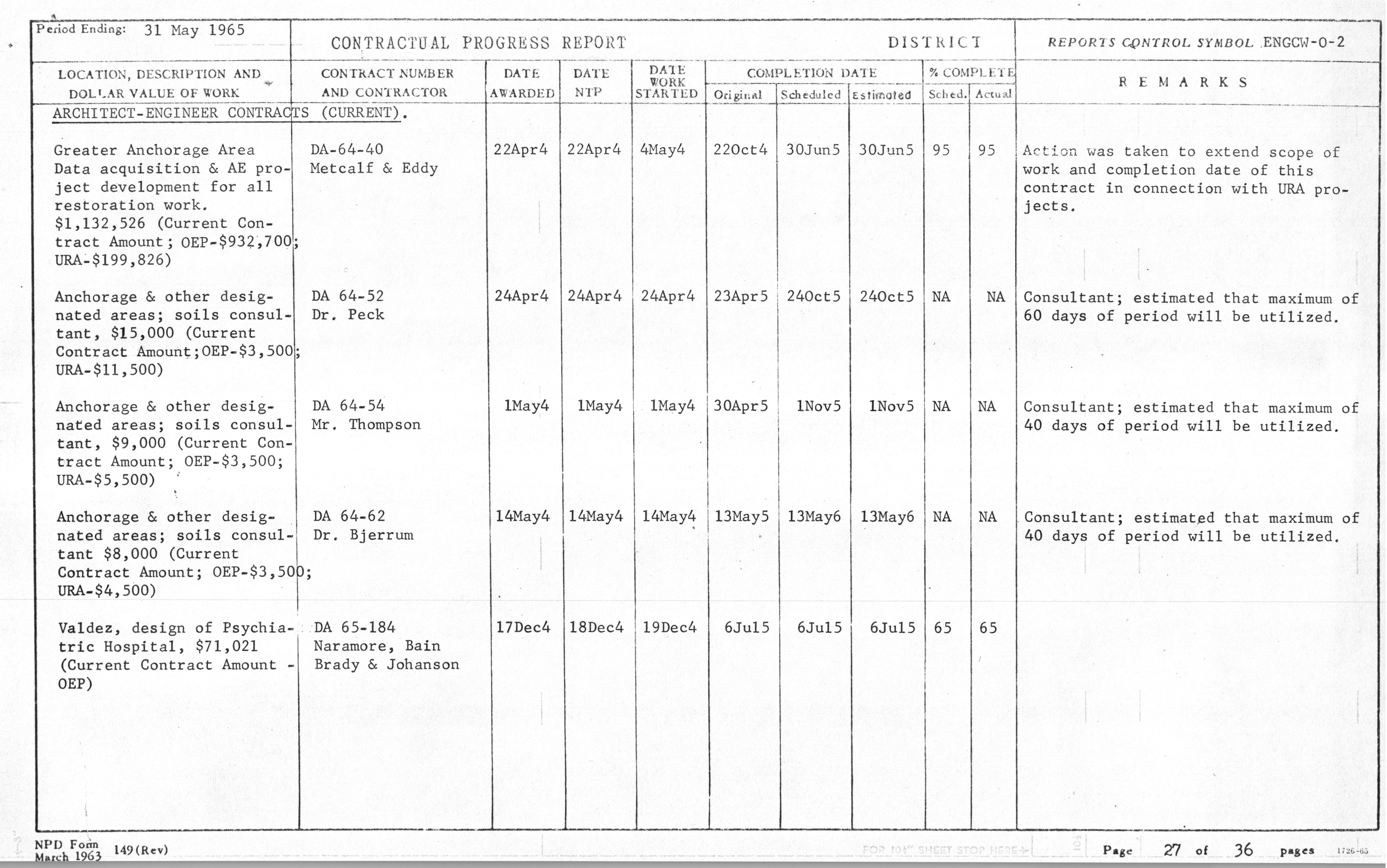 - Alaska earthquake restoration projects contractual progress report, May 31, 1965