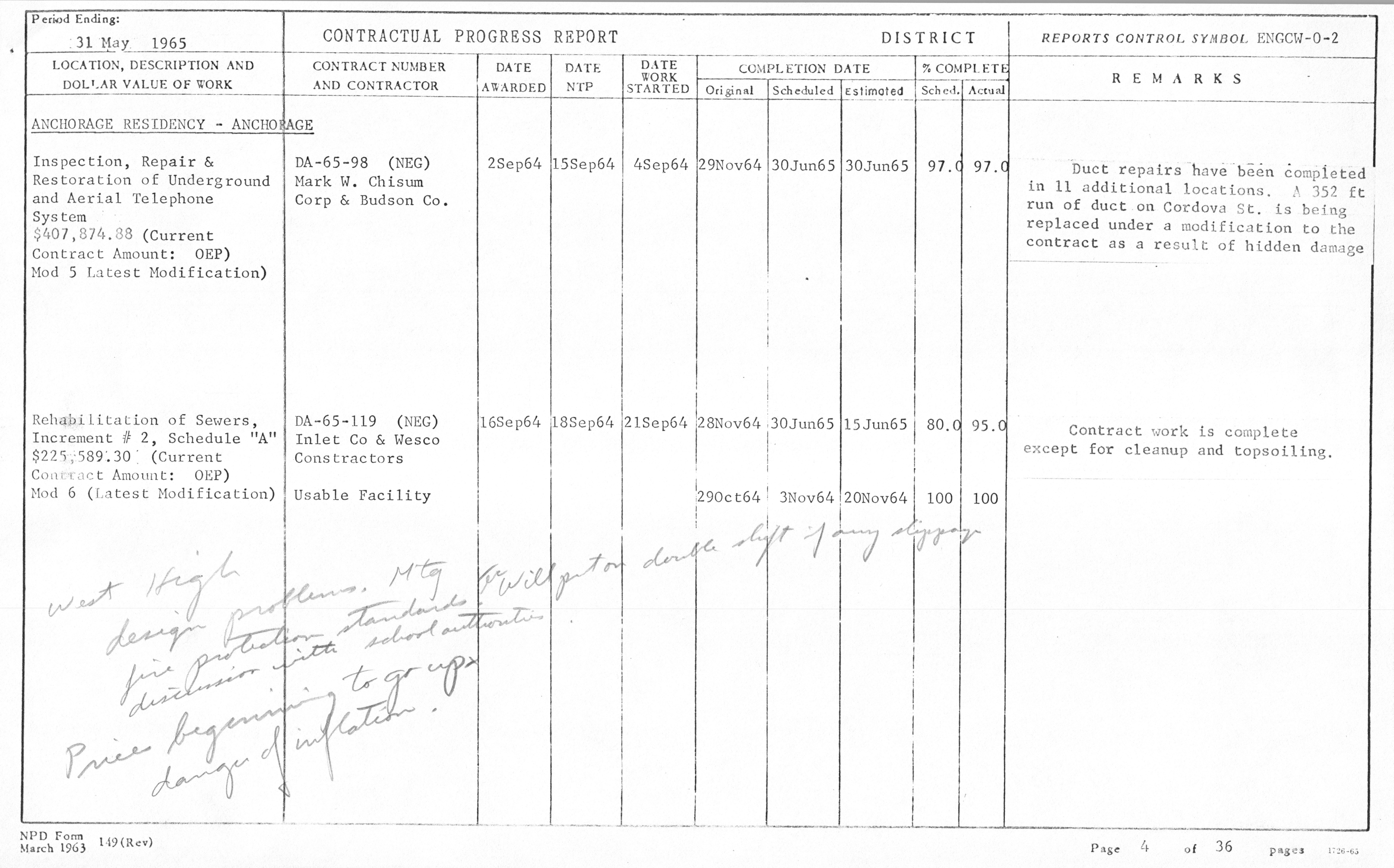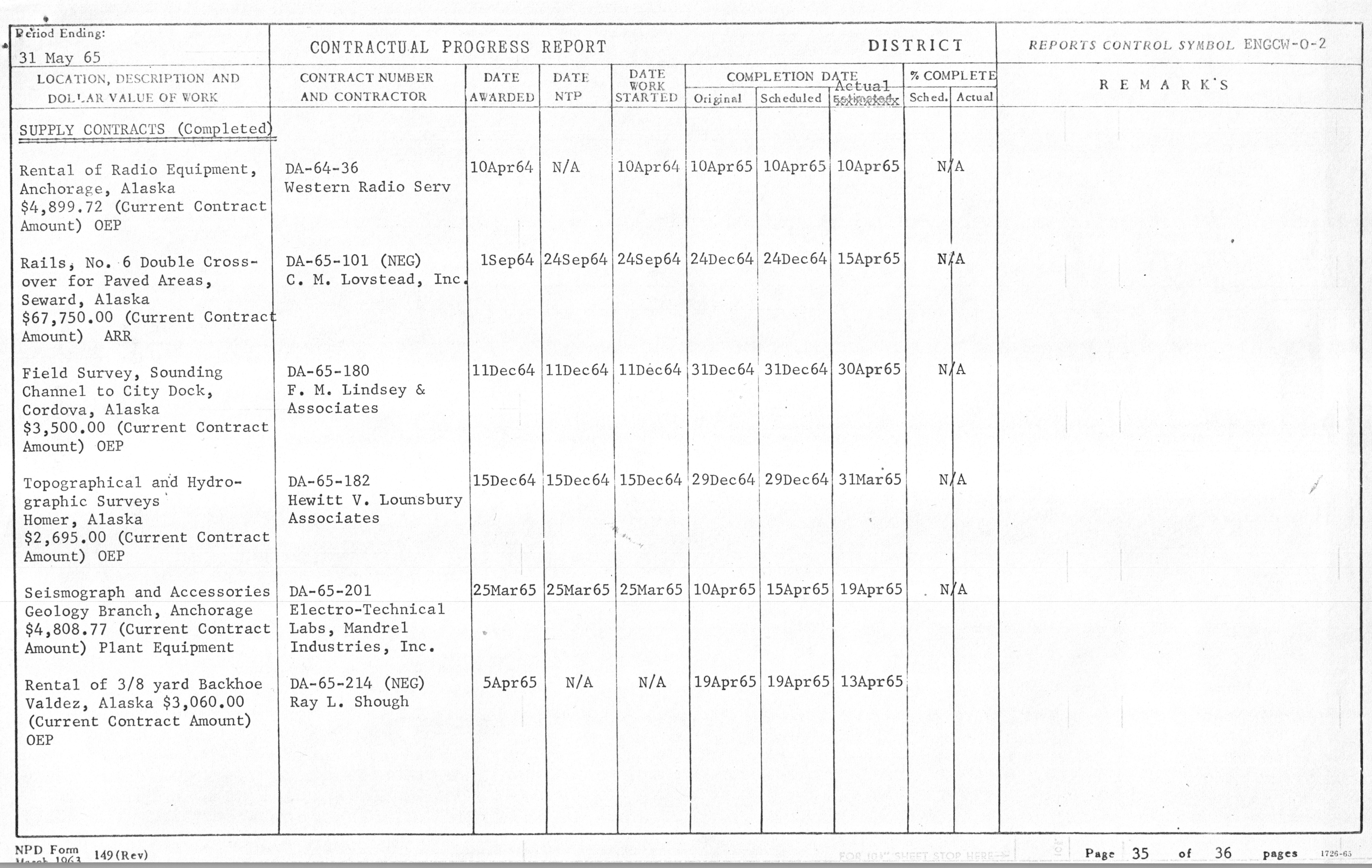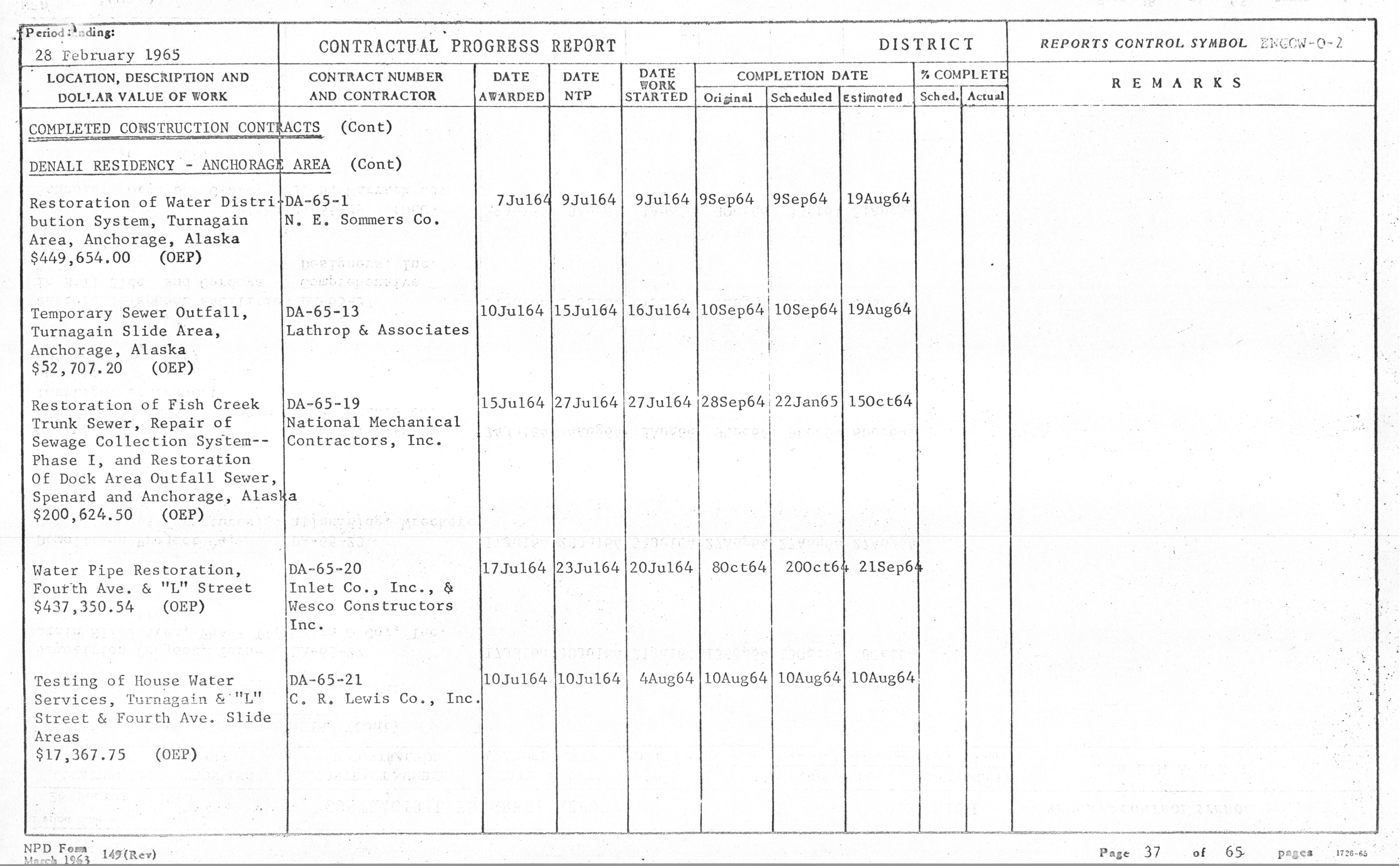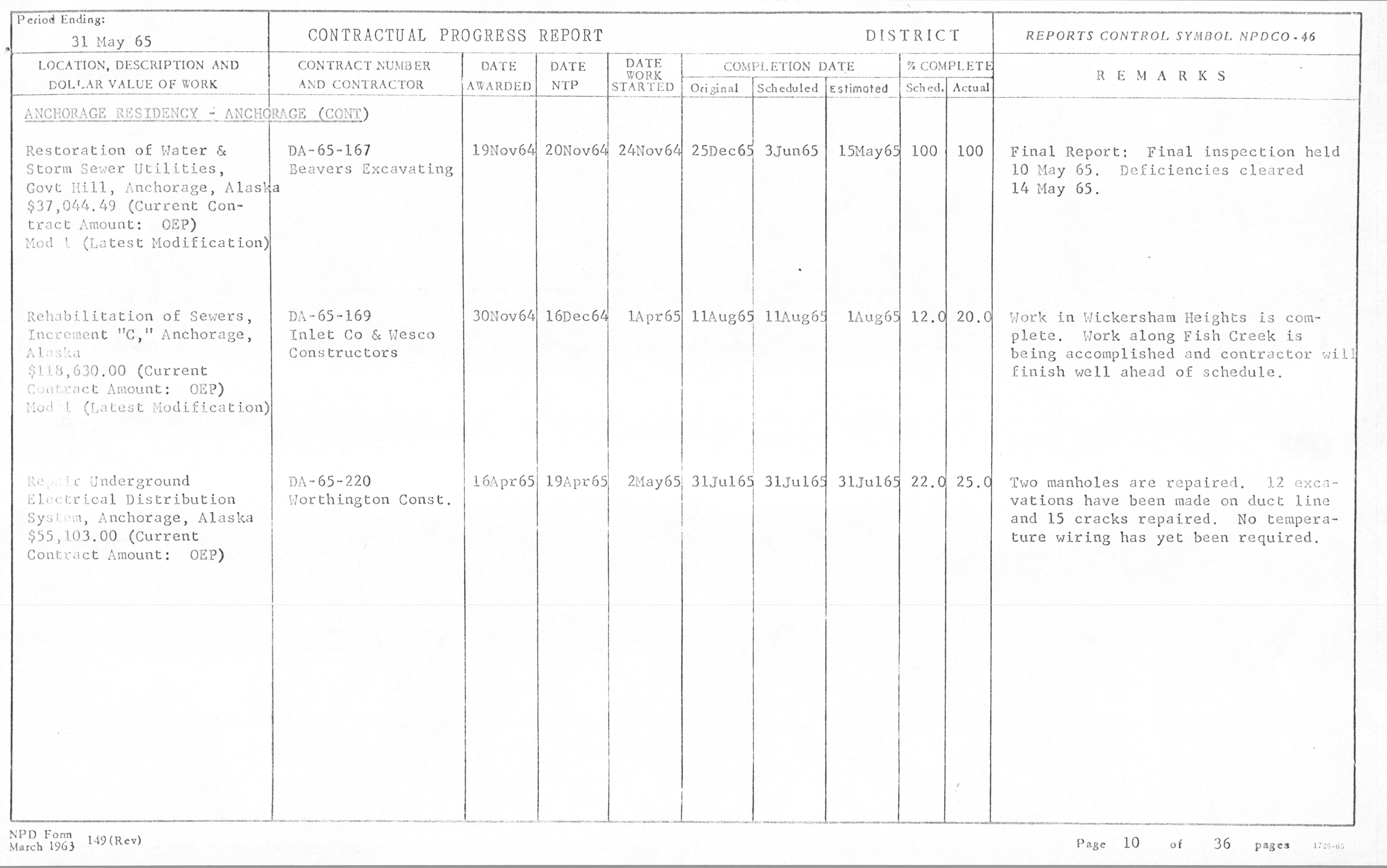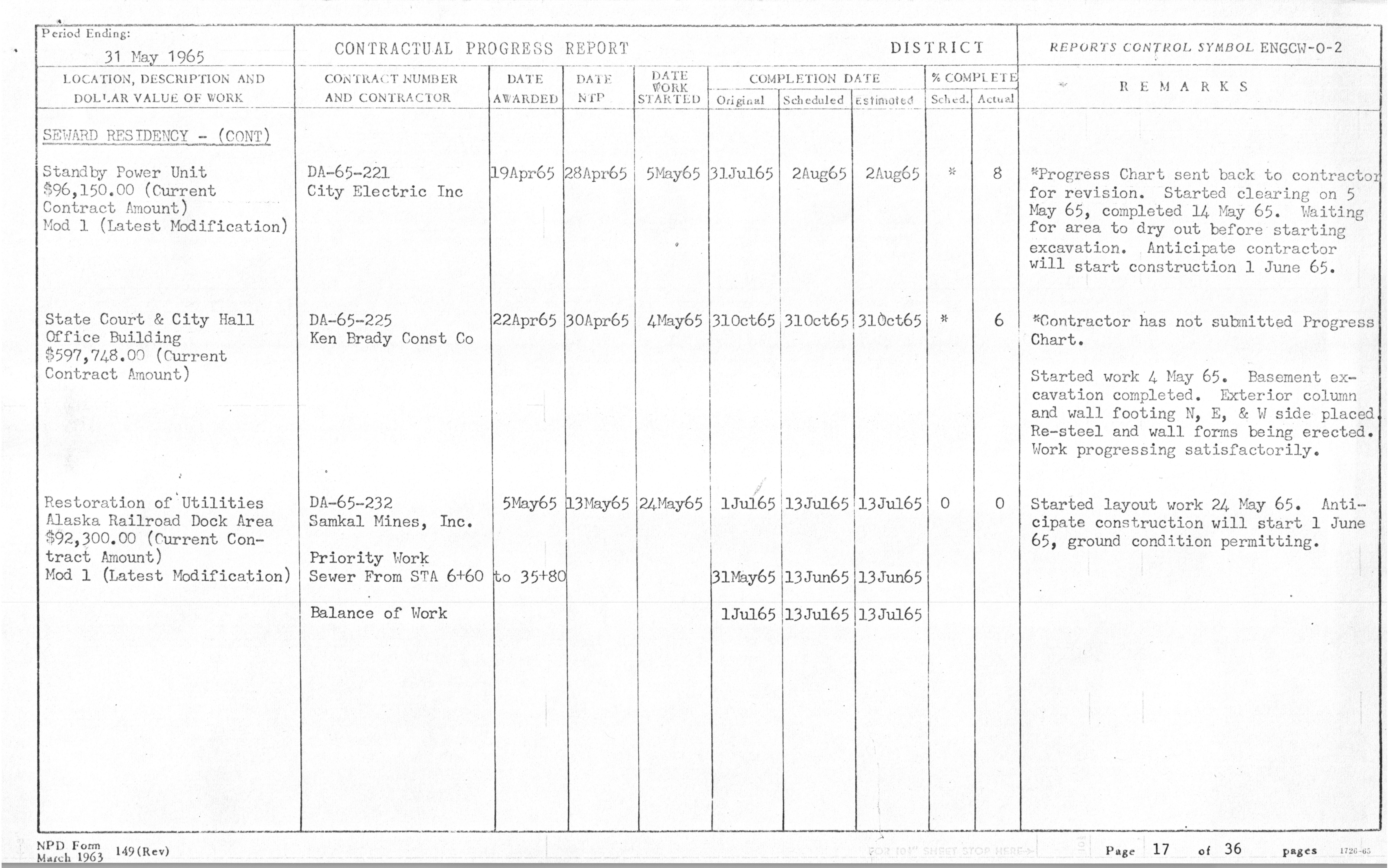 - Alaska earthquake restoration projects contractual progress report, May 31, 1965