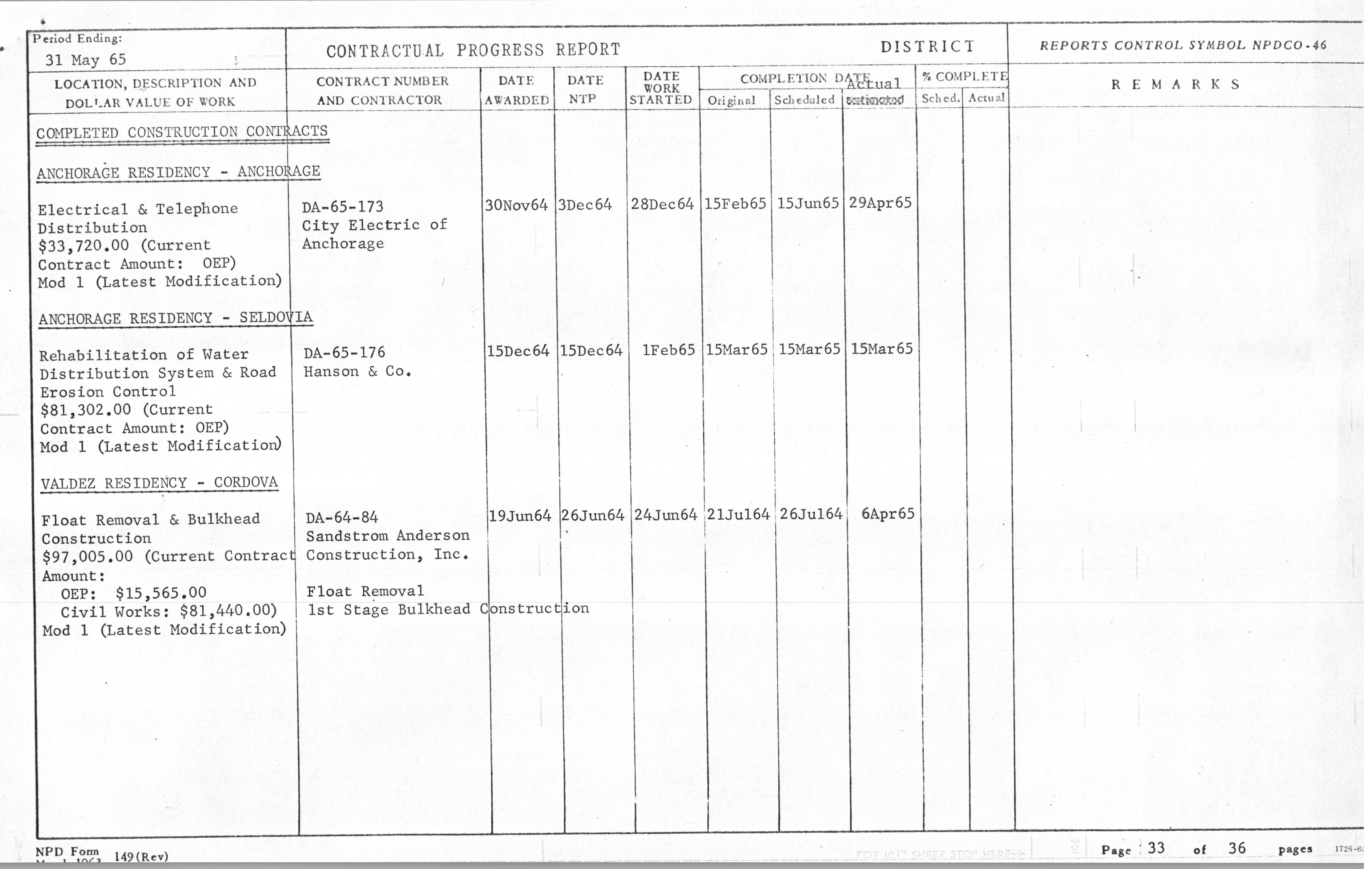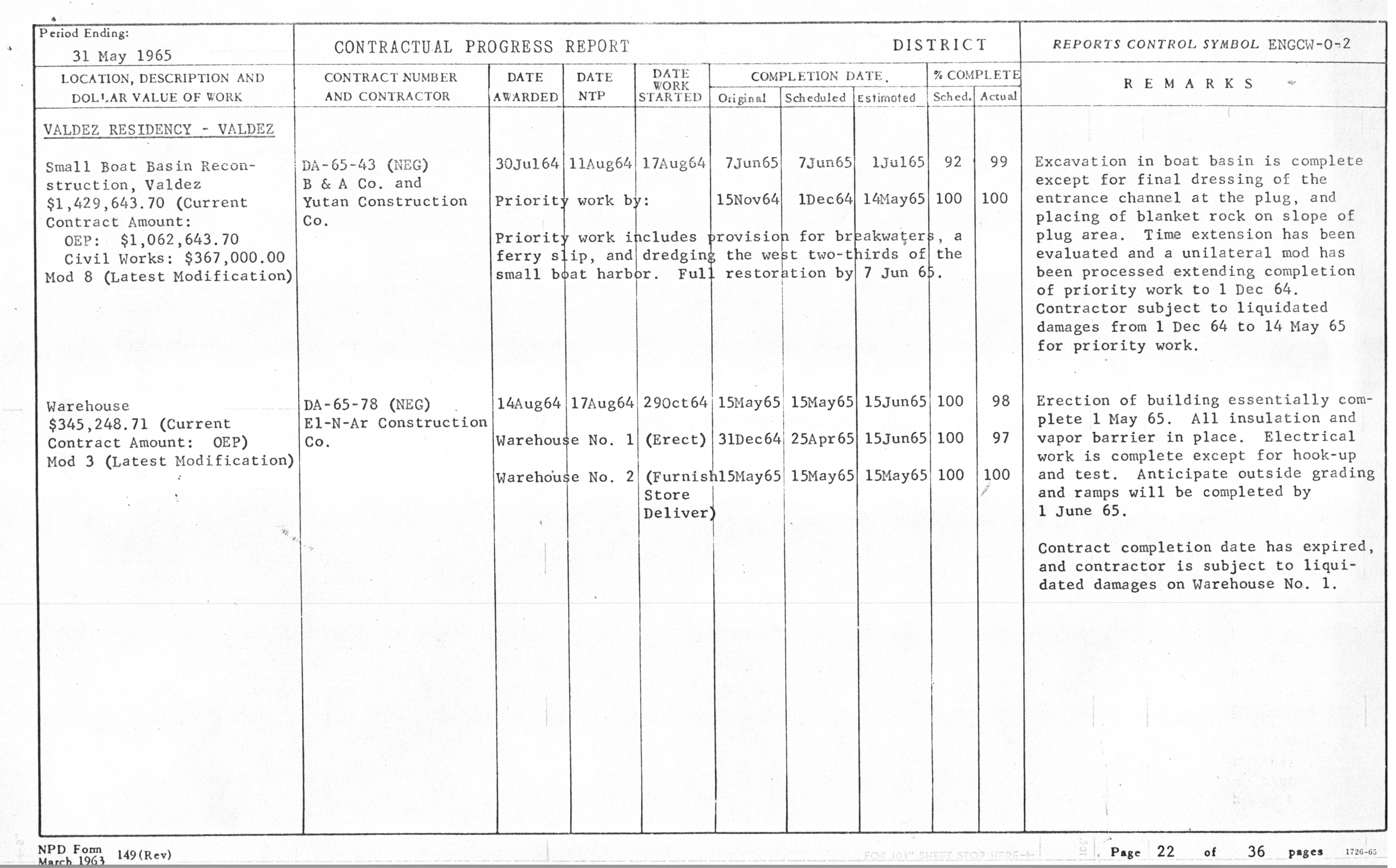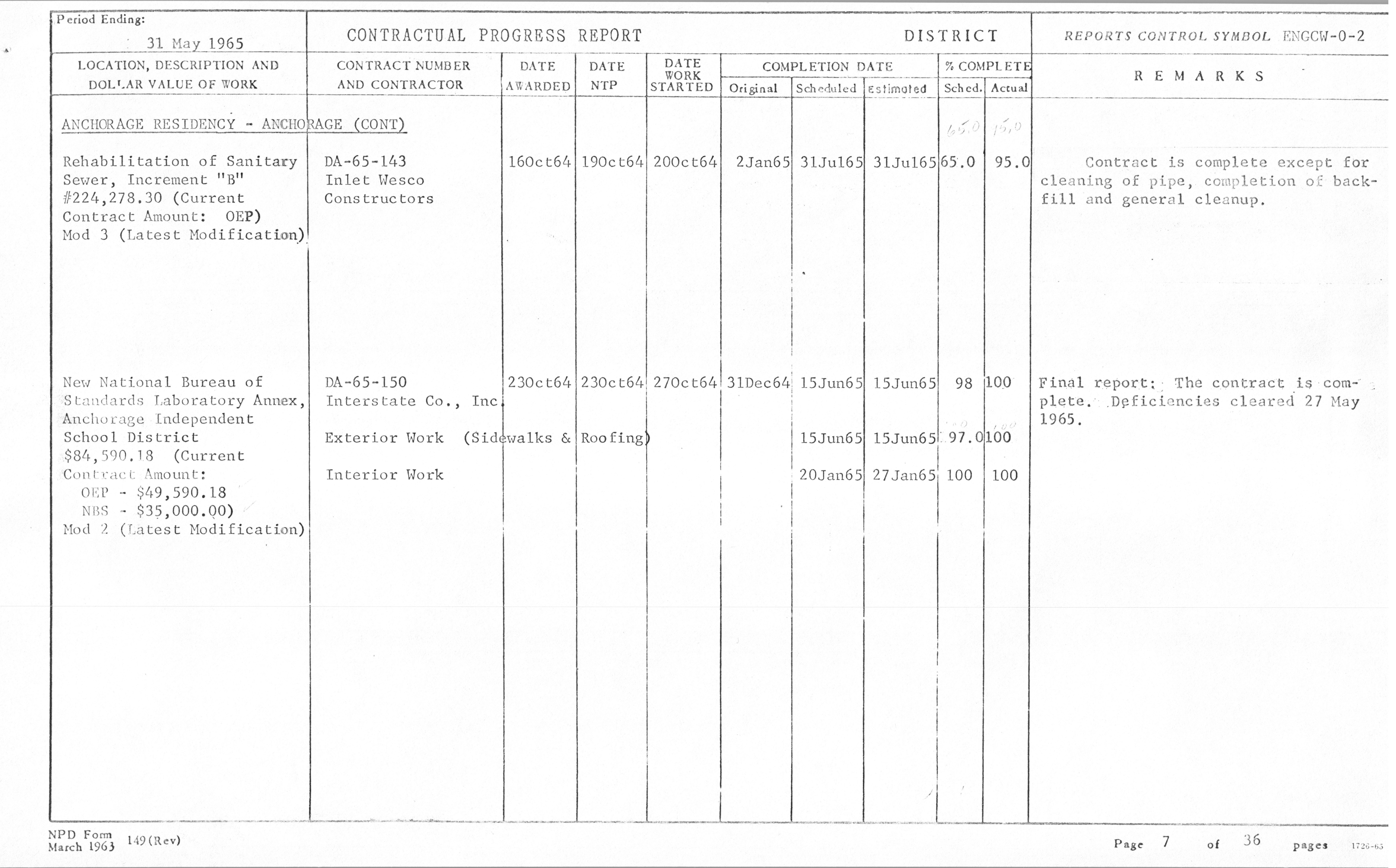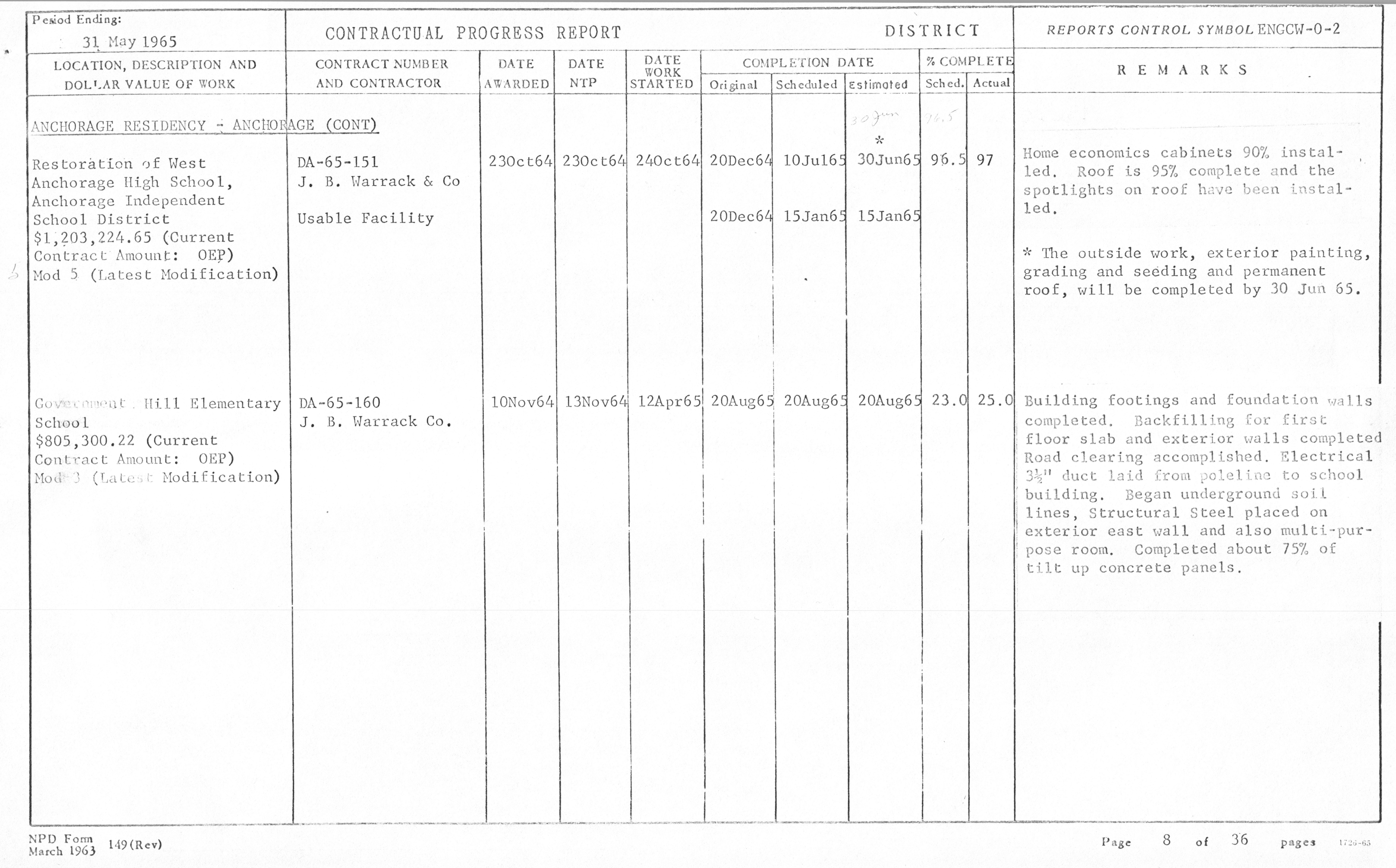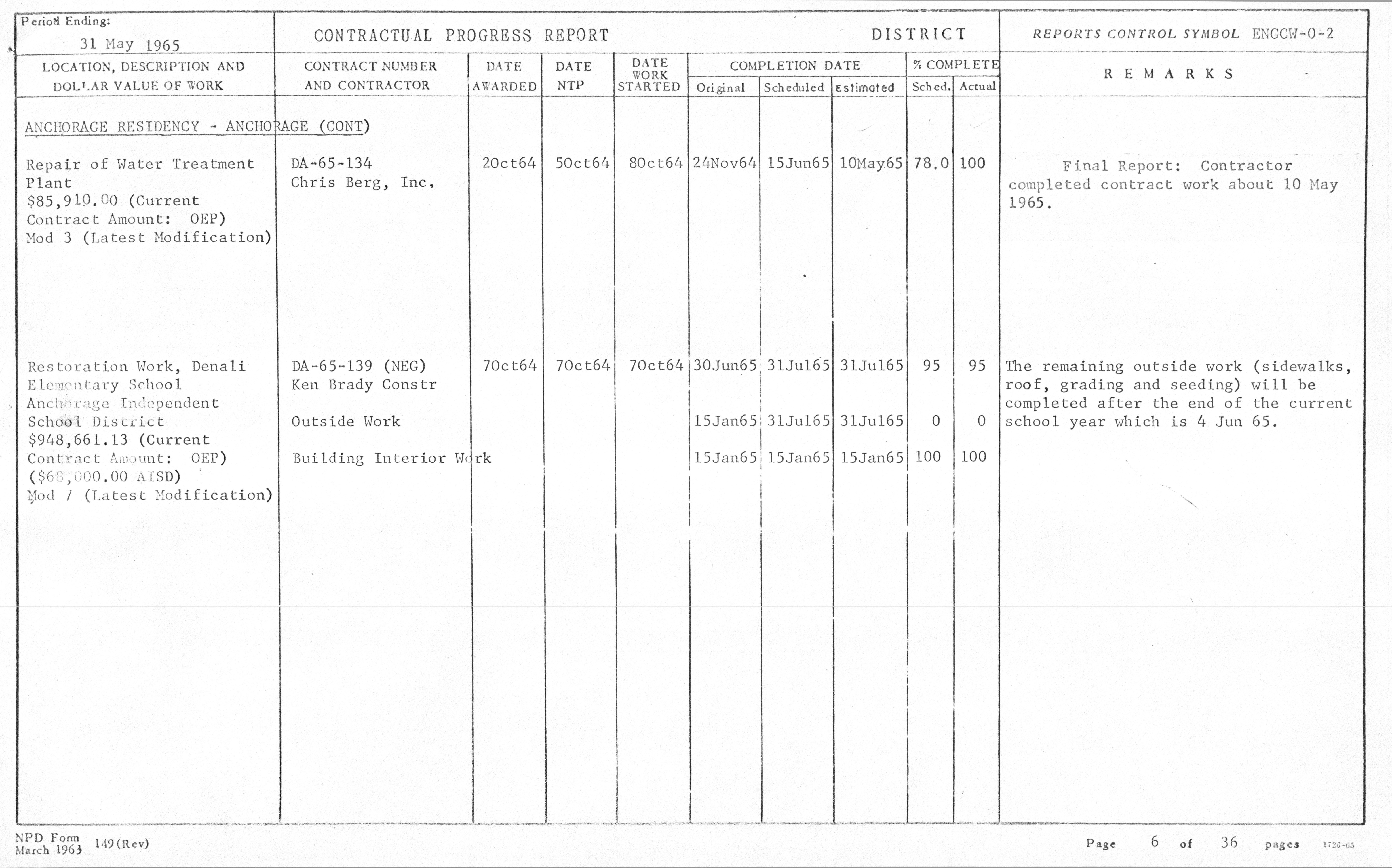 - Alaska earthquake restoration projects contractual progress report, May 31, 1965