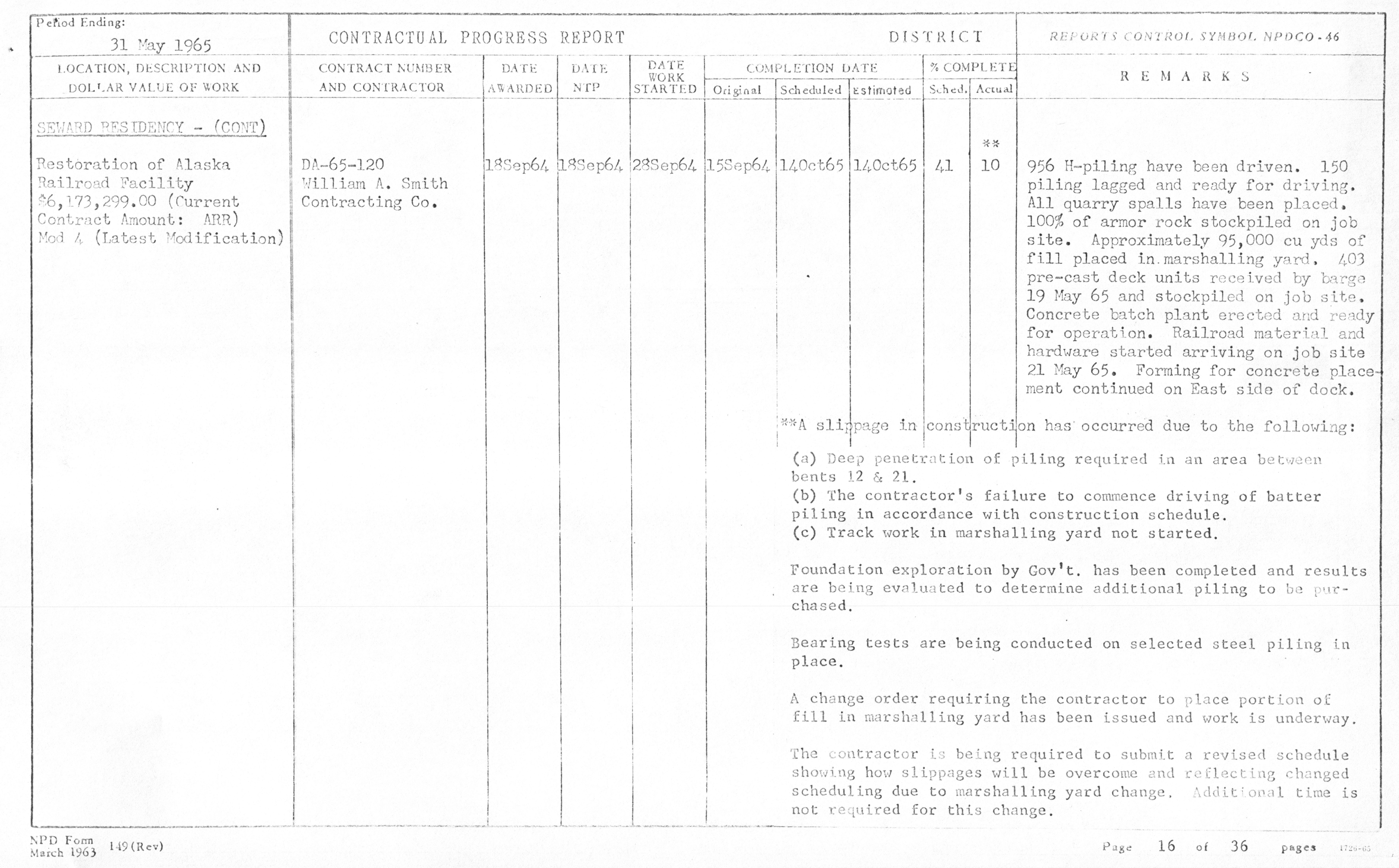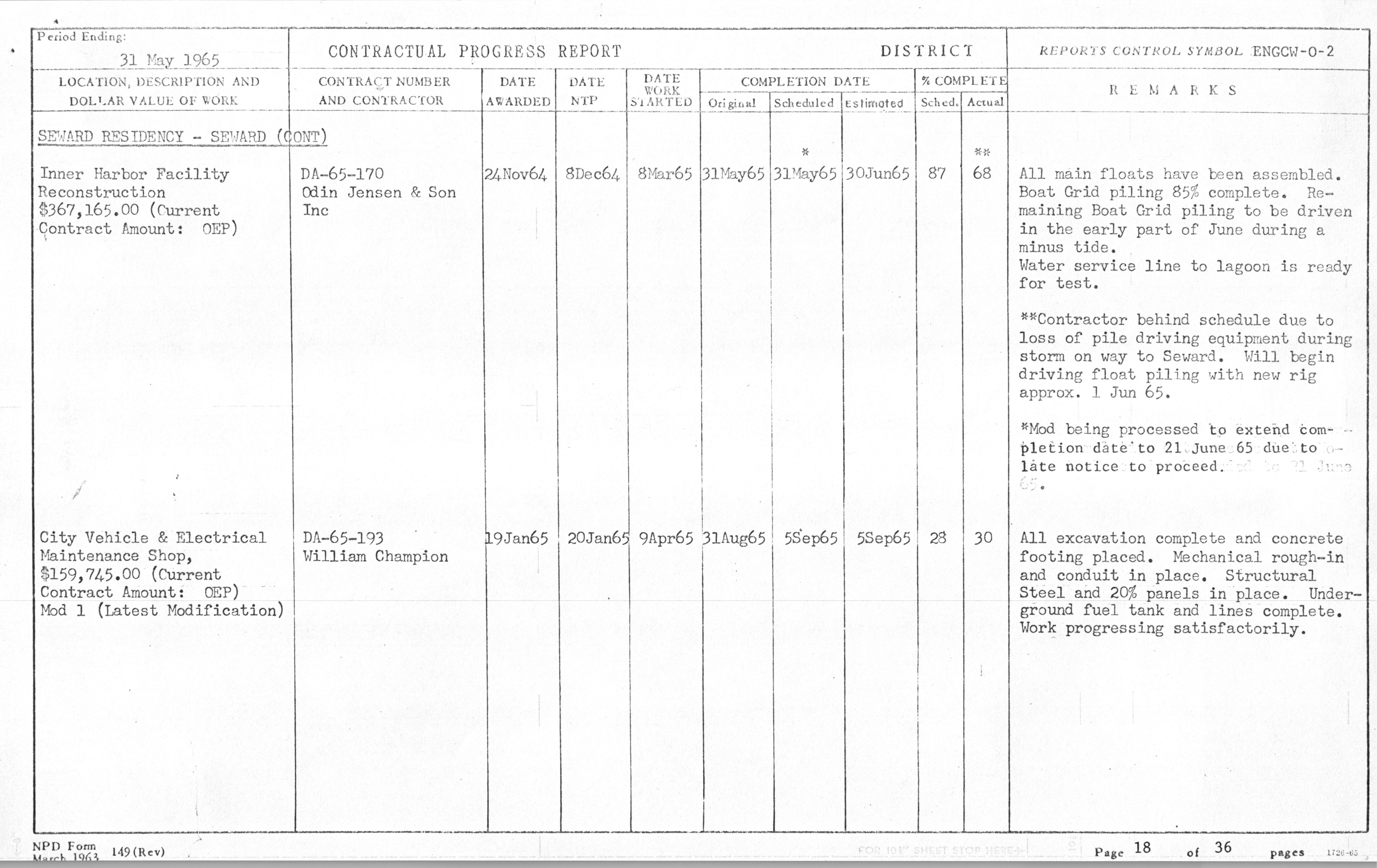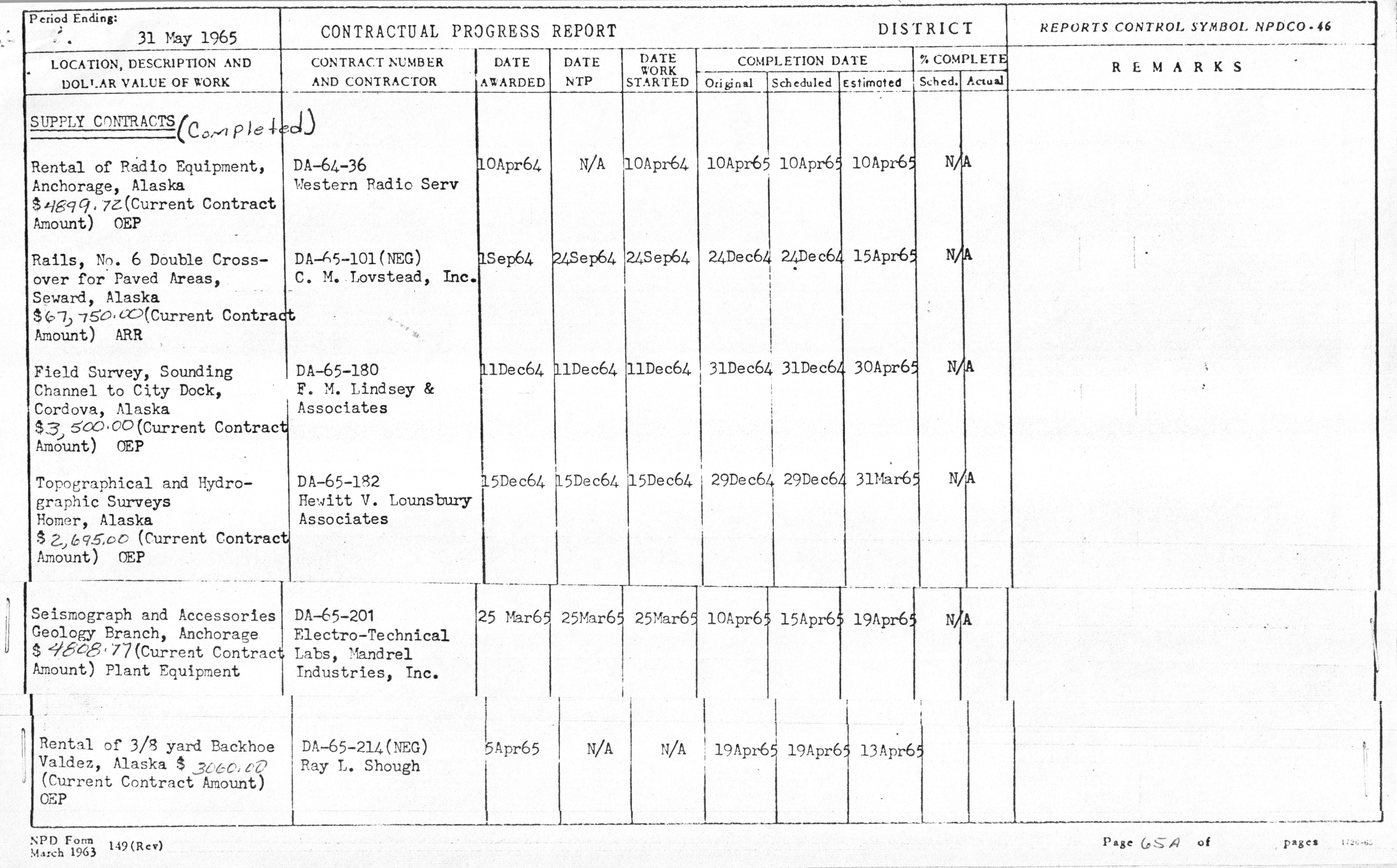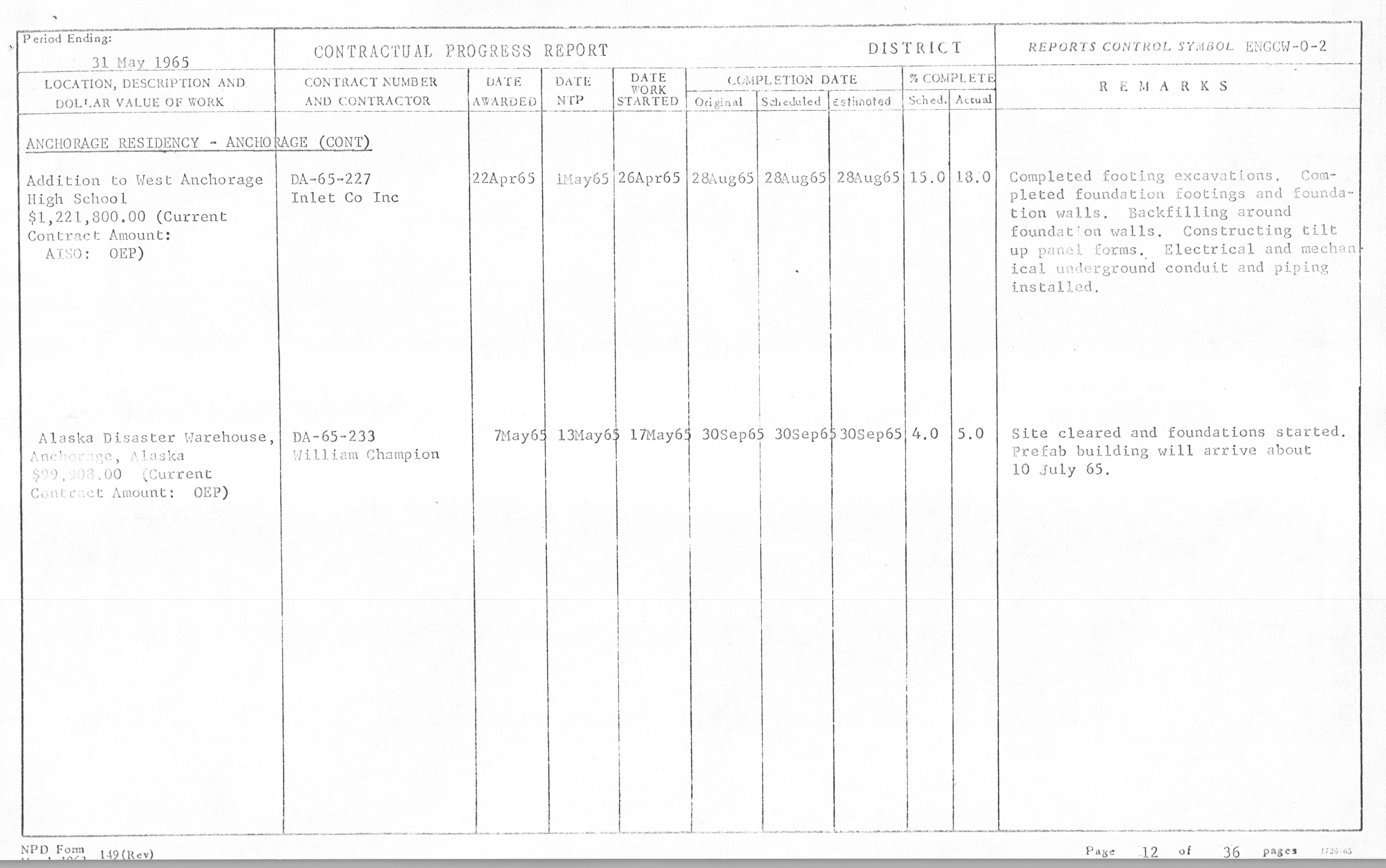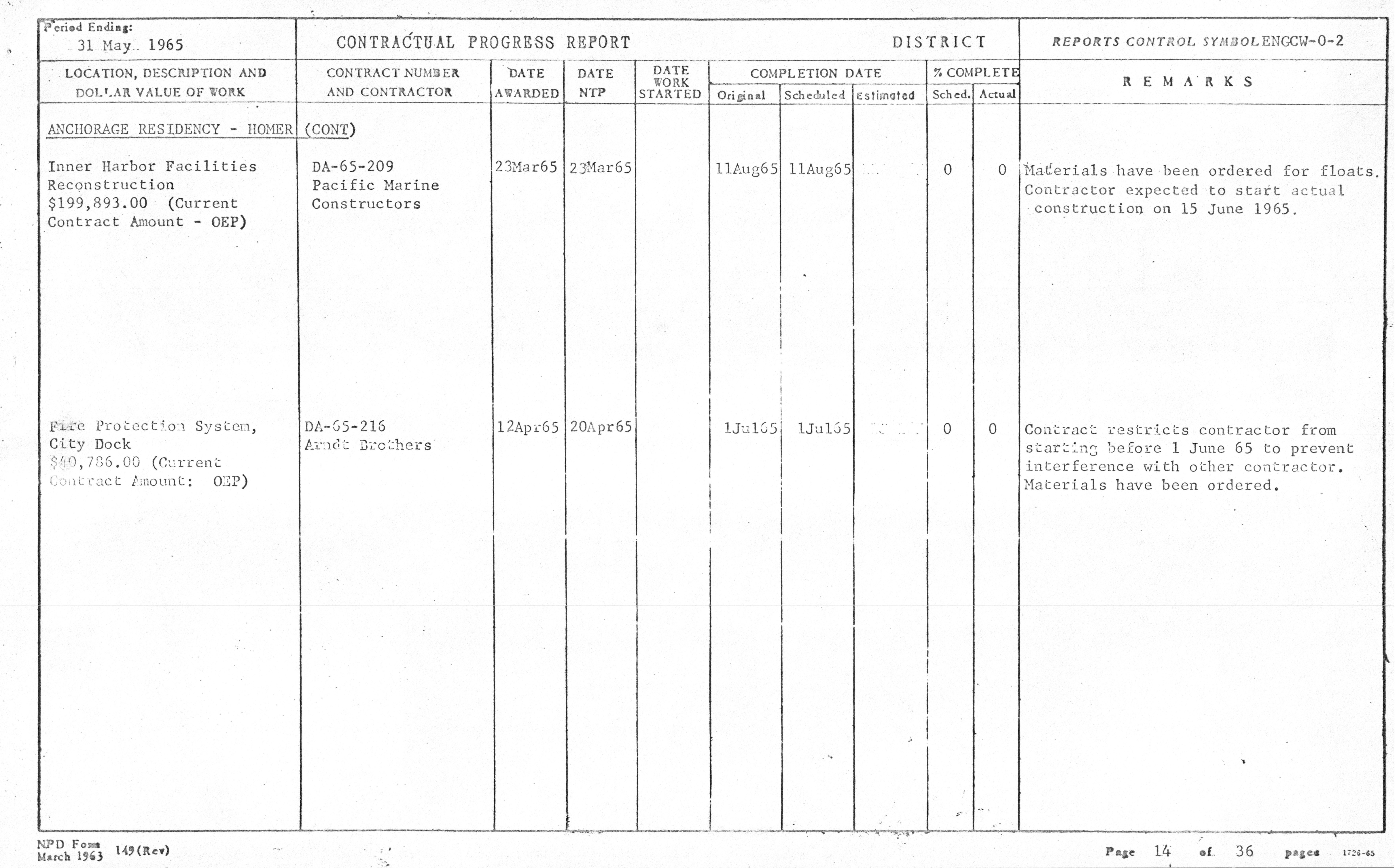- Alaska earthquake restoration projects contractual progress report, May 31, 1965