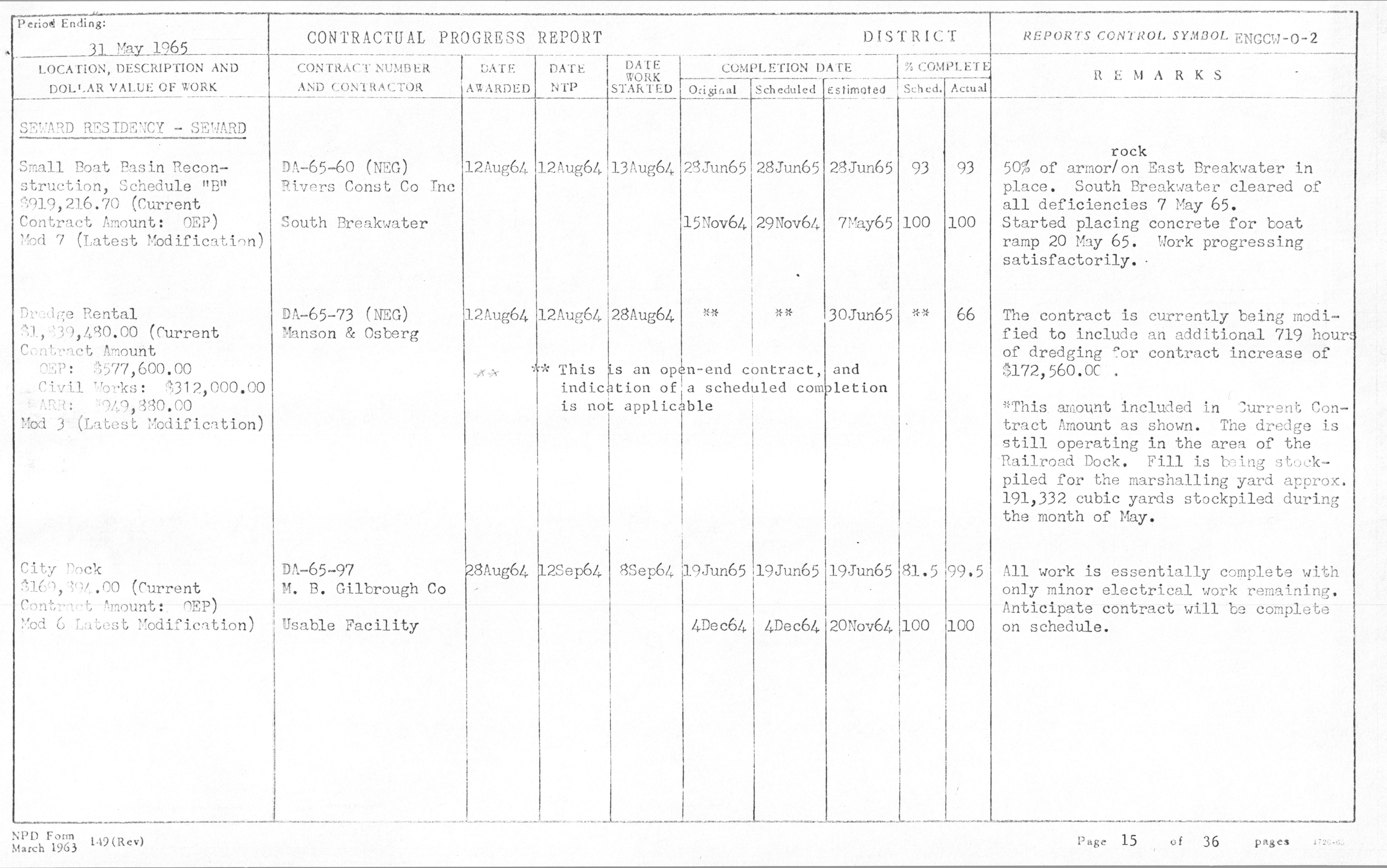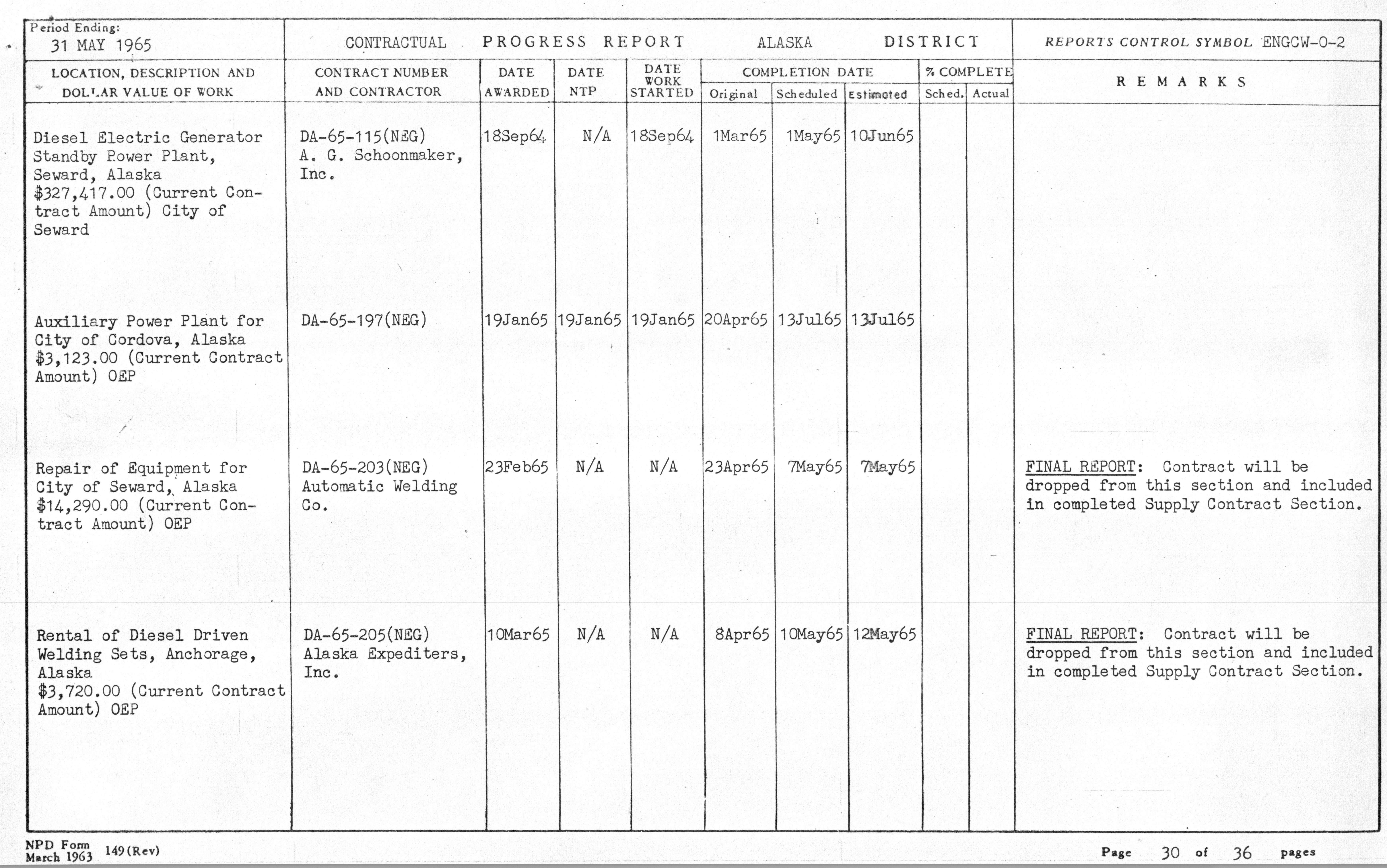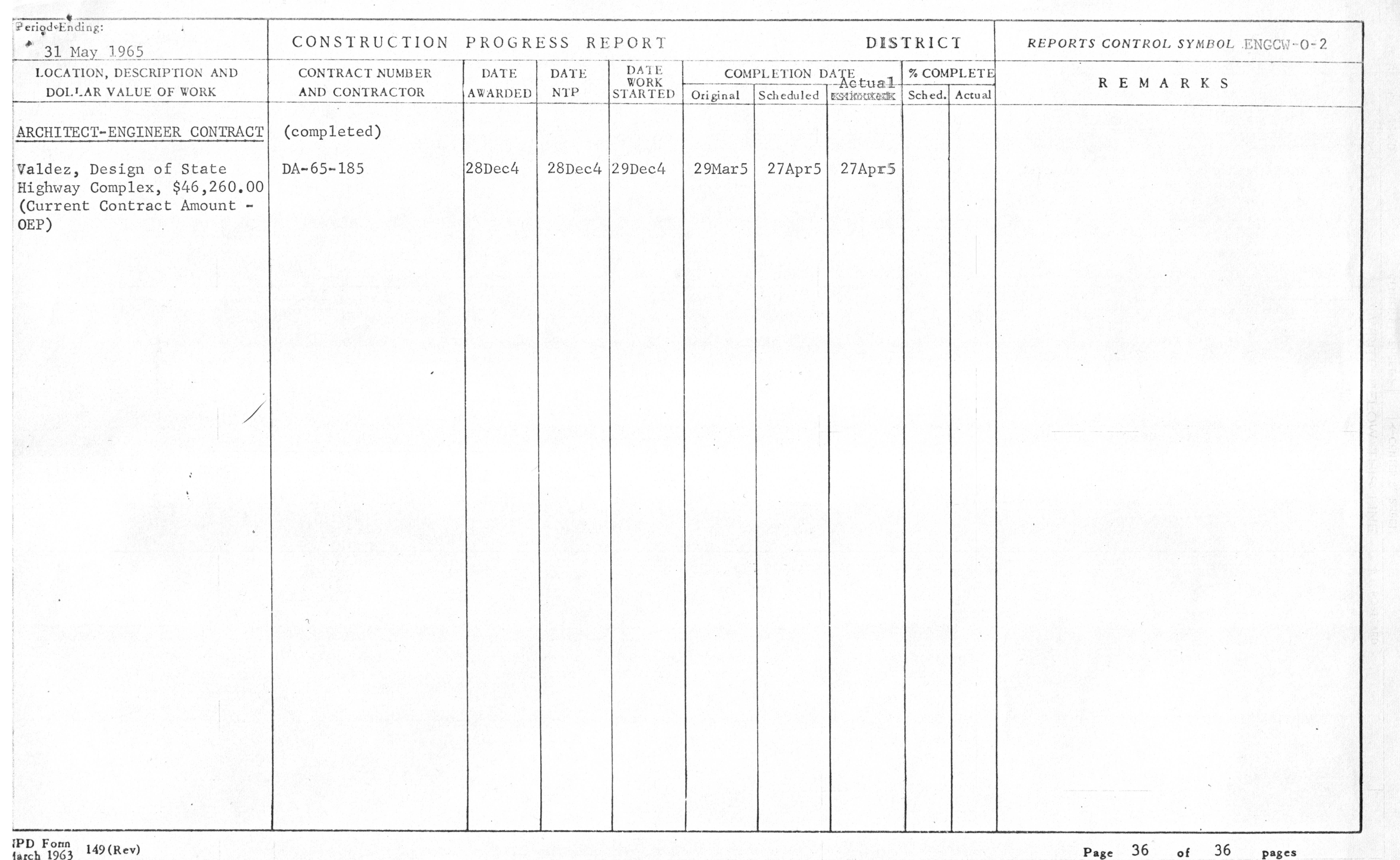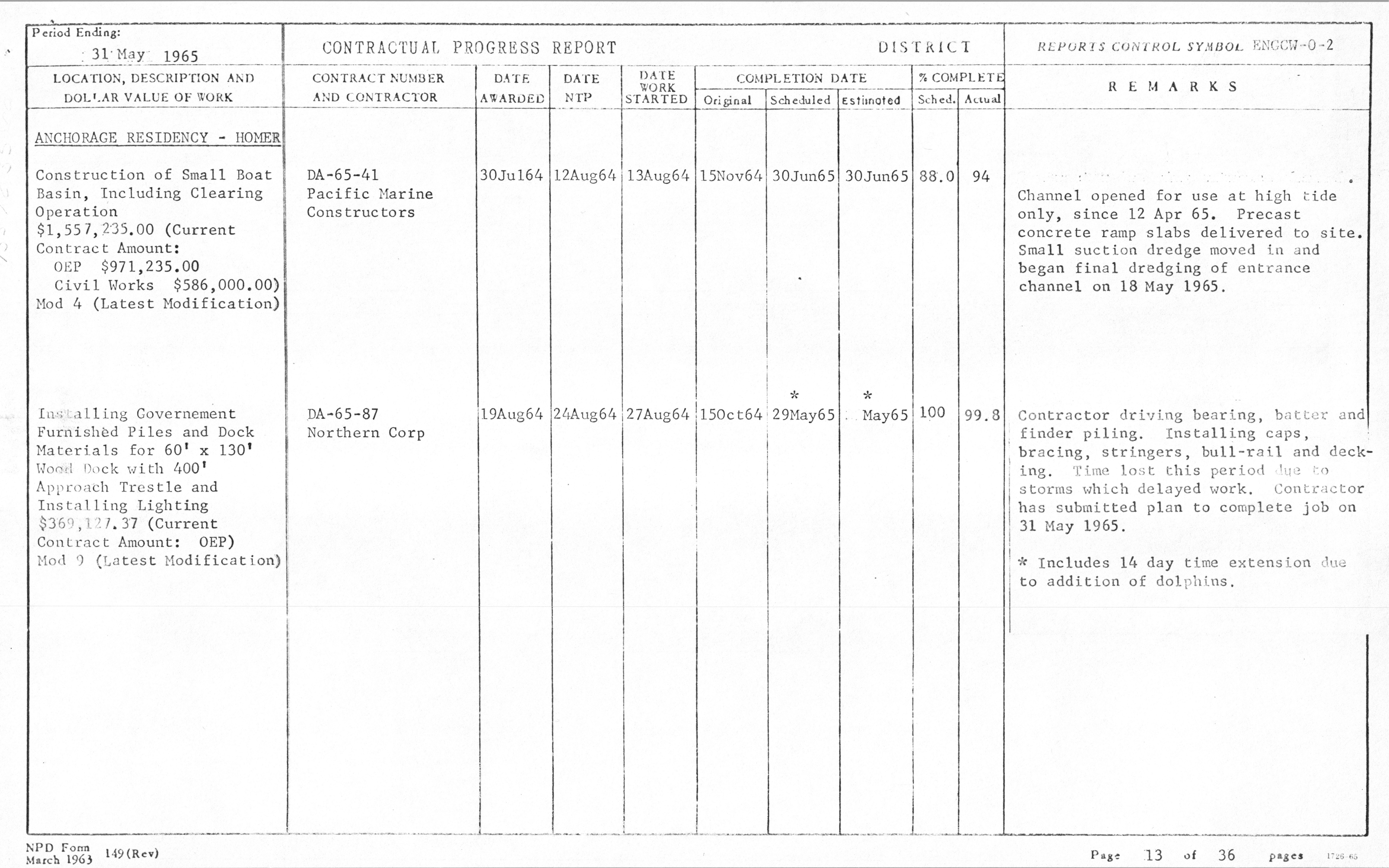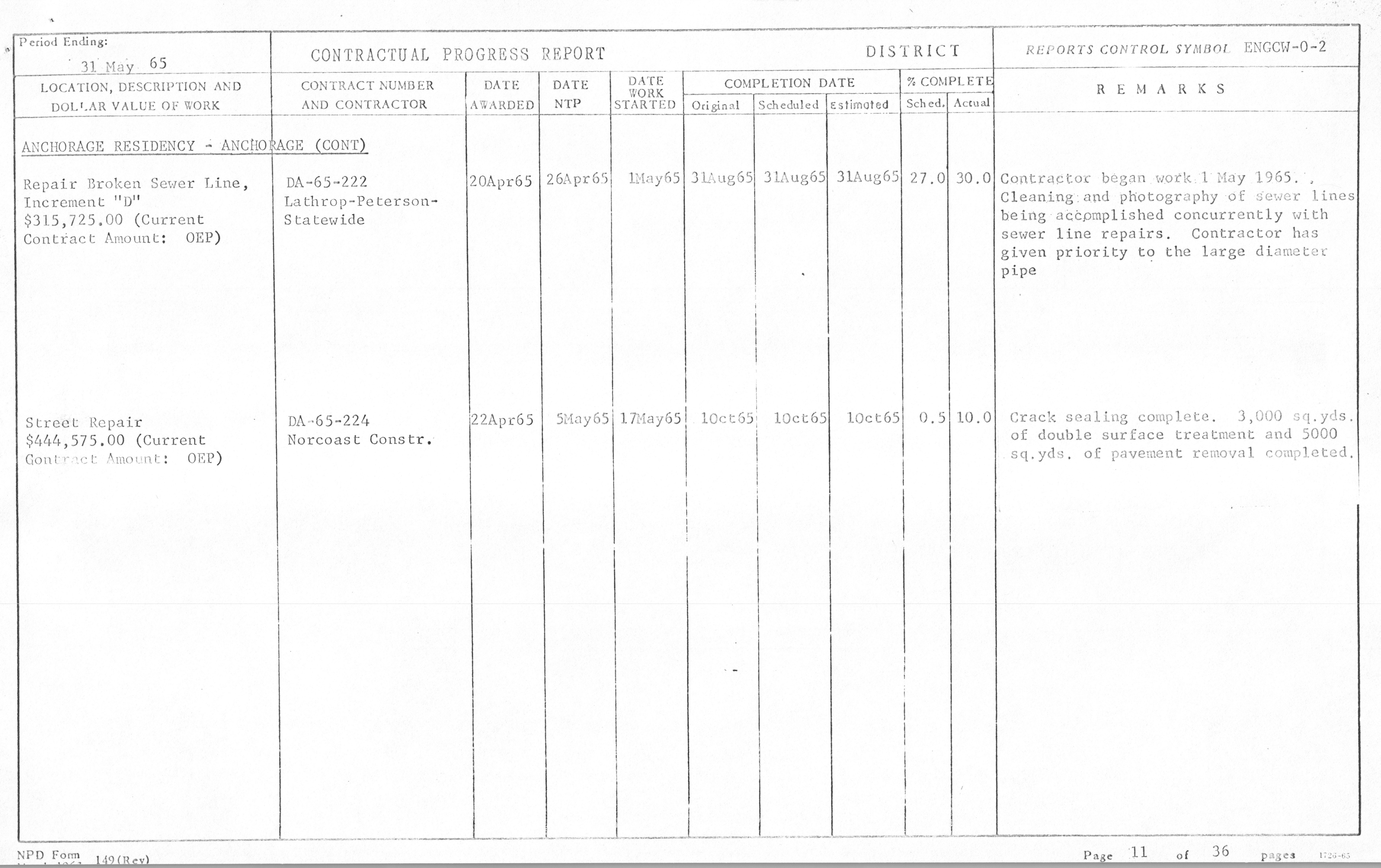 - Alaska earthquake restoration projects contractual progress report, May 31, 1965