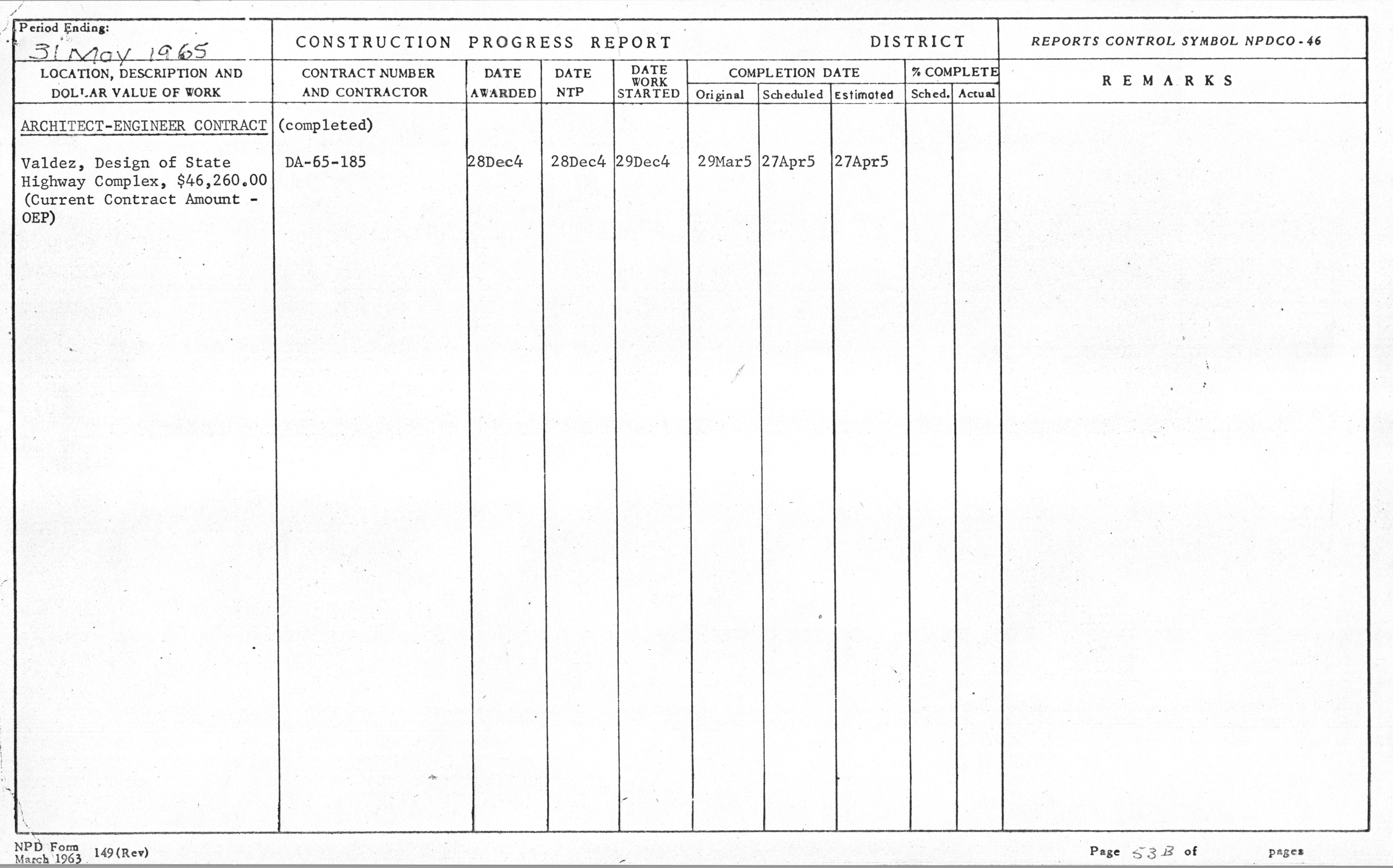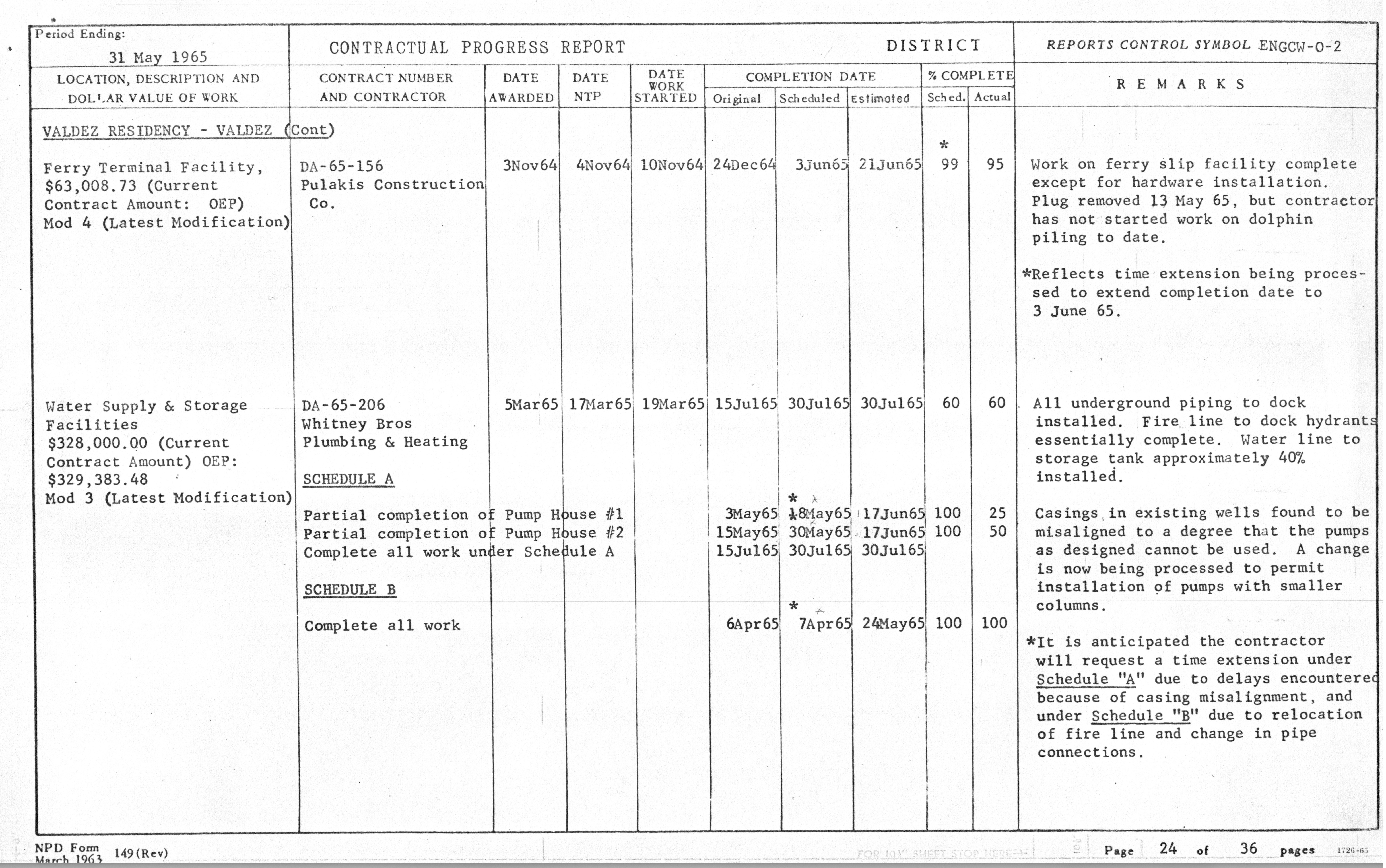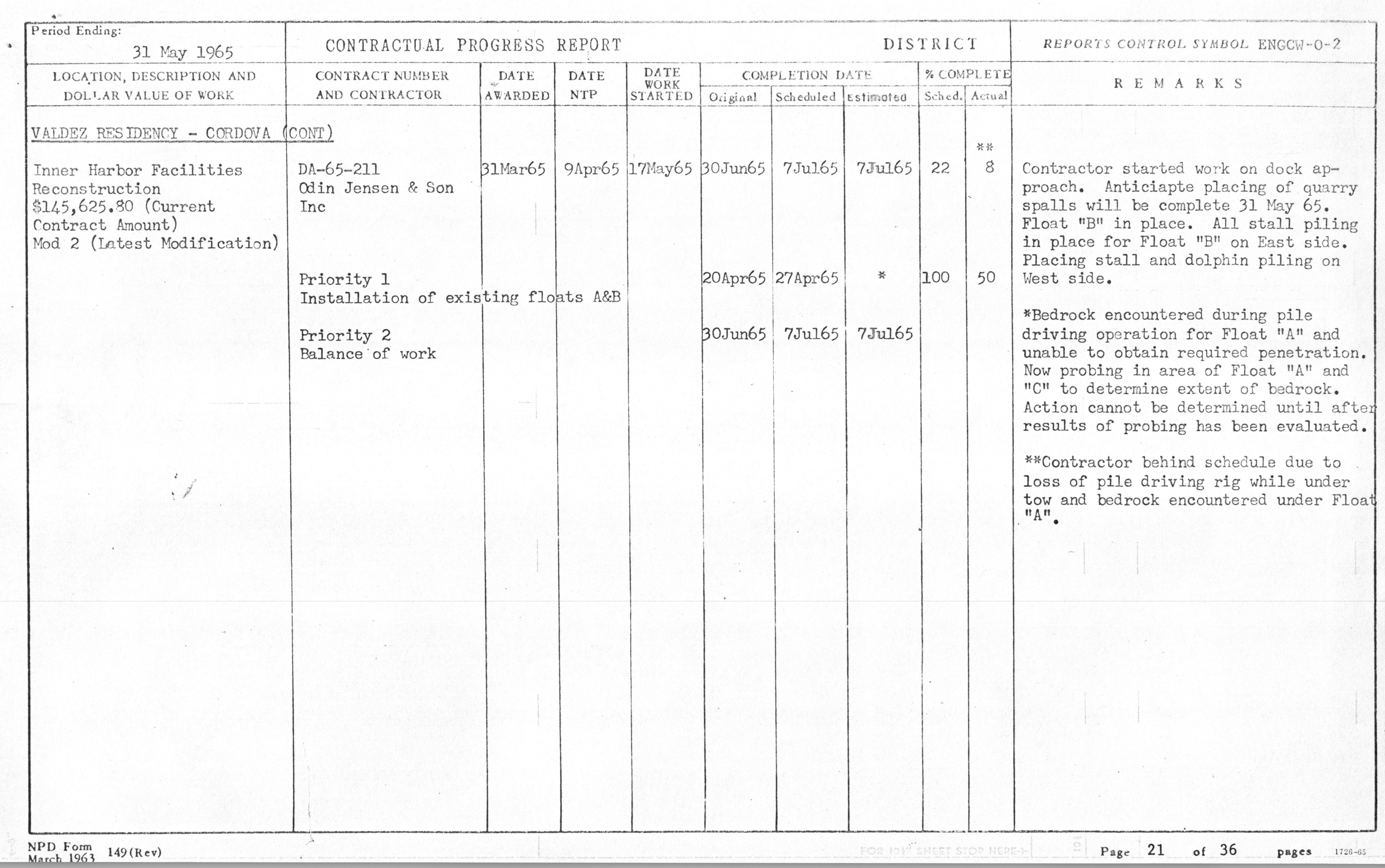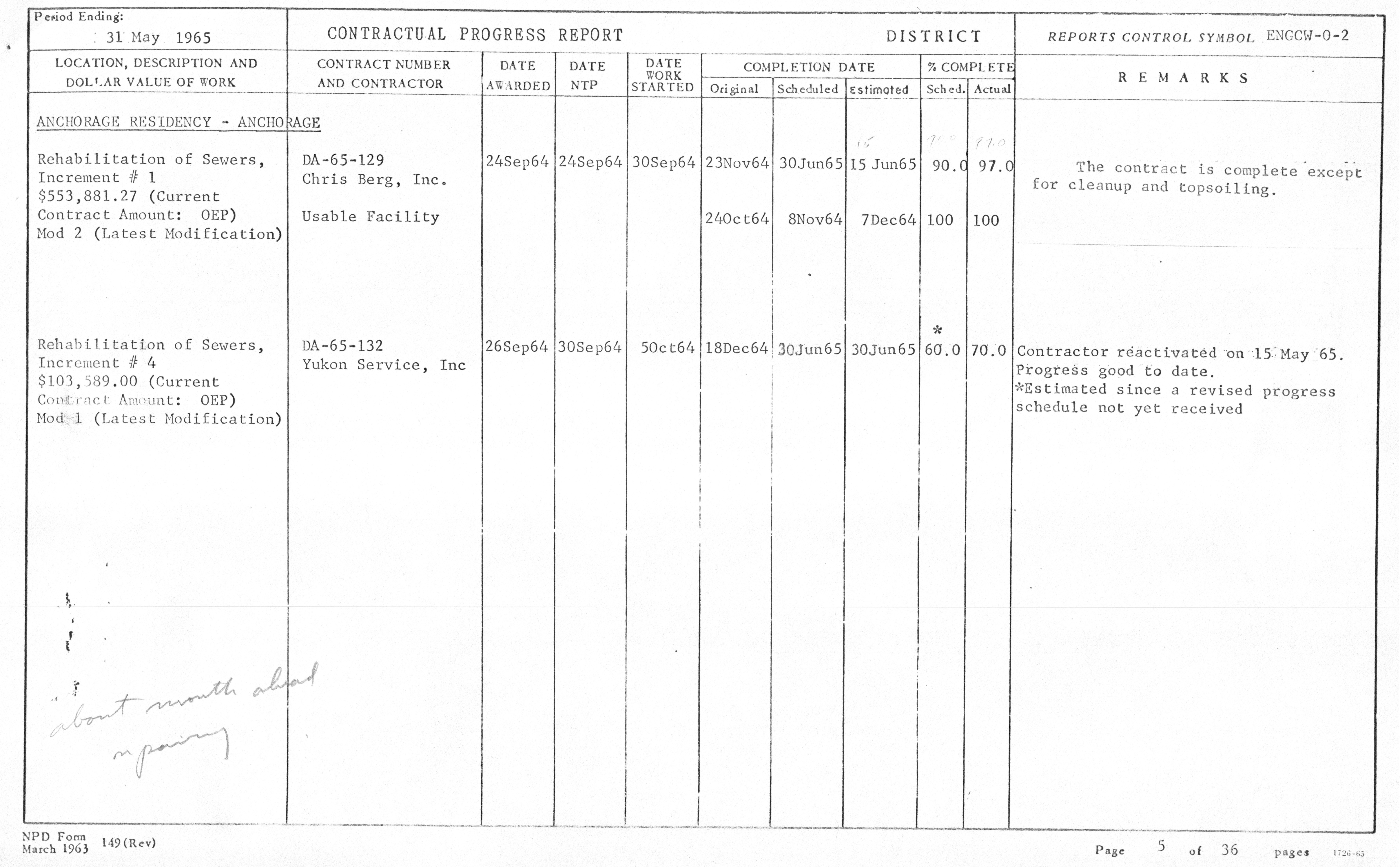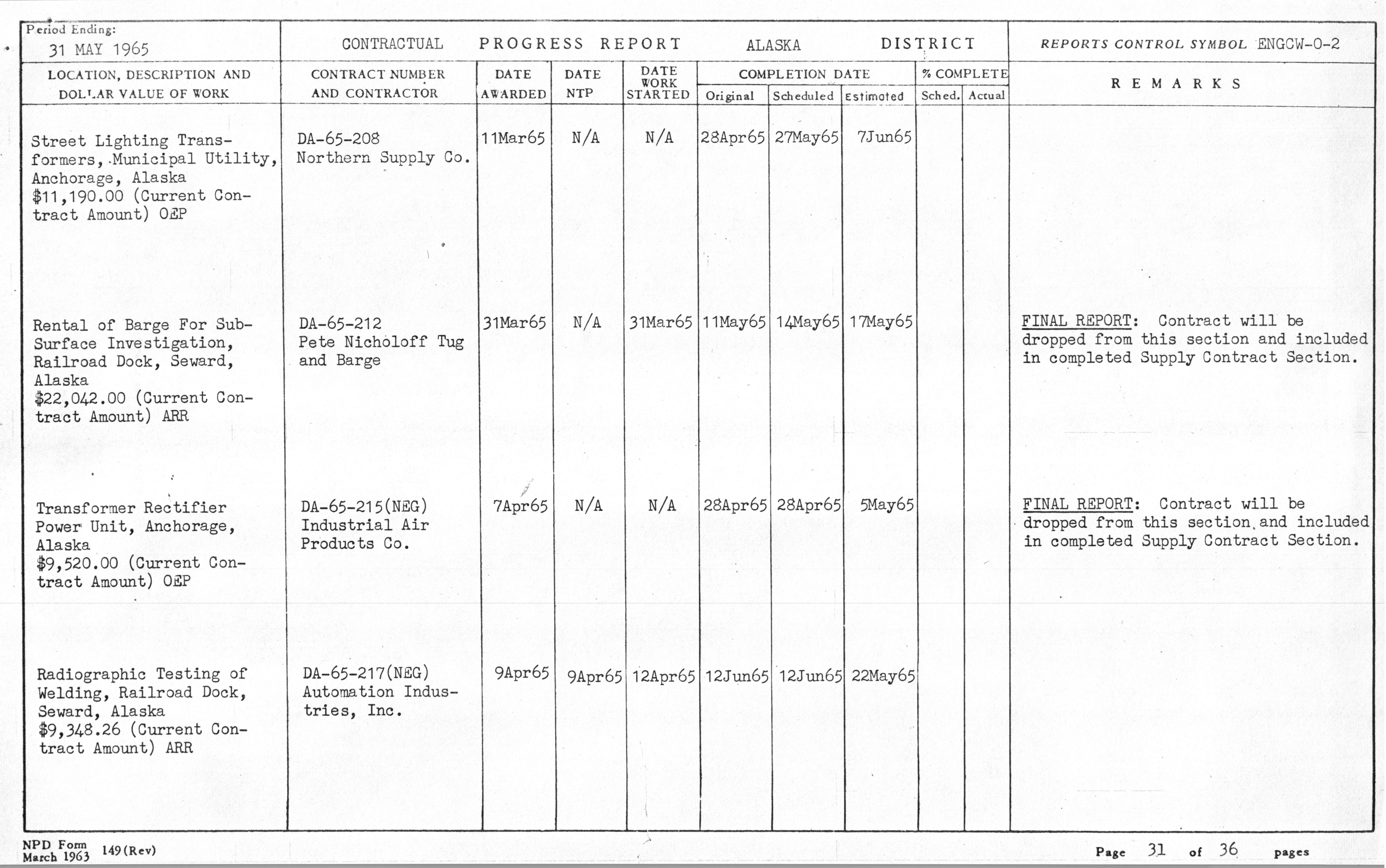- Alaska earthquake restoration projects contractual progress report, May 31, 1965