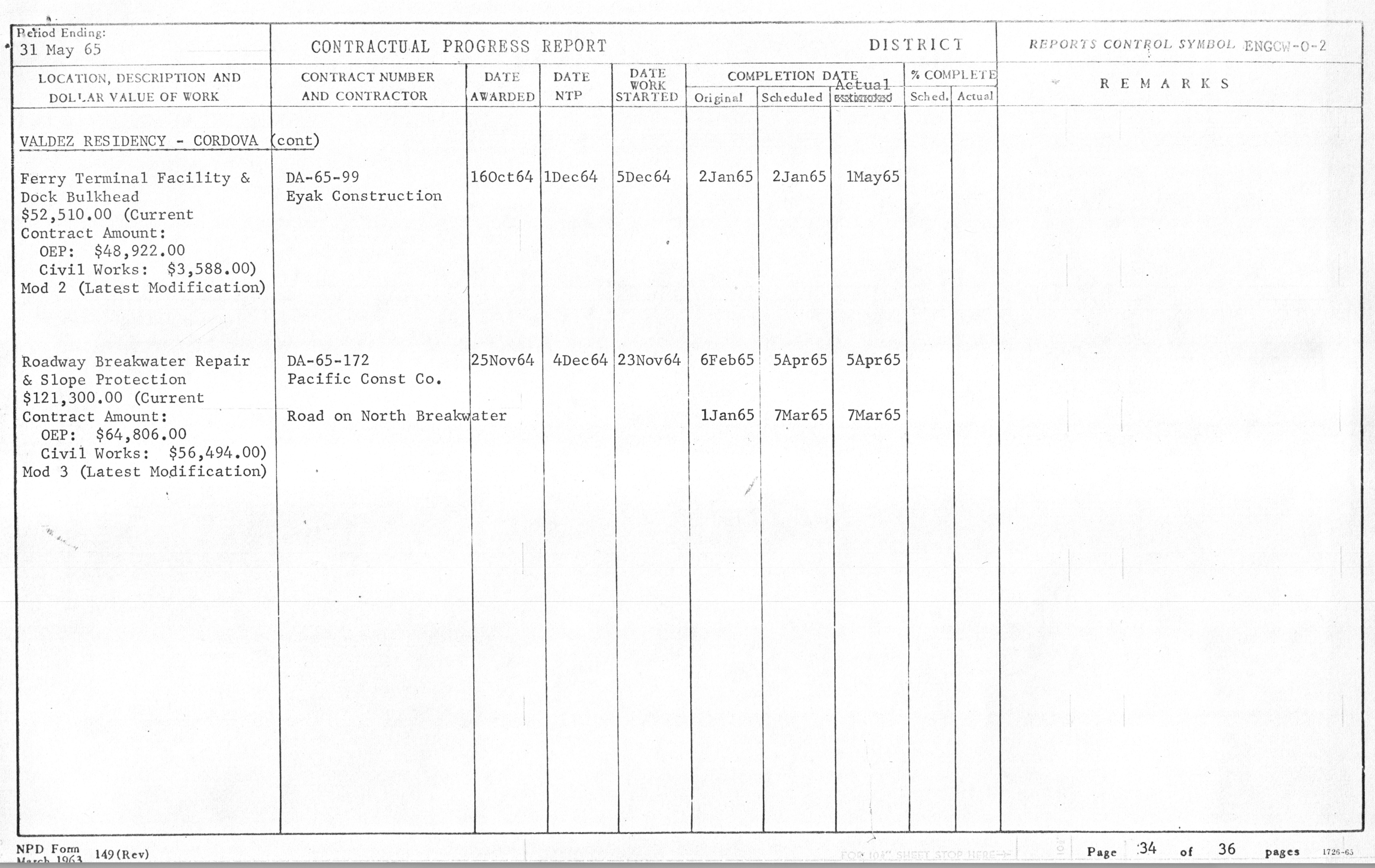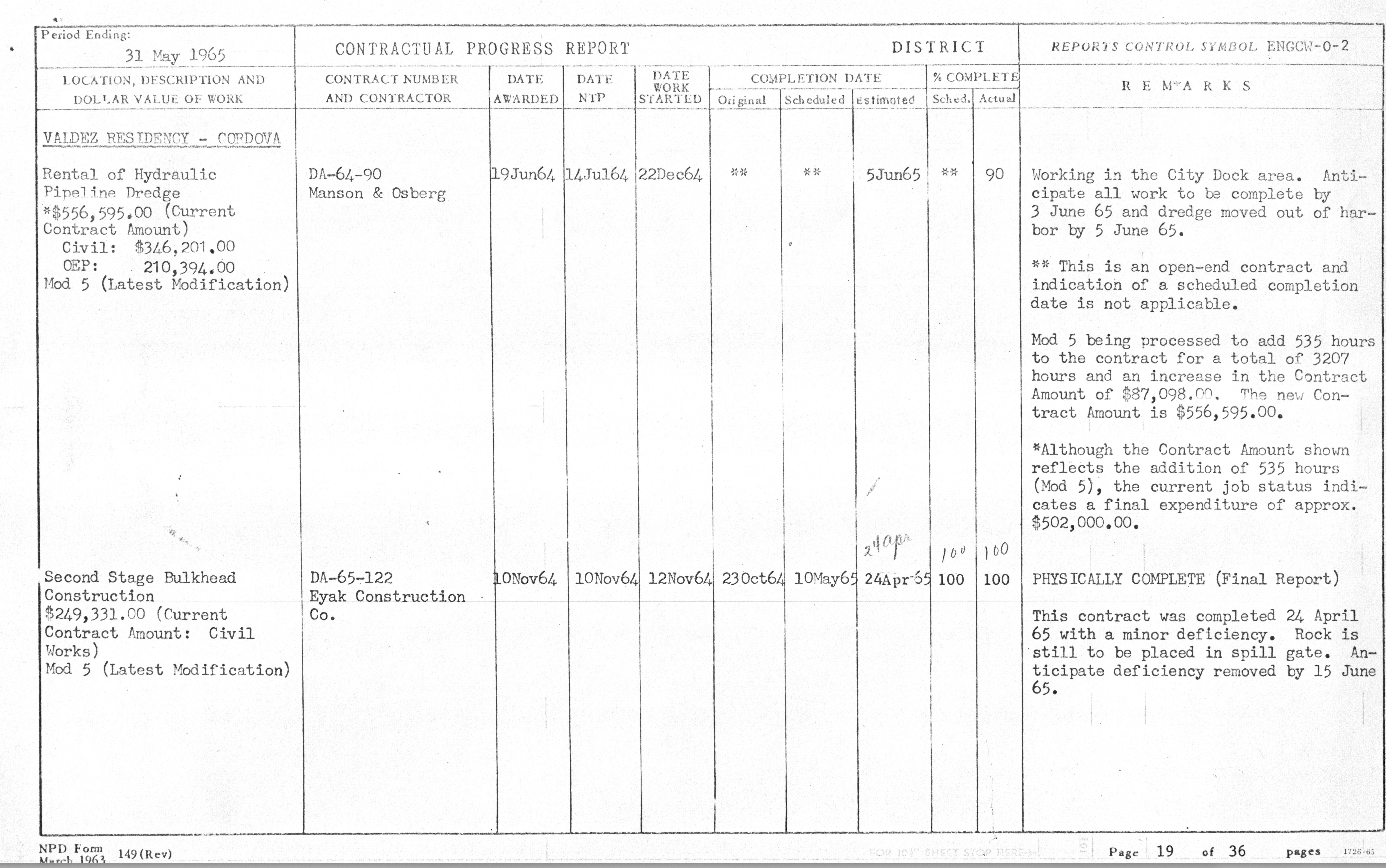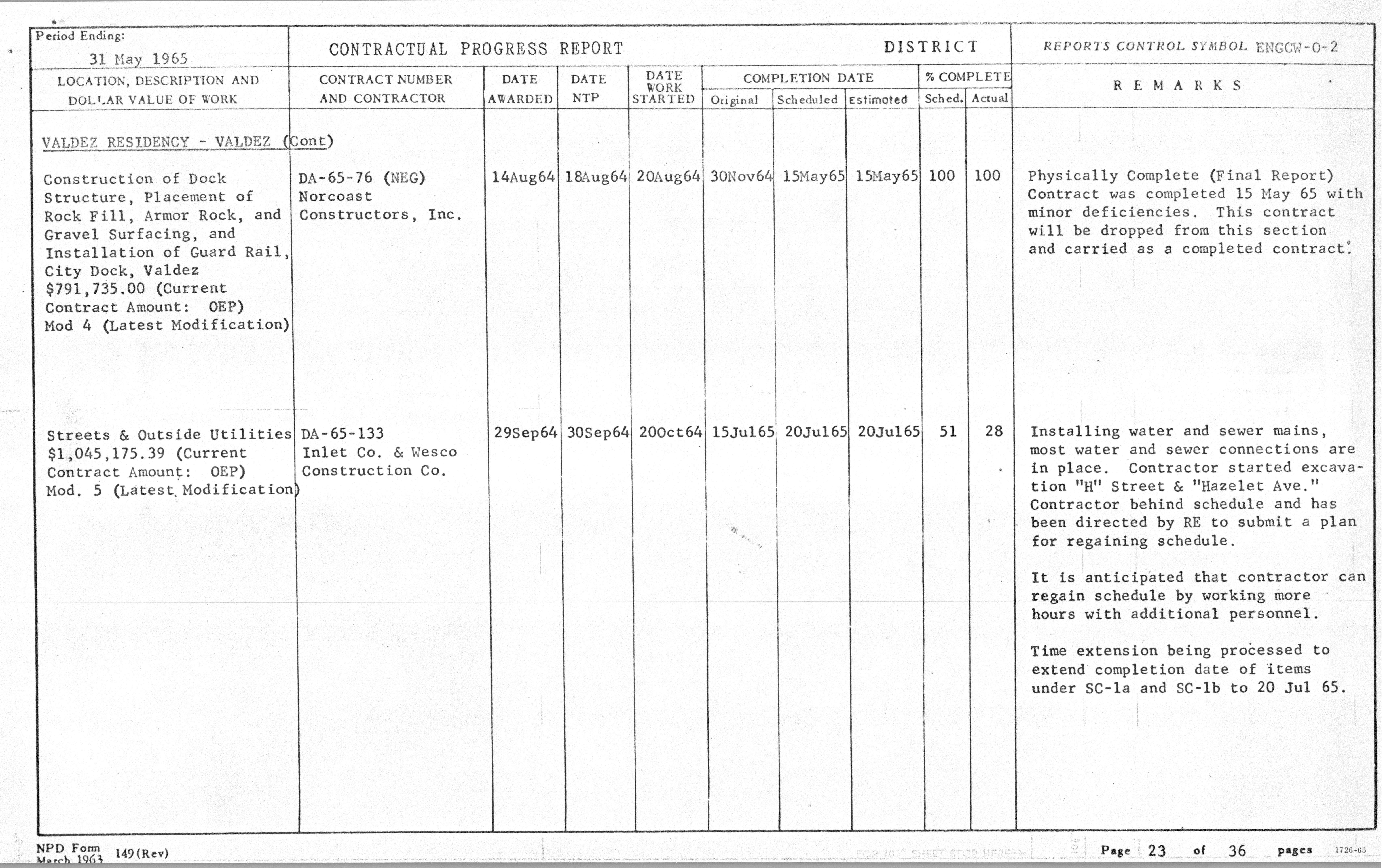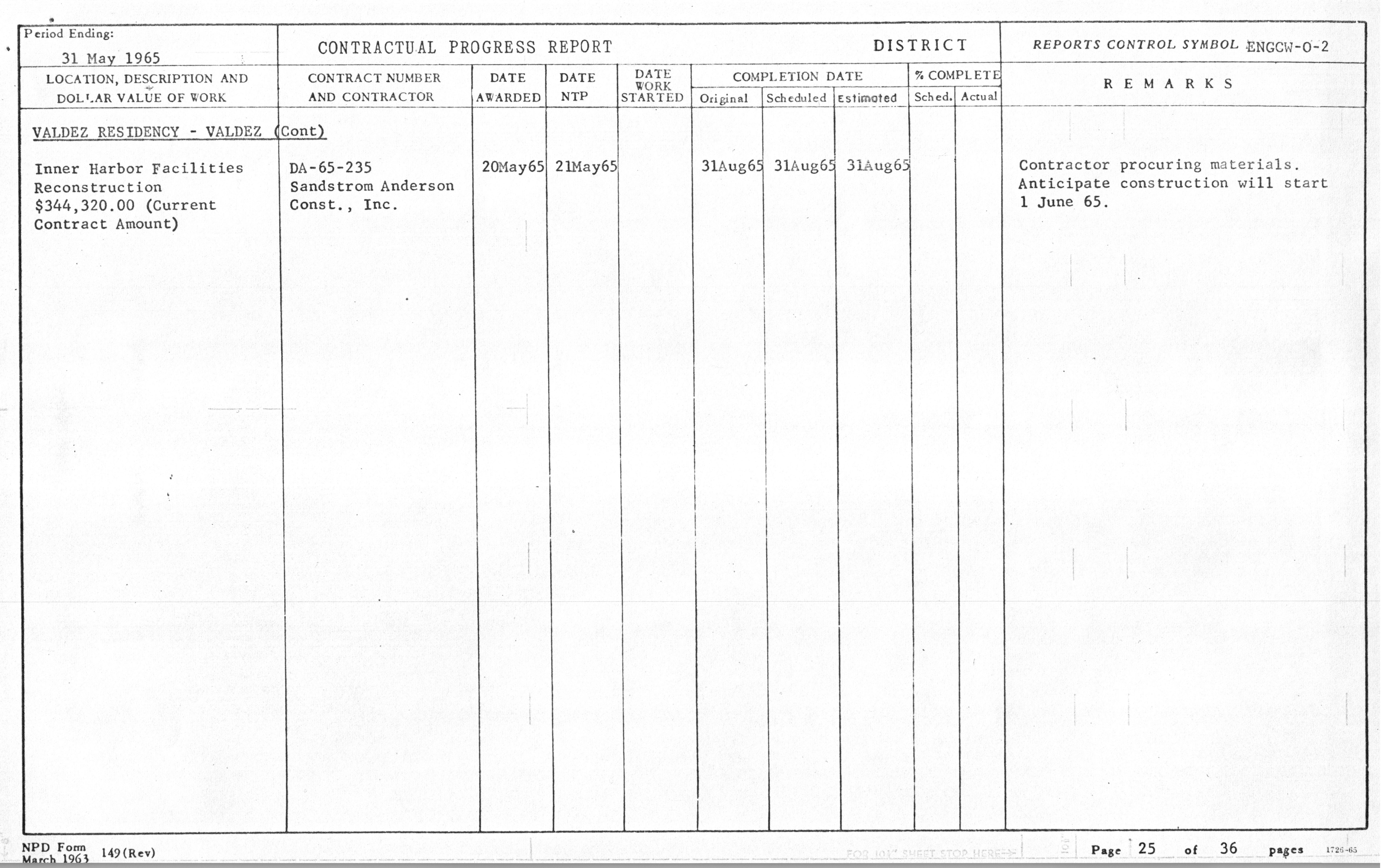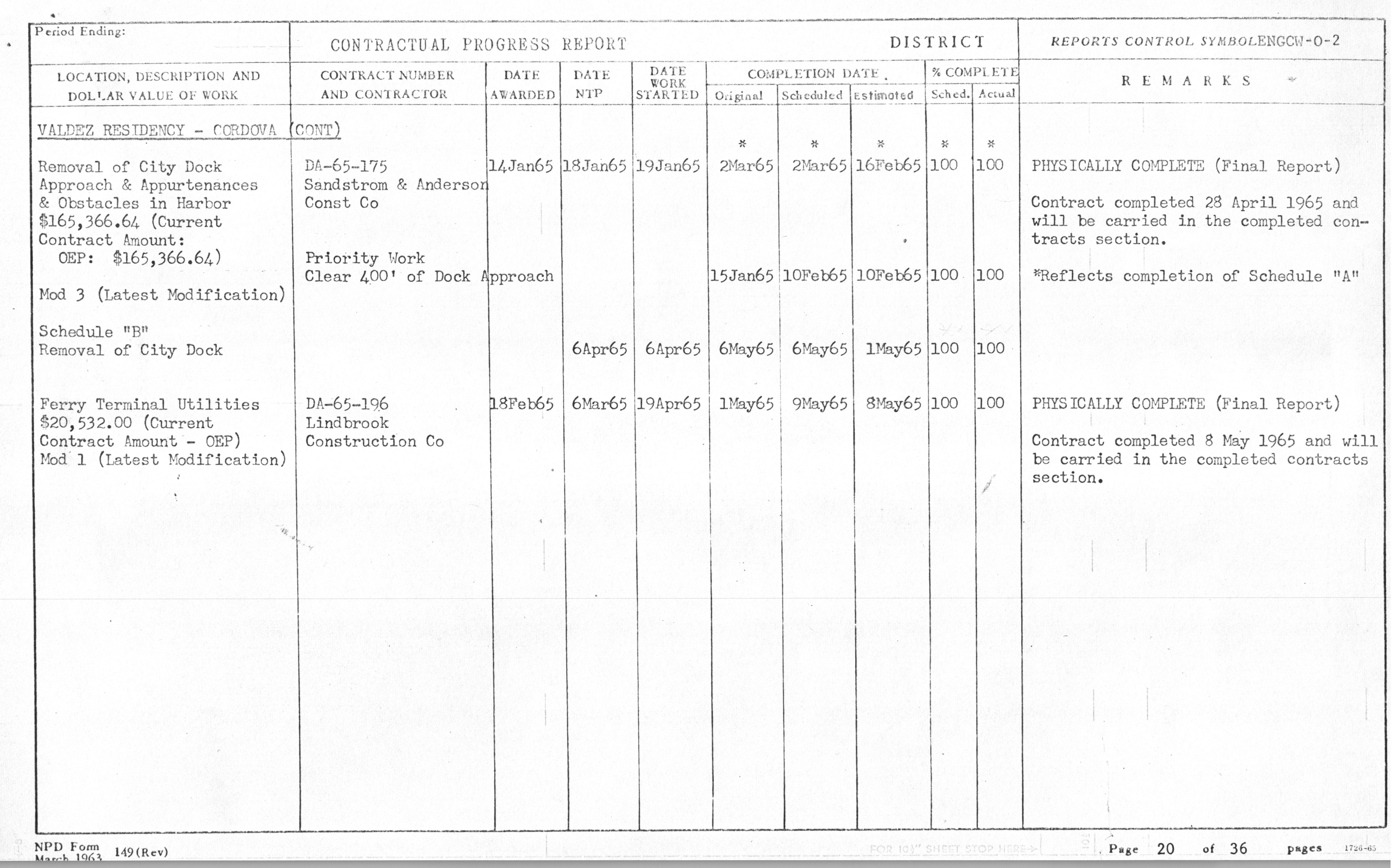 Alaska earthquake restoration projects contractual progress report, May 31, 1965 Item Info
