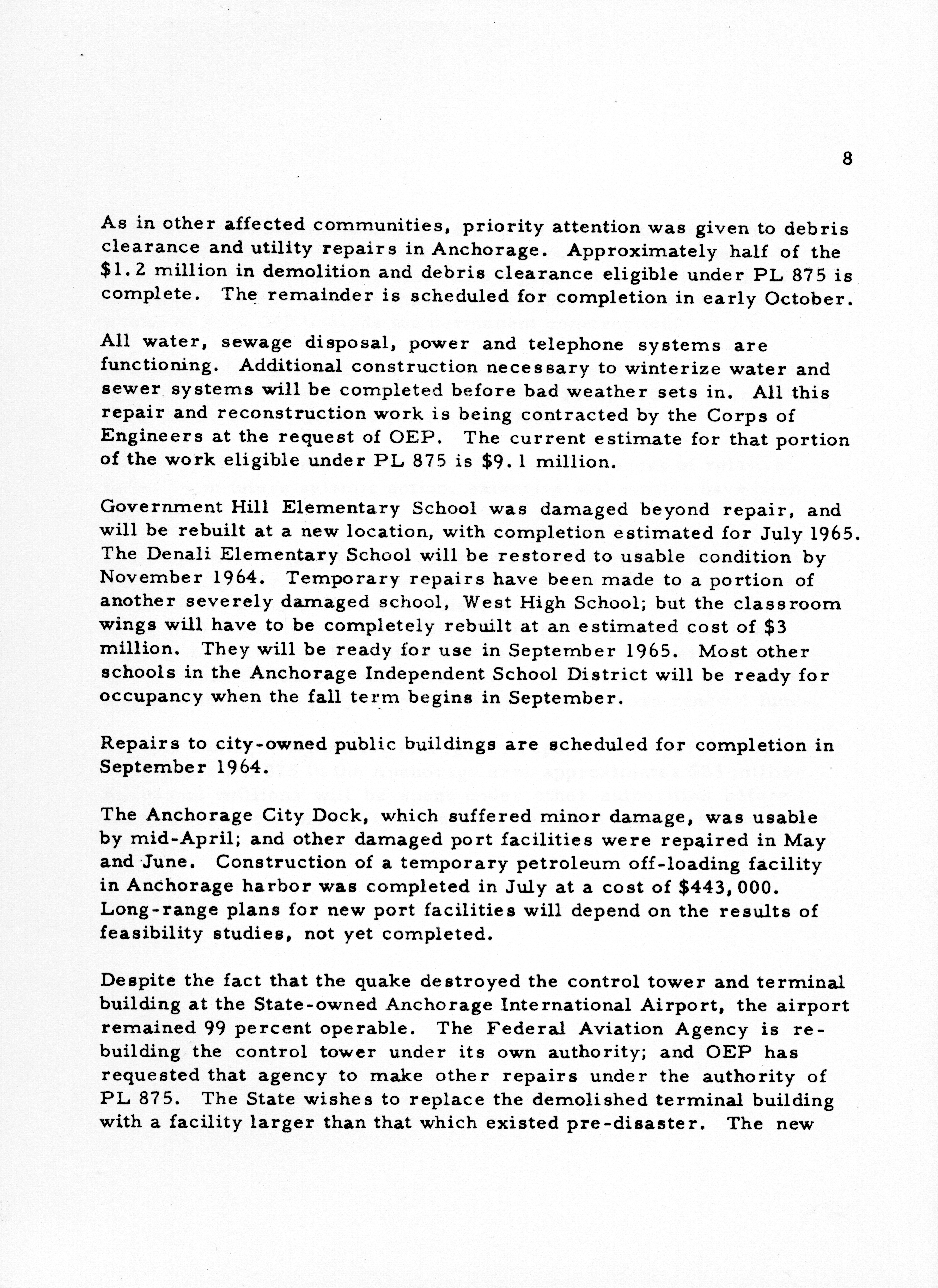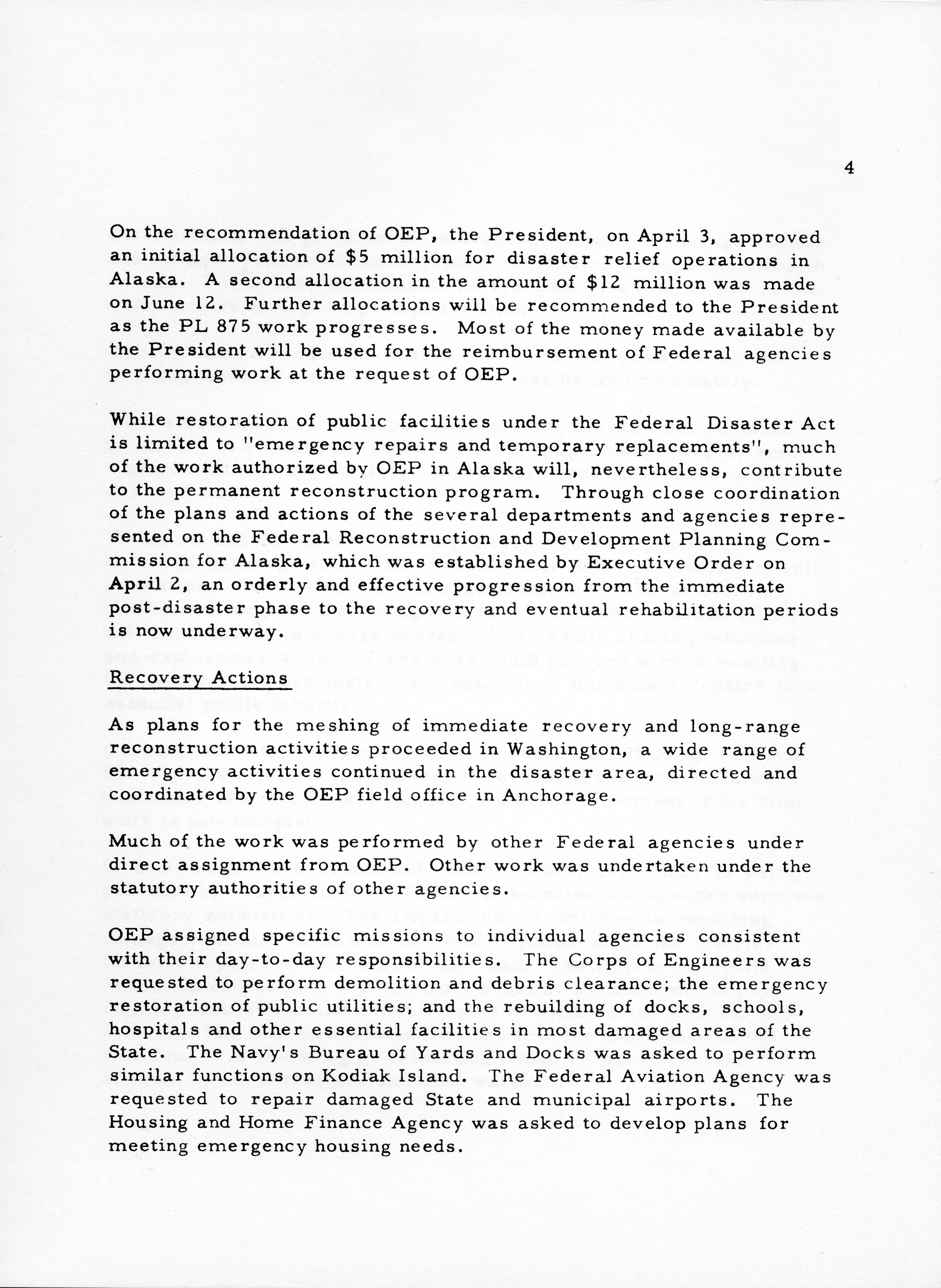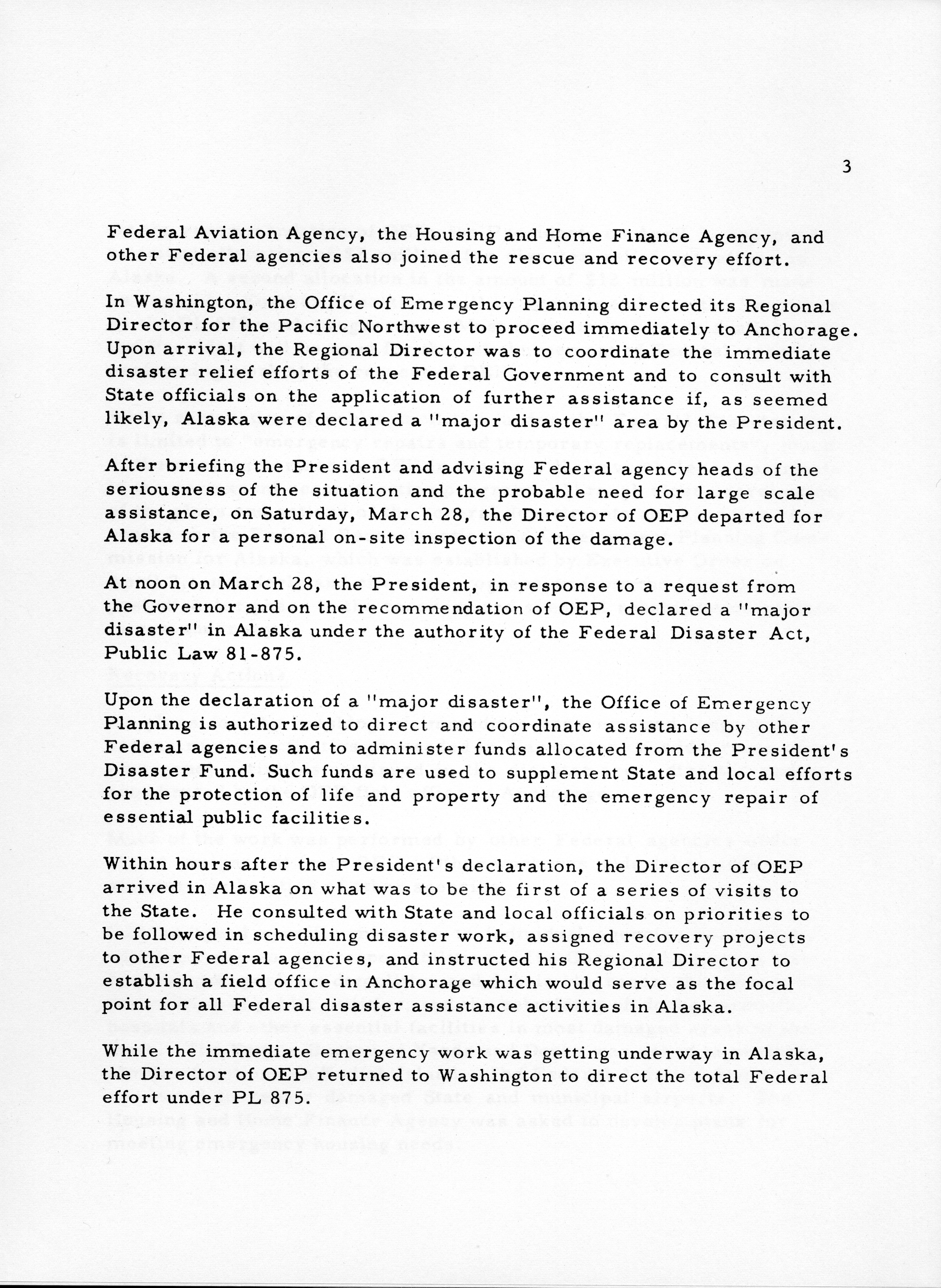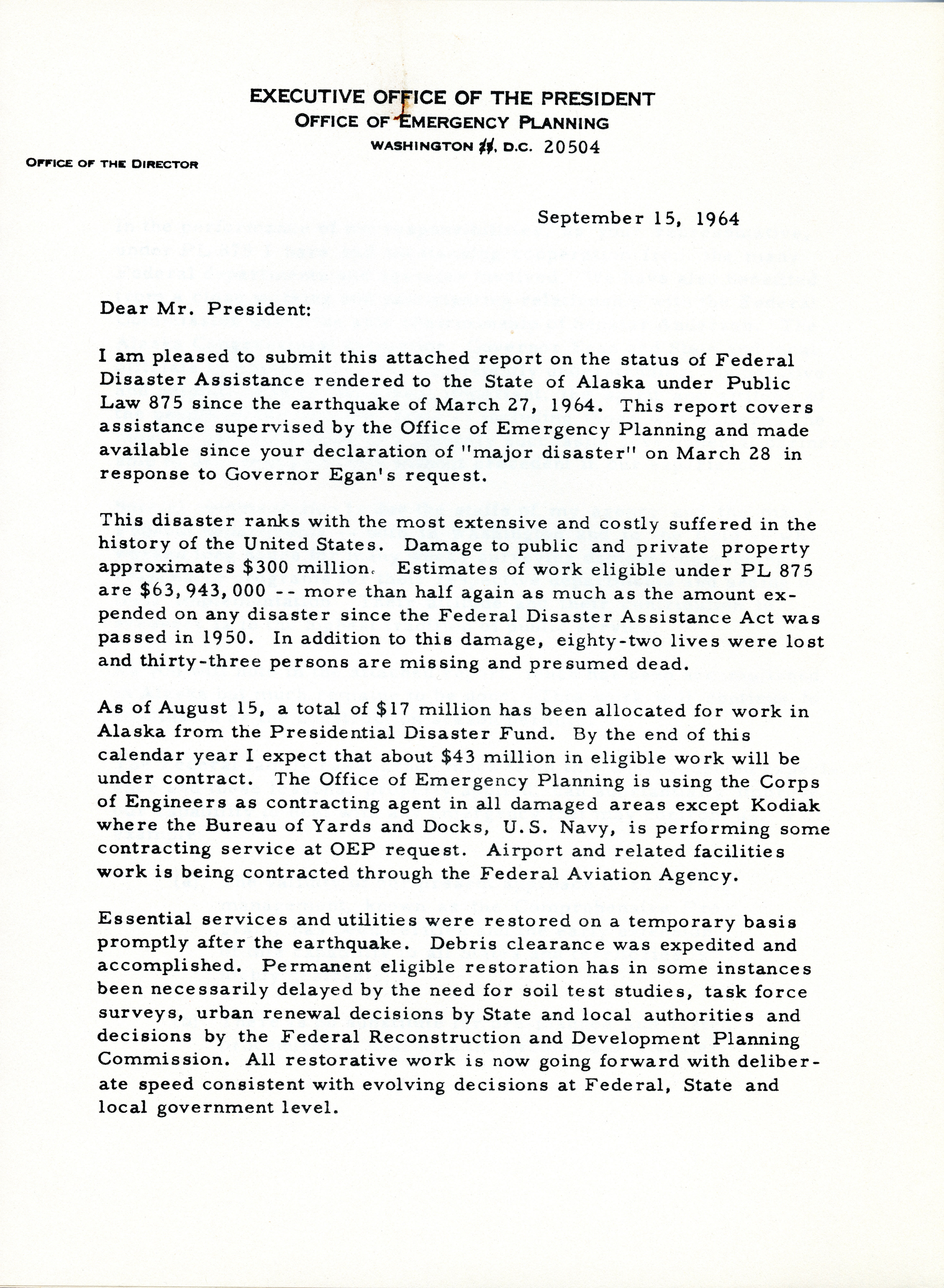 - U.S. Office of Emergency Planning. "Role of the OEP in the Alaska Earthquake," report 1964