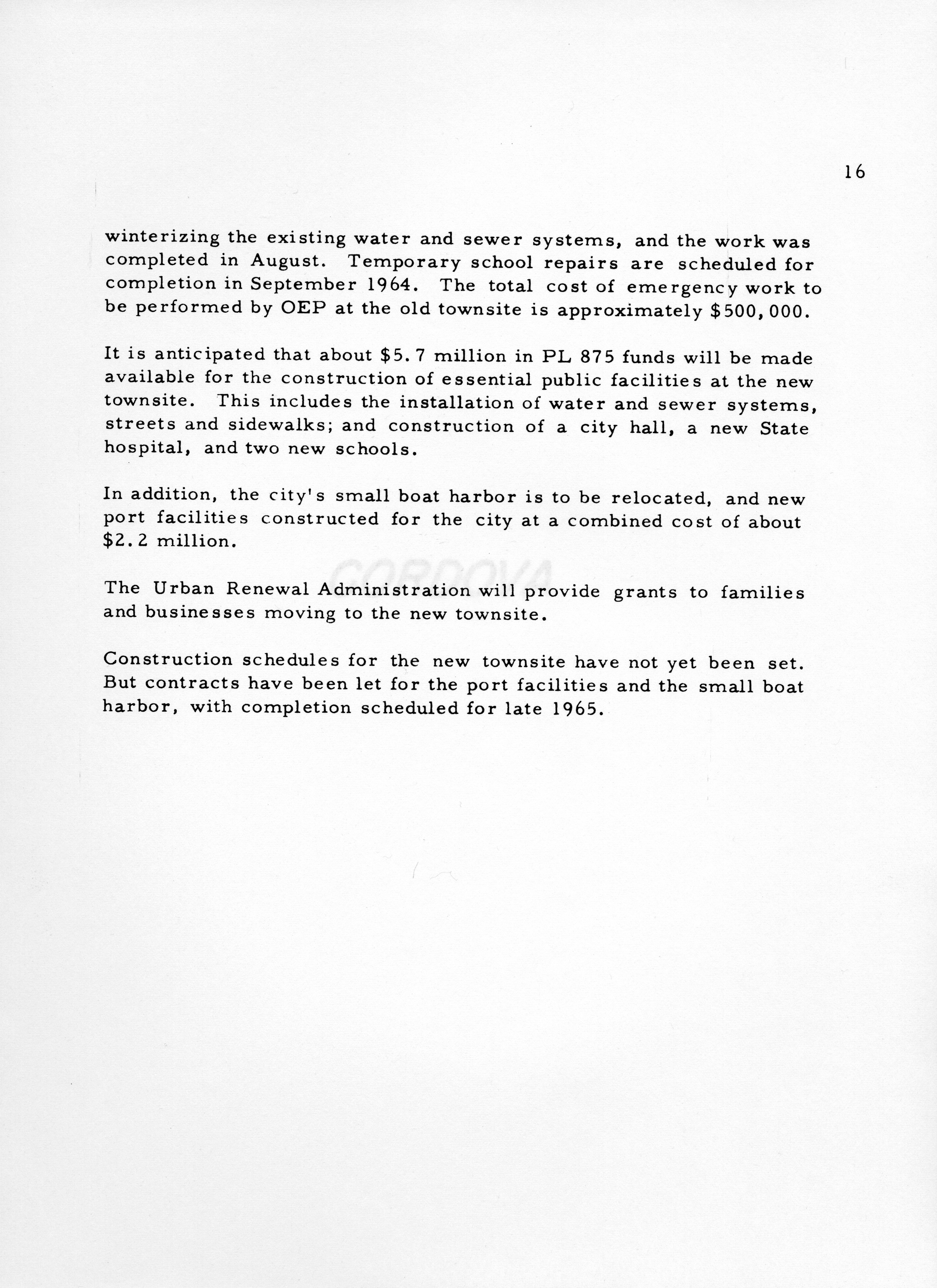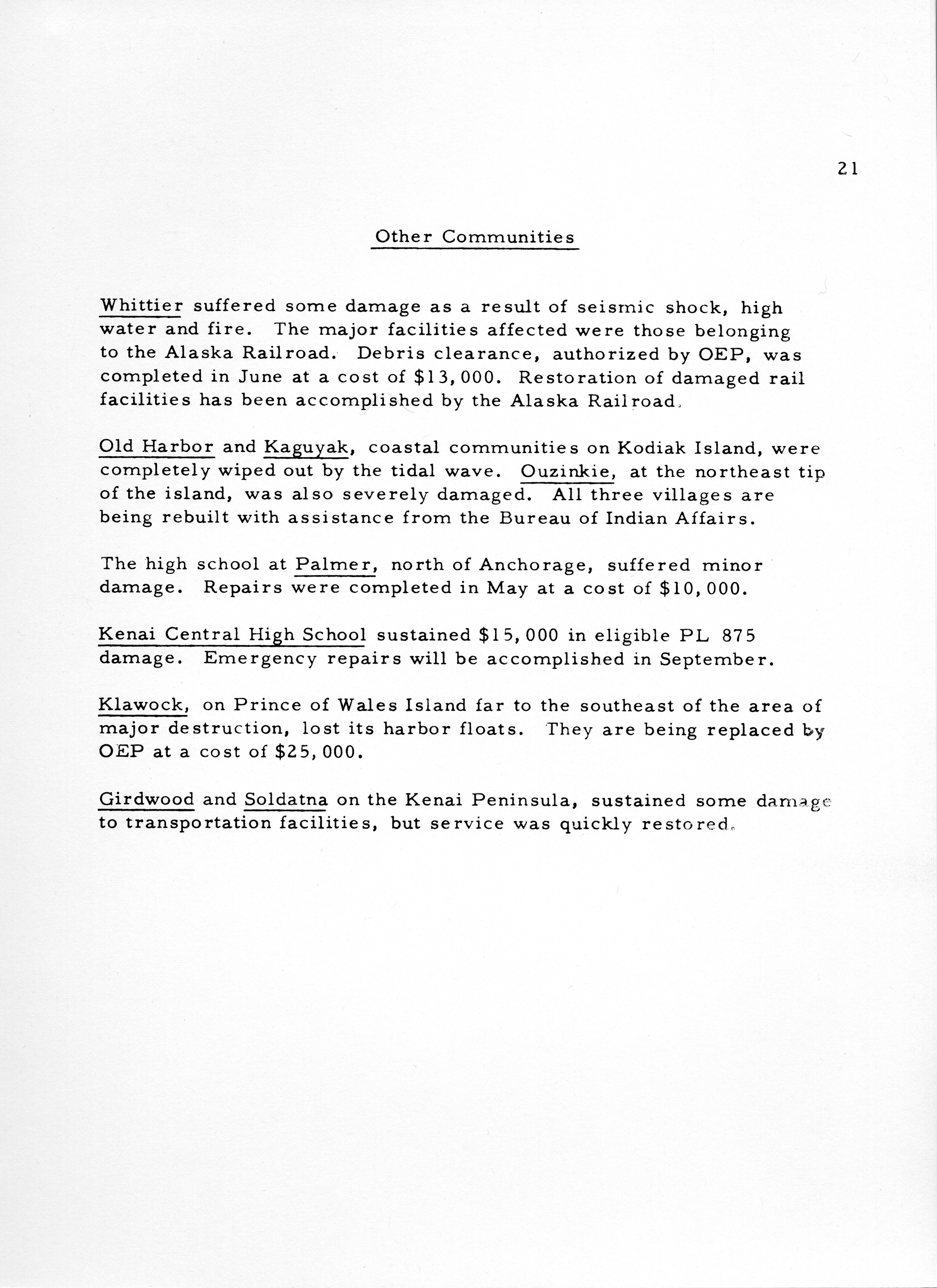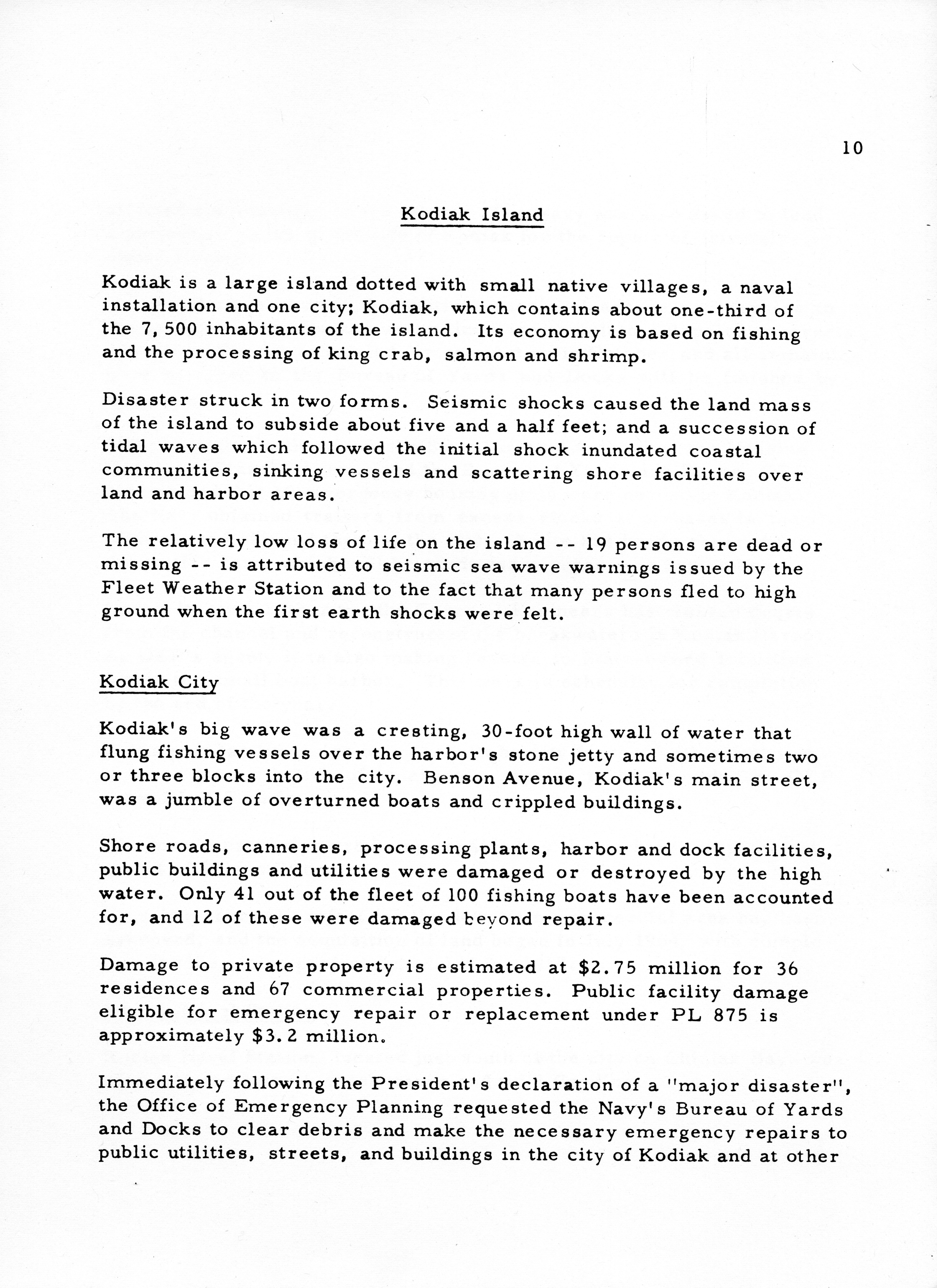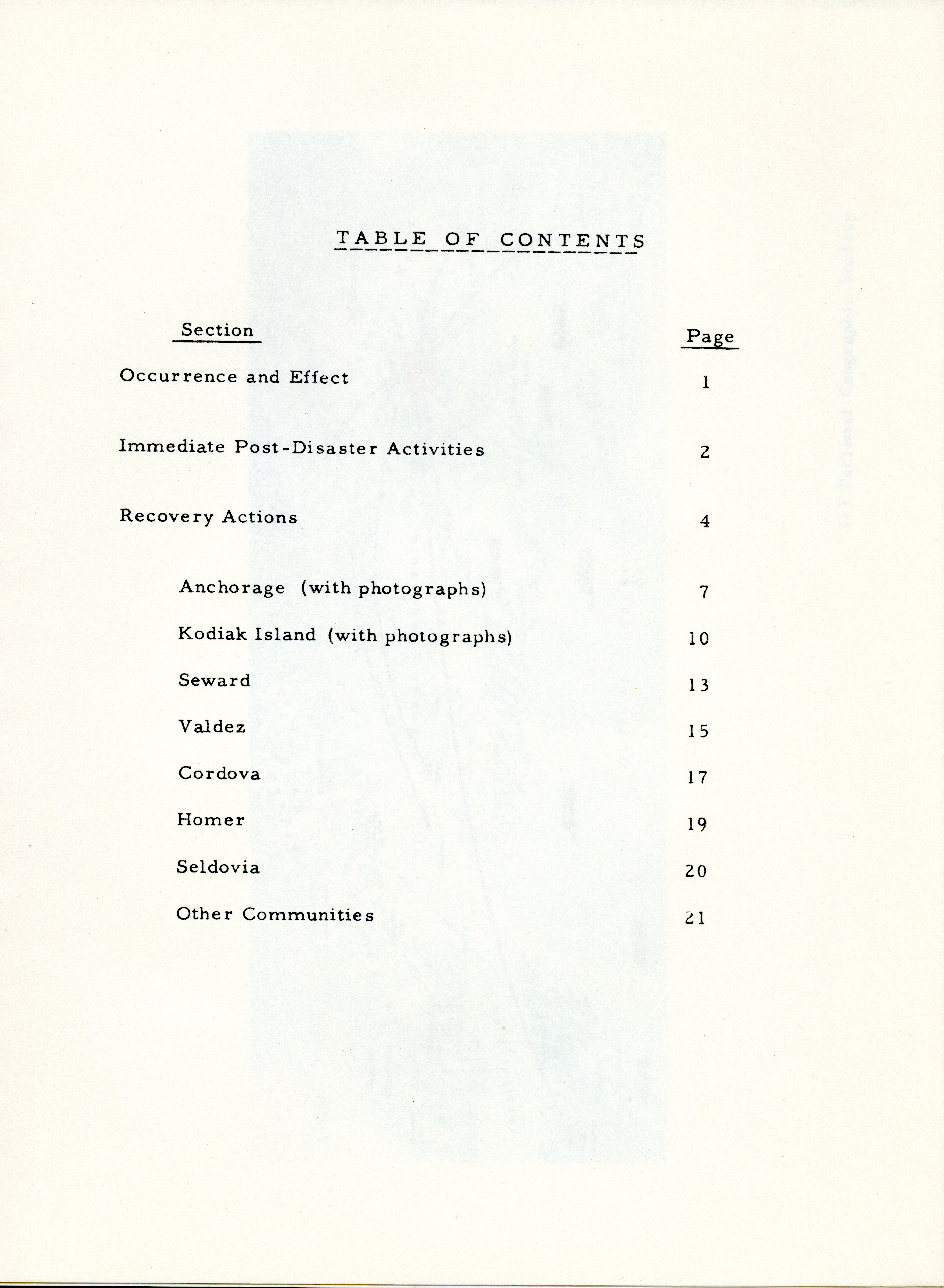 - "The role of the office of emergency planning in the Alaskan earthquake", Dwight Ink Collection, Iowa State University Library Digital Collections