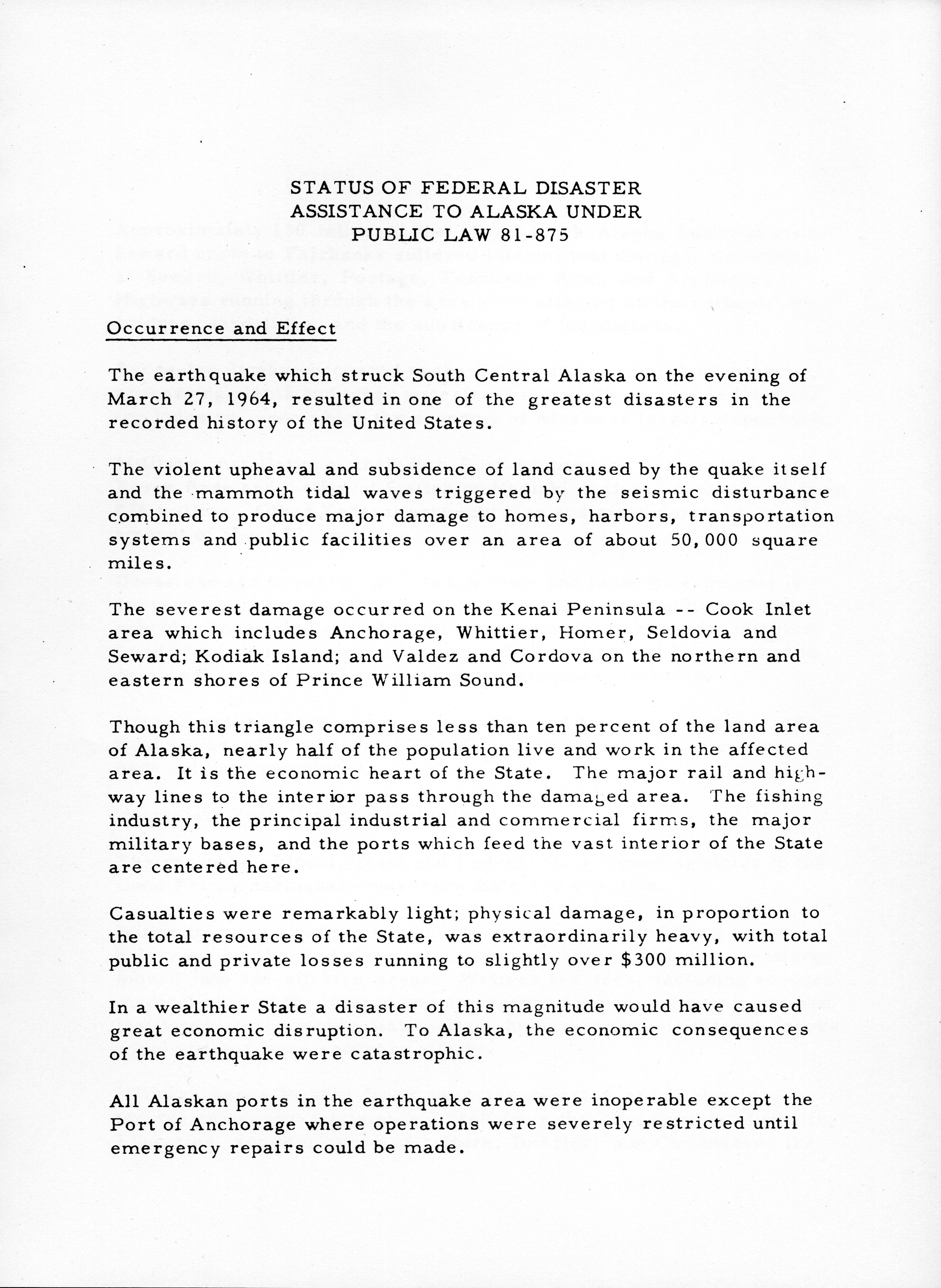 The role of the office of emergency planning in the Alaskan earthquake Item Info