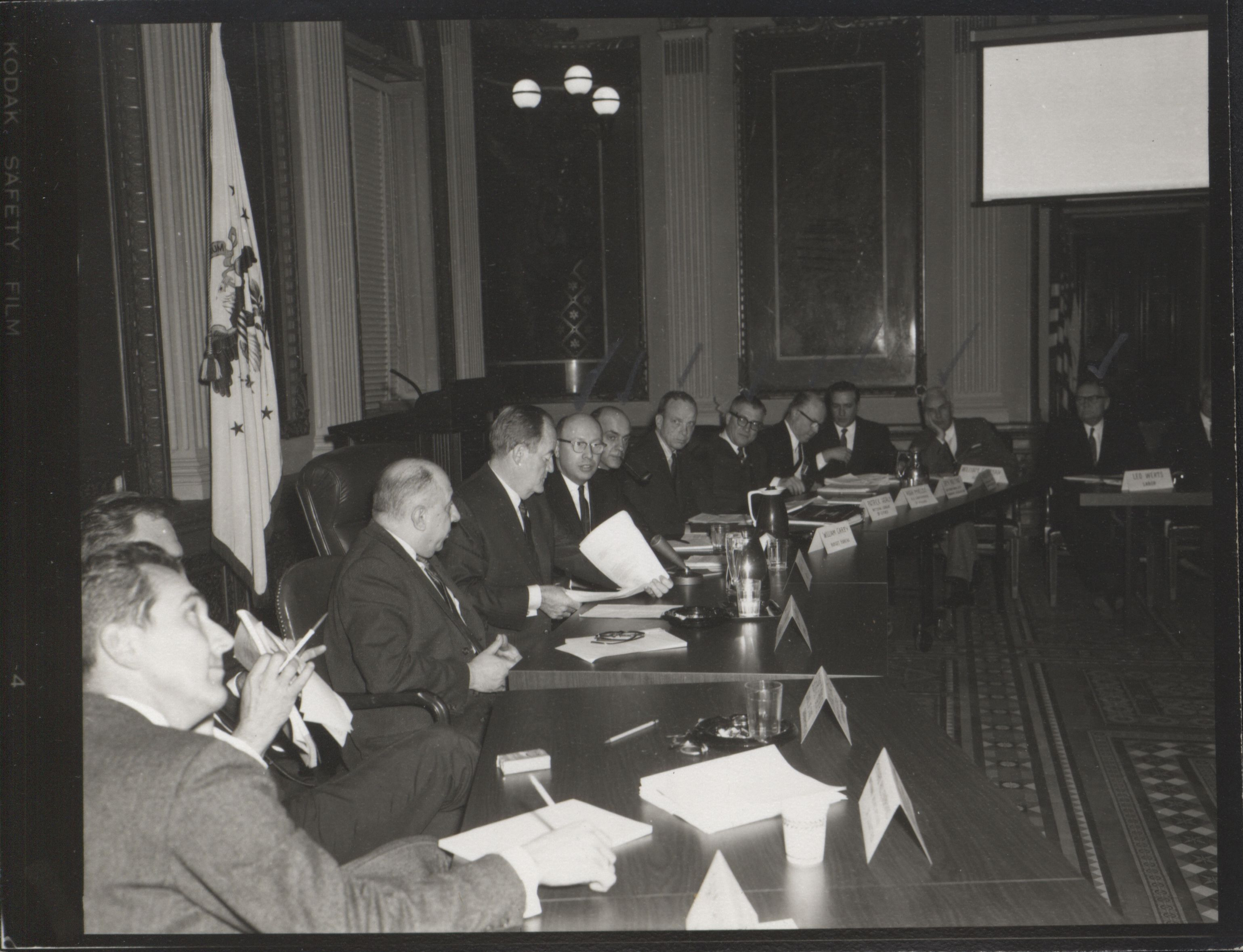 - Photograph of Dwight Ink with others sitting around tables at the Indian Treaty Room