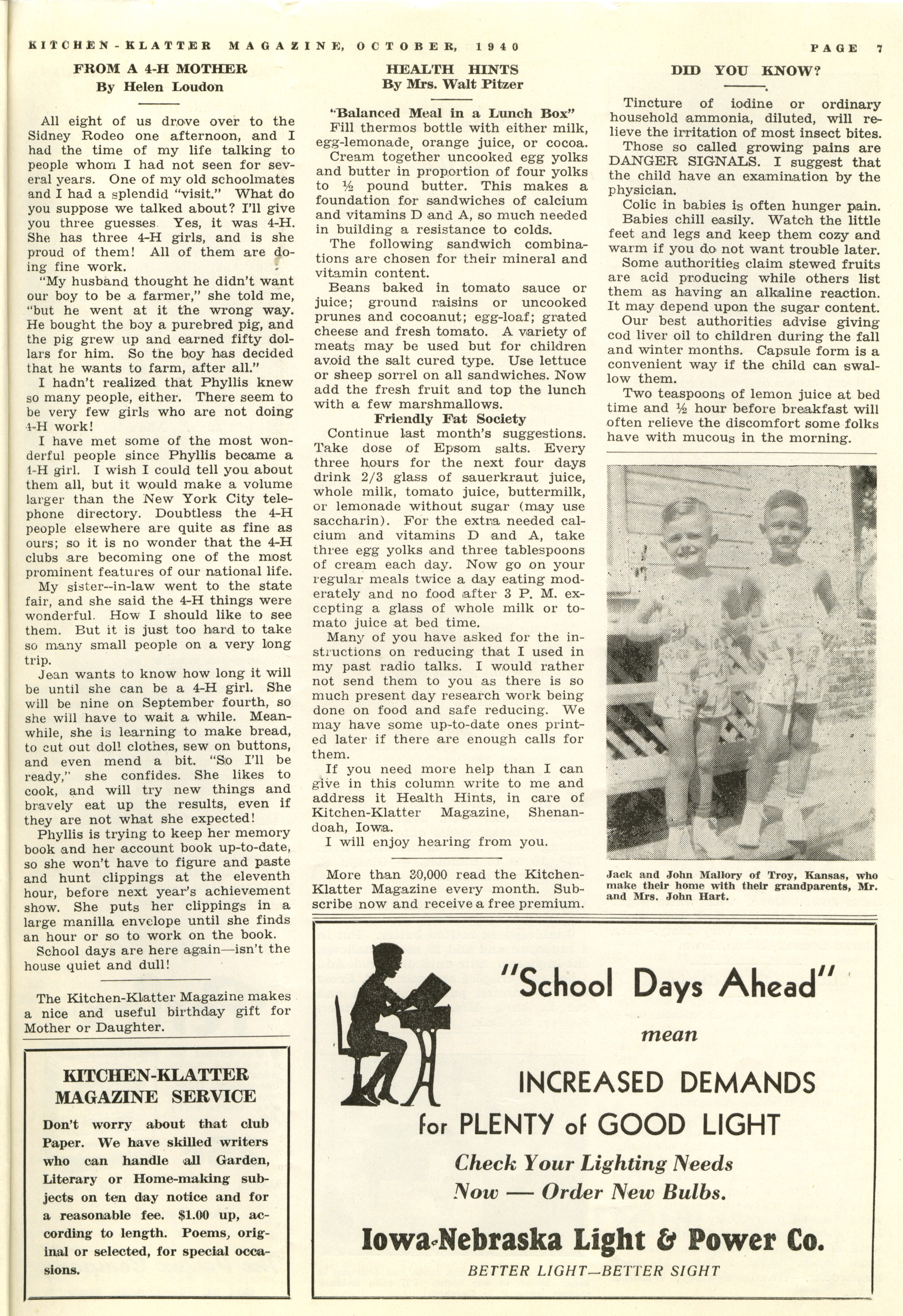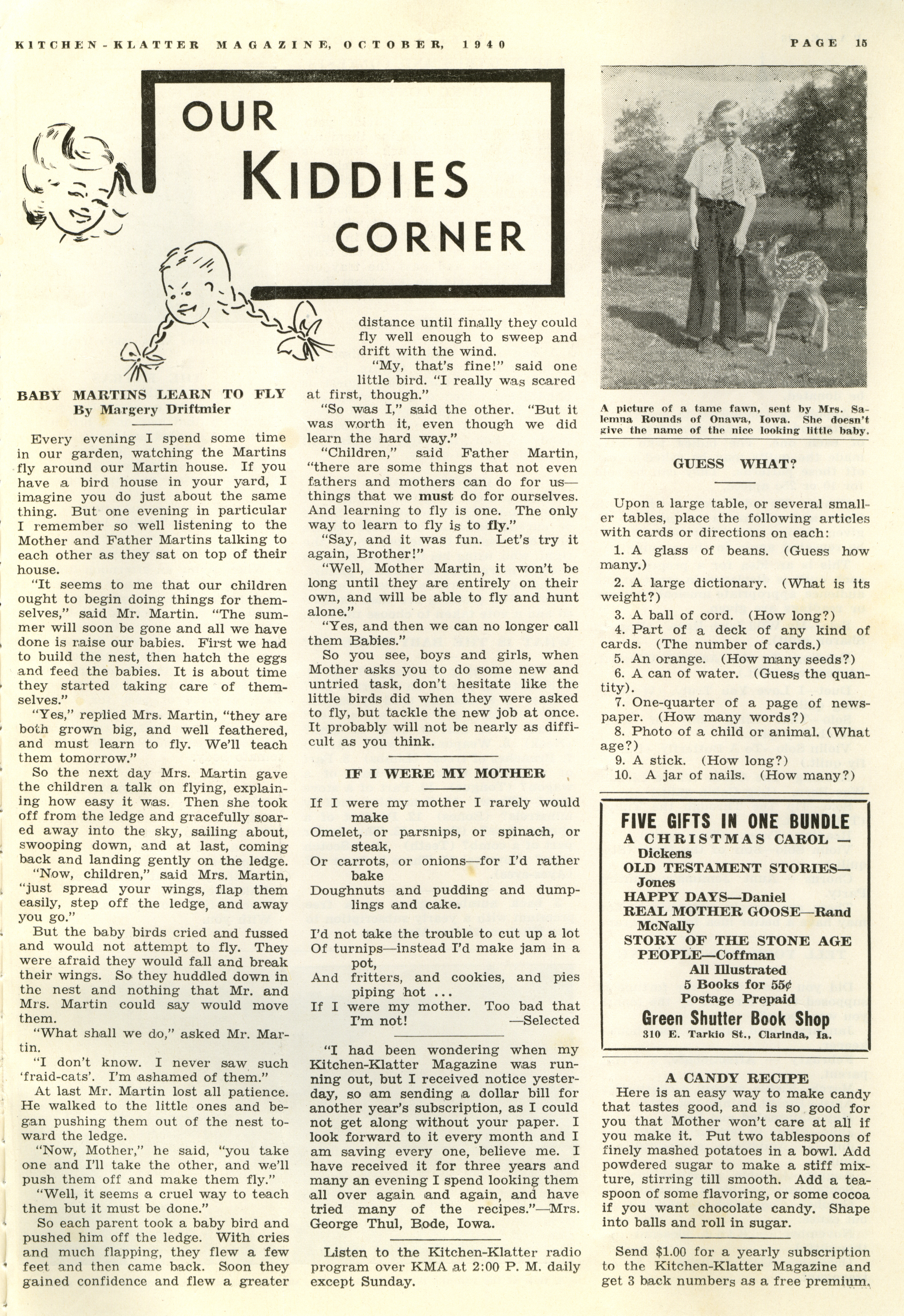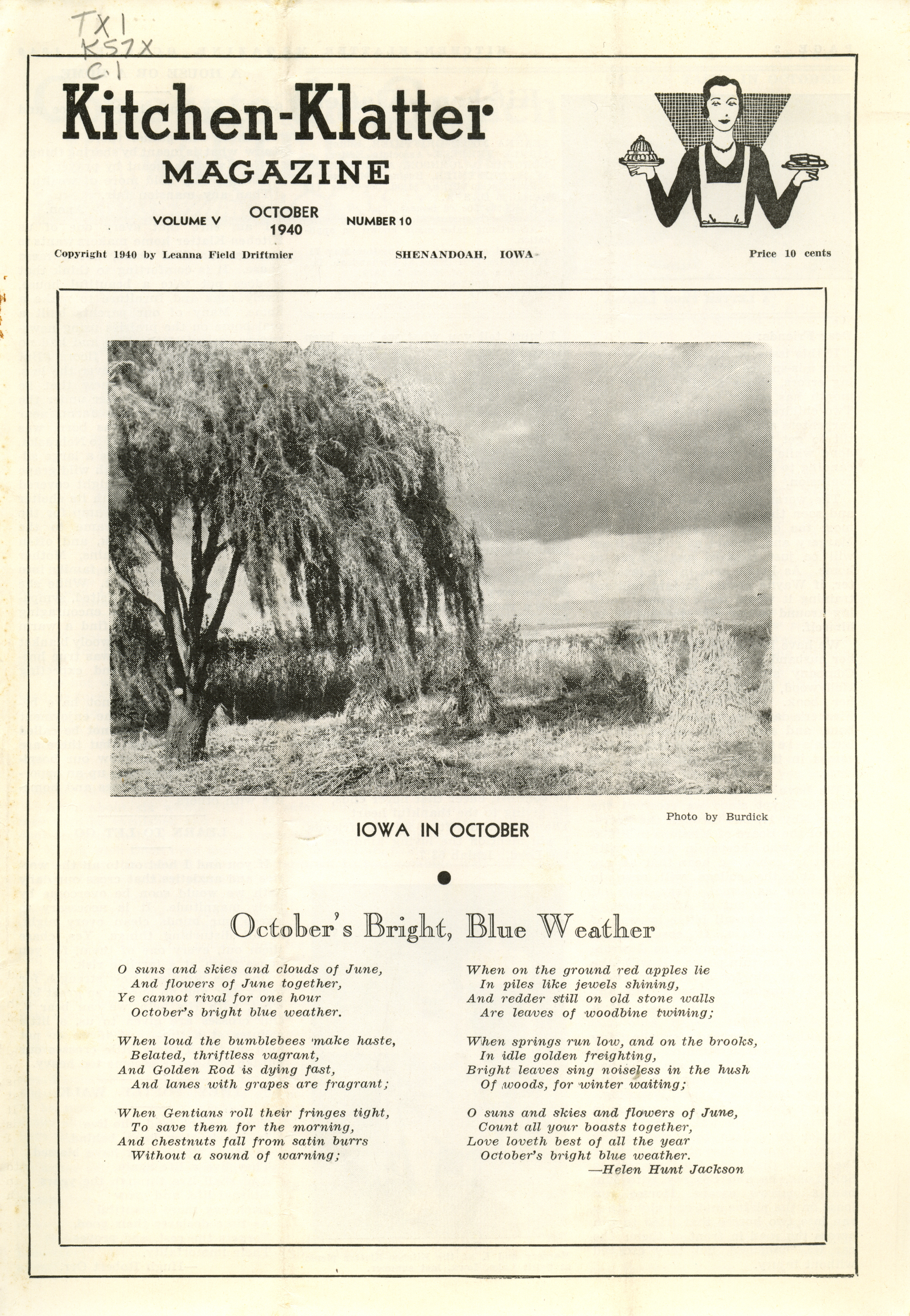 - "Kitchen-Klatter v. 05, n. 10, 1940", Kitchen-Klatter Magazine Issues, Iowa State University Library Digital Collections