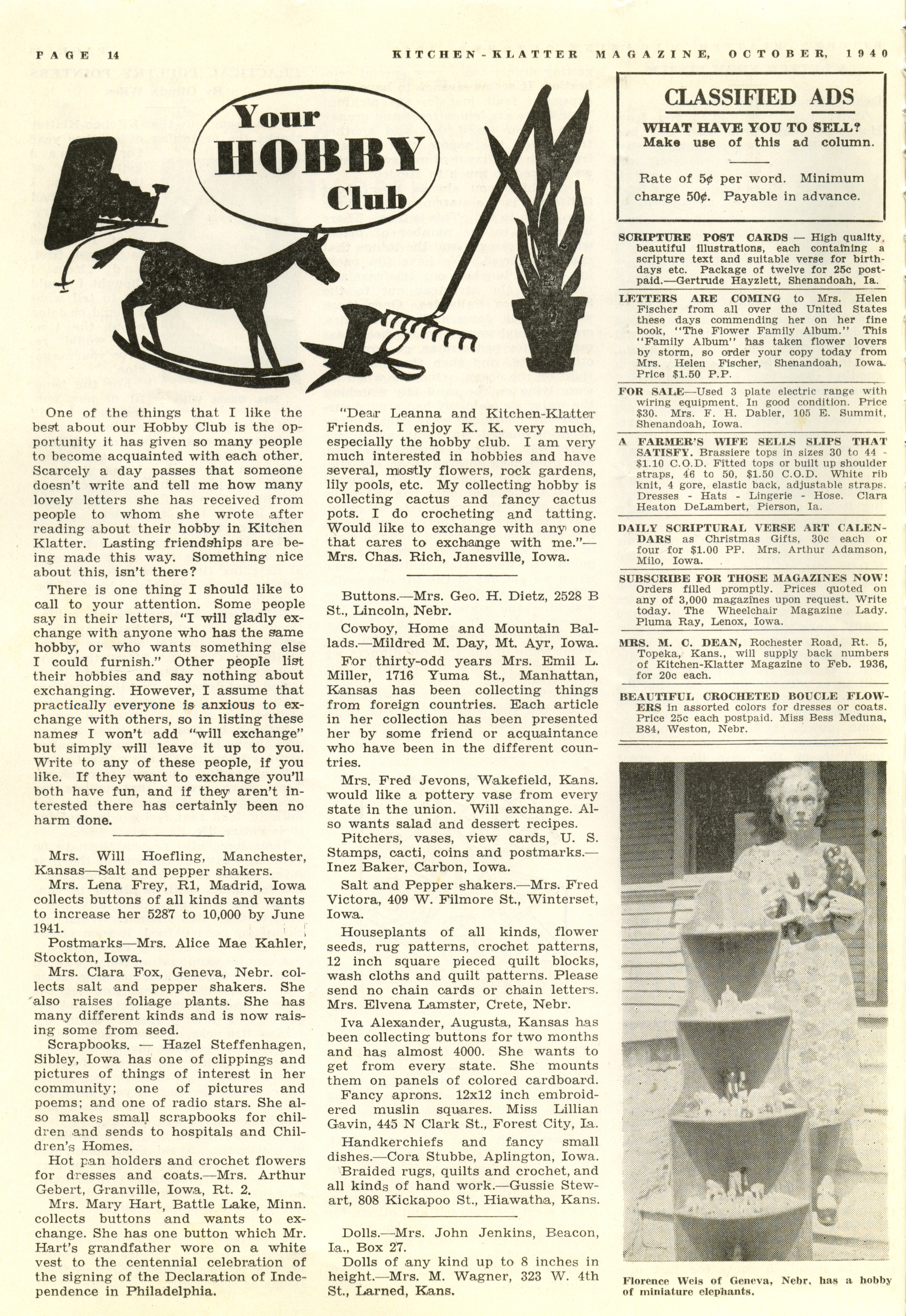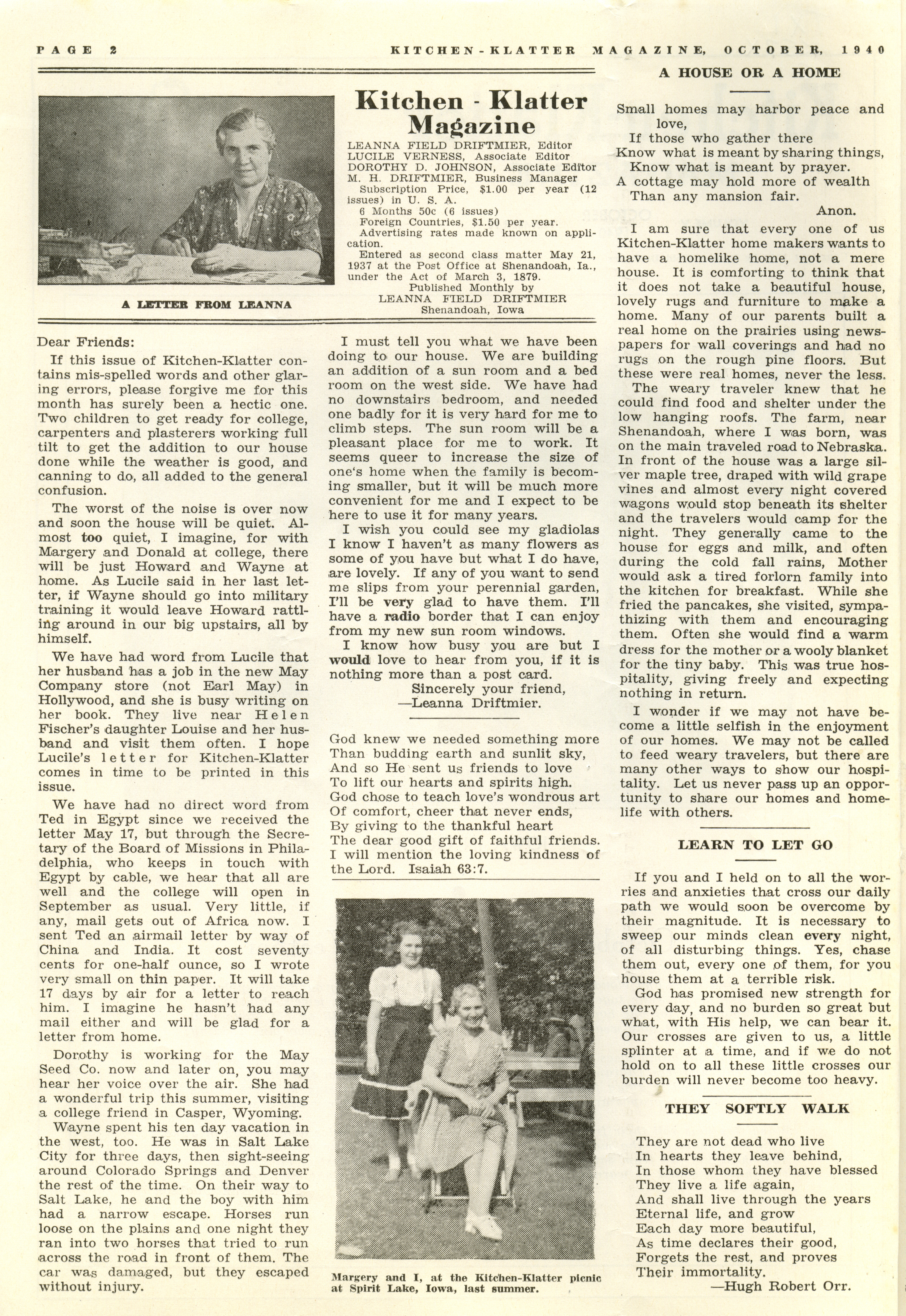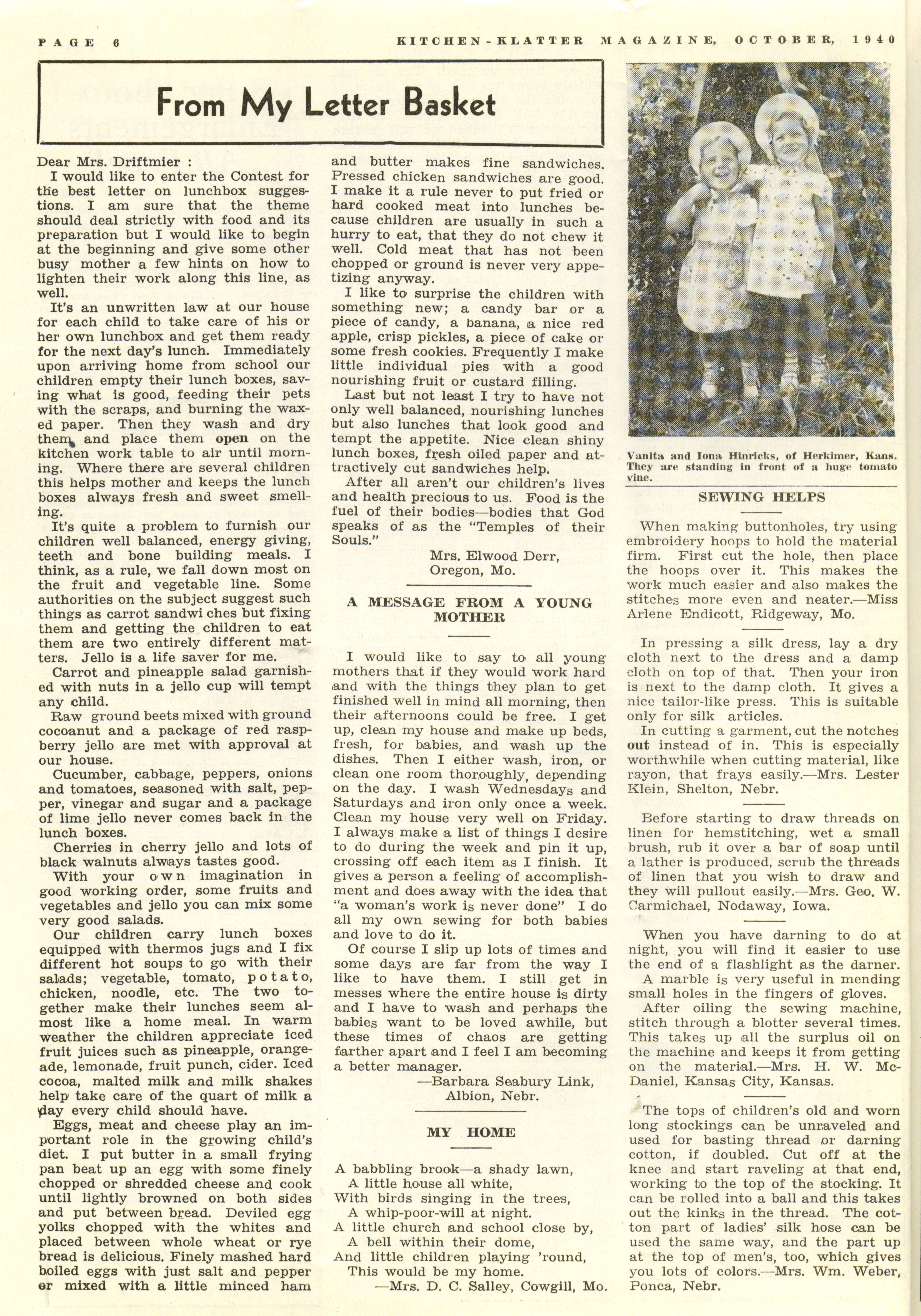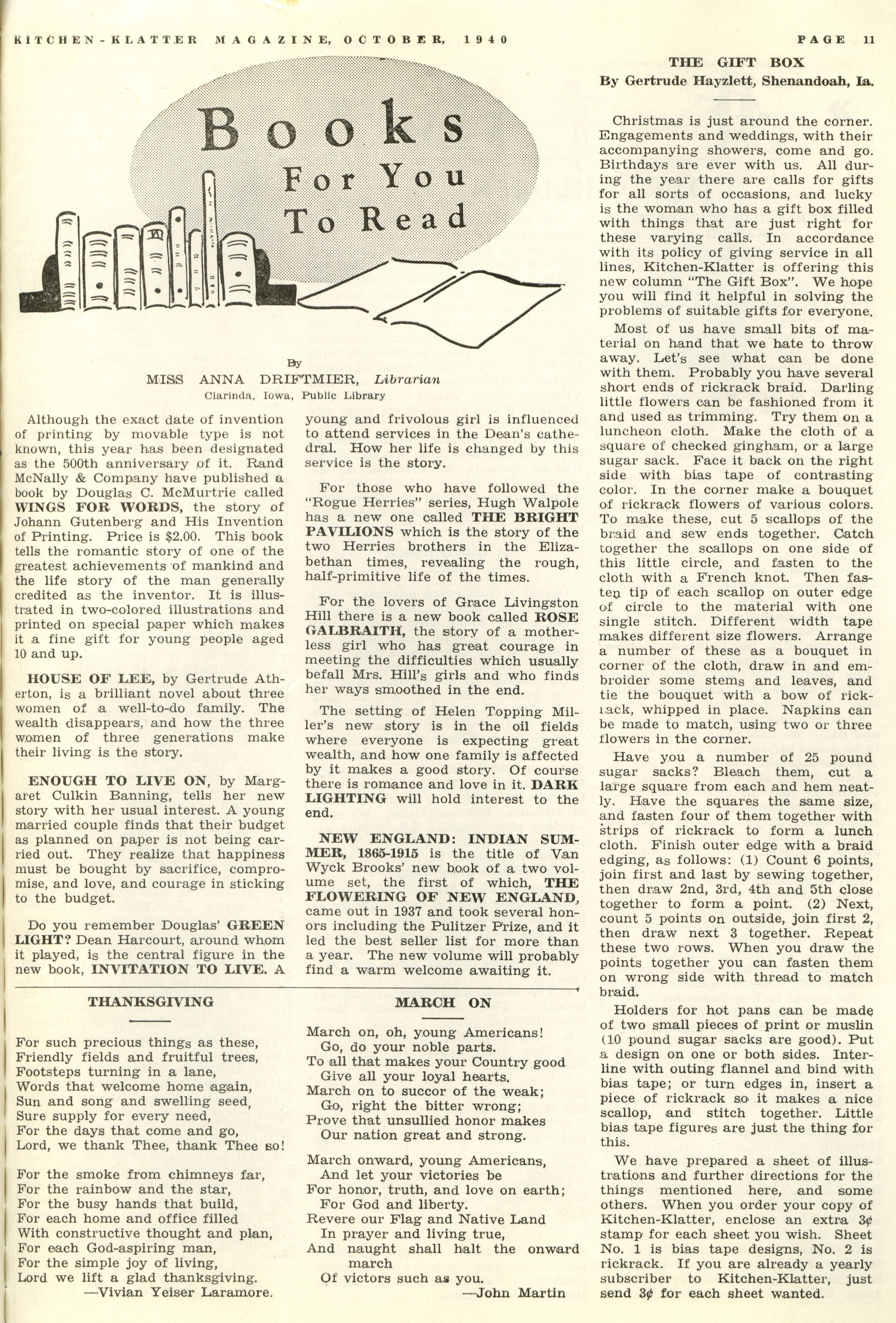 - "Kitchen-Klatter v. 05, n. 10, 1940", Kitchen-Klatter Magazine Issues, Iowa State University Library Digital Collections