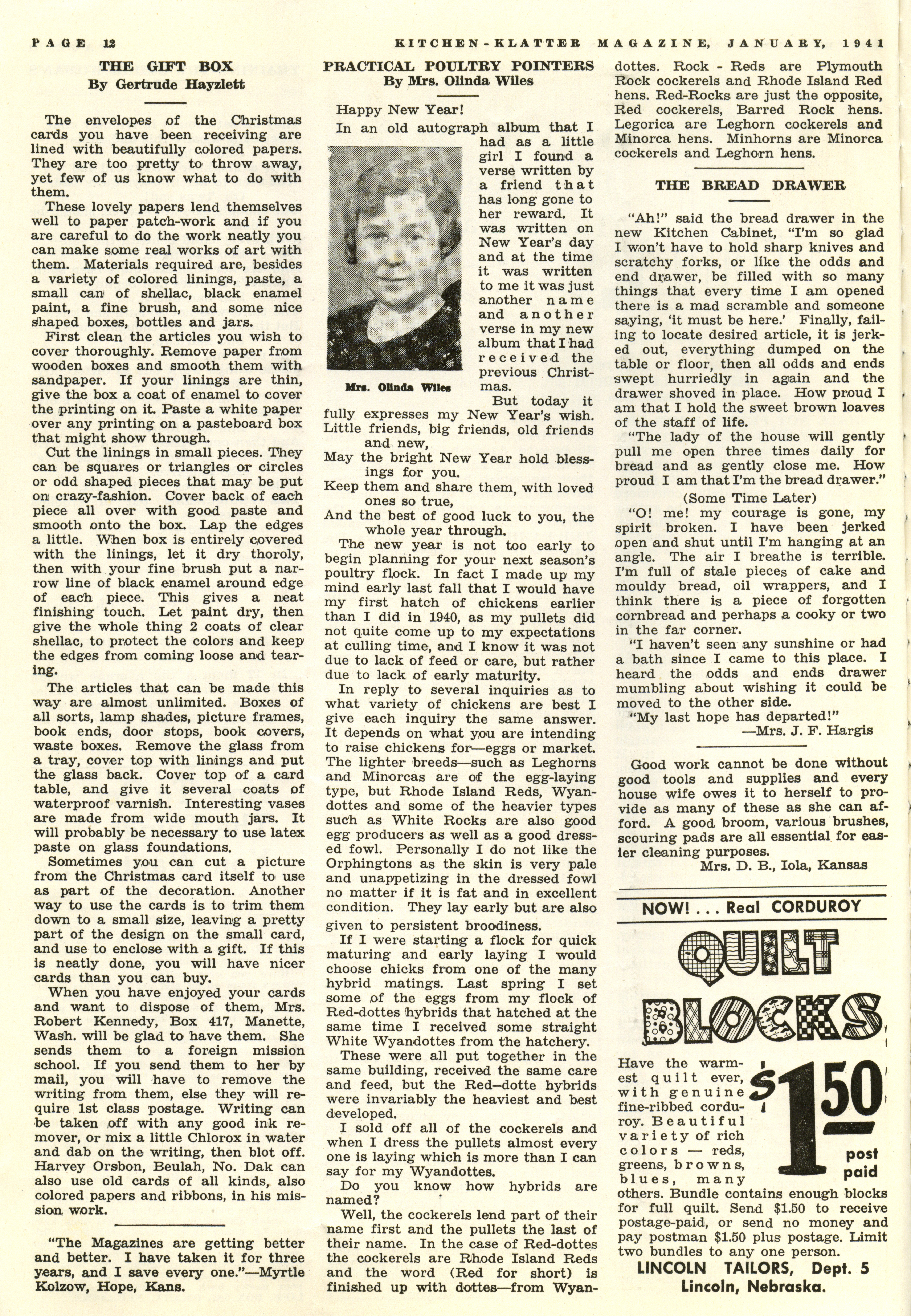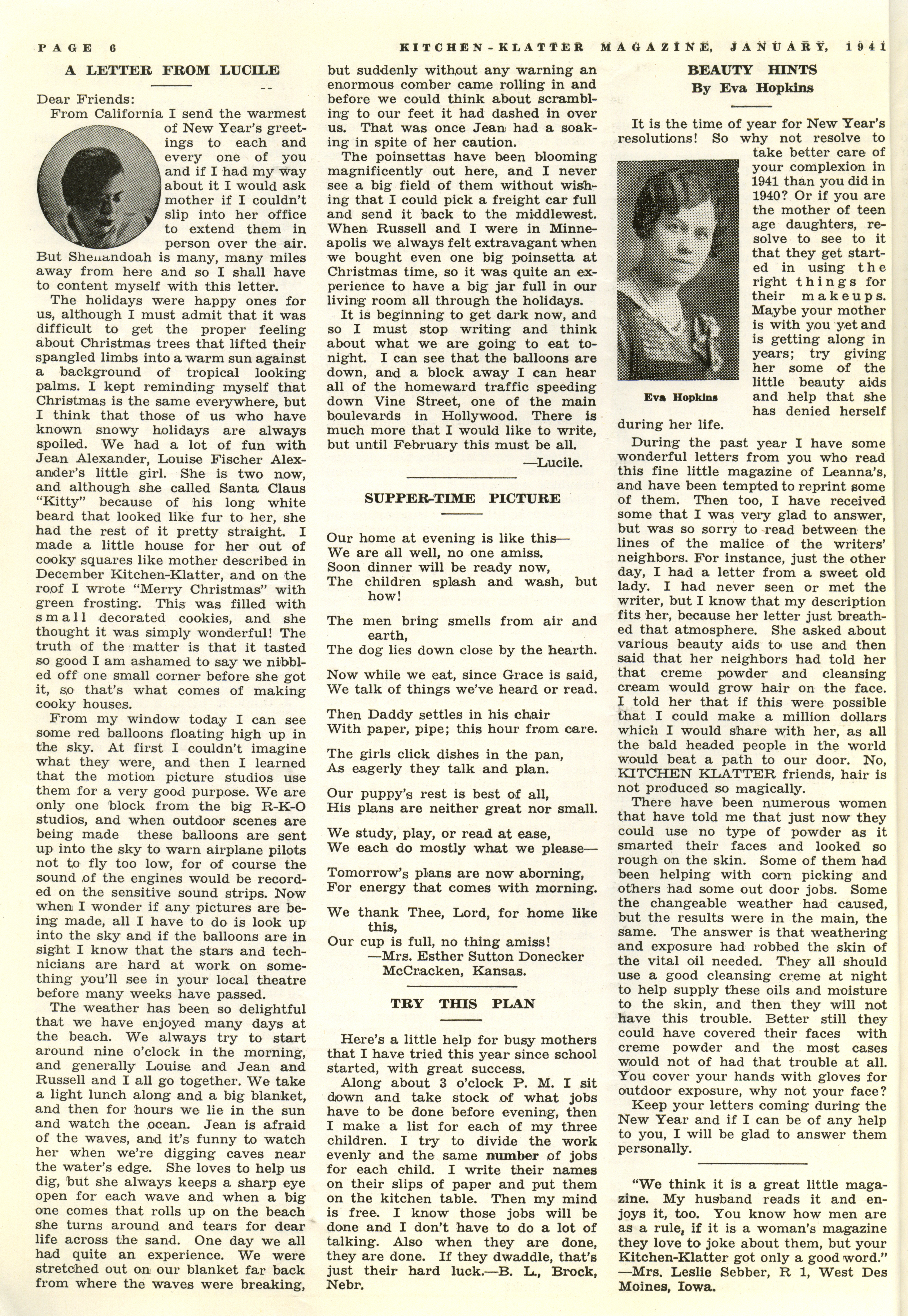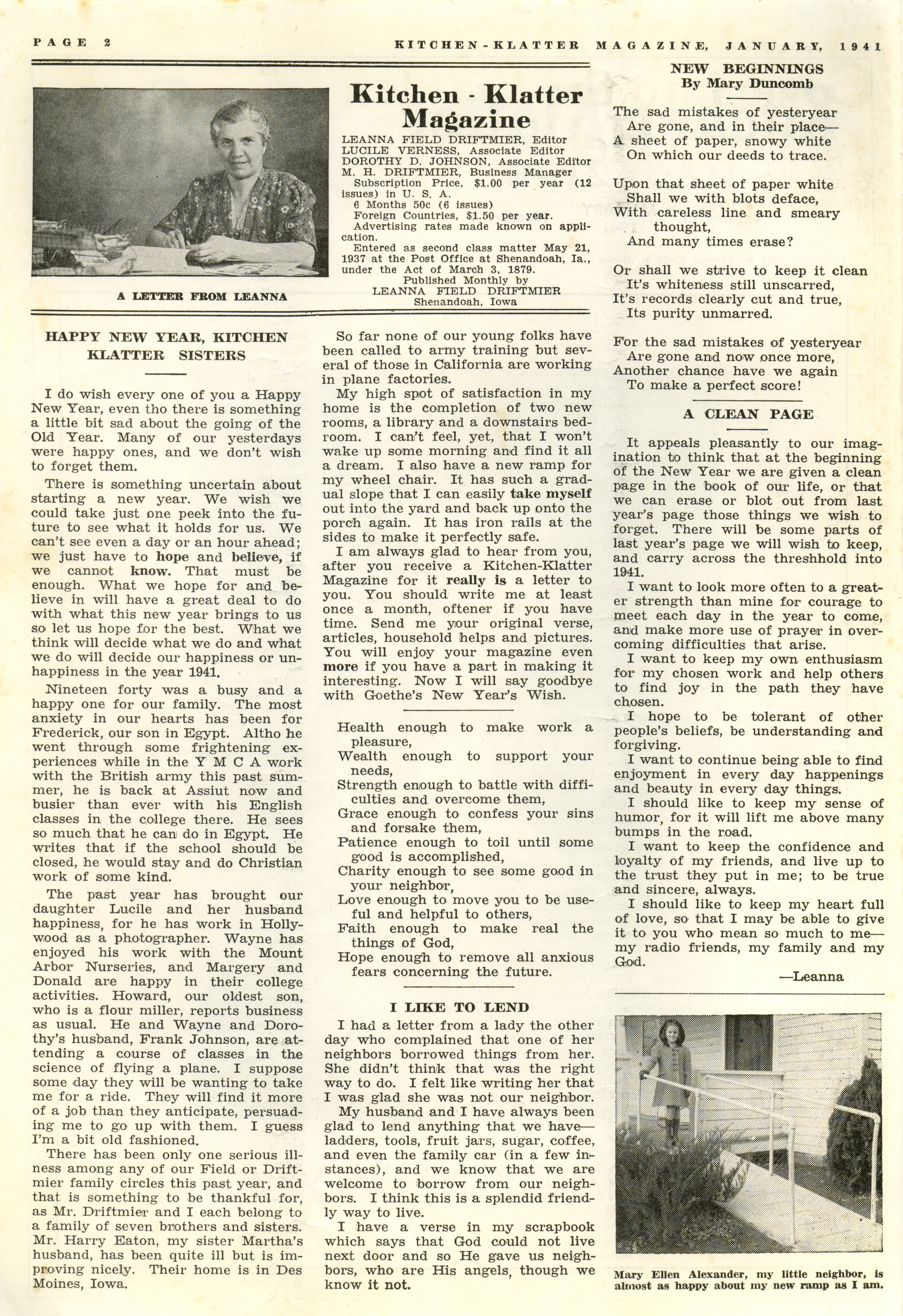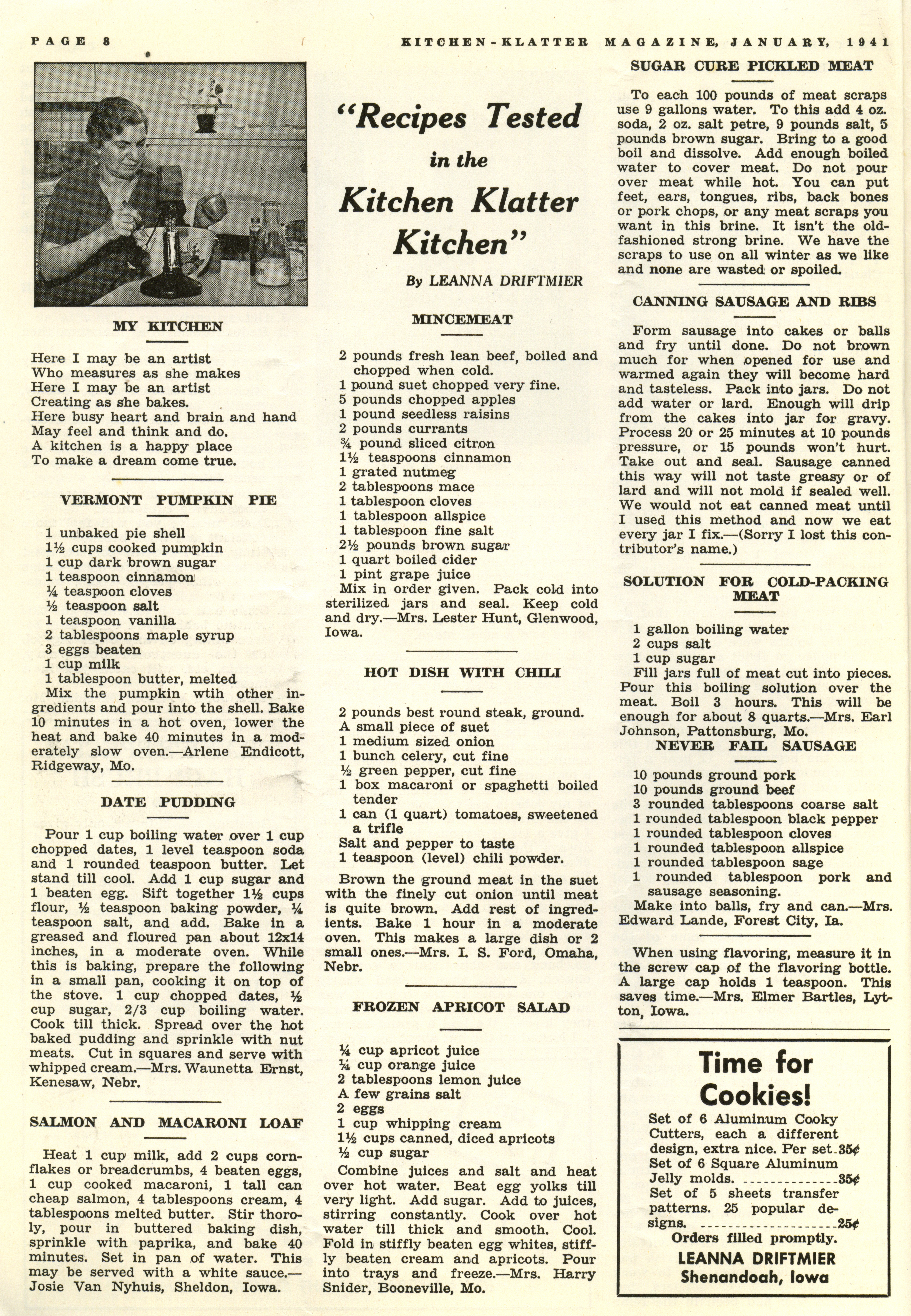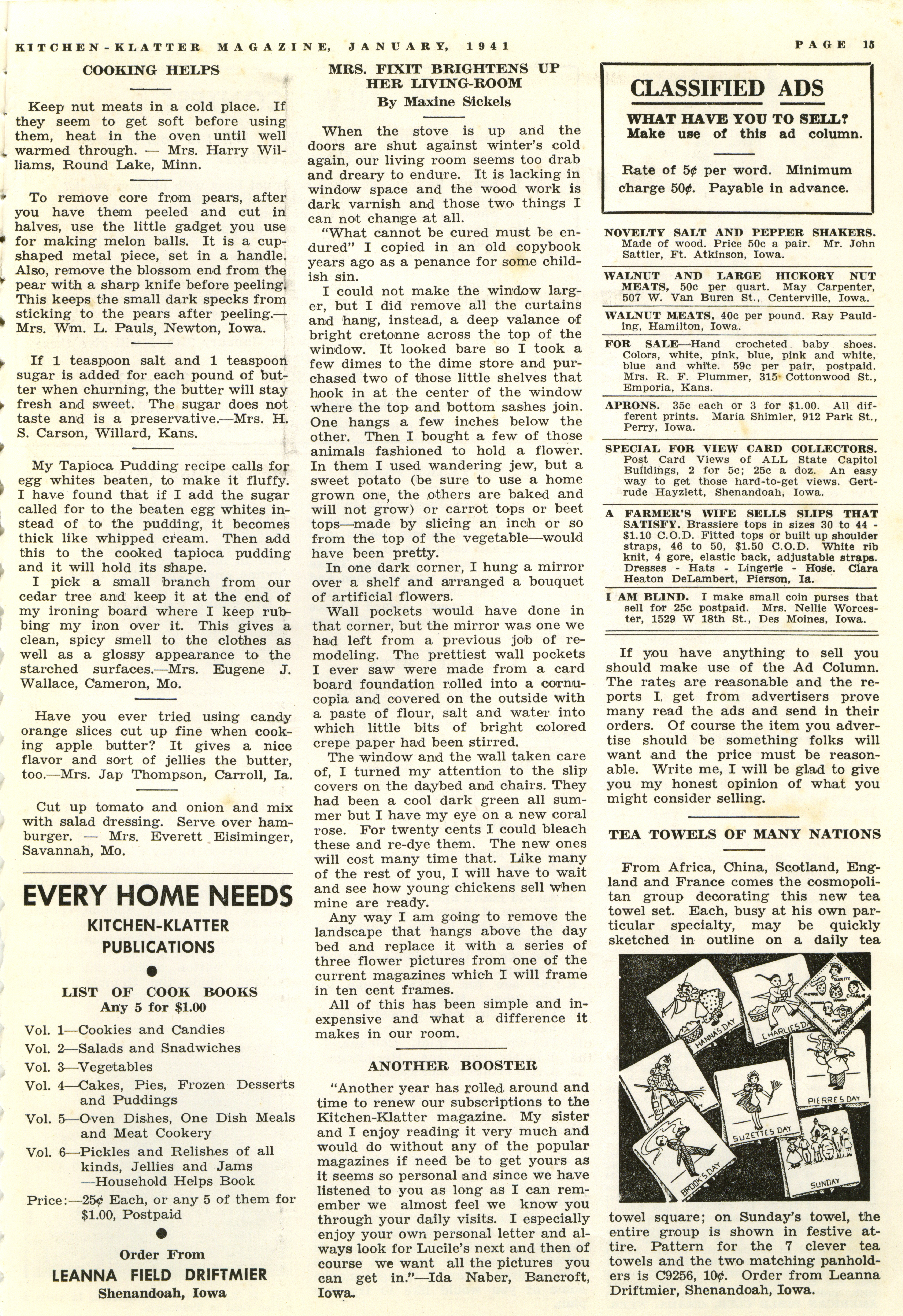 - "Kitchen-Klatter v. 06, n. 01, 1941", Kitchen-Klatter Magazine Issues, Iowa State University Library Digital Collections