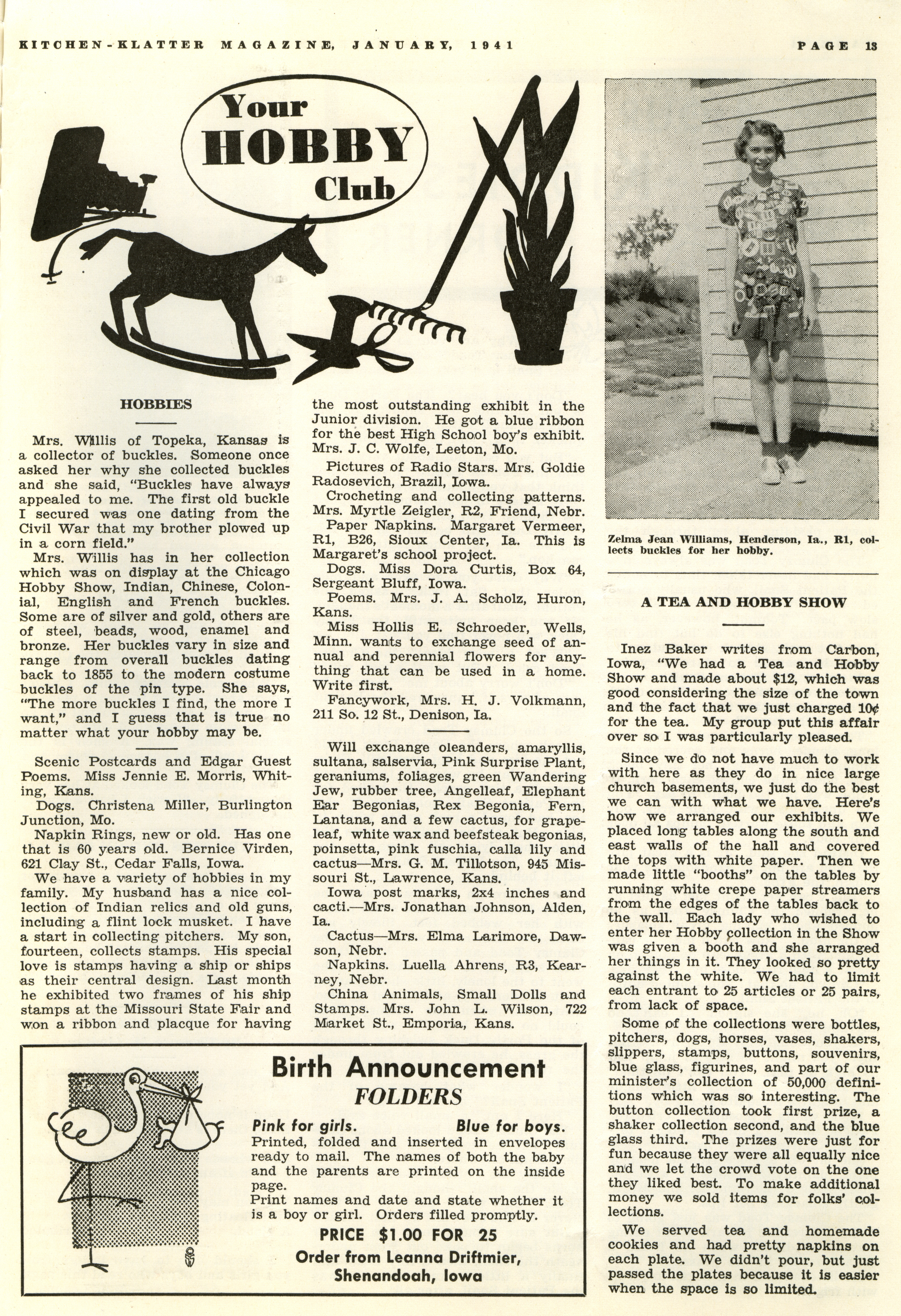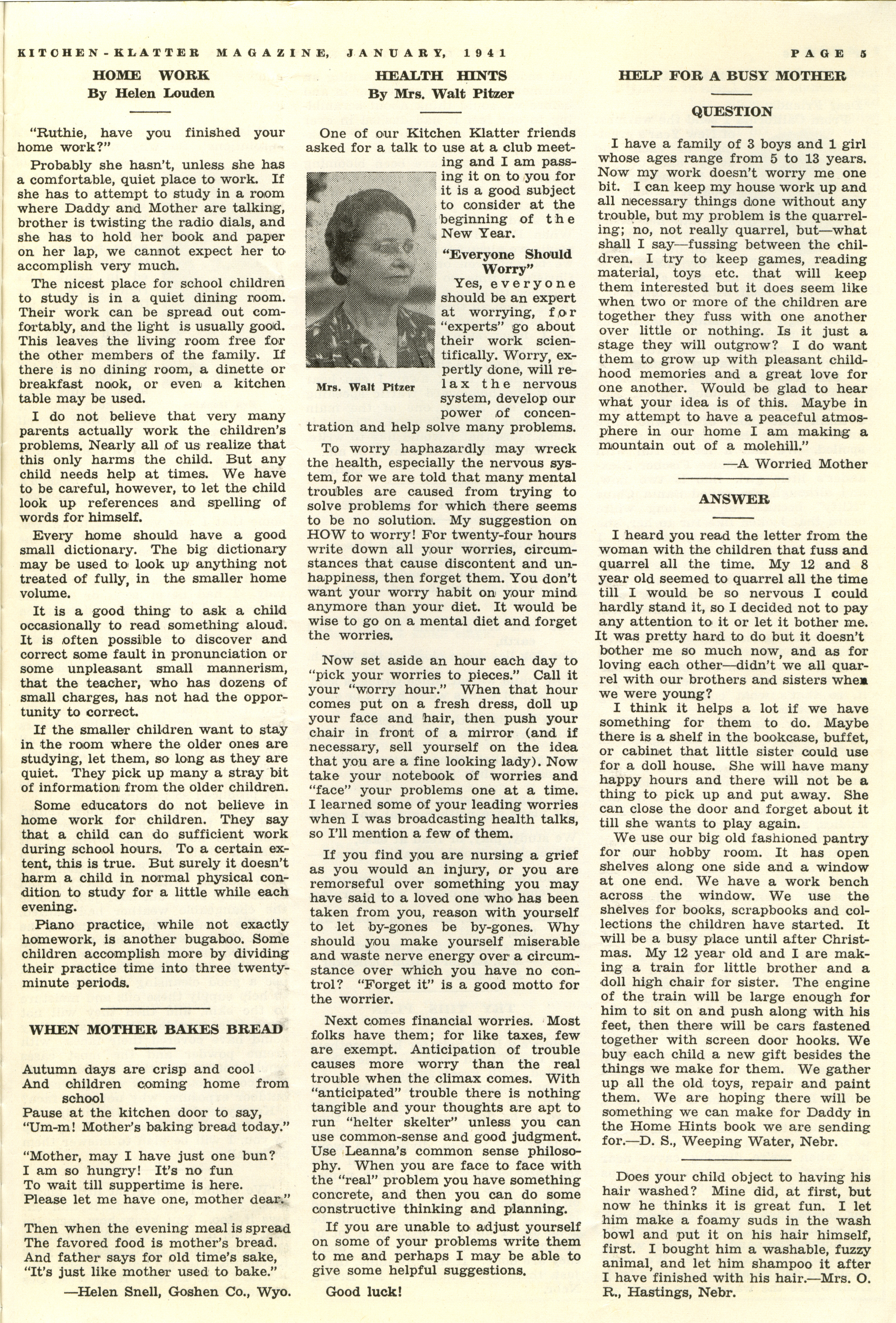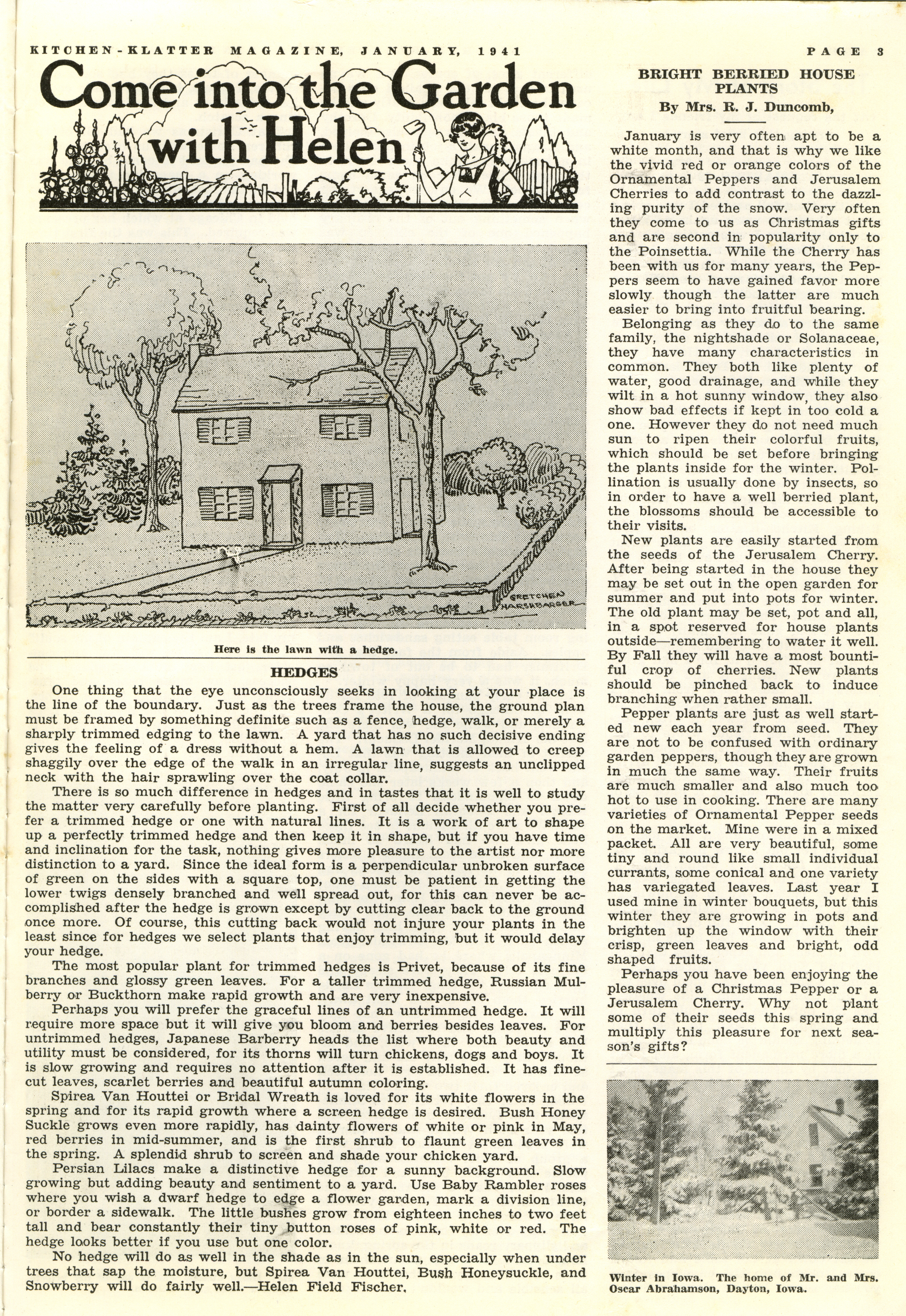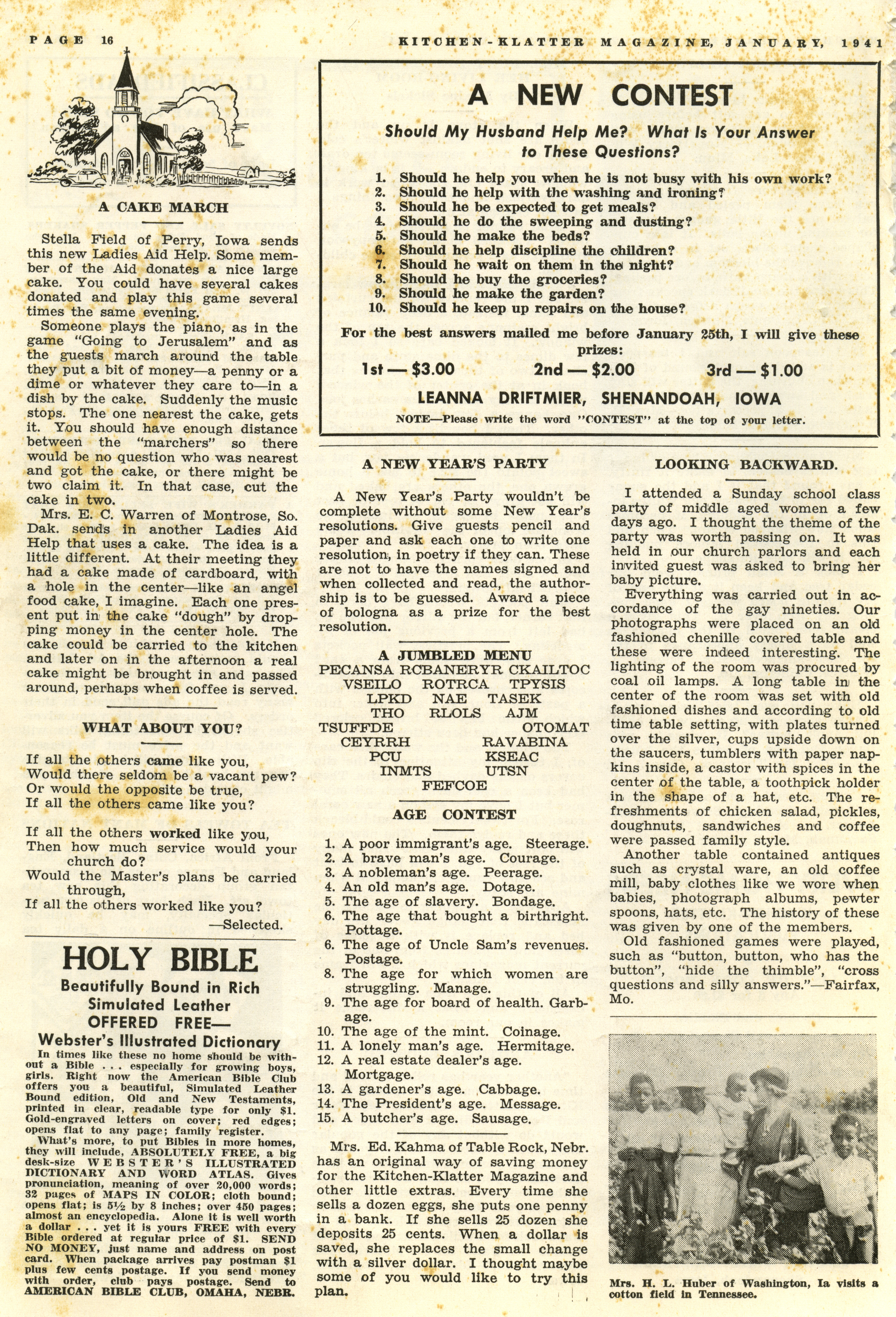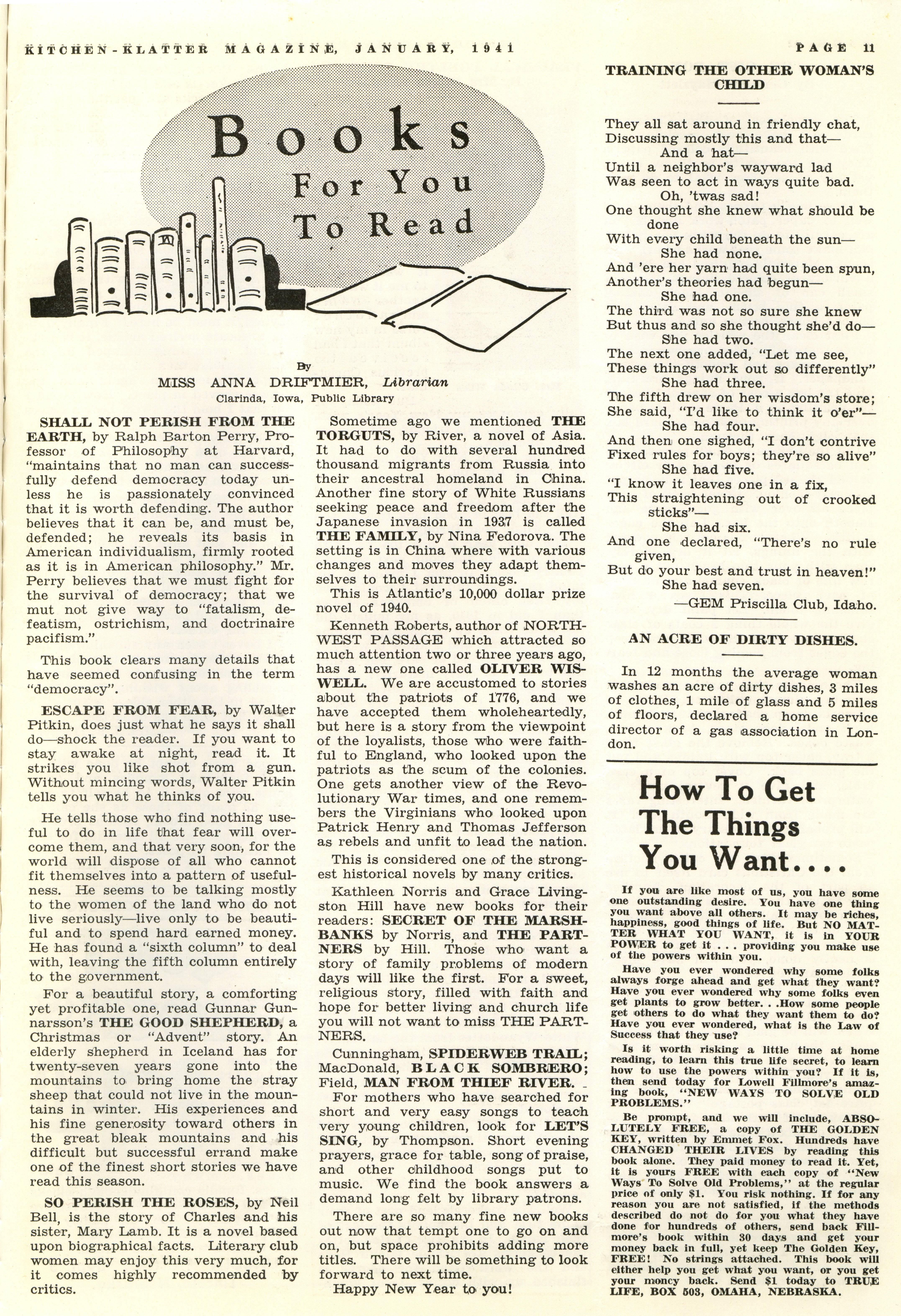 - "Kitchen-Klatter v. 06, n. 01, 1941", Kitchen-Klatter Magazine Issues, Iowa State University Library Digital Collections