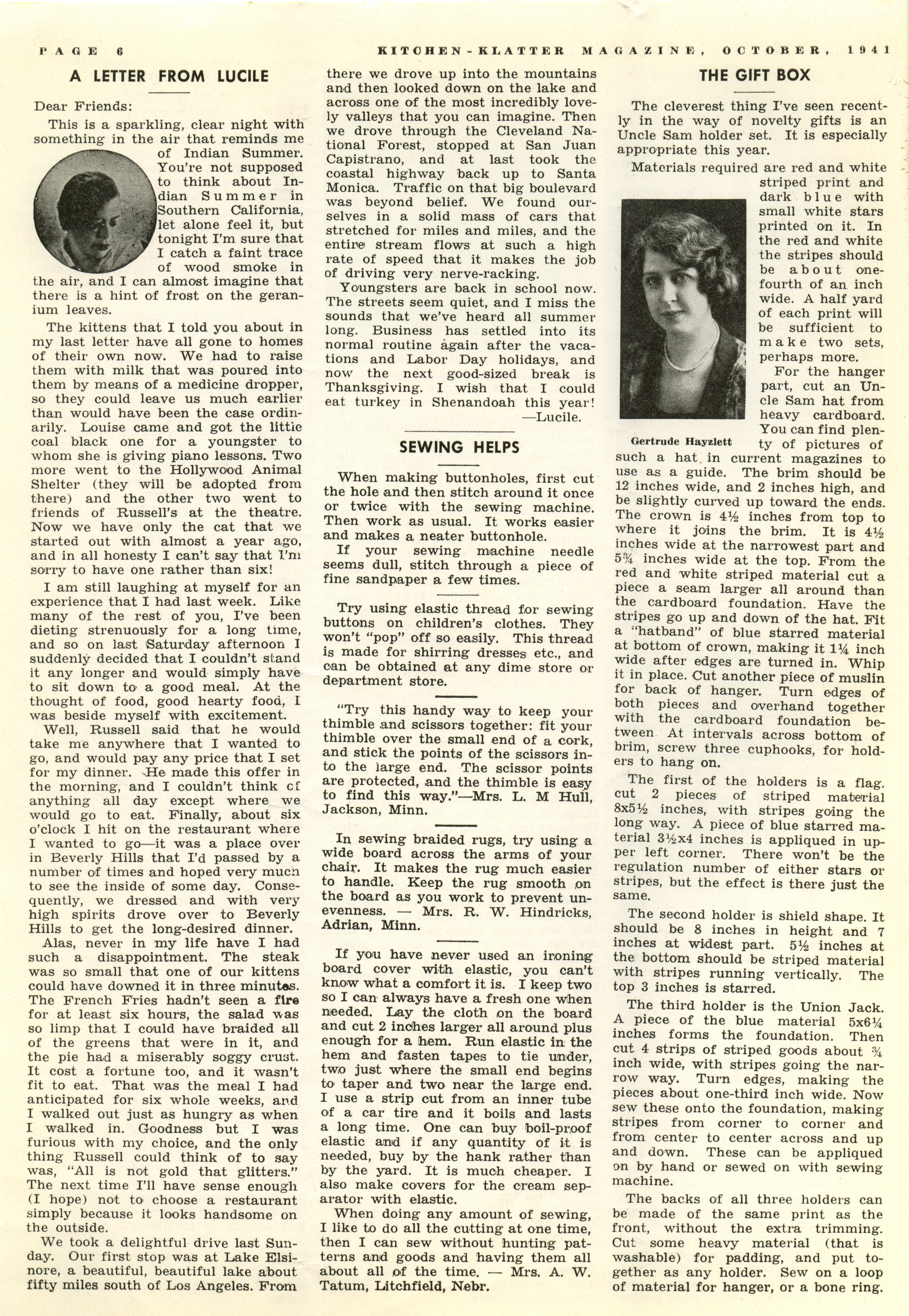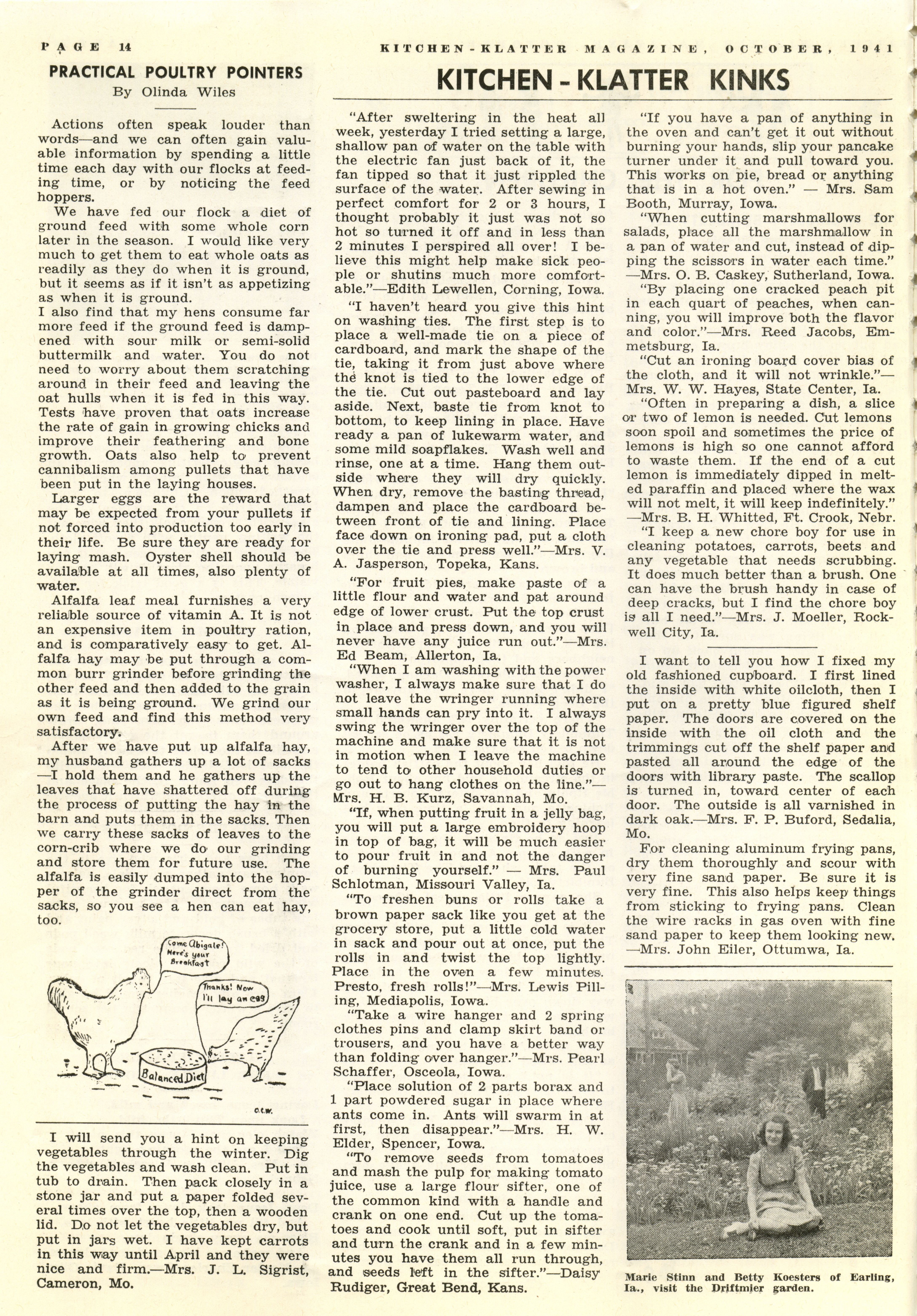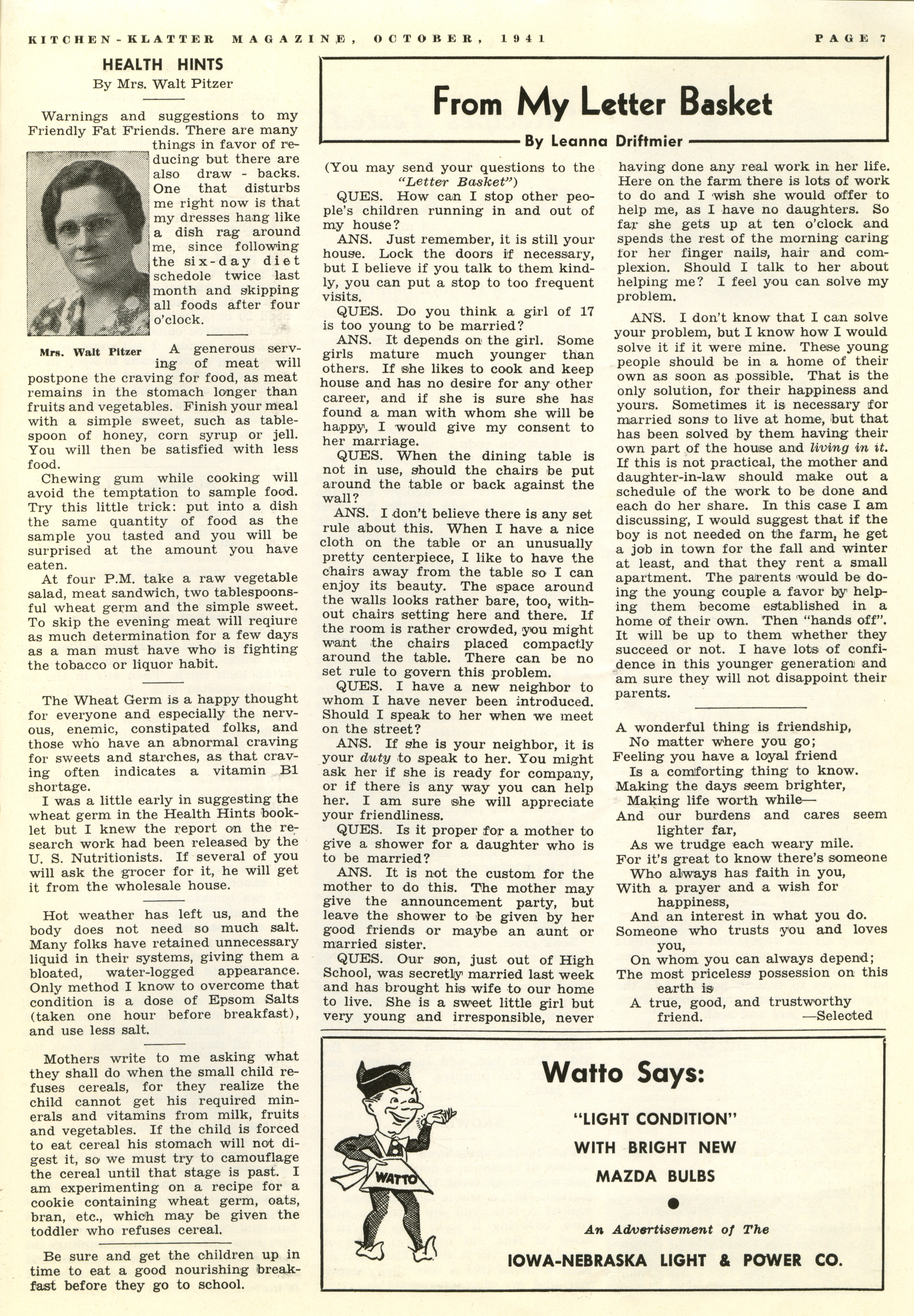 - "Kitchen-Klatter v. 06, n. 10, 1941", Kitchen-Klatter Magazine Issues, Iowa State University Library Digital Collections