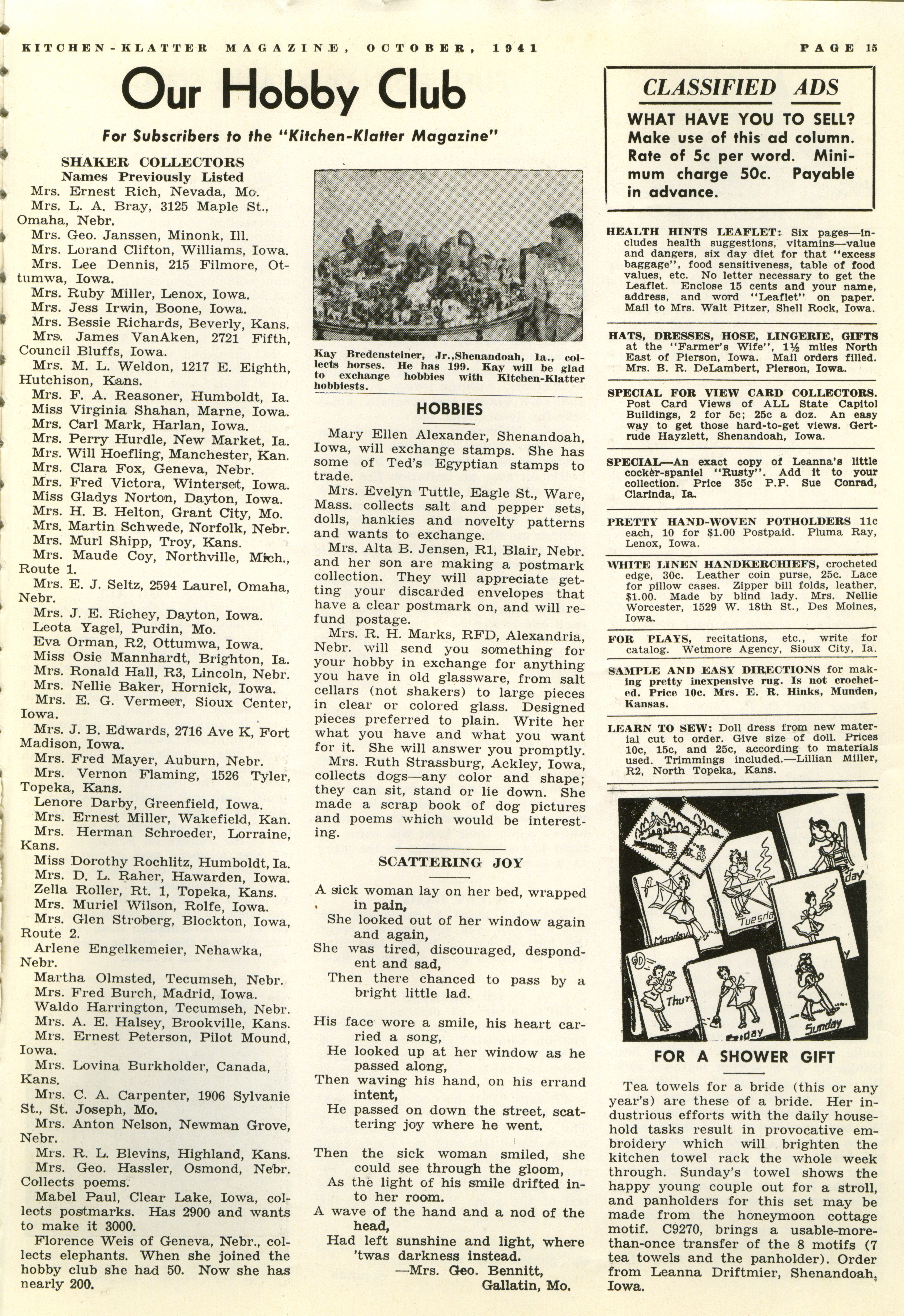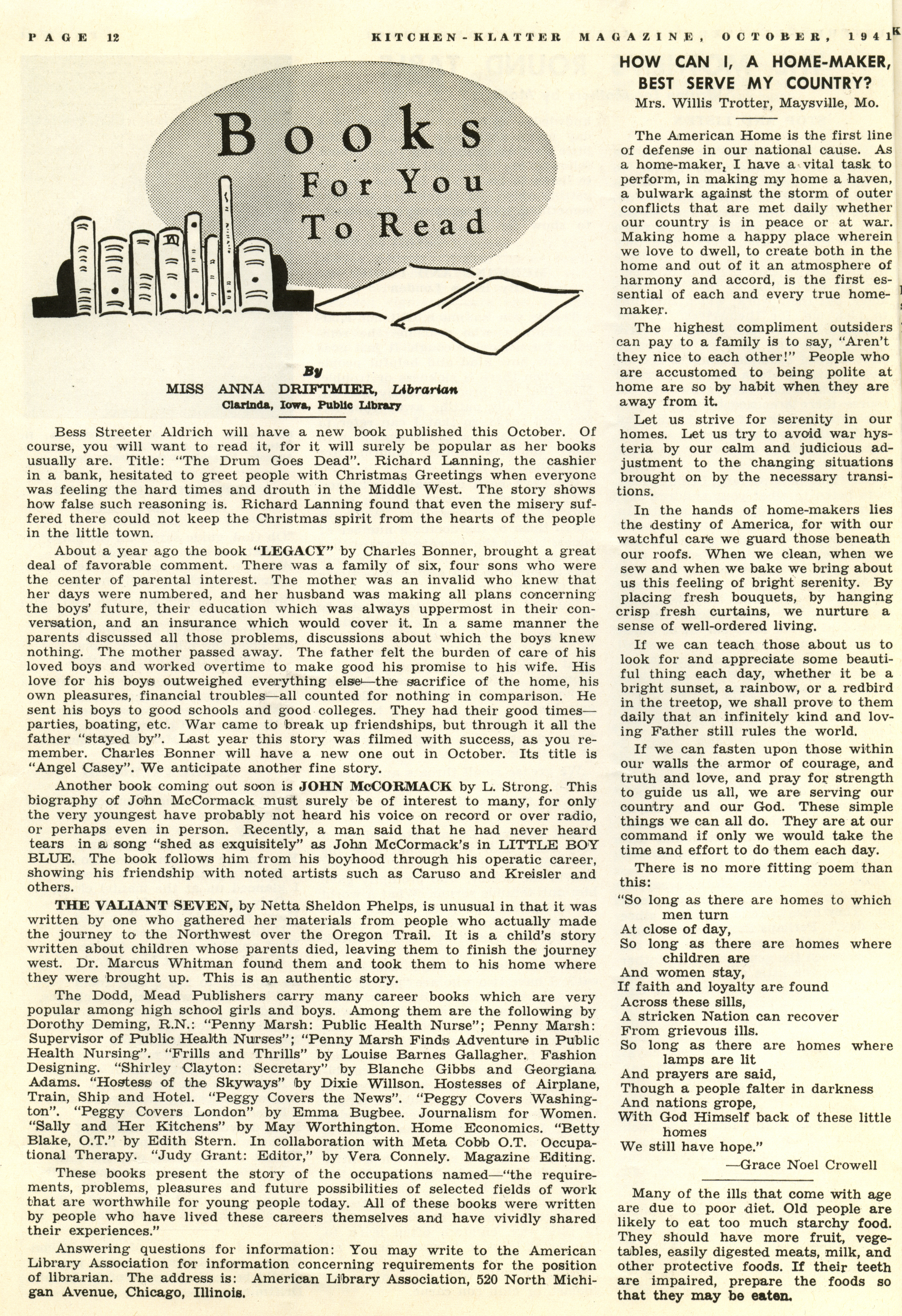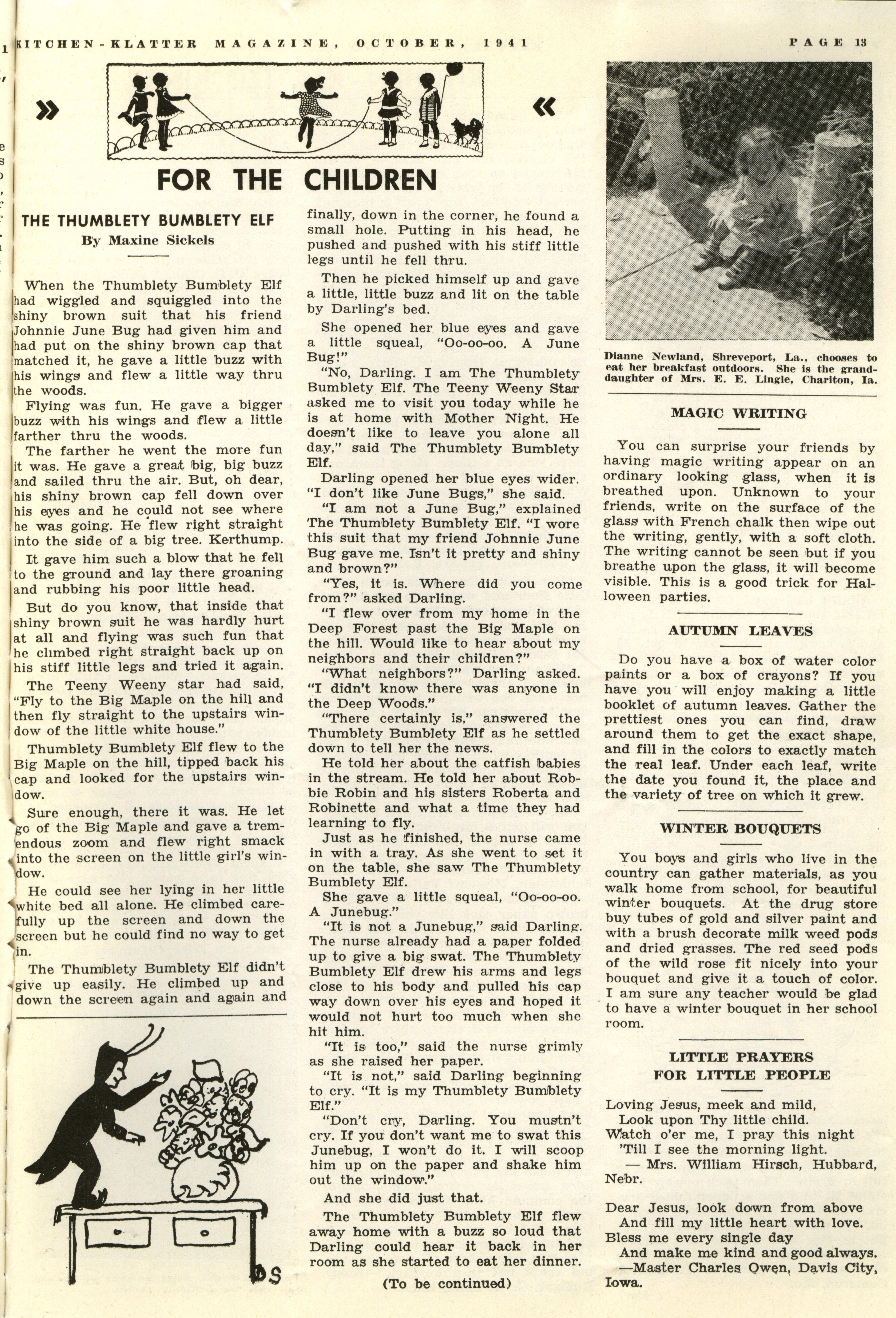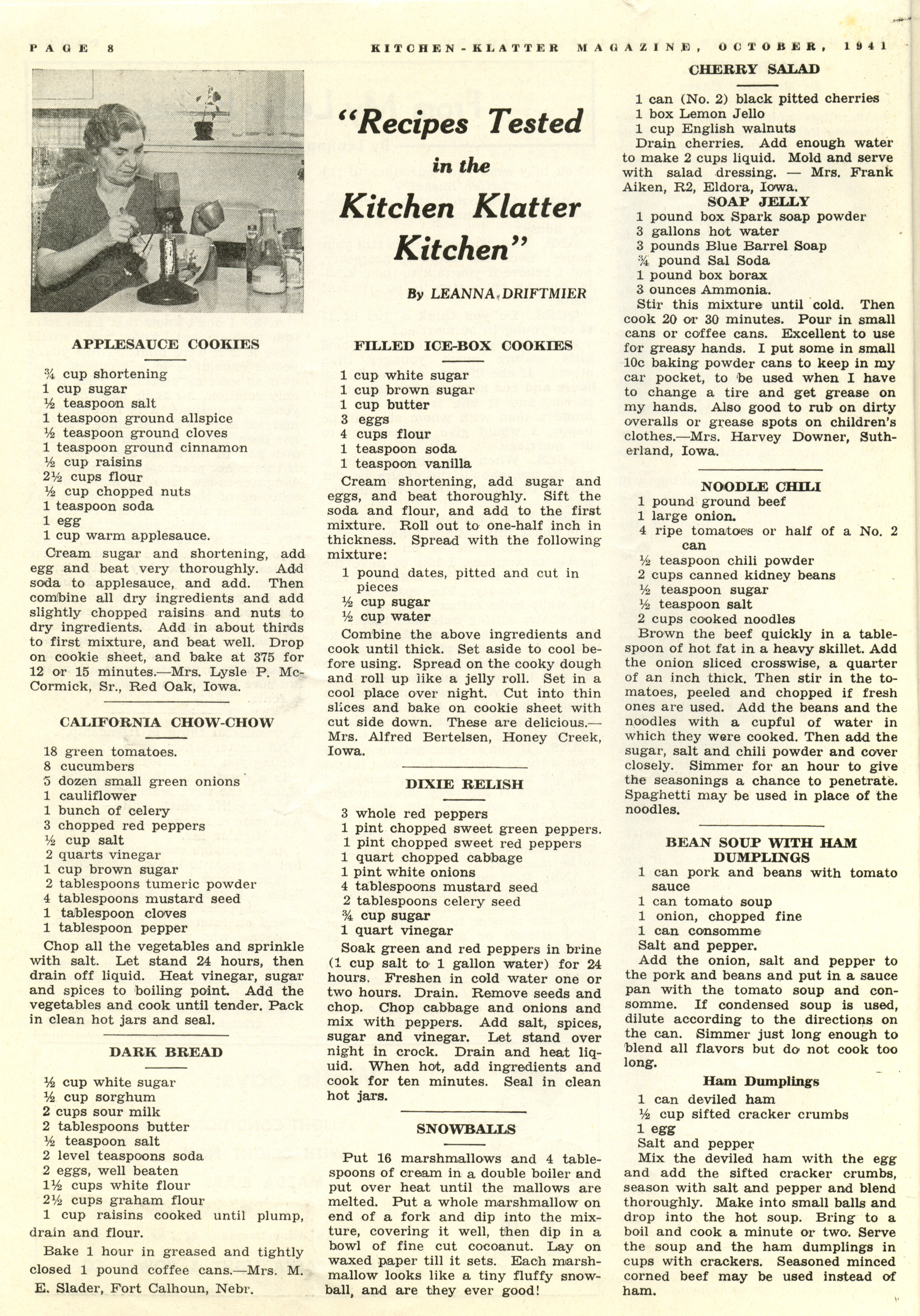 - "Kitchen-Klatter v. 06, n. 10, 1941", Kitchen-Klatter Magazine Issues, Iowa State University Library Digital Collections