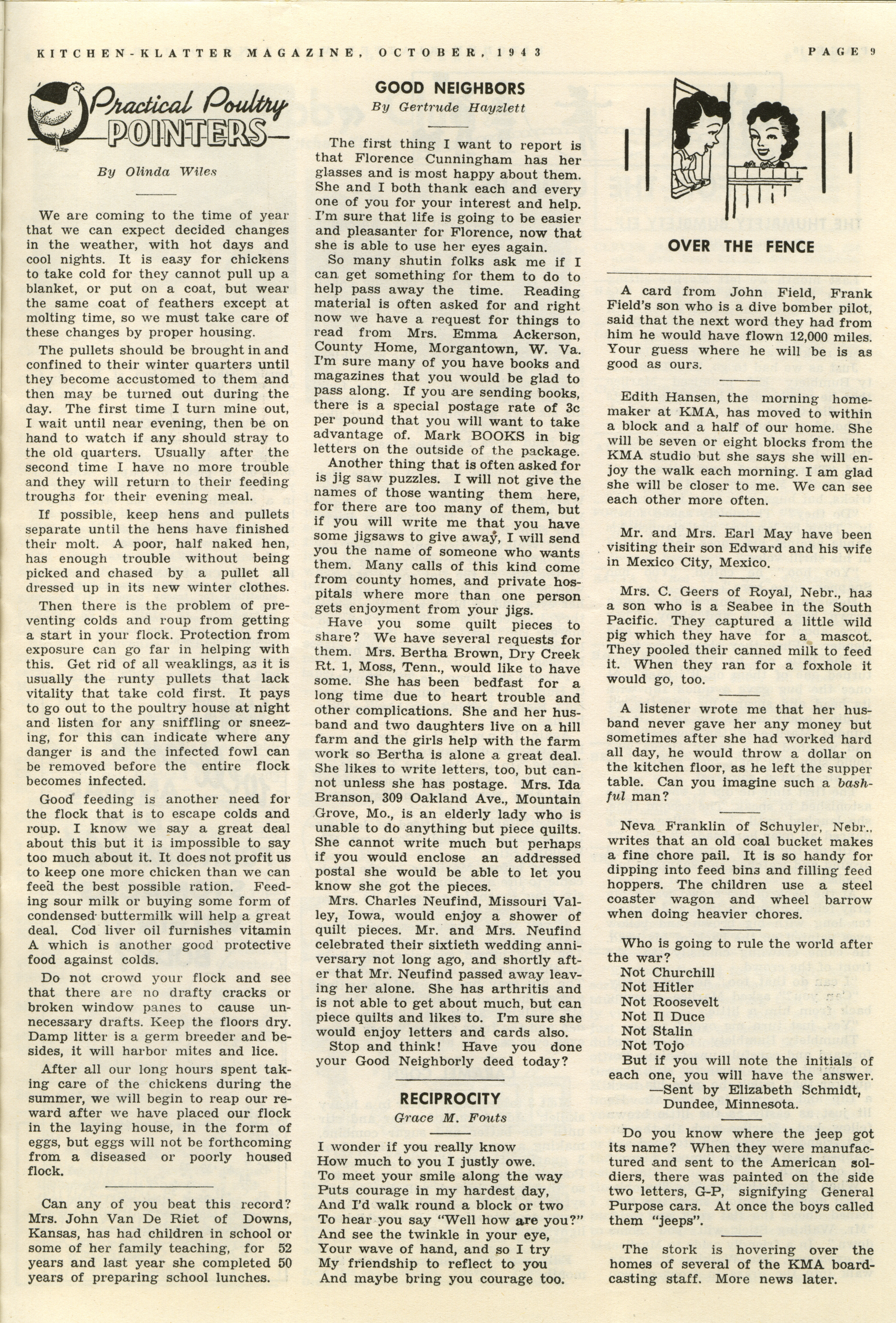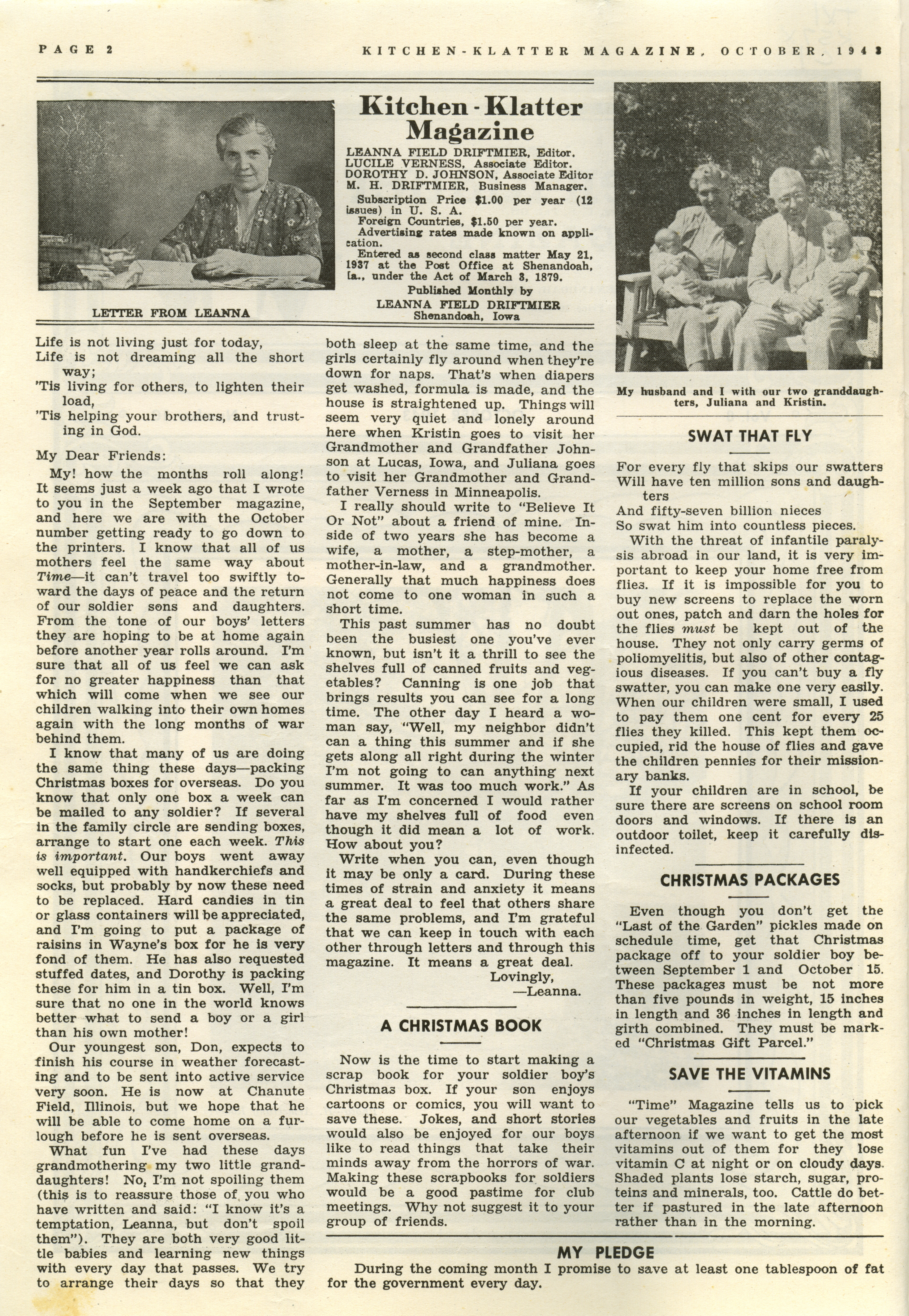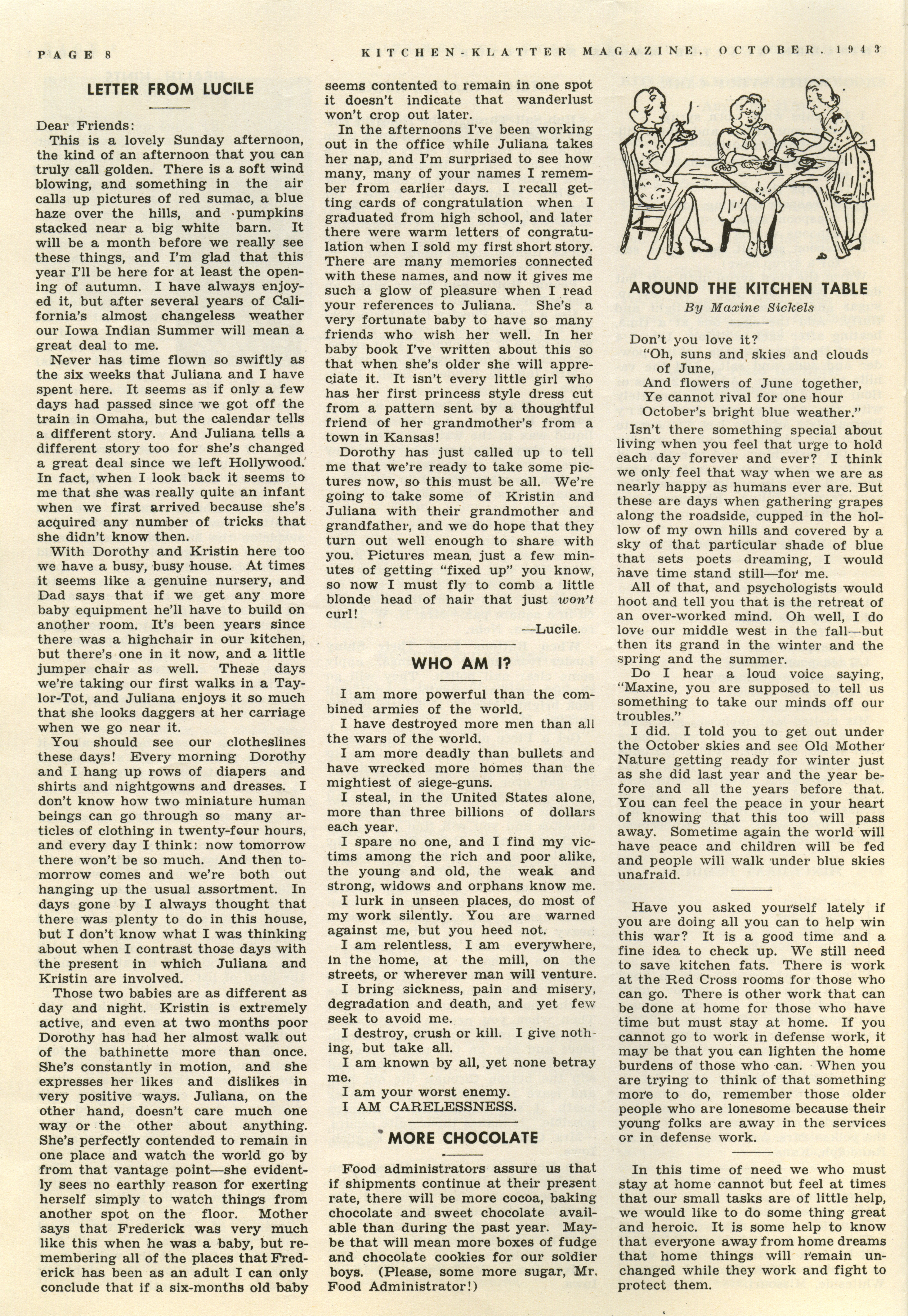 - "Kitchen-Klatter v. 08, n. 10, 1943", Kitchen-Klatter Magazine Issues, Iowa State University Library Digital Collections