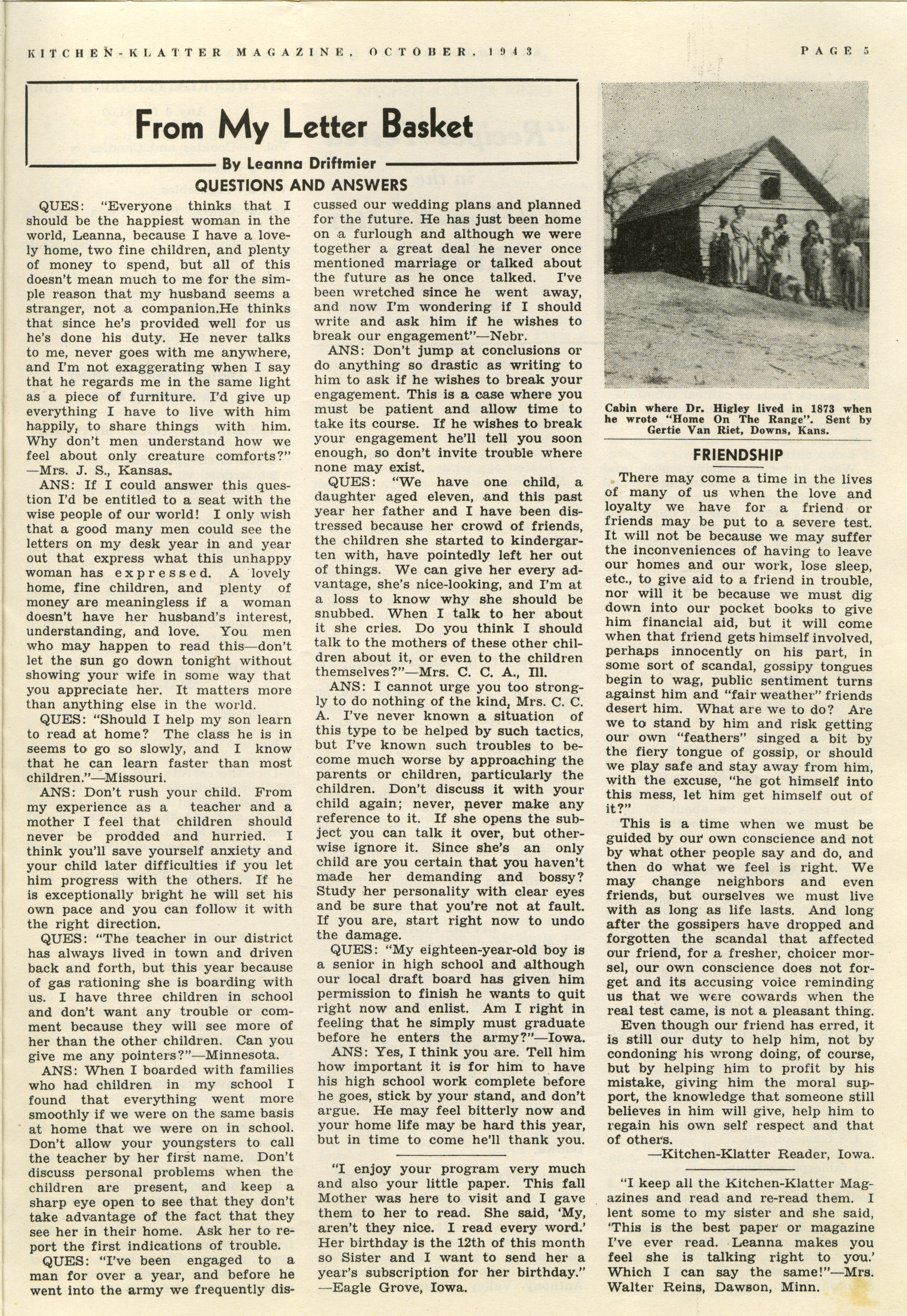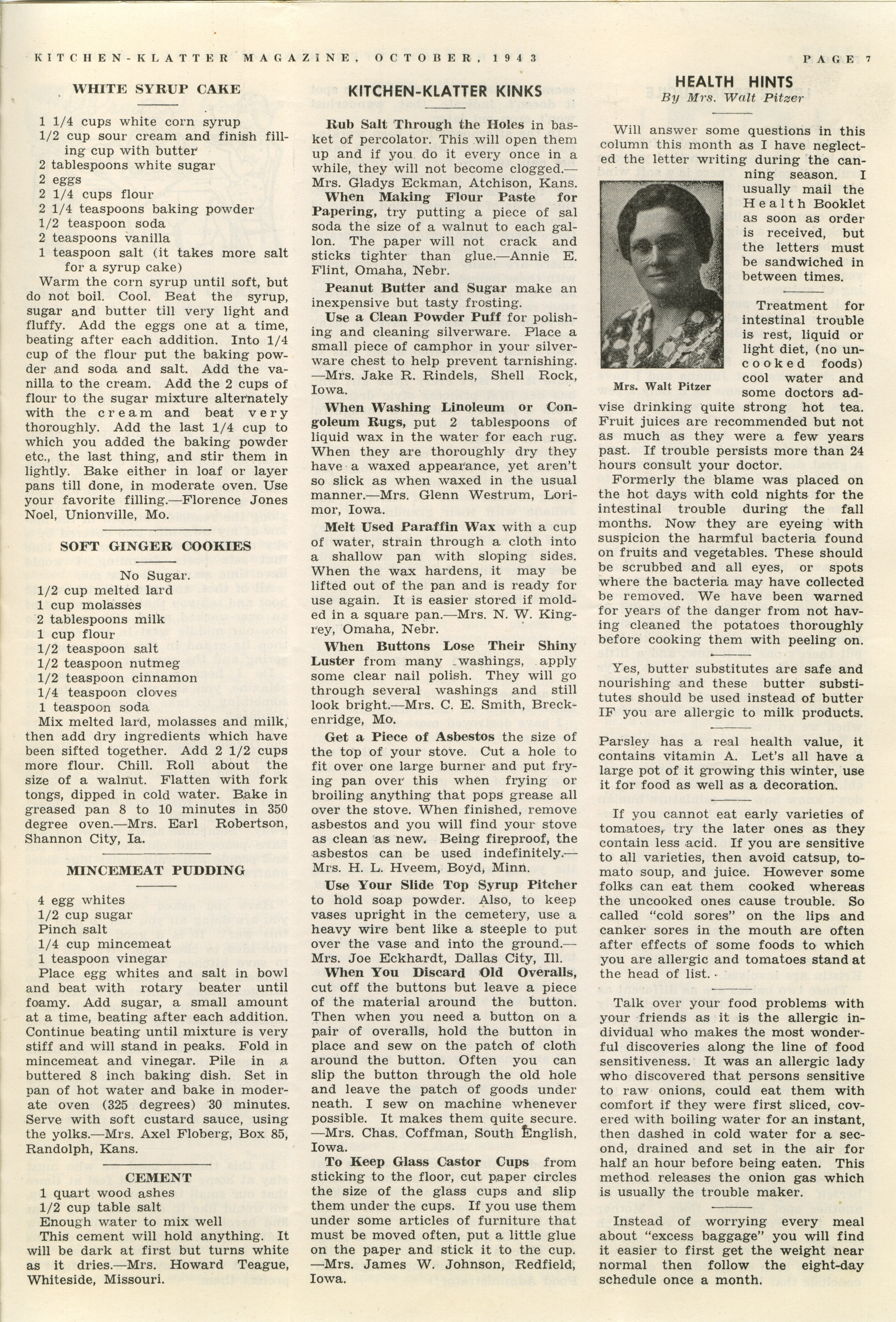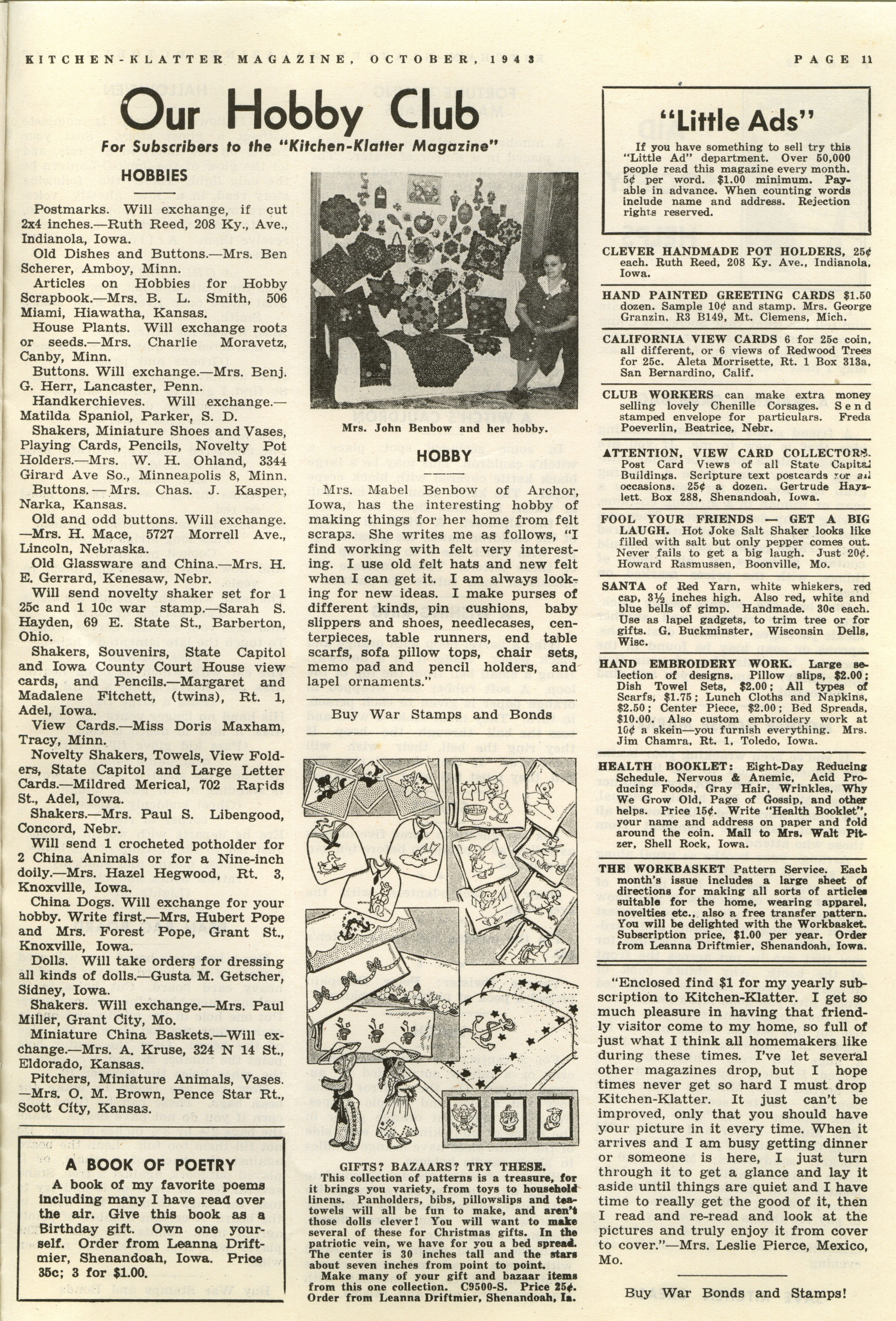 - "Kitchen-Klatter v. 08, n. 10, 1943", Kitchen-Klatter Magazine Issues, Iowa State University Library Digital Collections