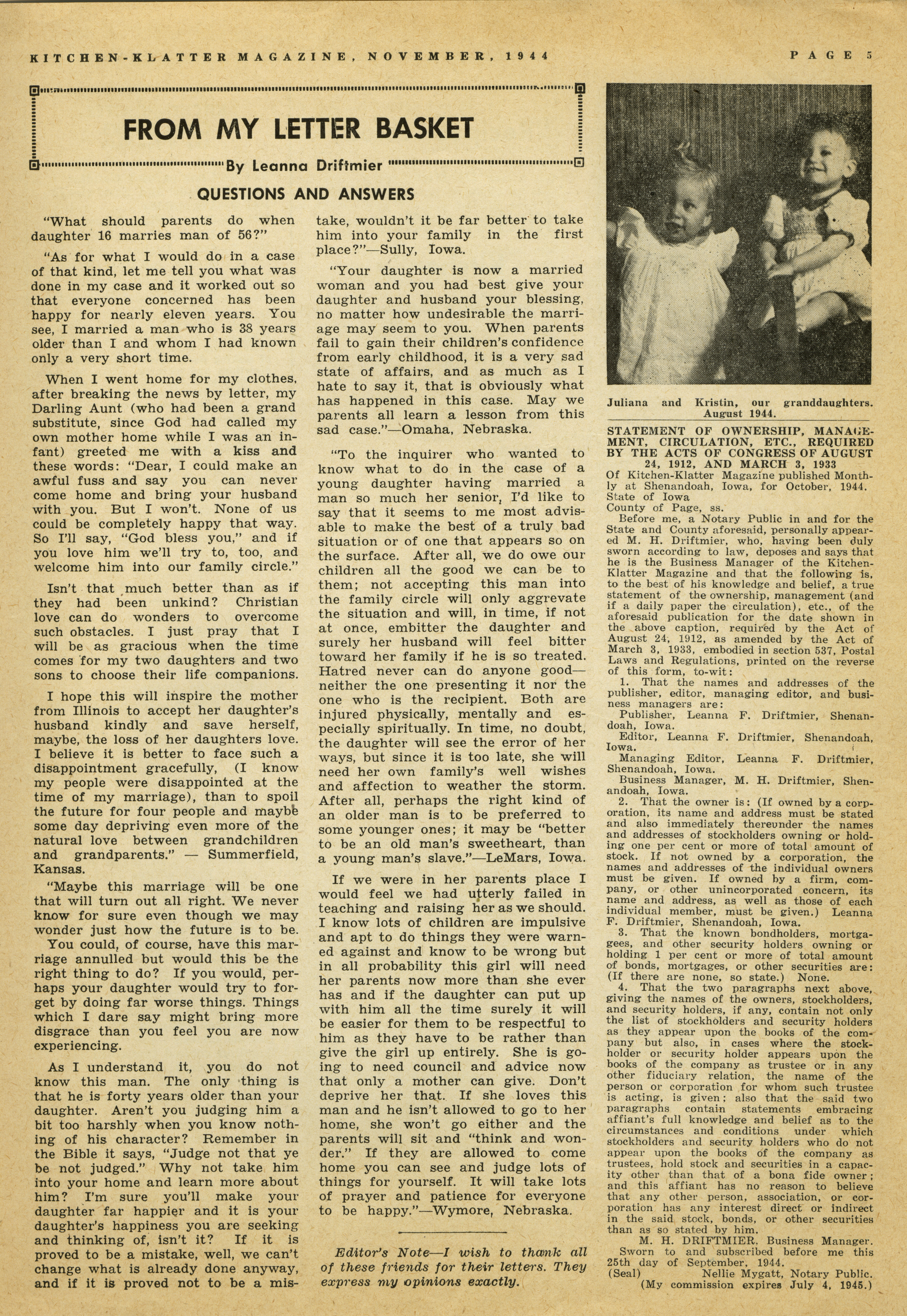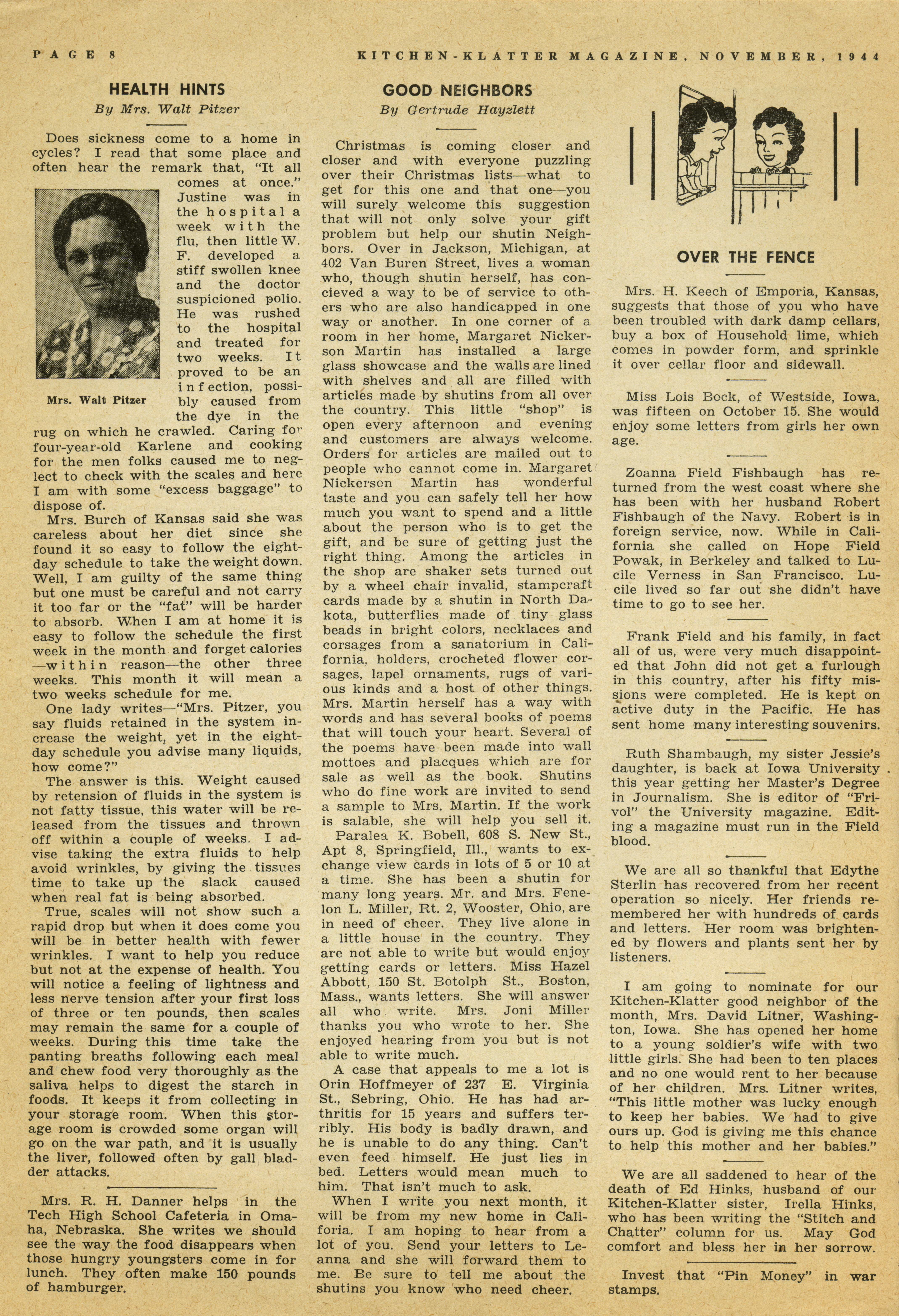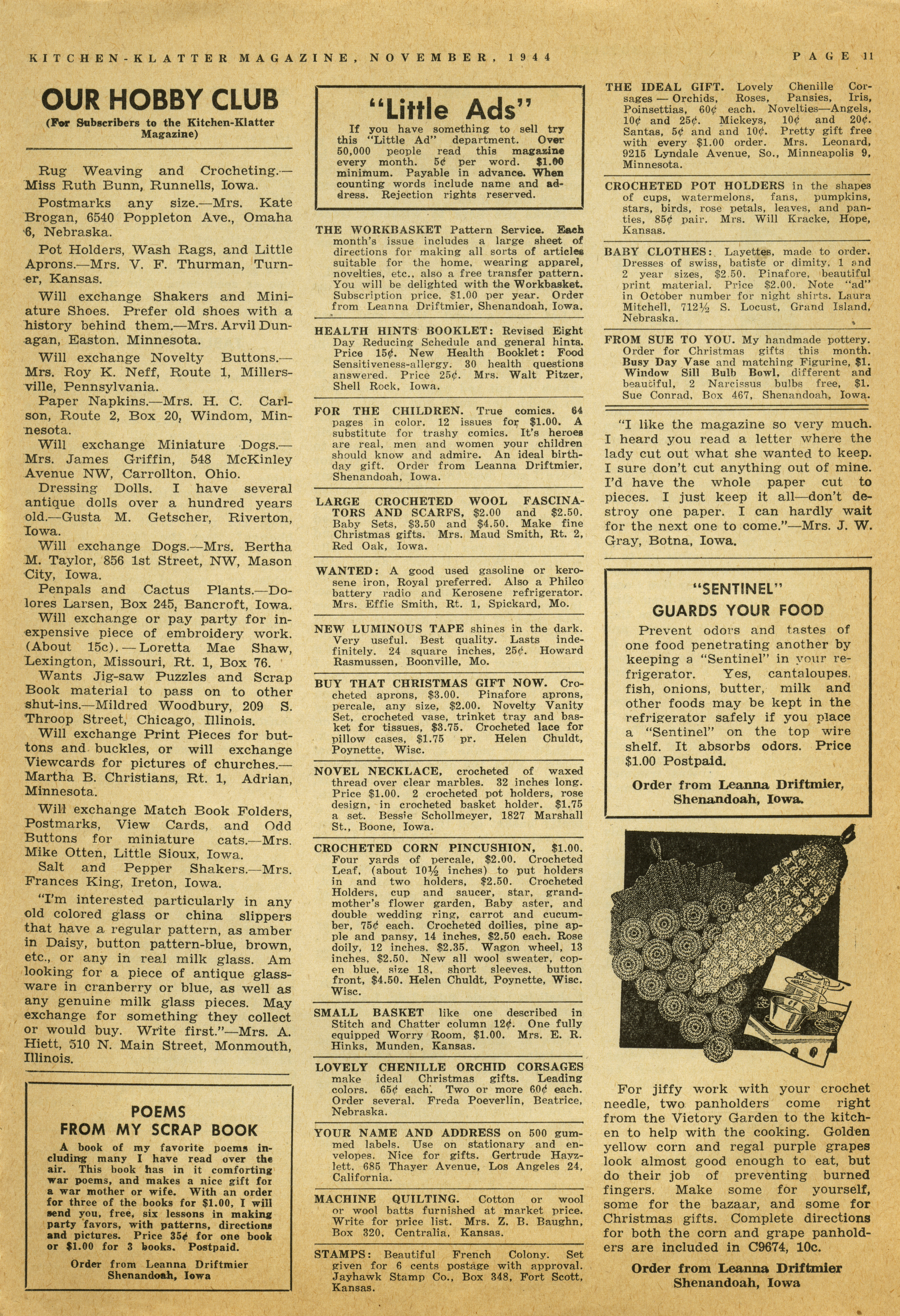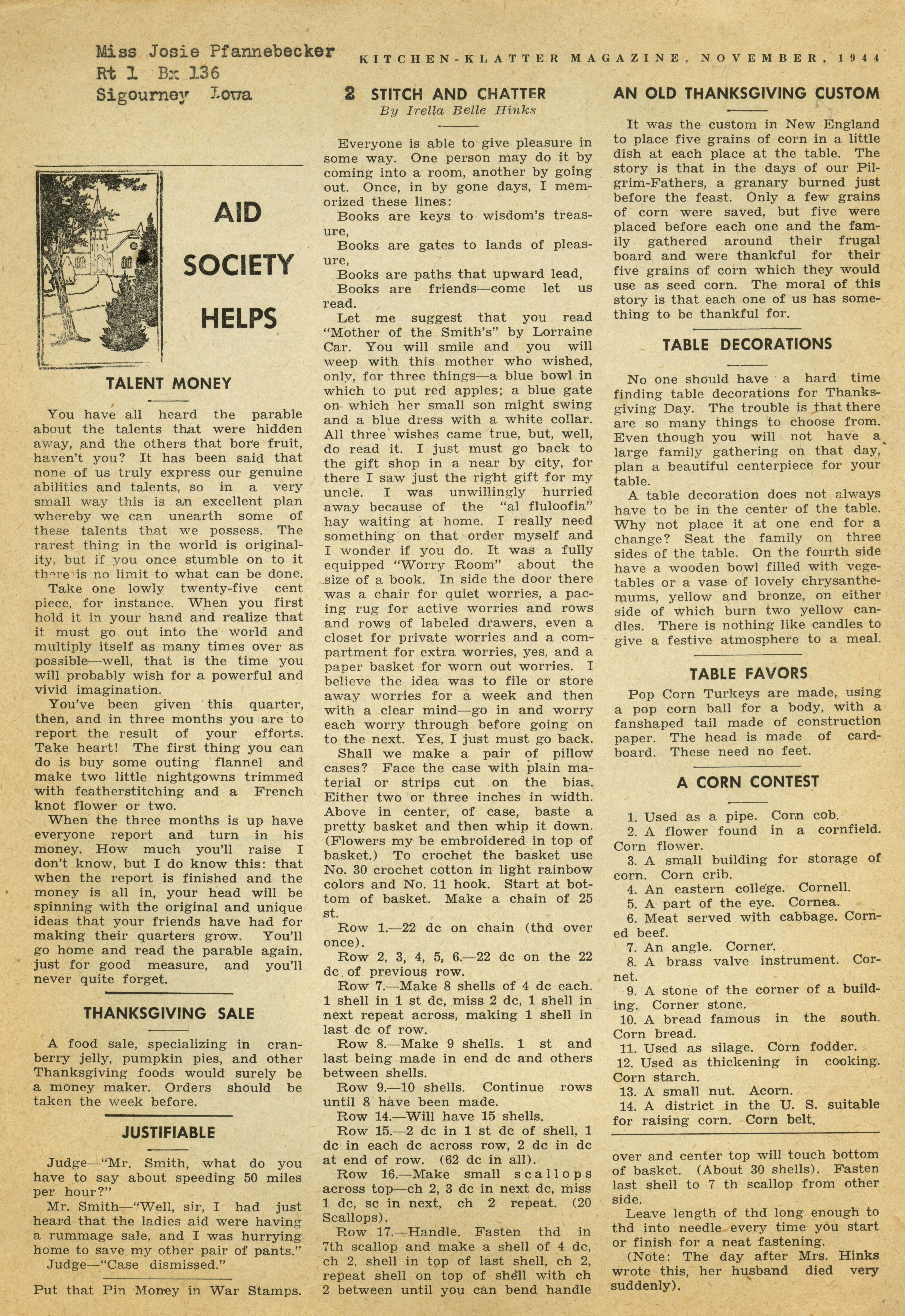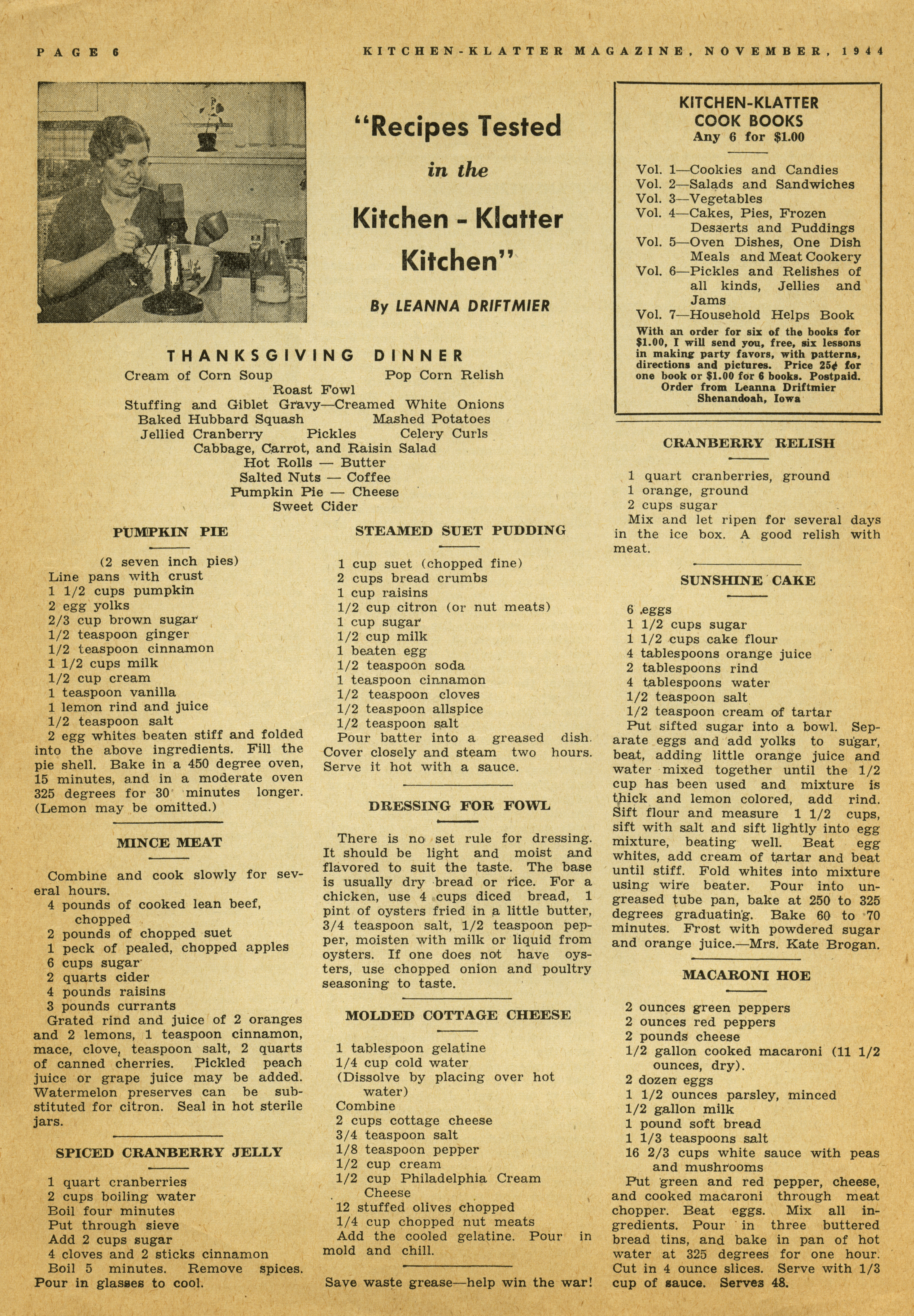 - "Kitchen-Klatter v. 09, n. 11, 1944", Kitchen-Klatter Magazine Issues, Iowa State University Library Digital Collections