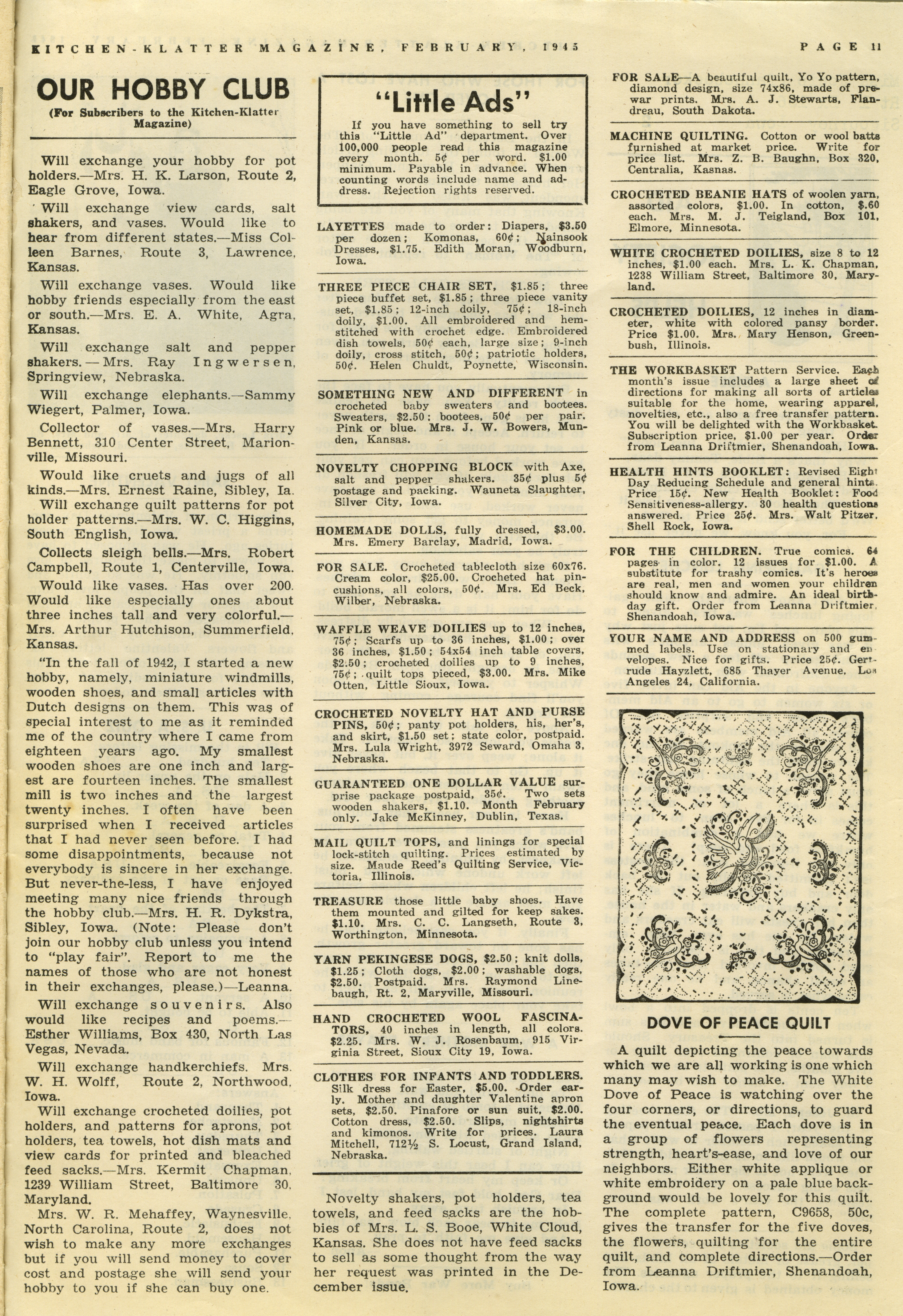 - "Kitchen-Klatter v. 10, n. 02, 1945", Kitchen-Klatter Magazine Issues, Iowa State University Library Digital Collections