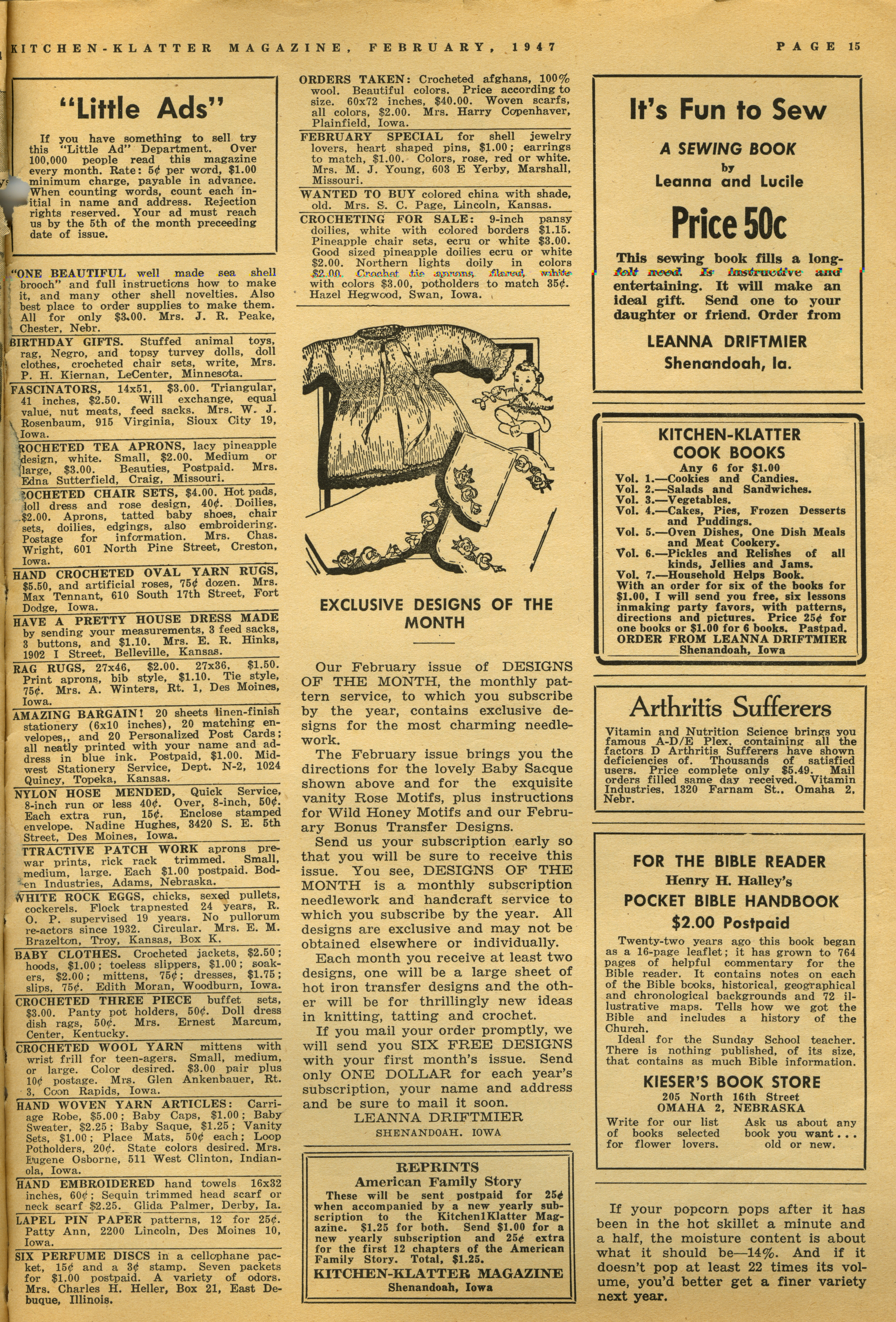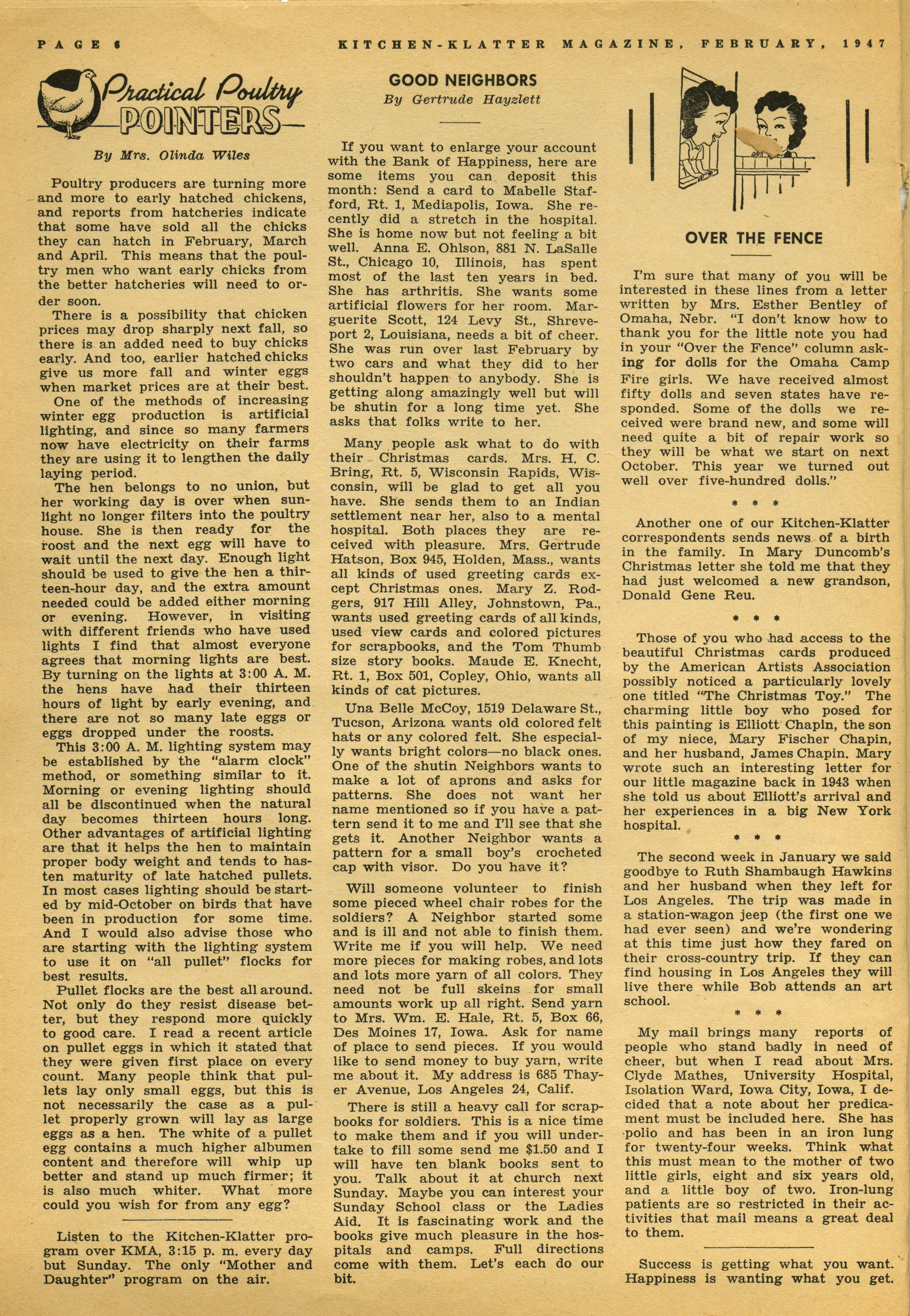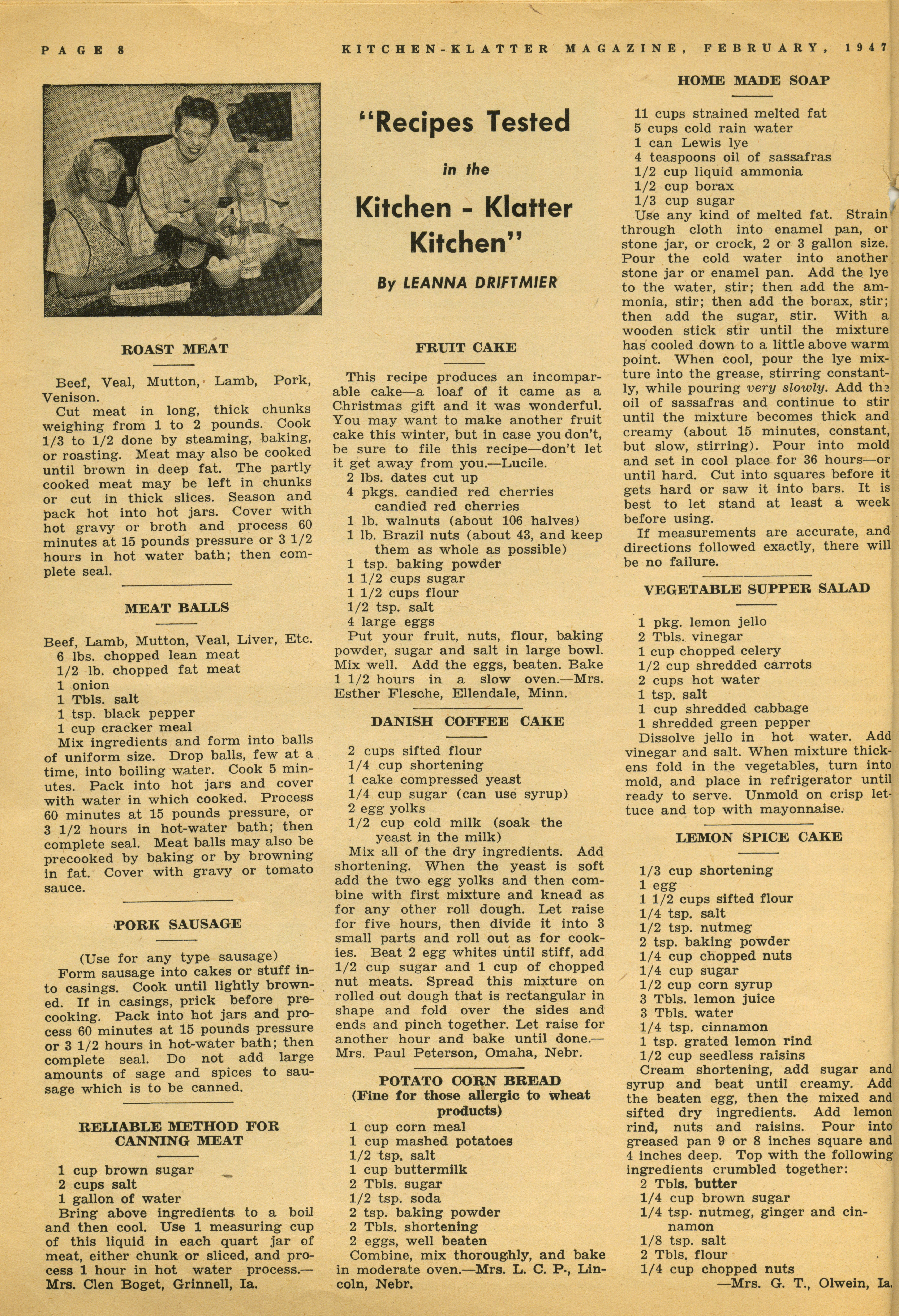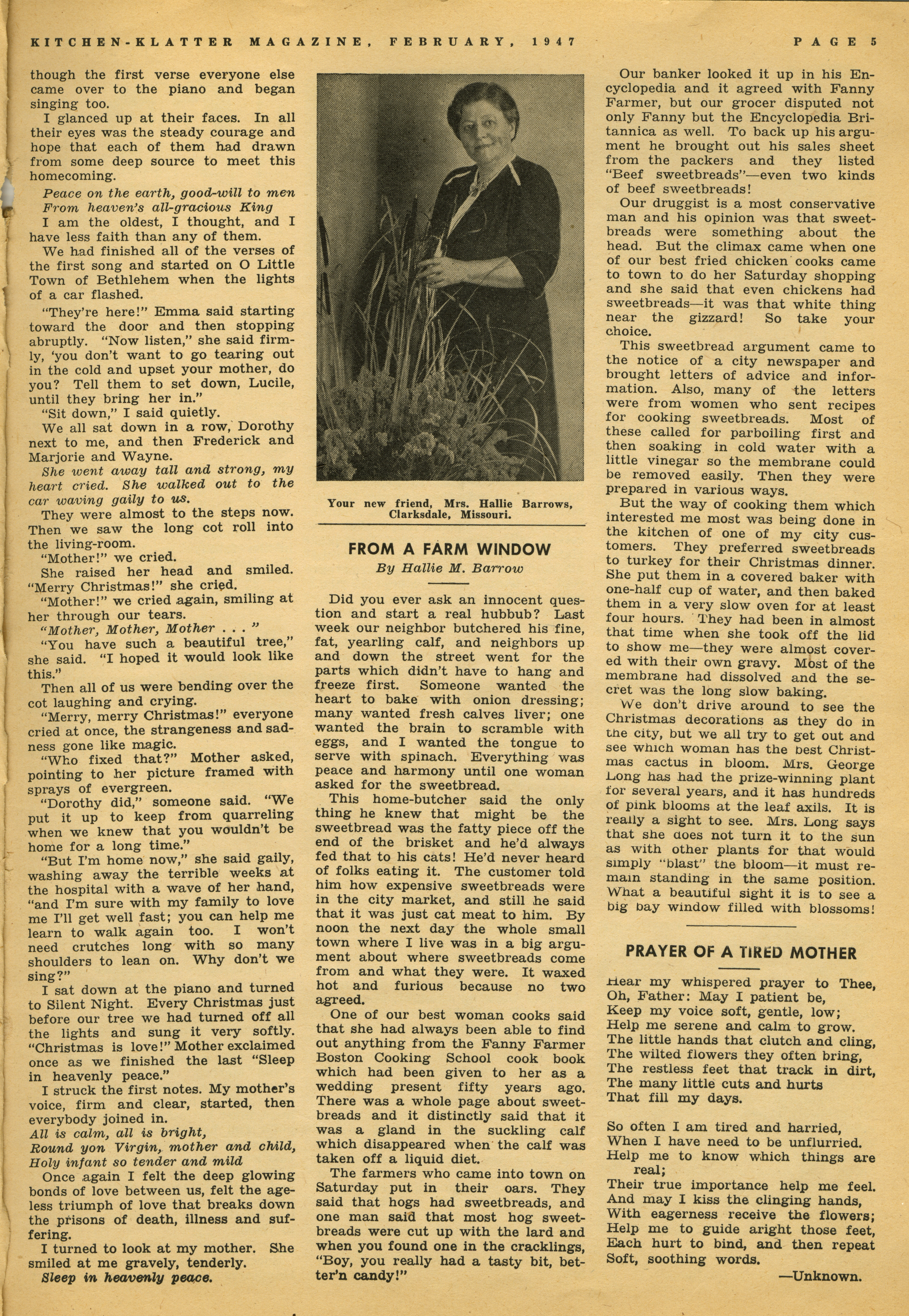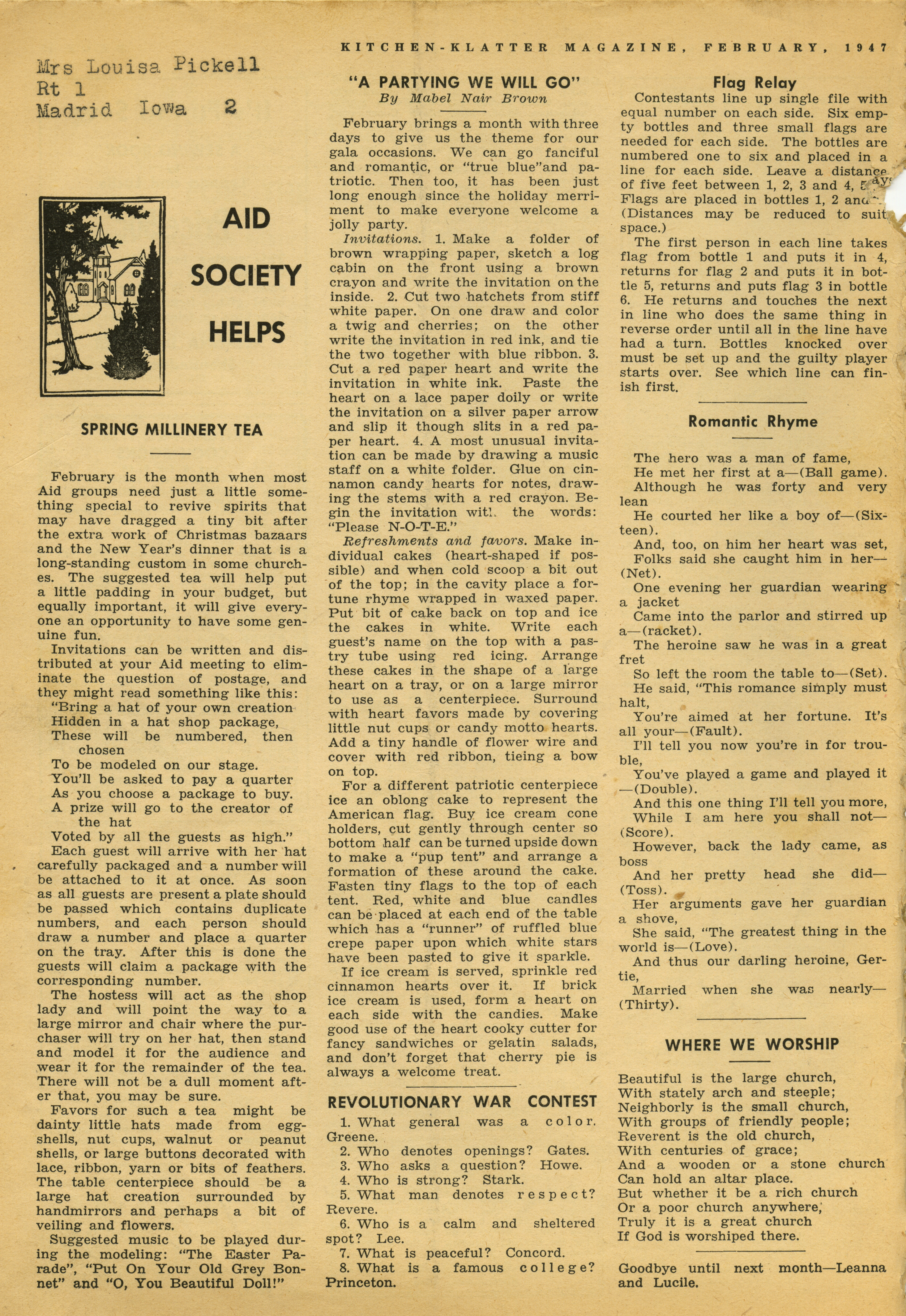 - "Kitchen-Klatter v. 12, n. 02, 1947", Kitchen-Klatter Magazine Issues, Iowa State University Library Digital Collections