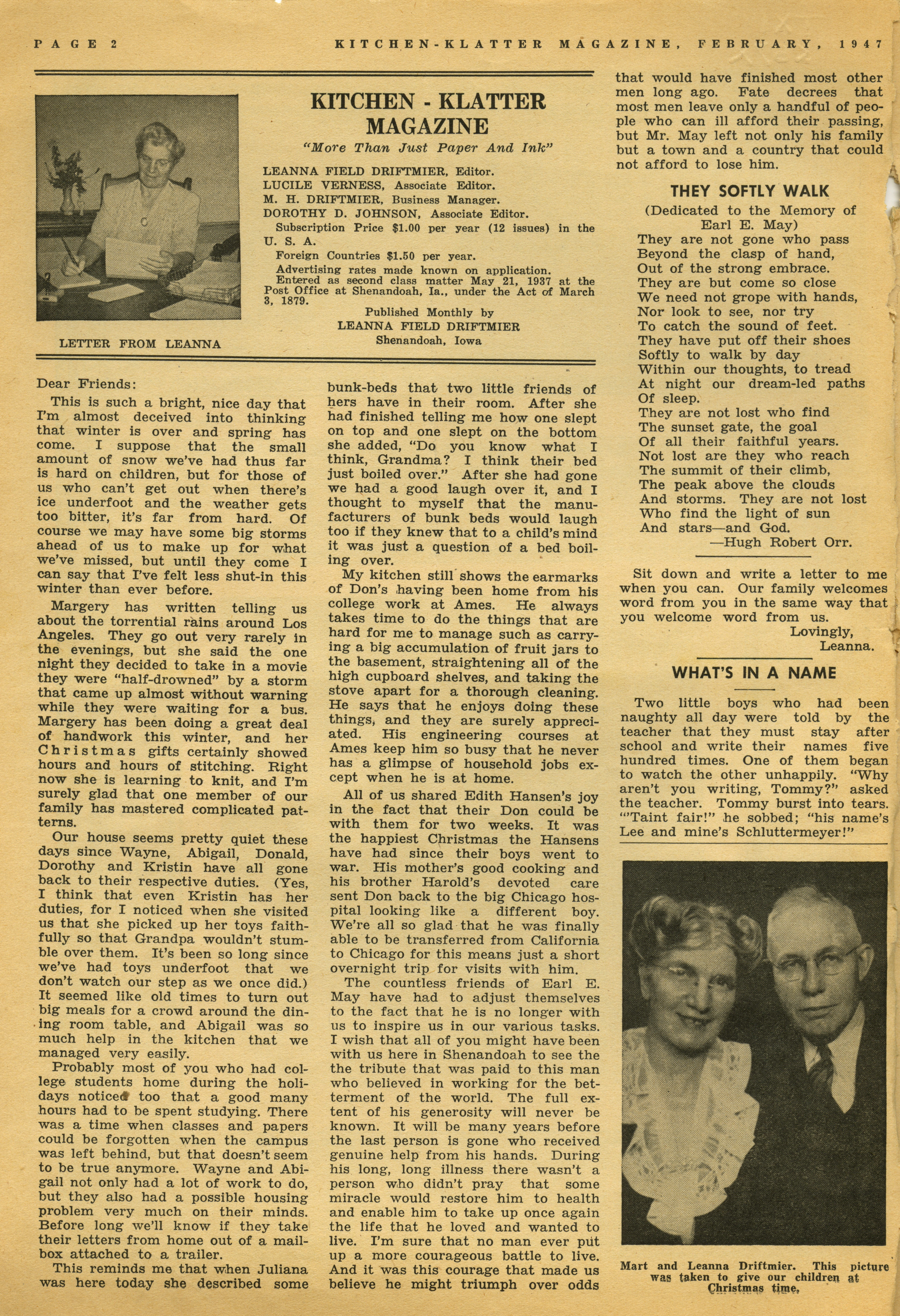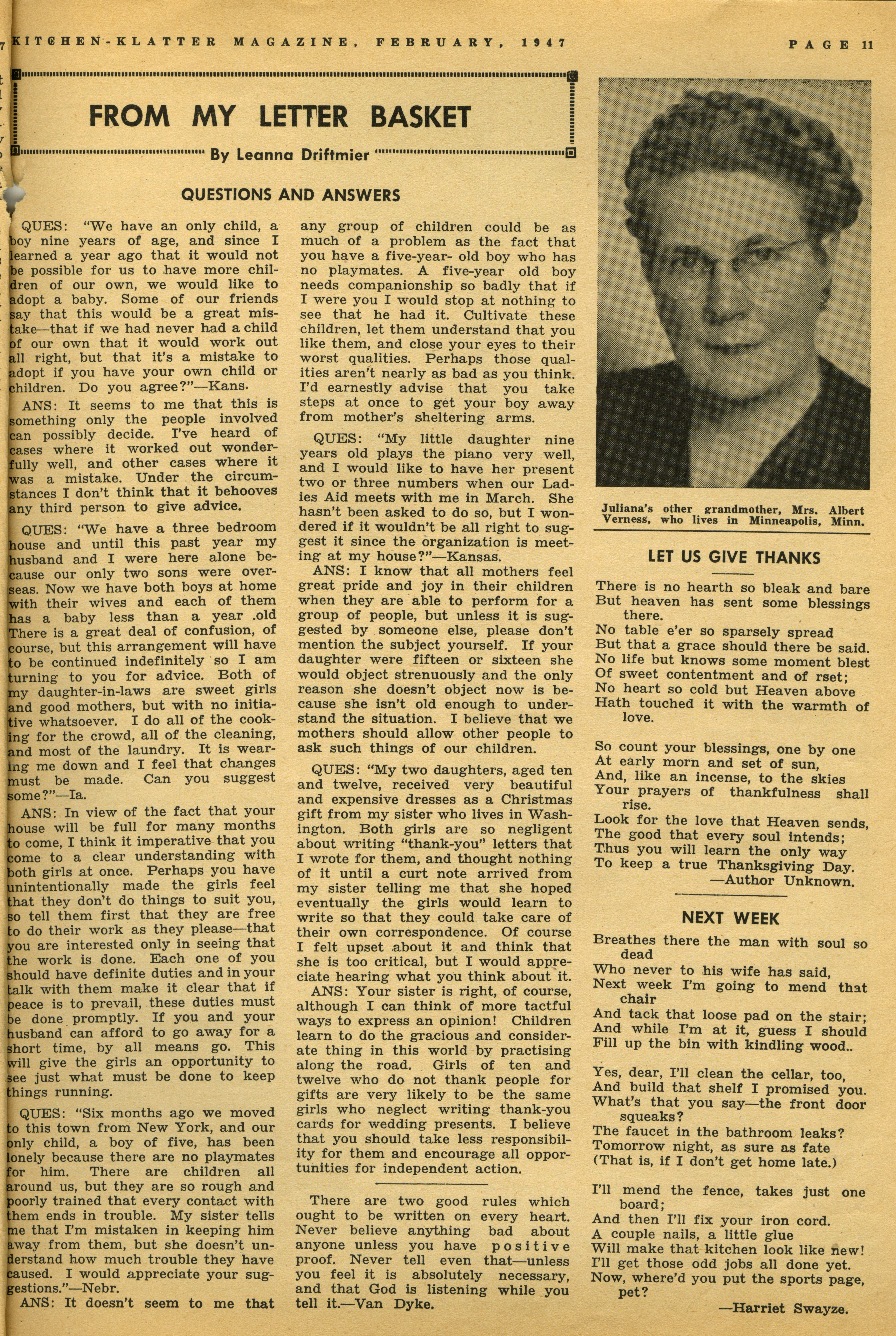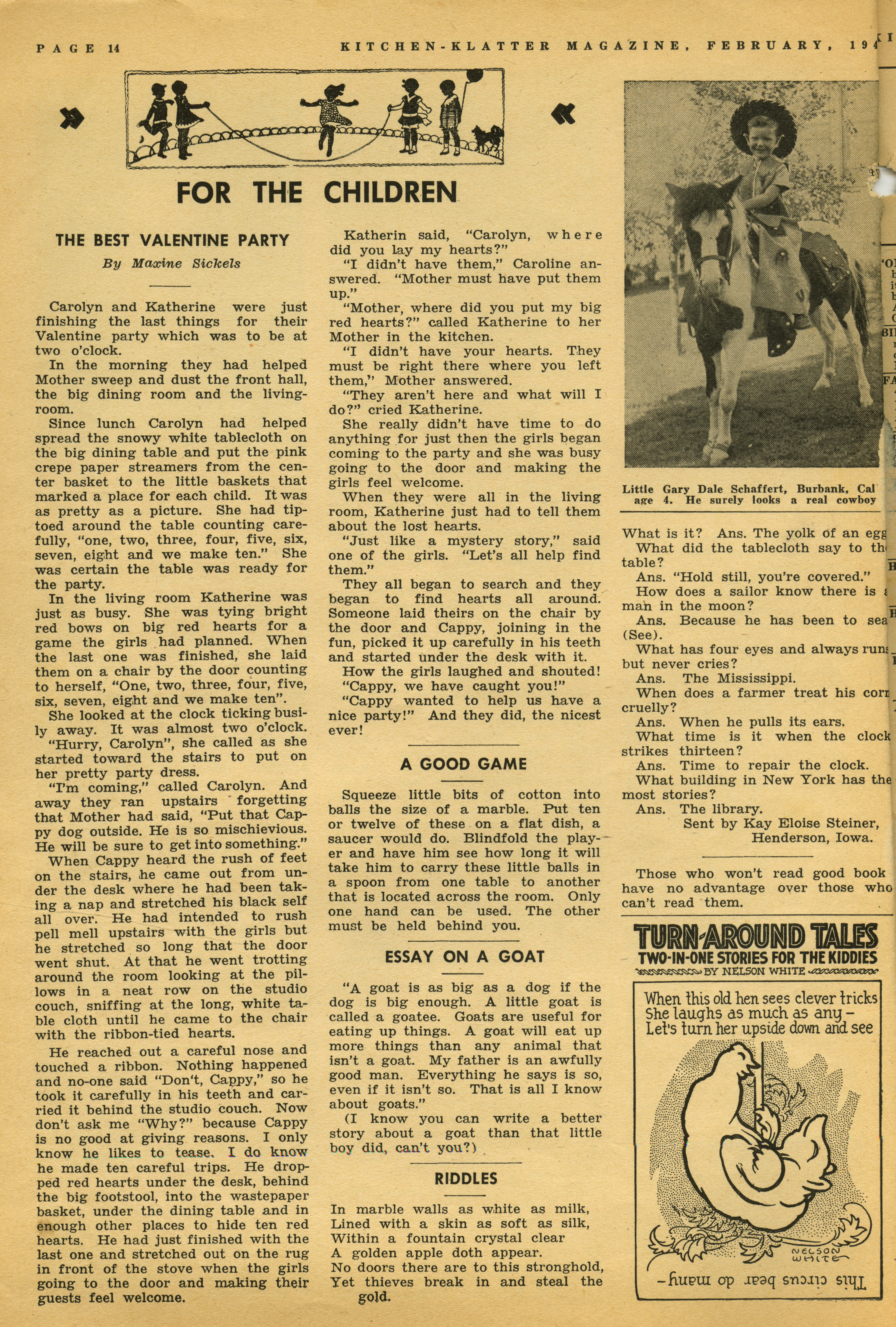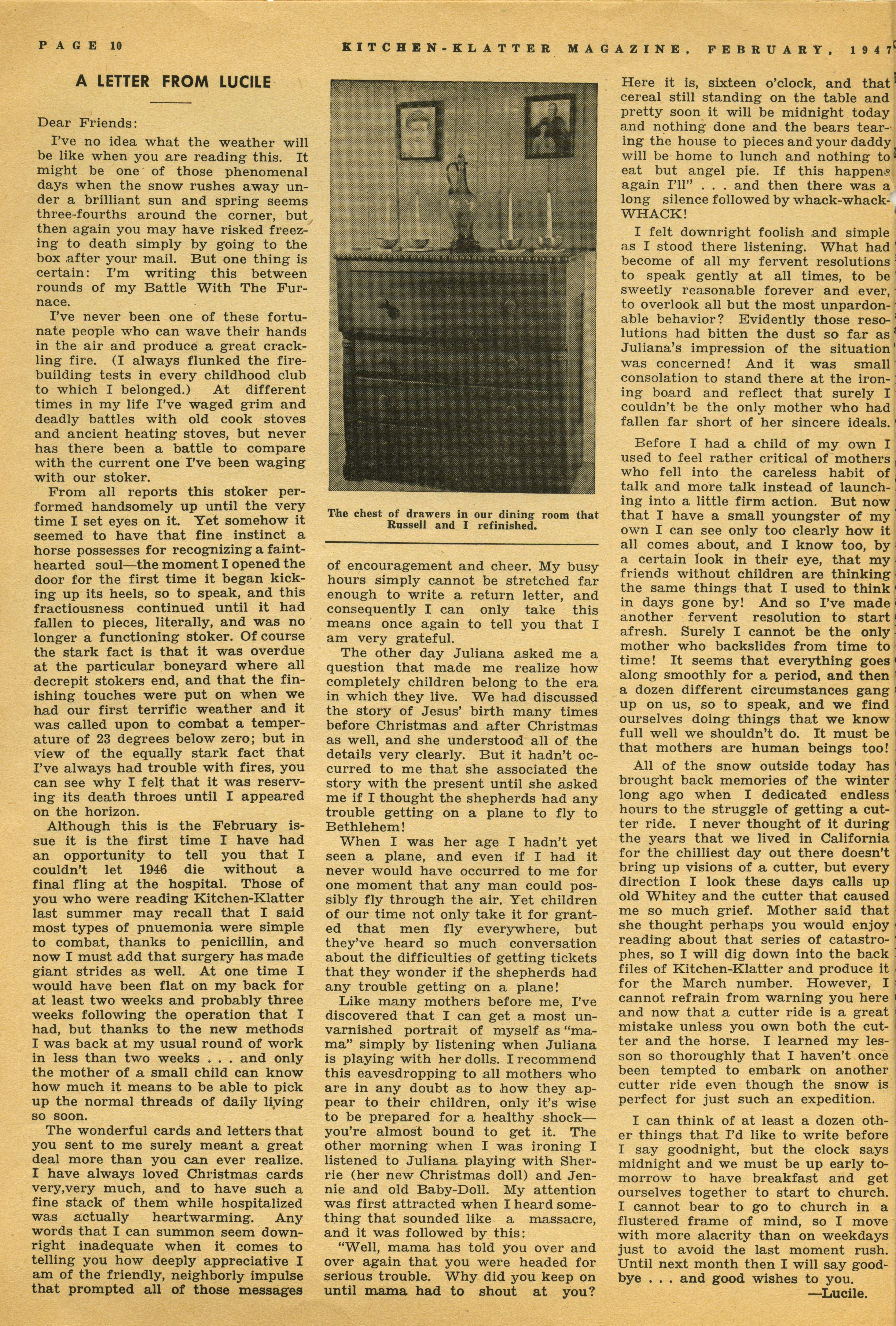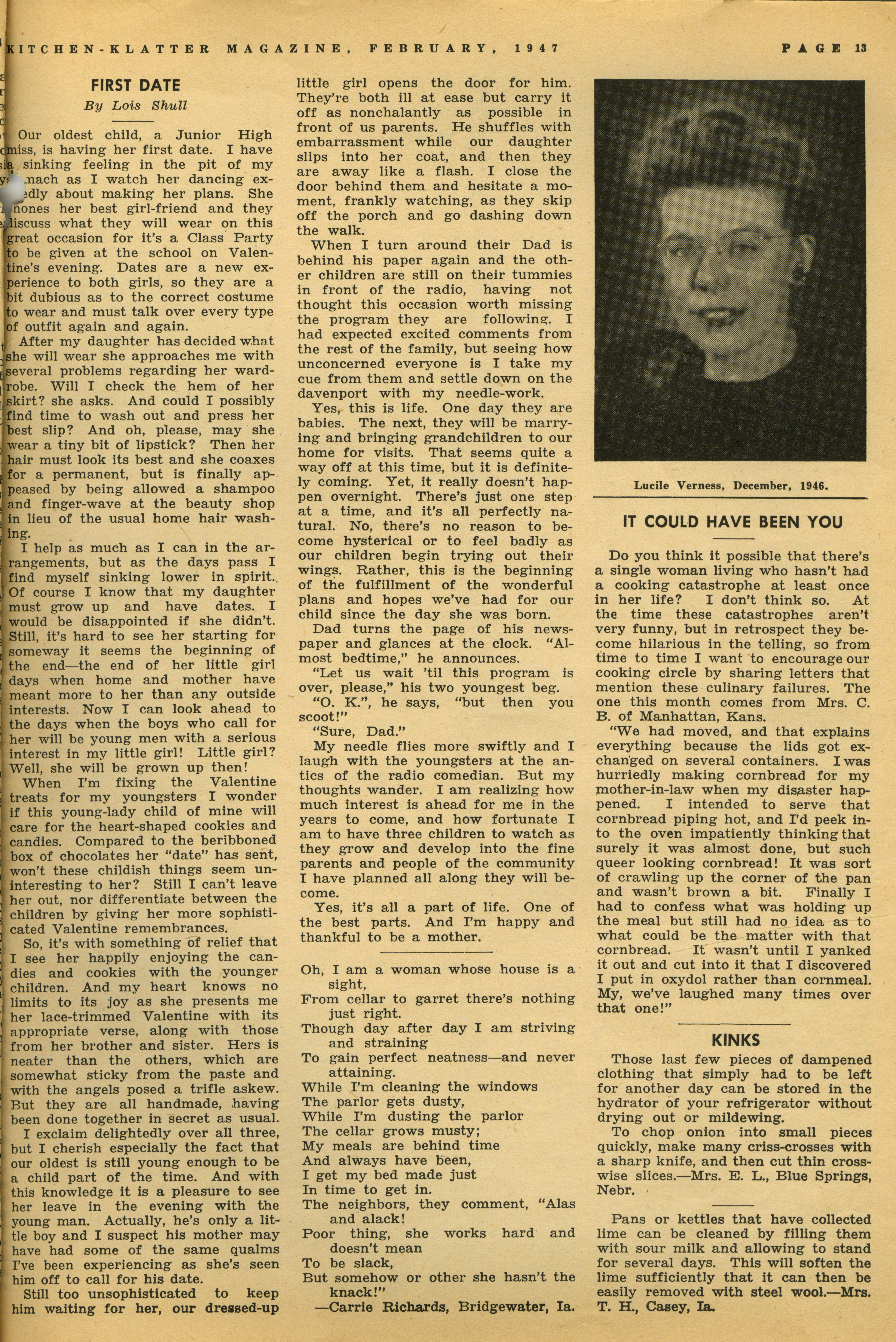 - "Kitchen-Klatter v. 12, n. 02, 1947", Kitchen-Klatter Magazine Issues, Iowa State University Library Digital Collections