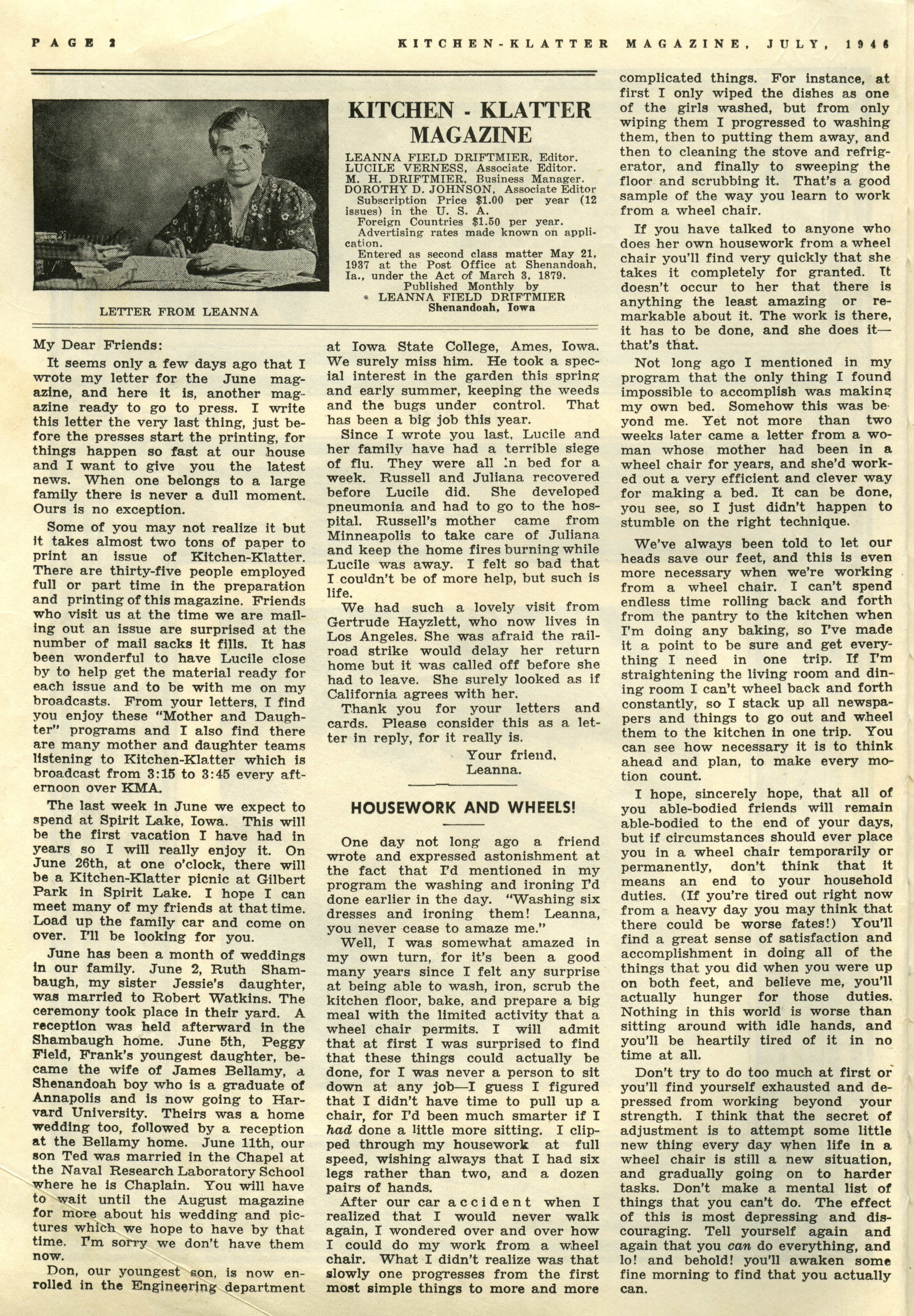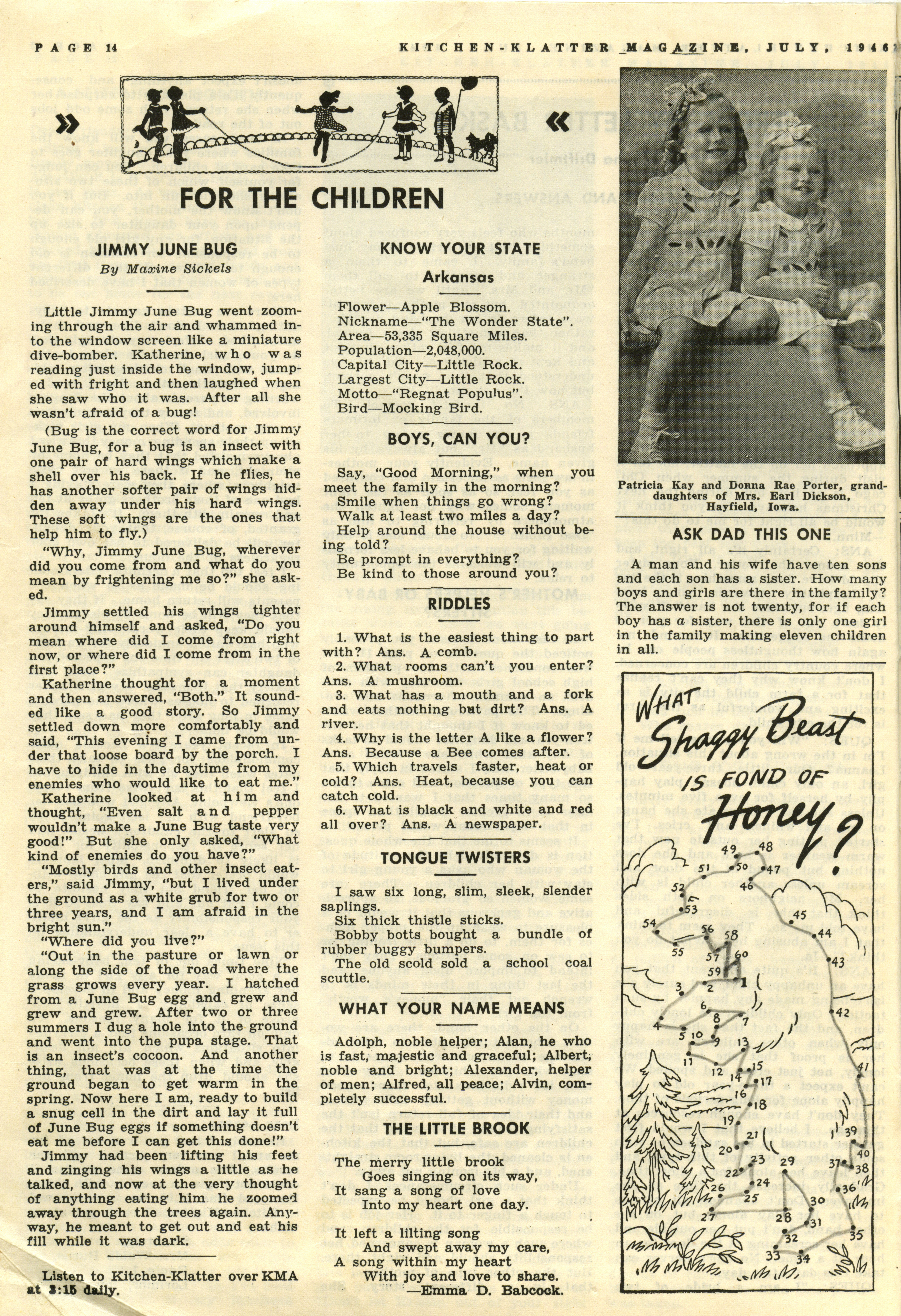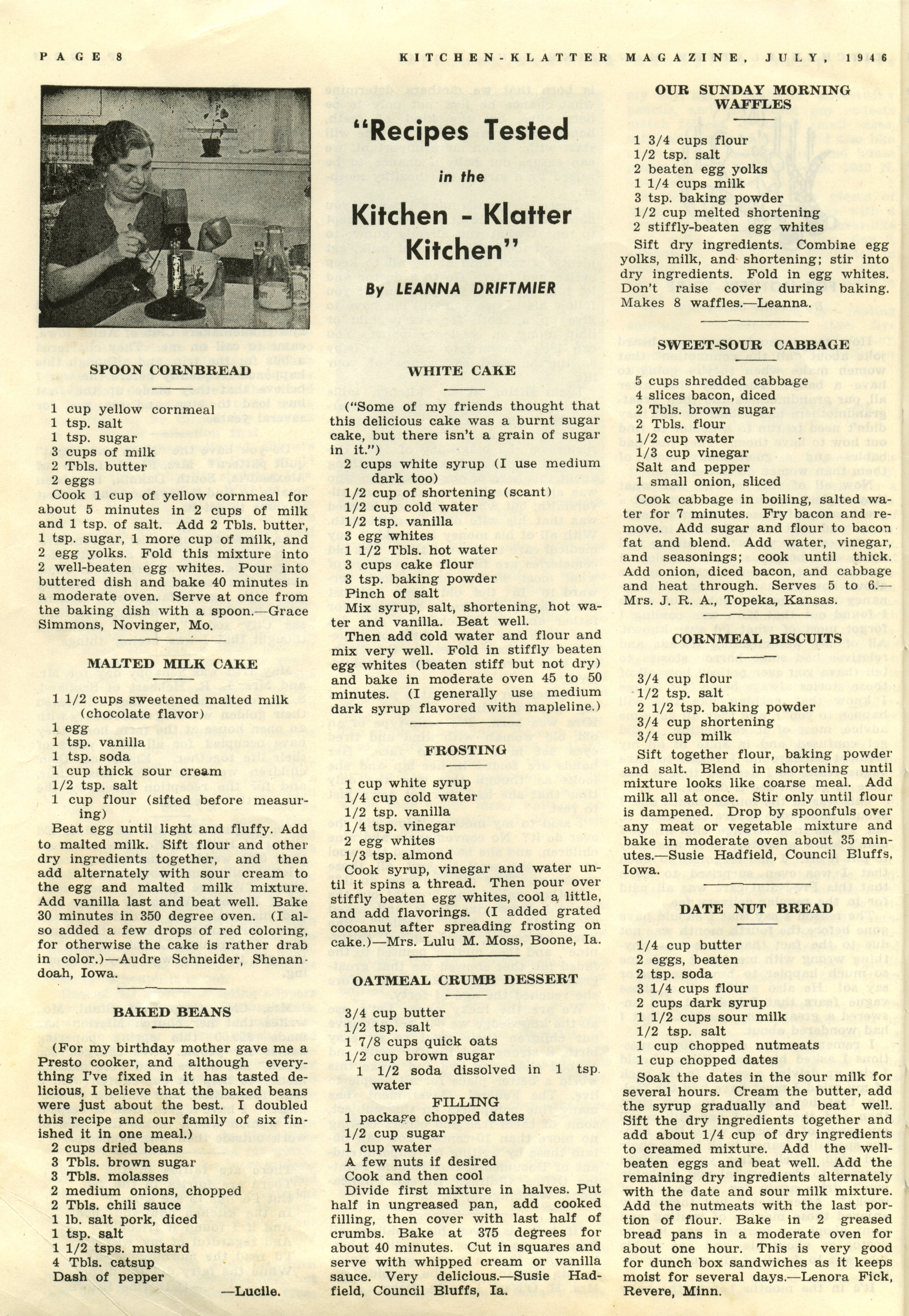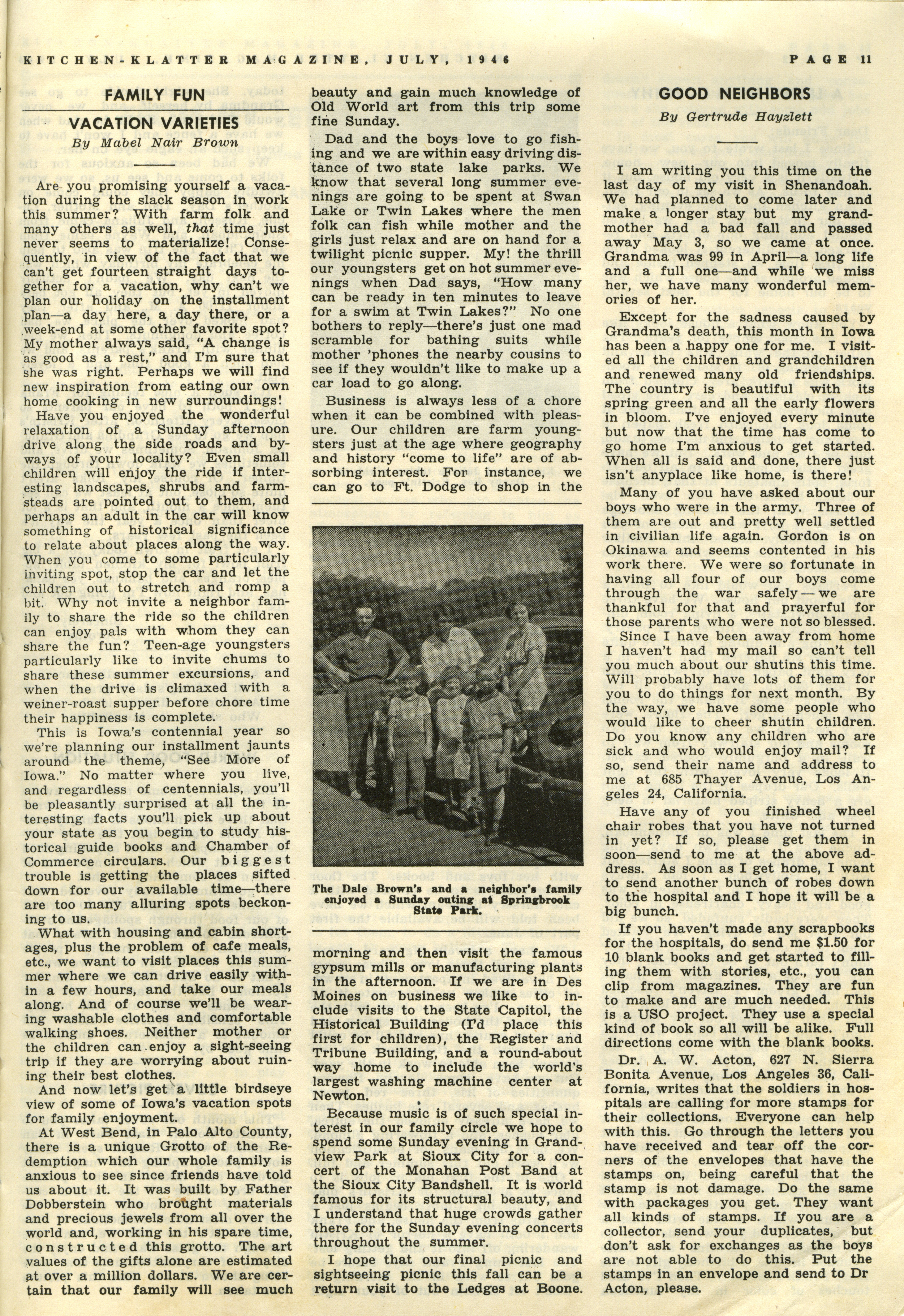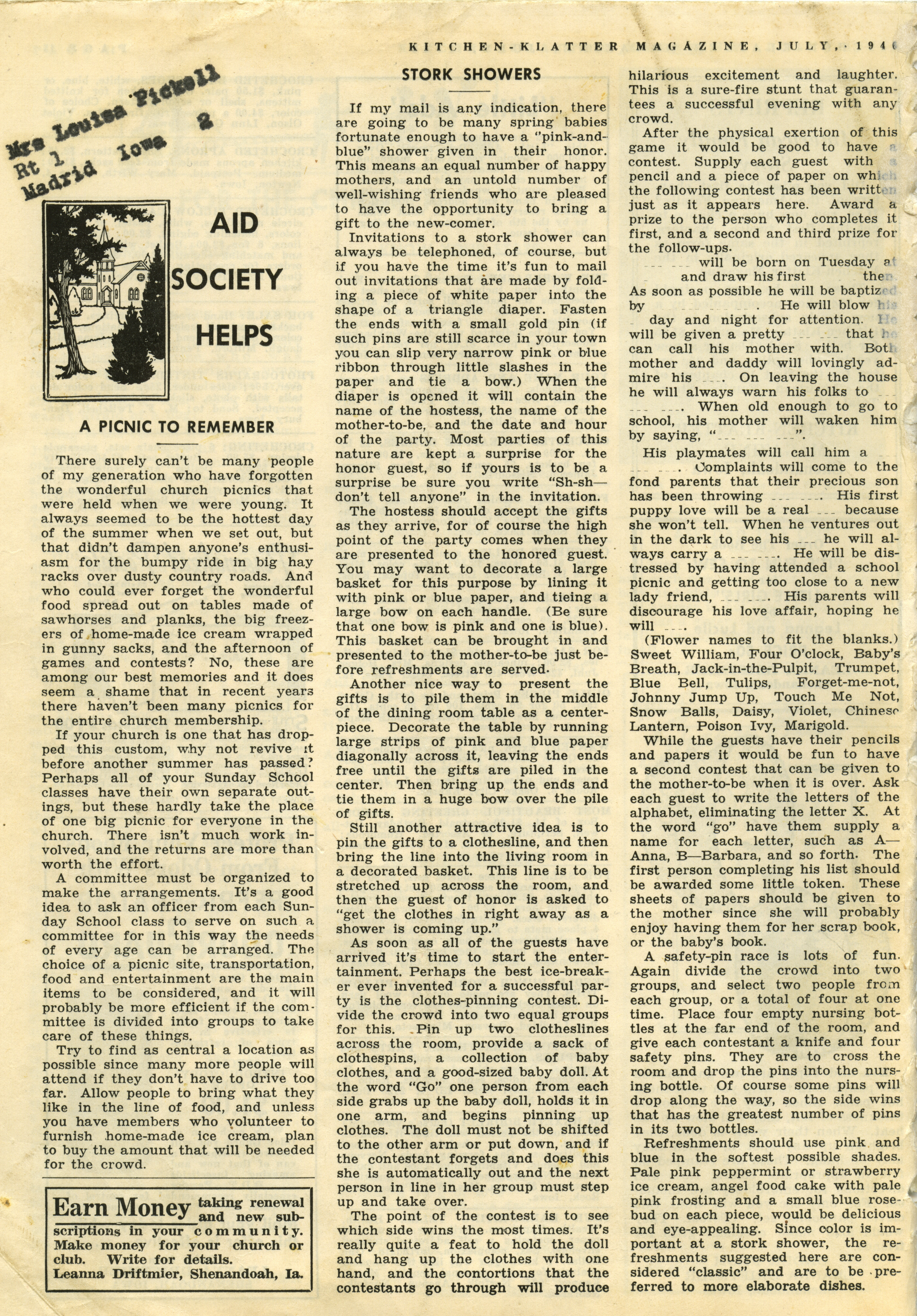 - "Kitchen-Klatter v. 11, n. 07, 1946", Kitchen-Klatter Magazine Issues, Iowa State University Library Digital Collections
