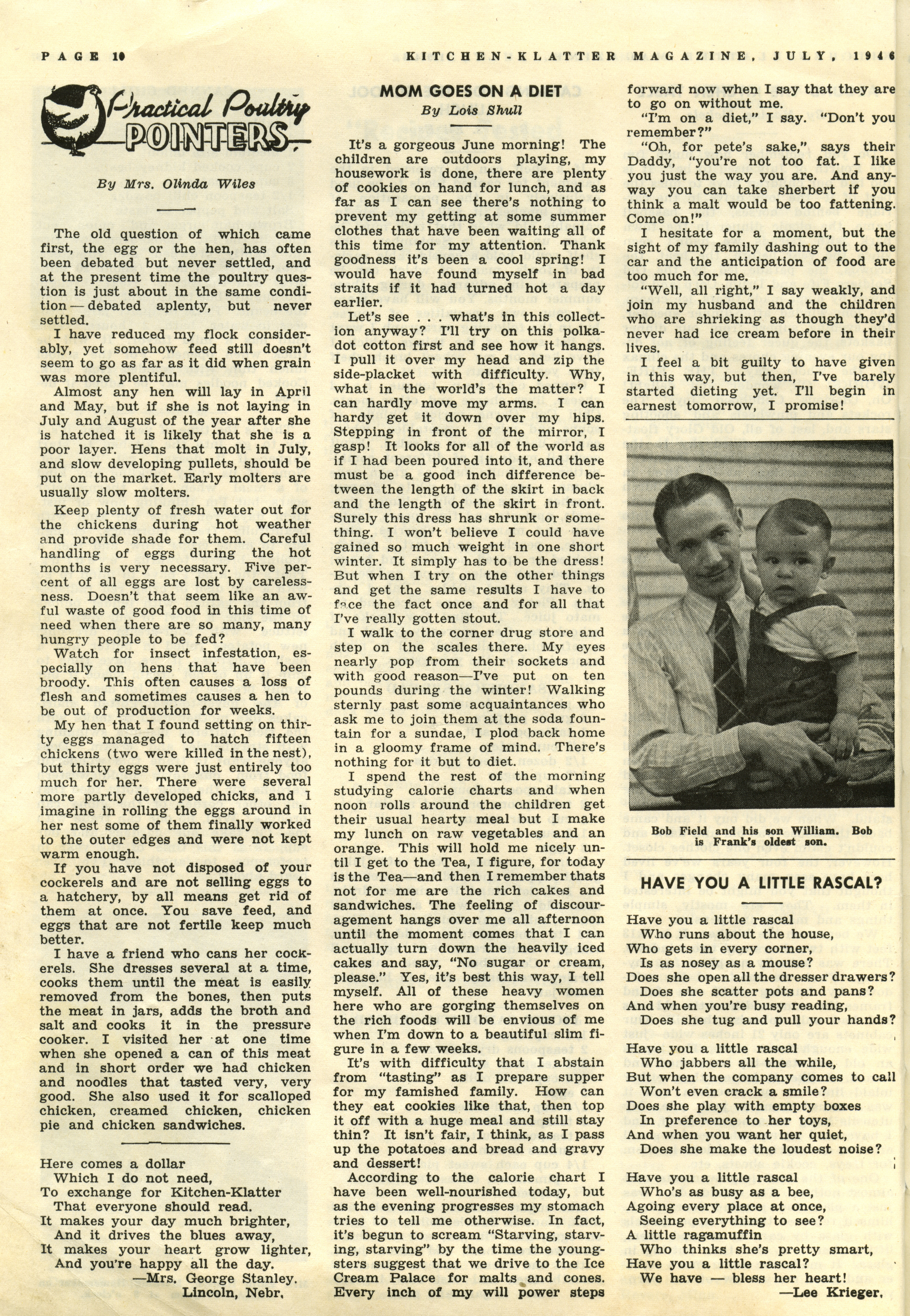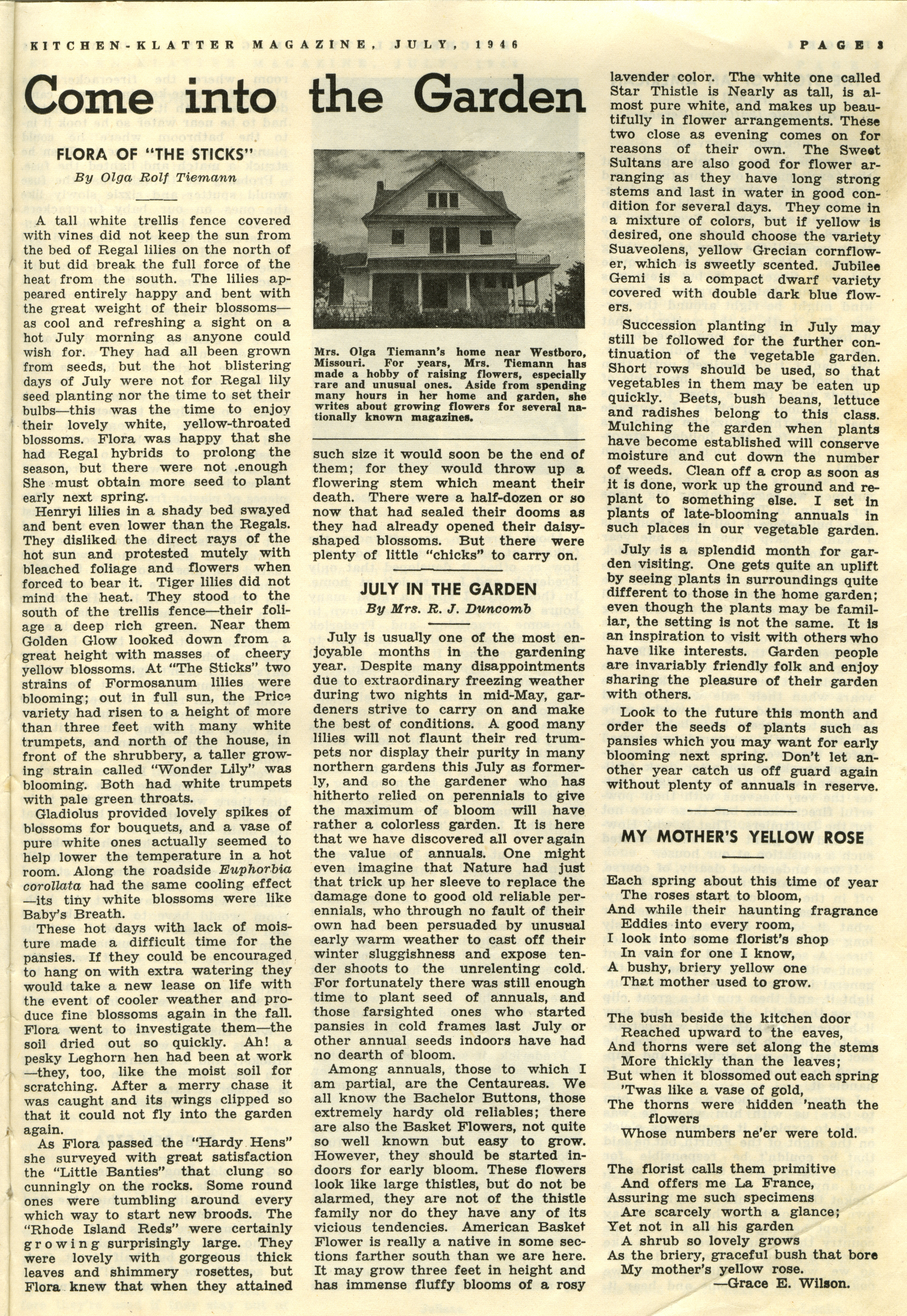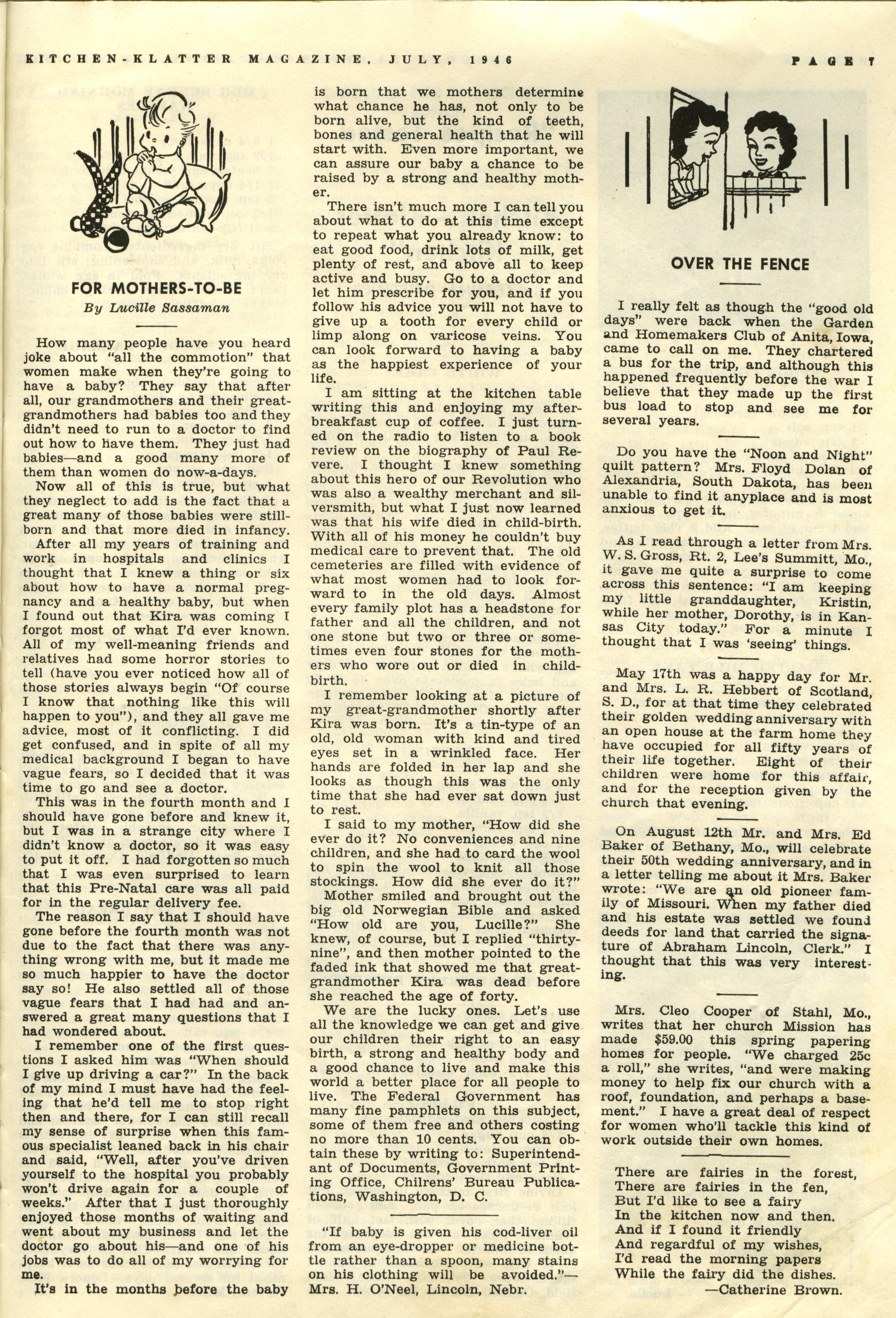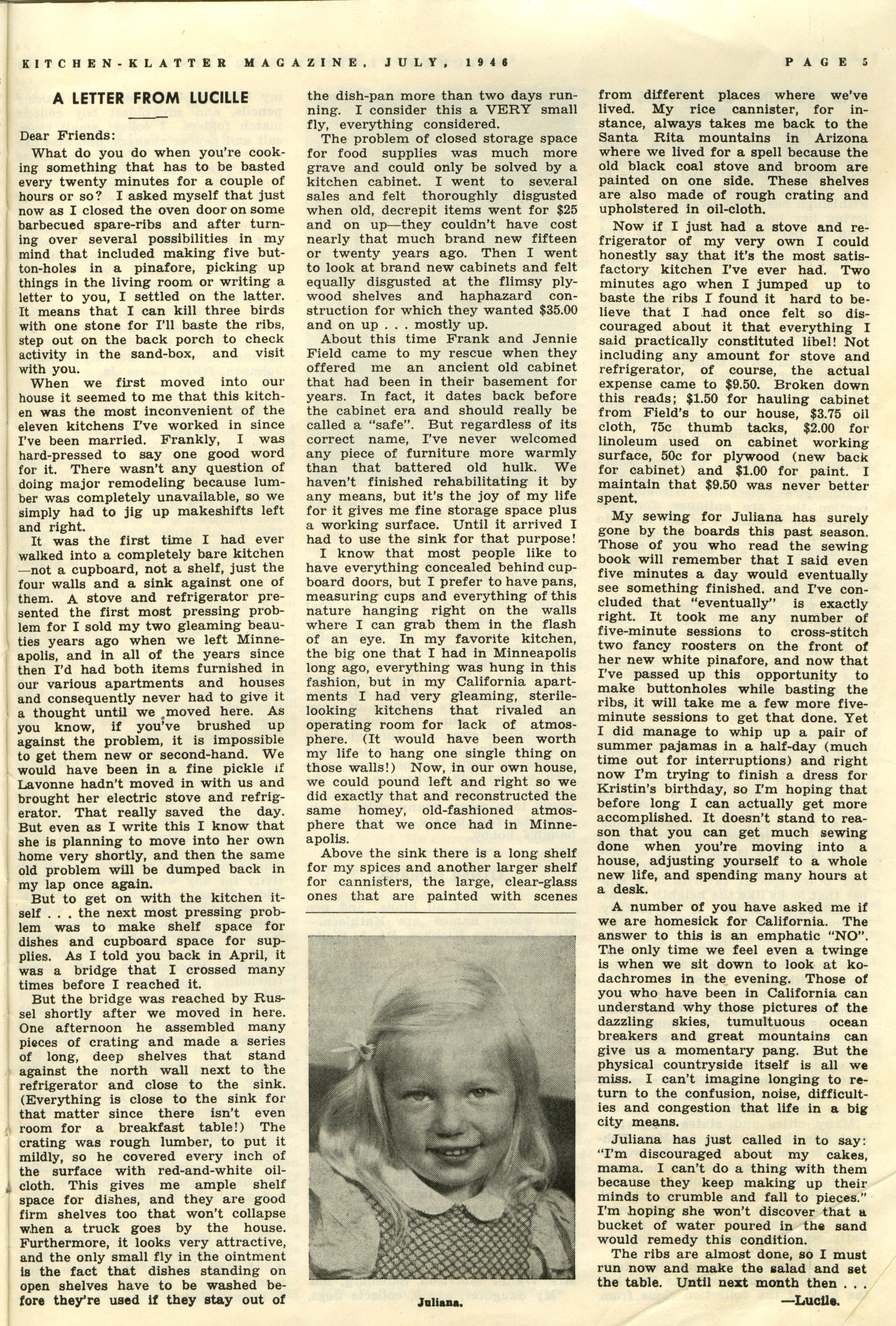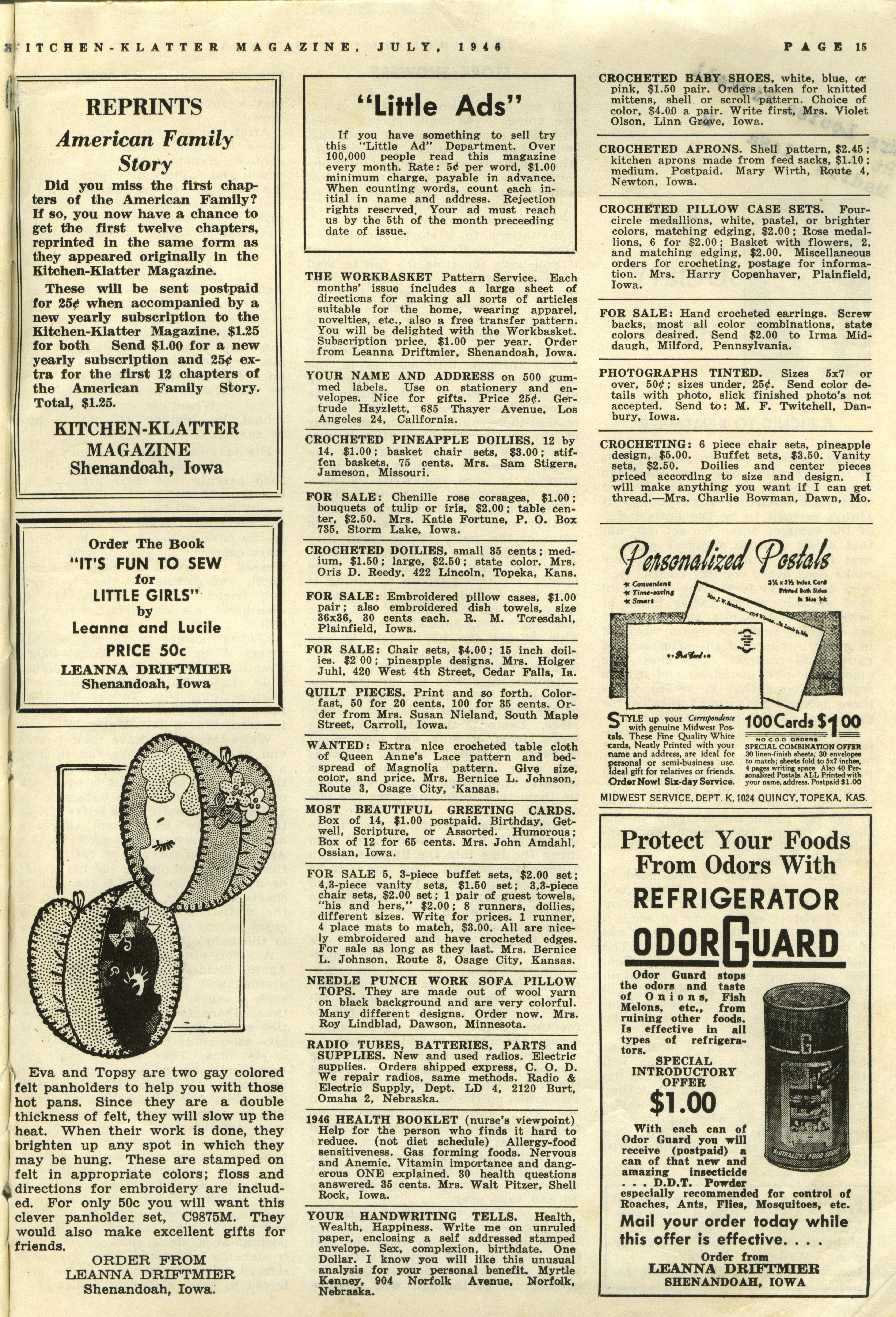 - "Kitchen-Klatter v. 11, n. 07, 1946", Kitchen-Klatter Magazine Issues, Iowa State University Library Digital Collections