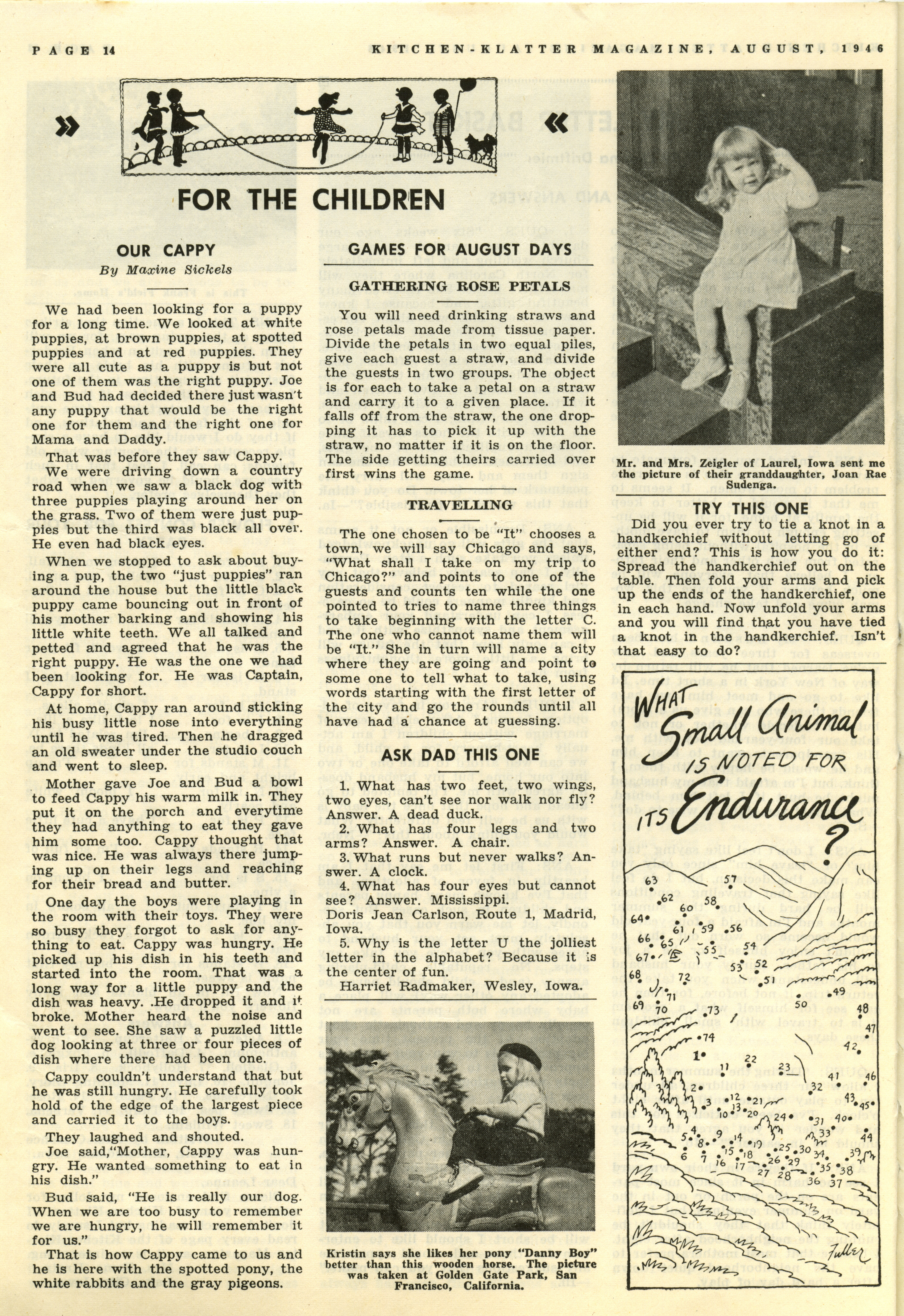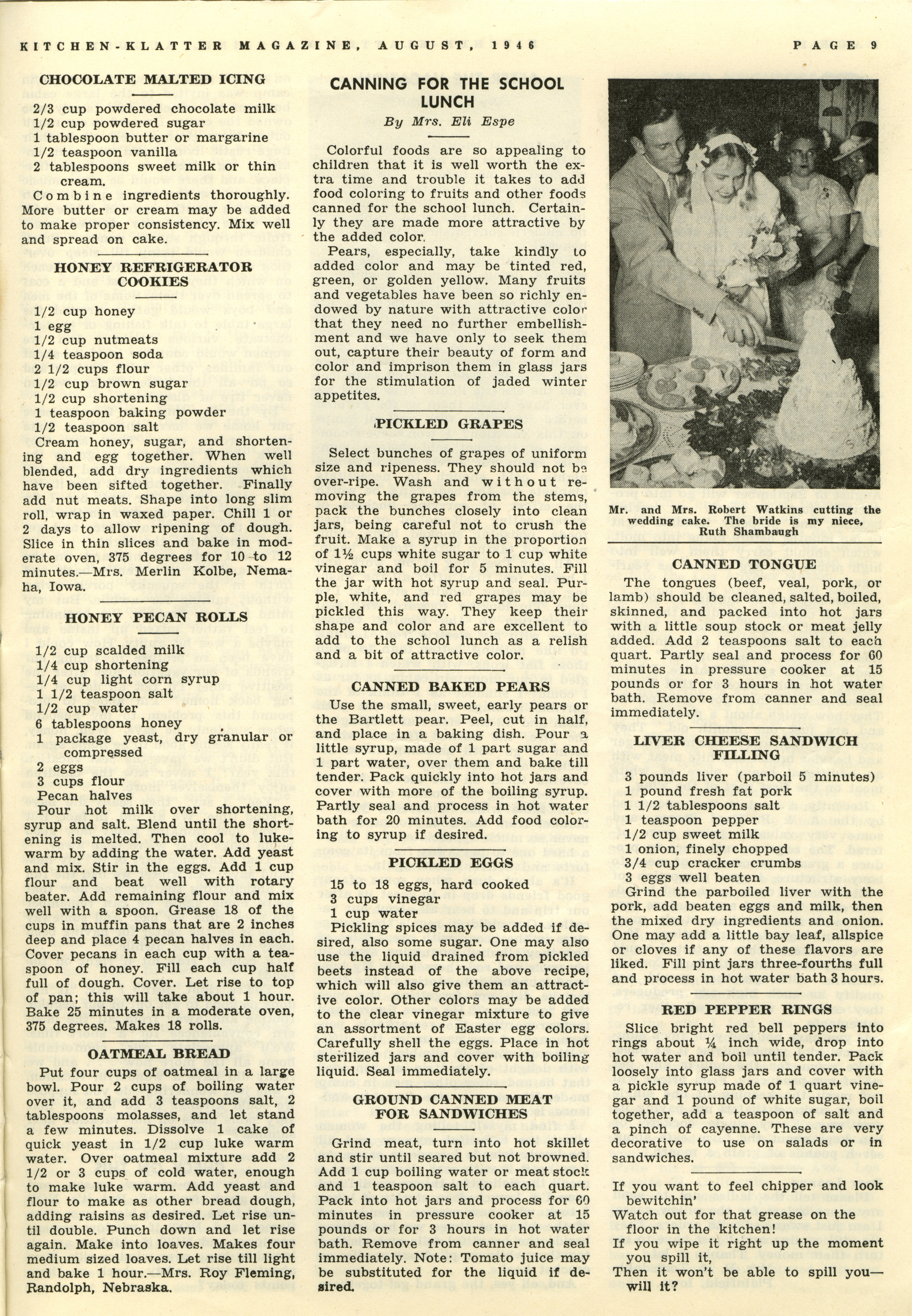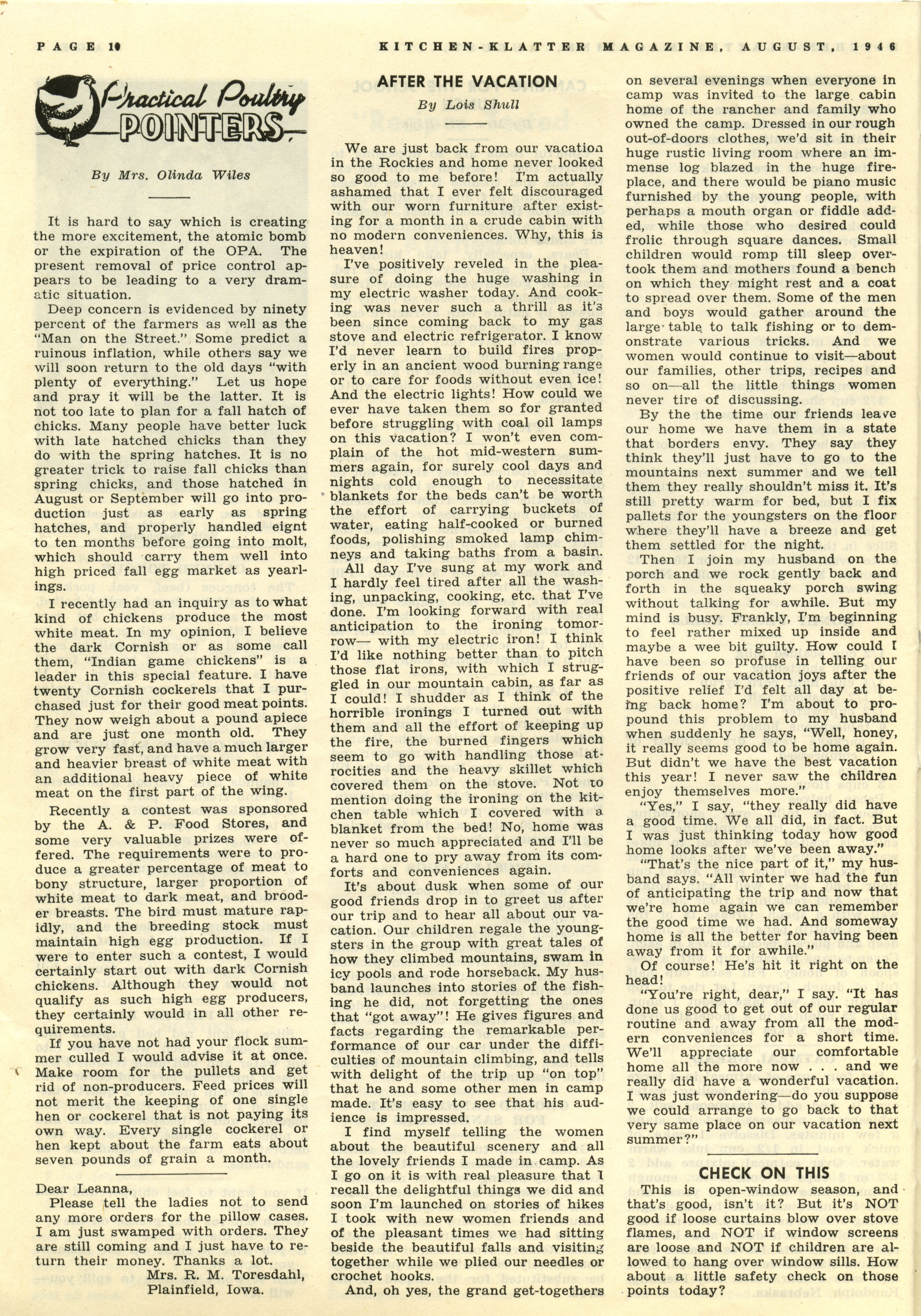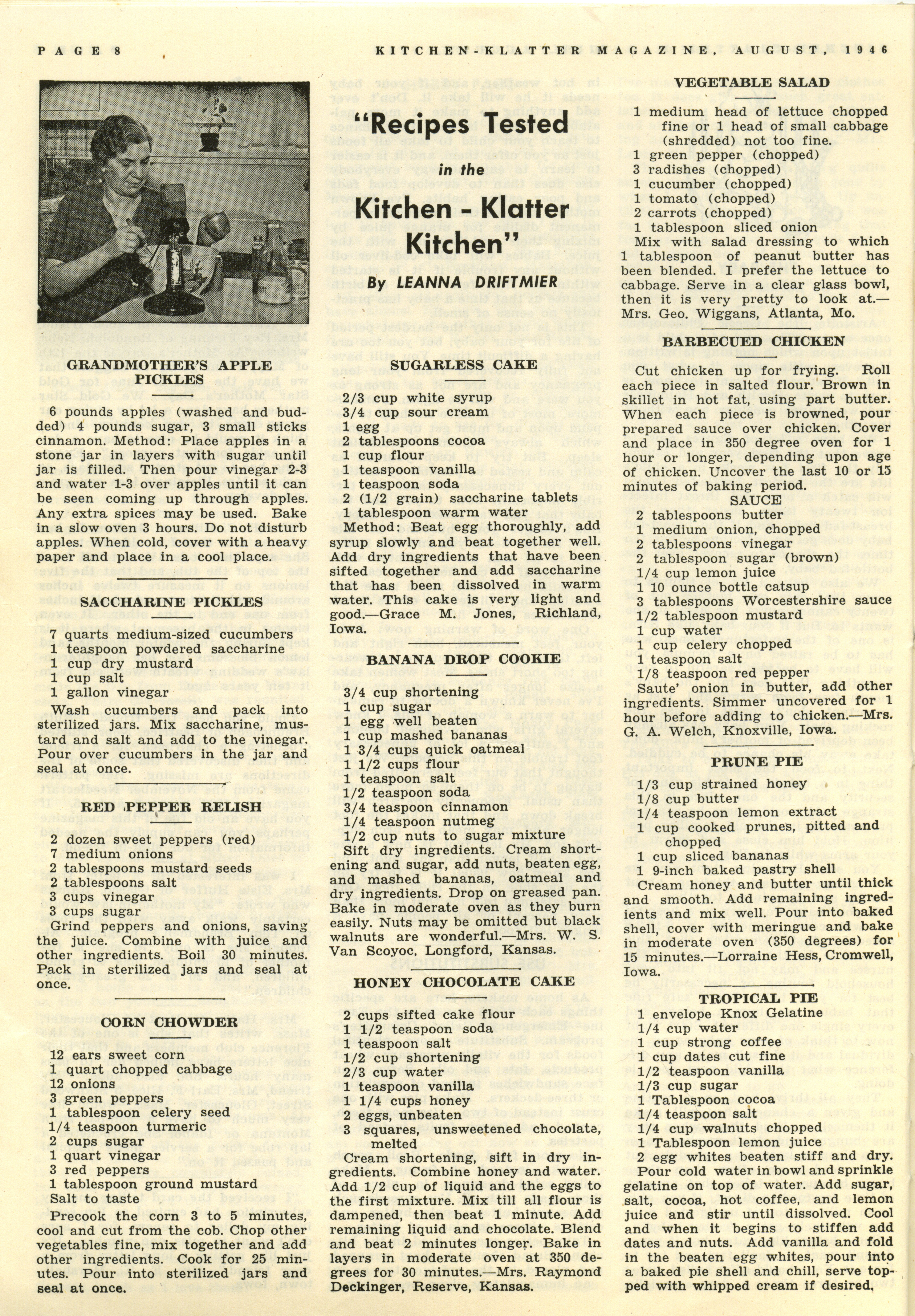 - "Kitchen-Klatter v. 11, n. 08, 1946", Kitchen-Klatter Magazine Issues, Iowa State University Library Digital Collections