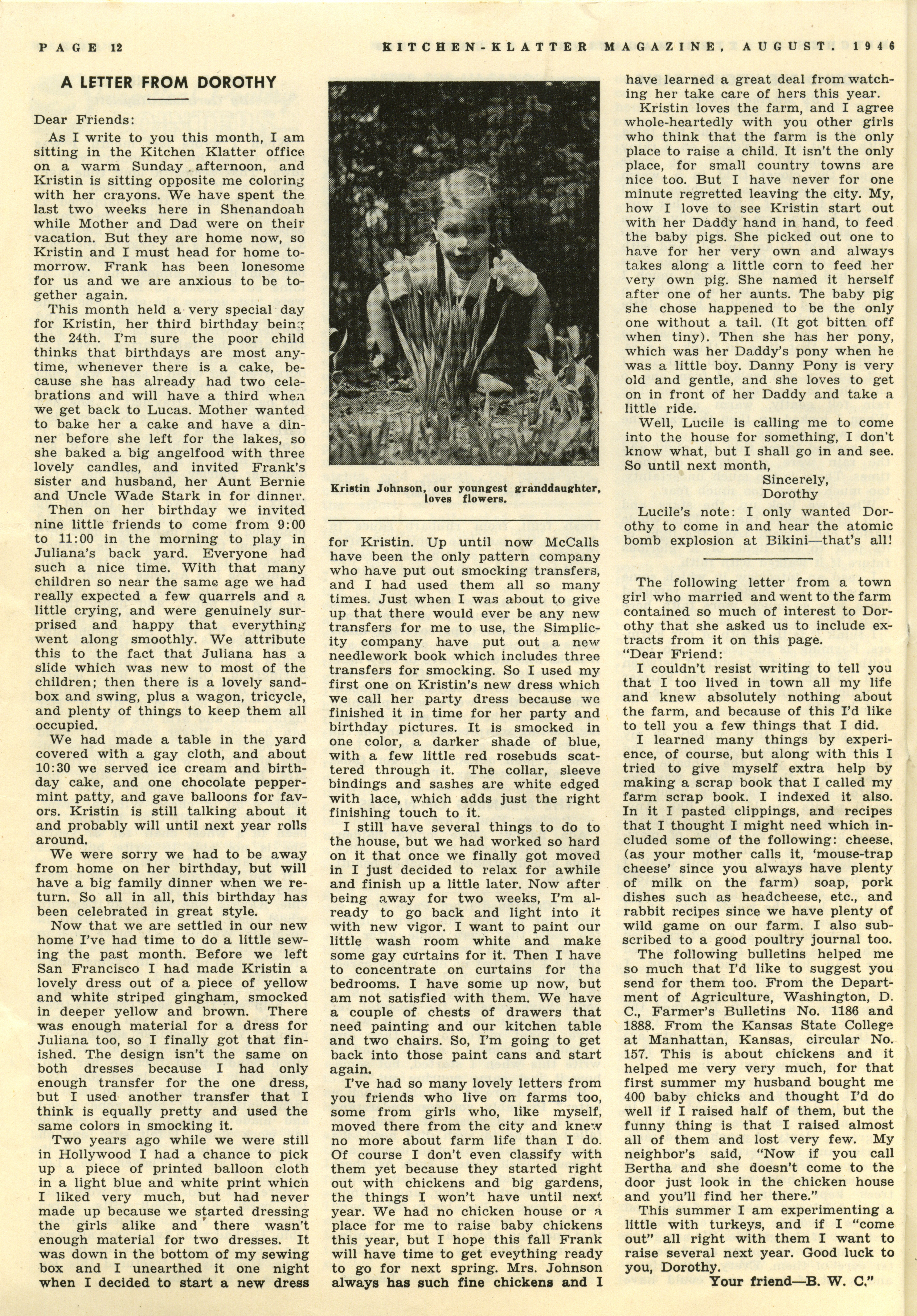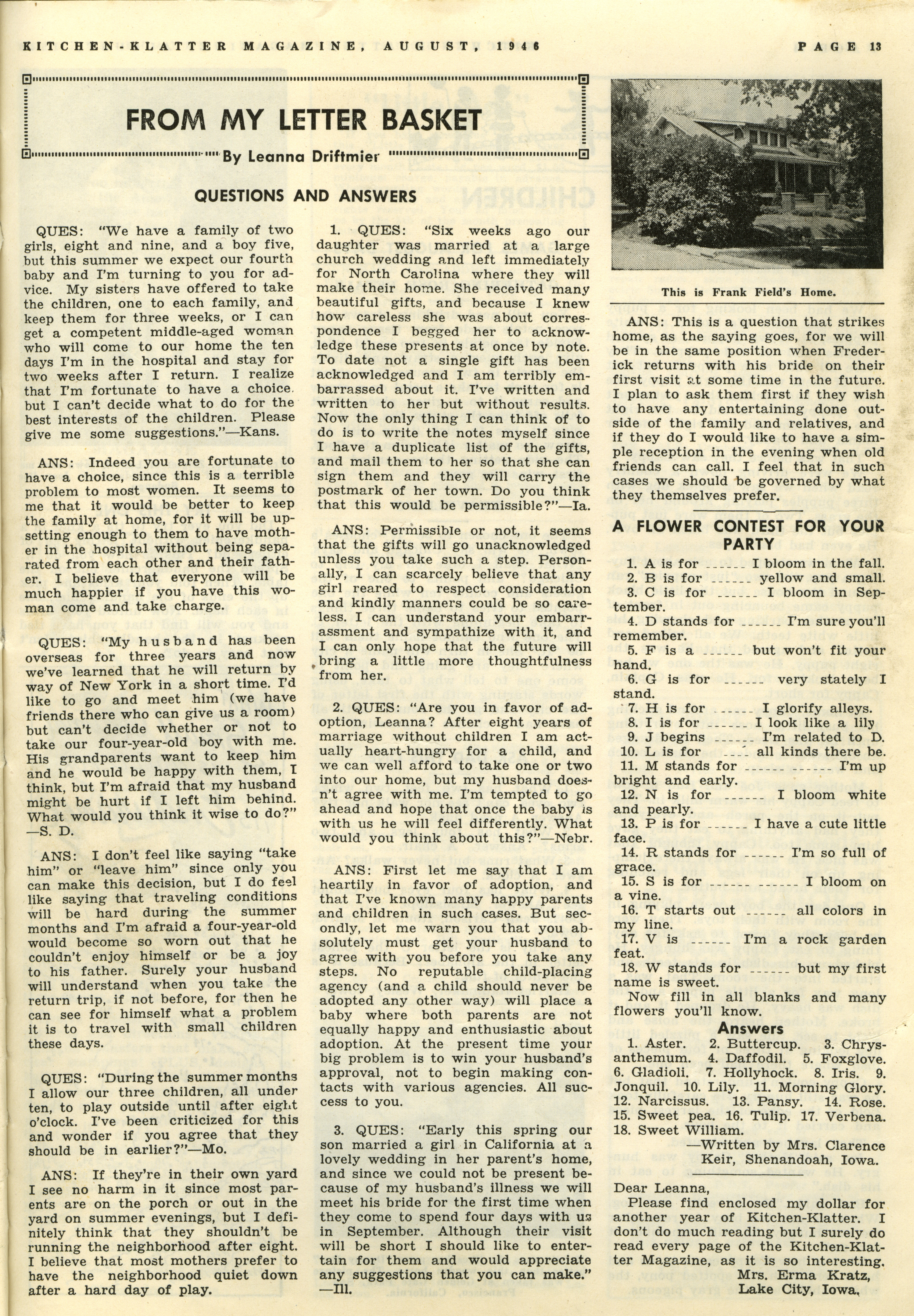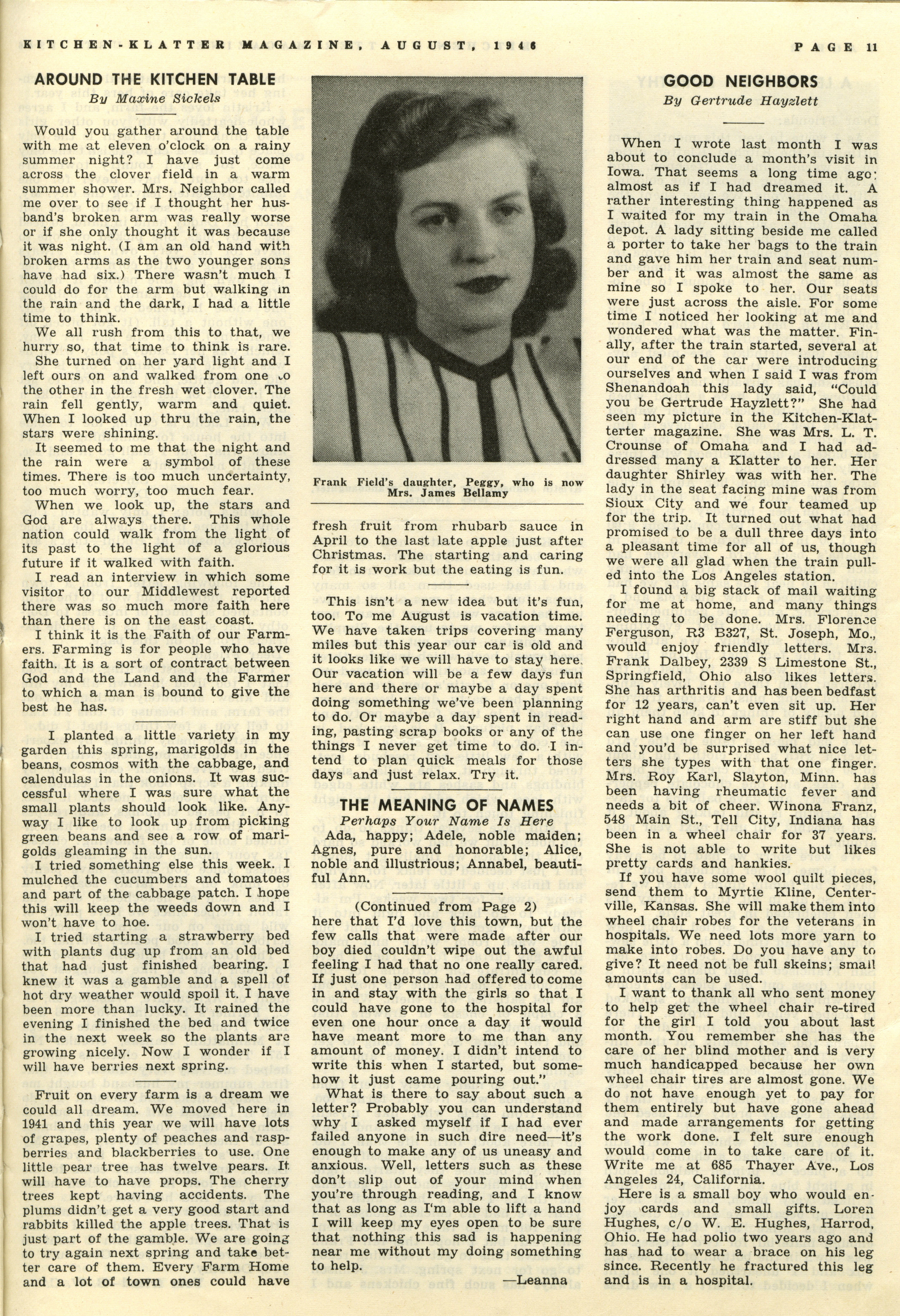 - "Kitchen-Klatter v. 11, n. 08, 1946", Kitchen-Klatter Magazine Issues, Iowa State University Library Digital Collections