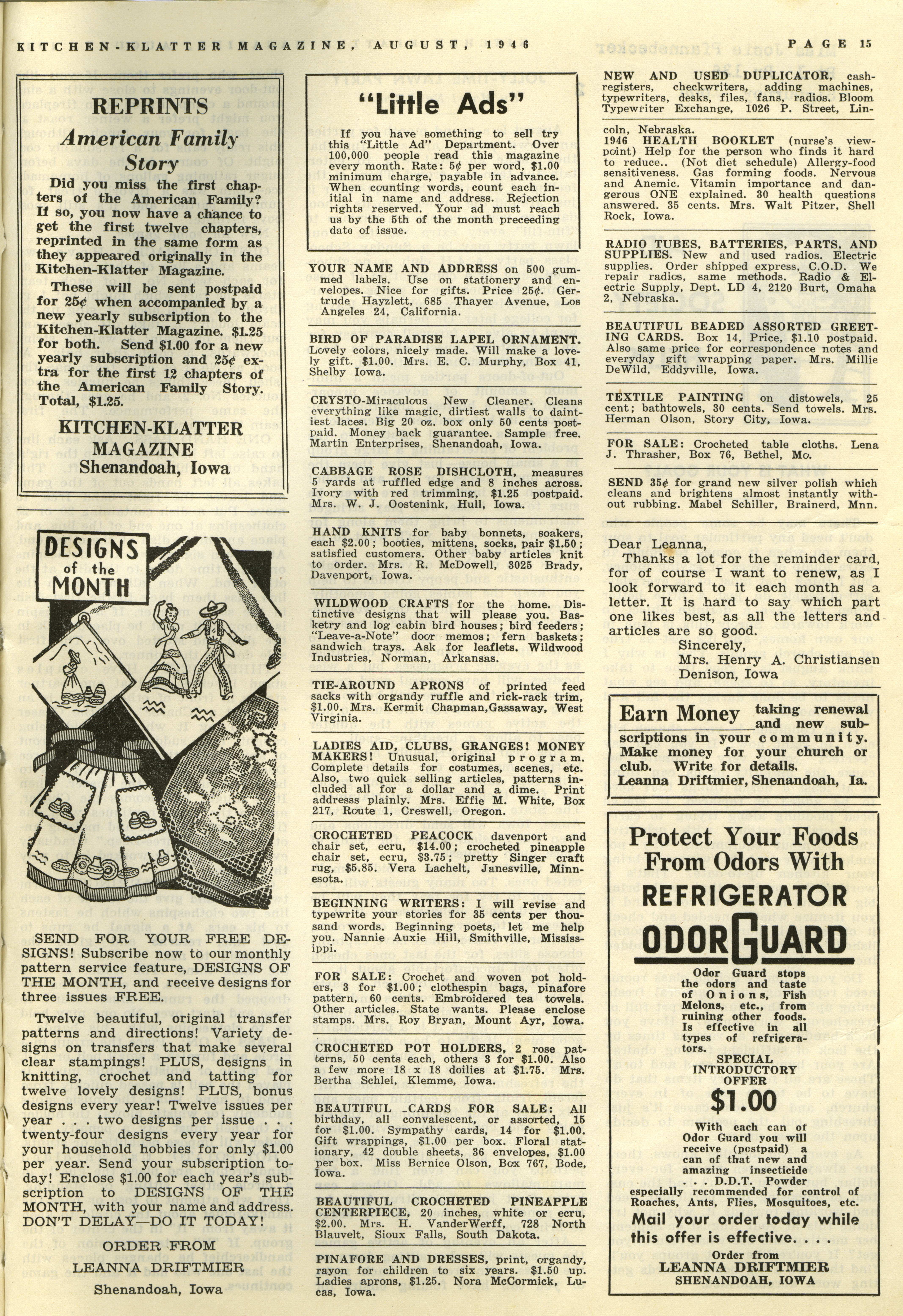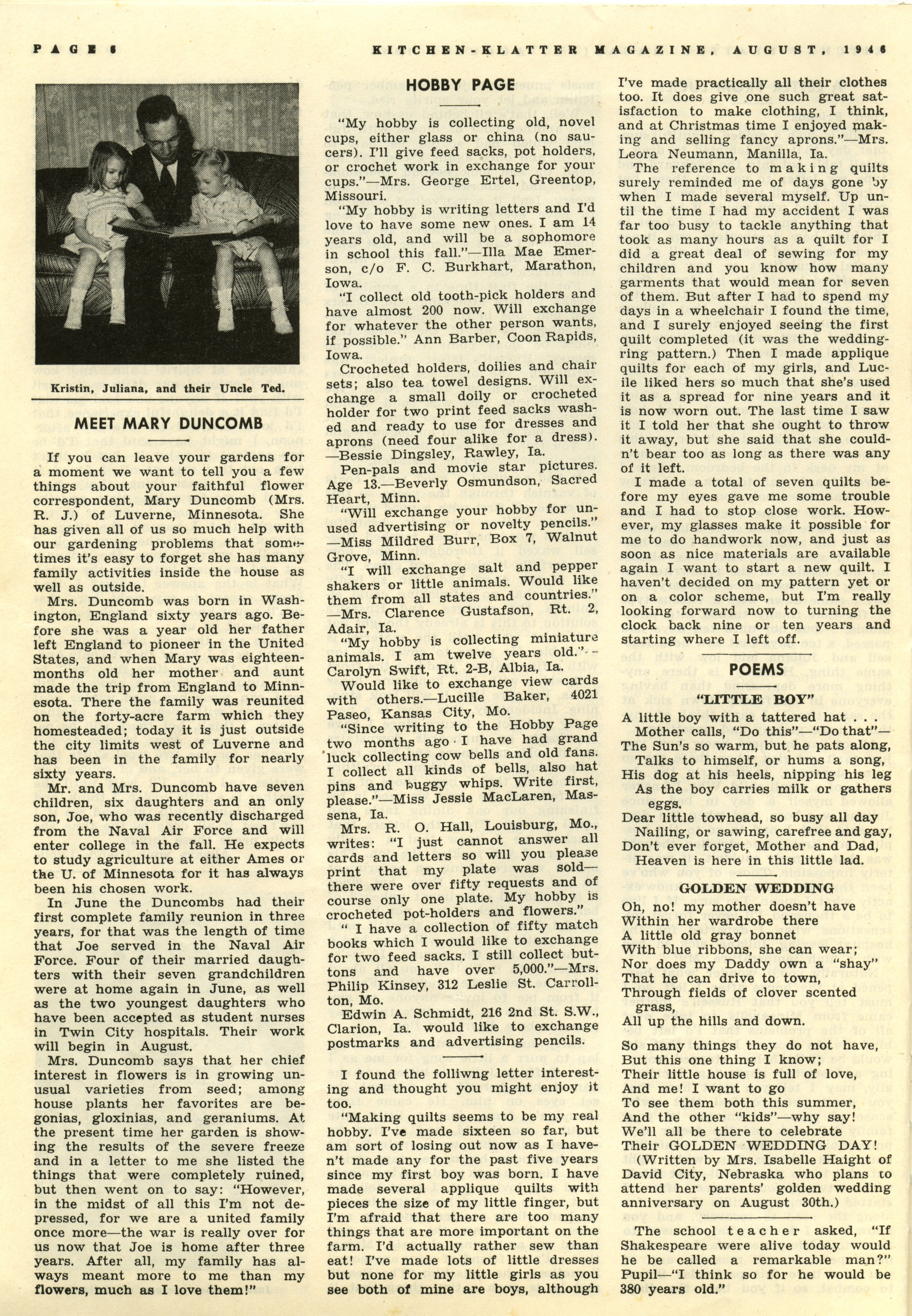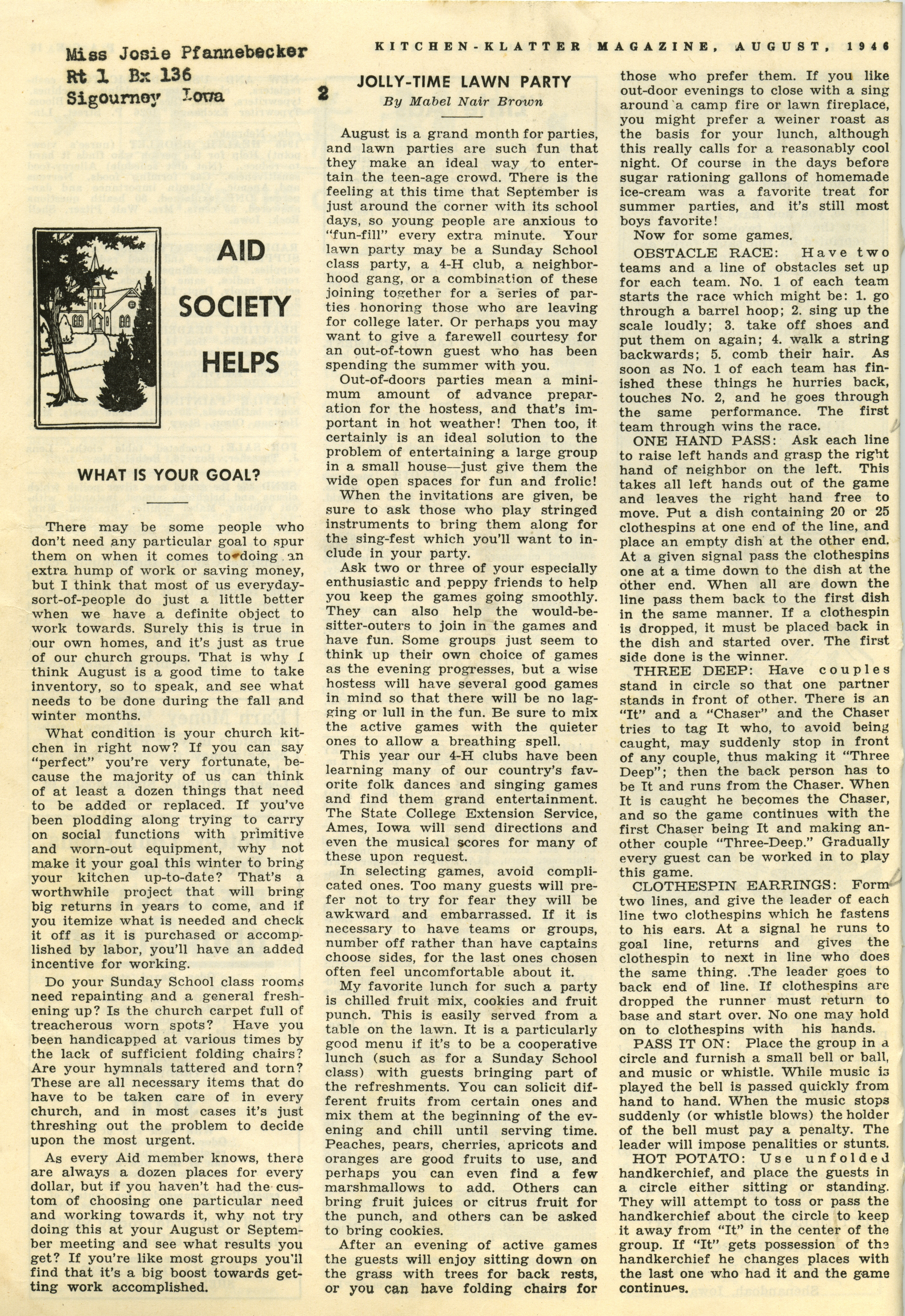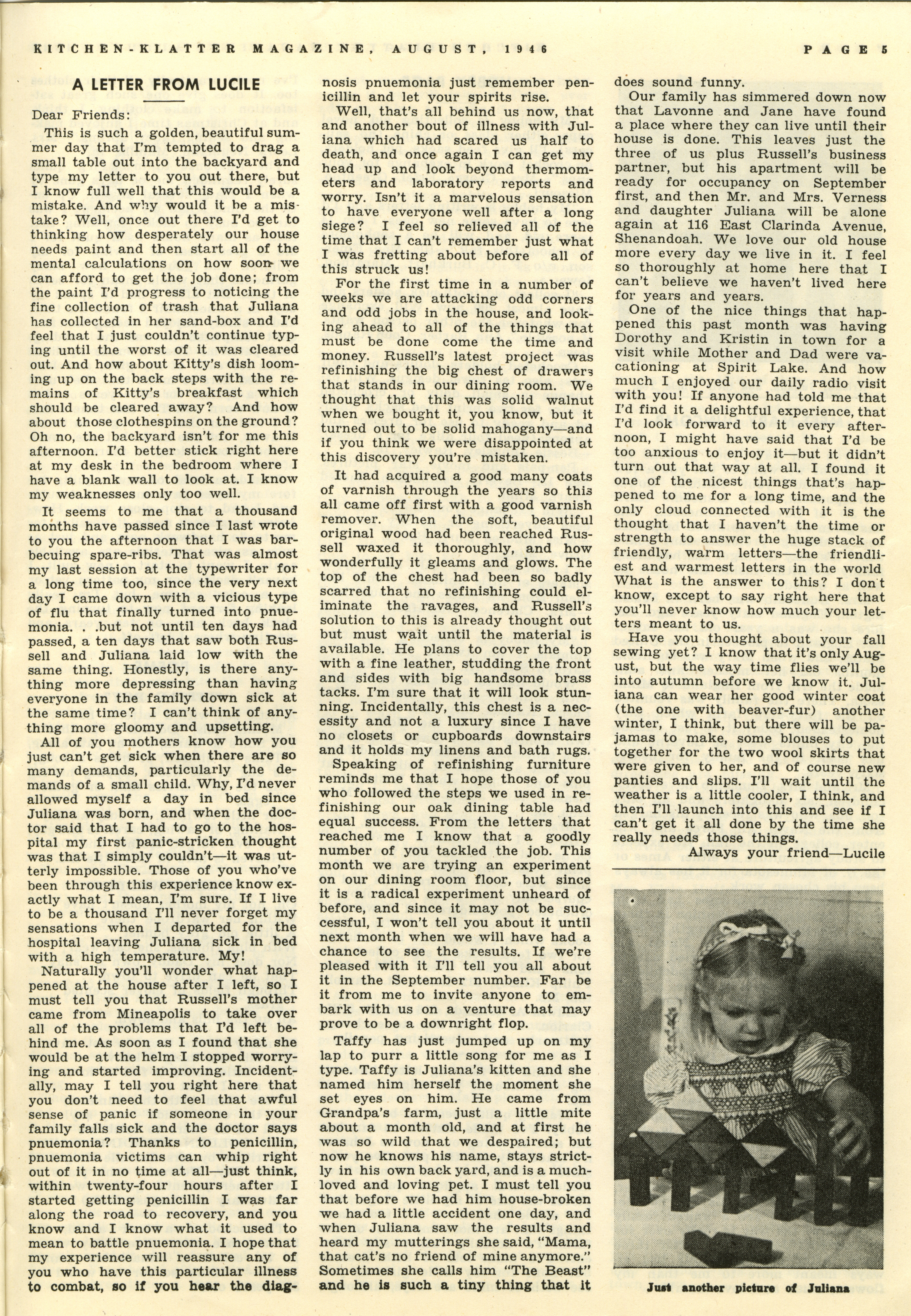 - "Kitchen-Klatter v. 11, n. 08, 1946", Kitchen-Klatter Magazine Issues, Iowa State University Library Digital Collections