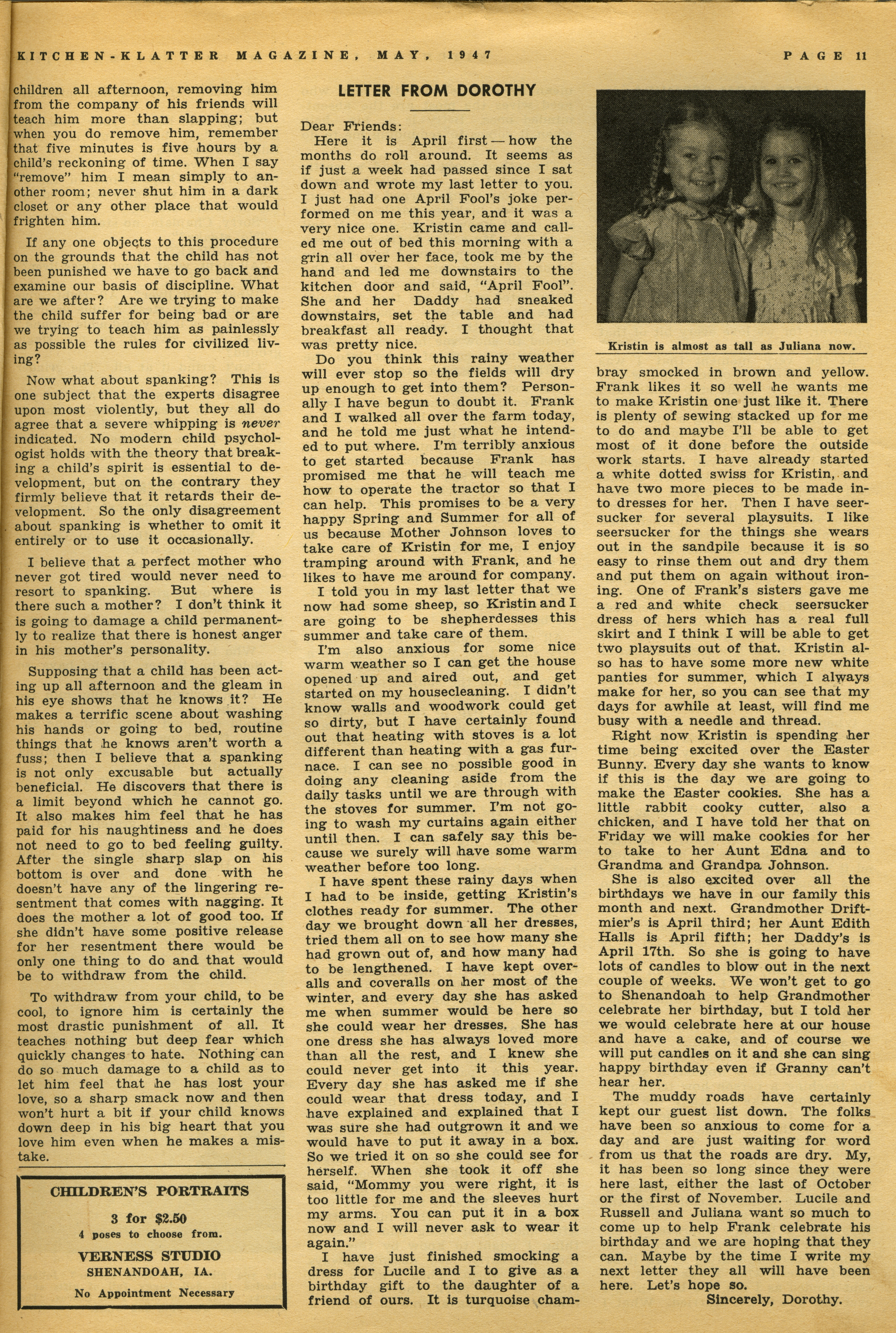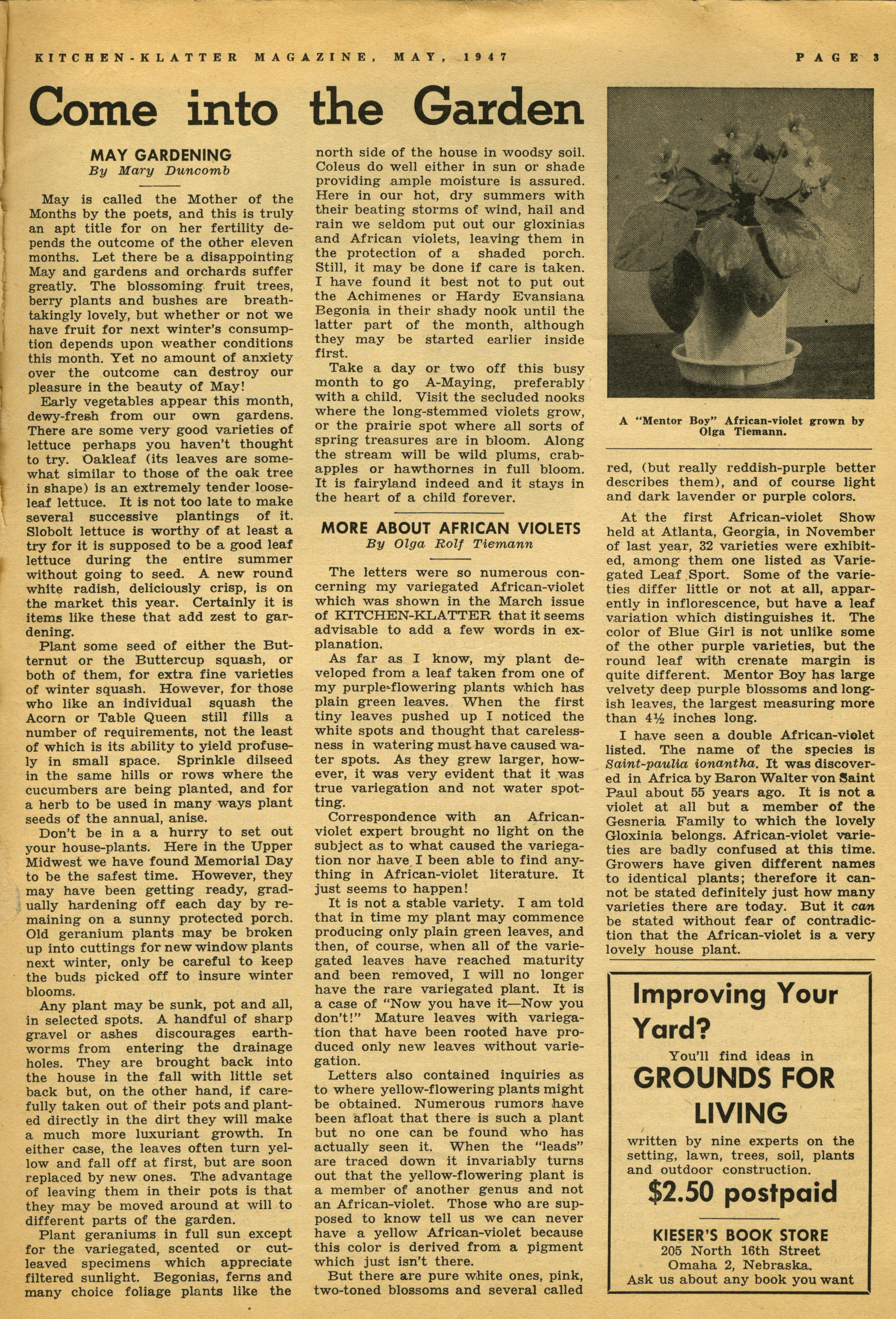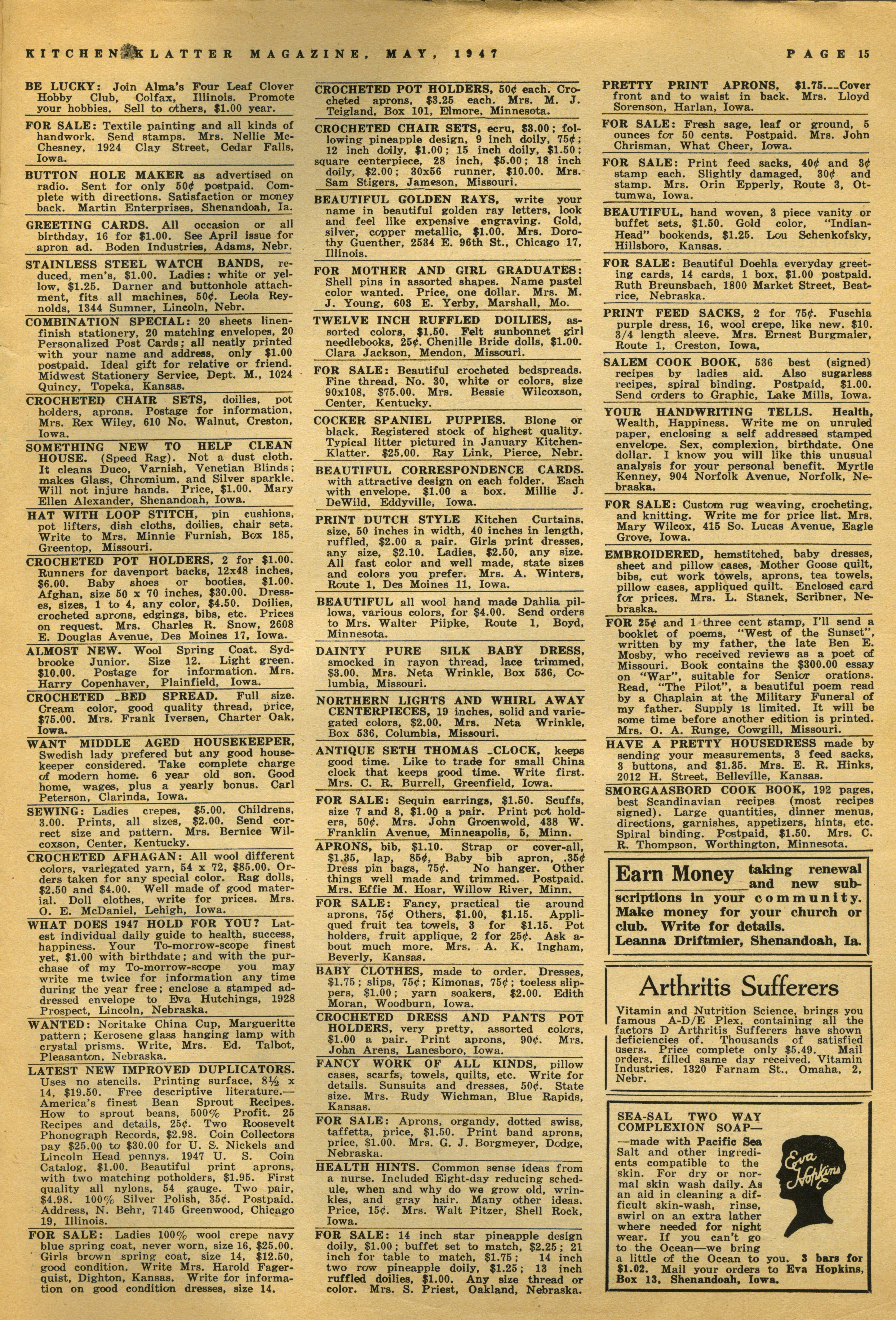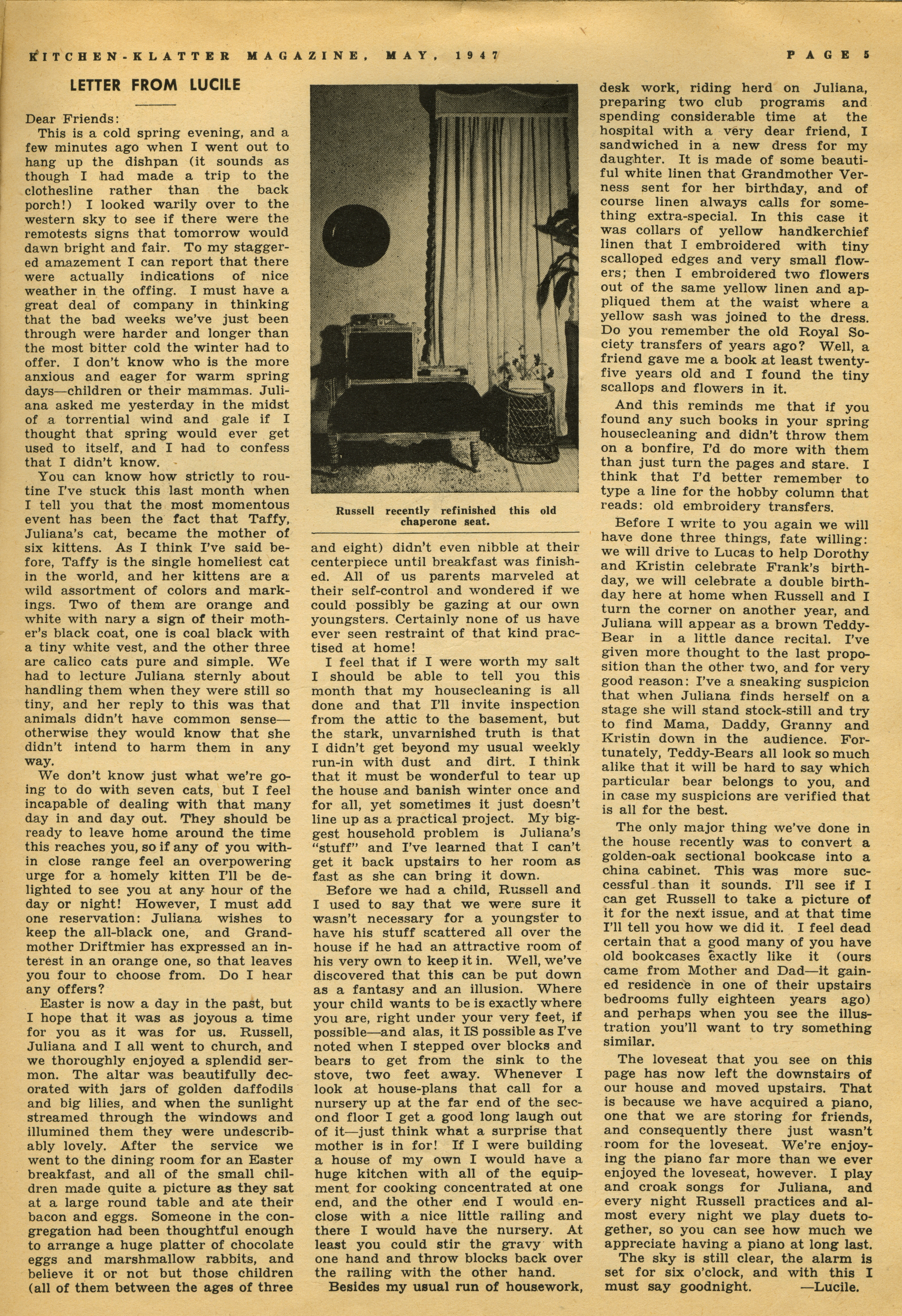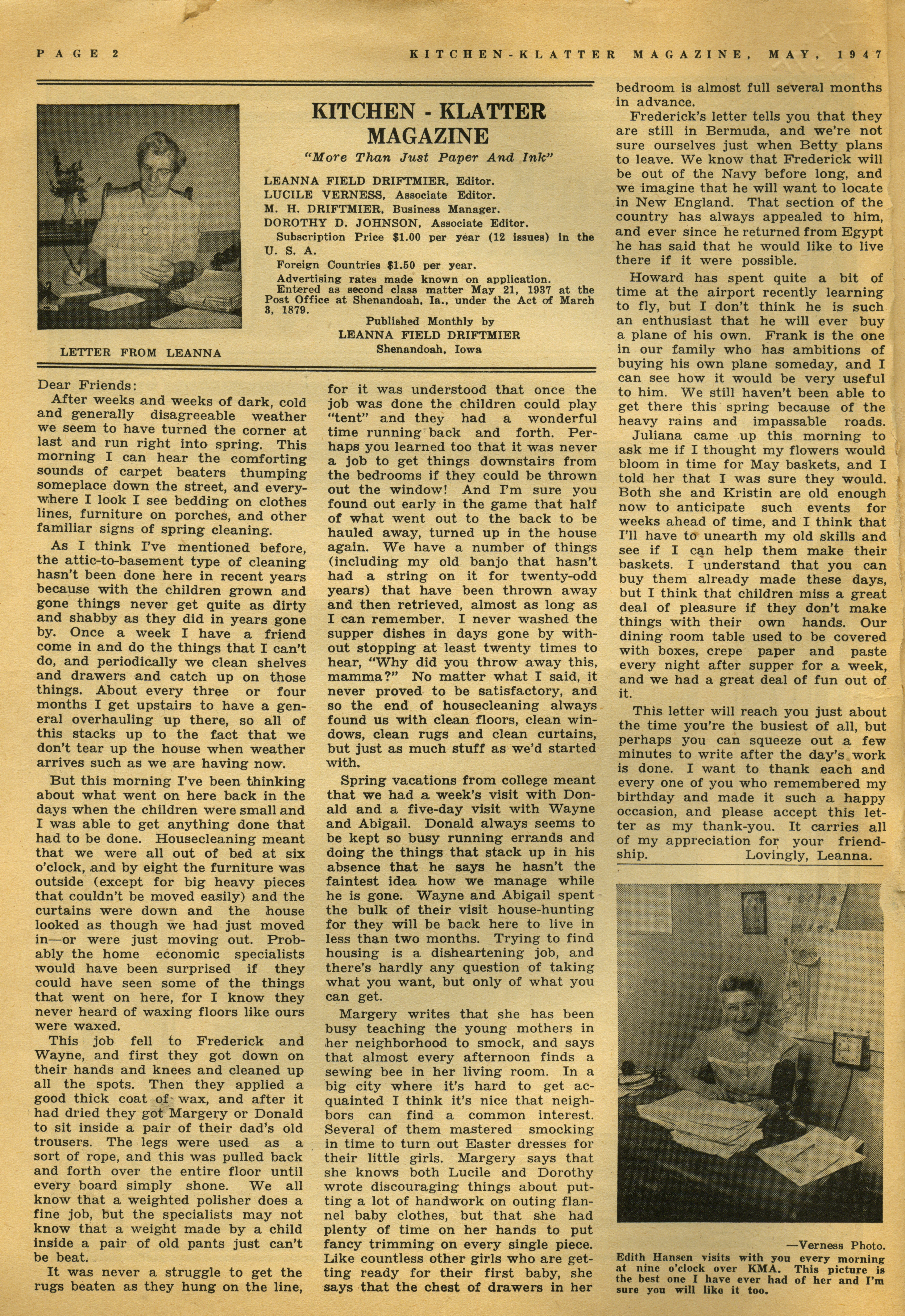 - "Kitchen-Klatter v. 12, n. 05, 1947", Kitchen-Klatter Magazine Issues, Iowa State University Library Digital Collections