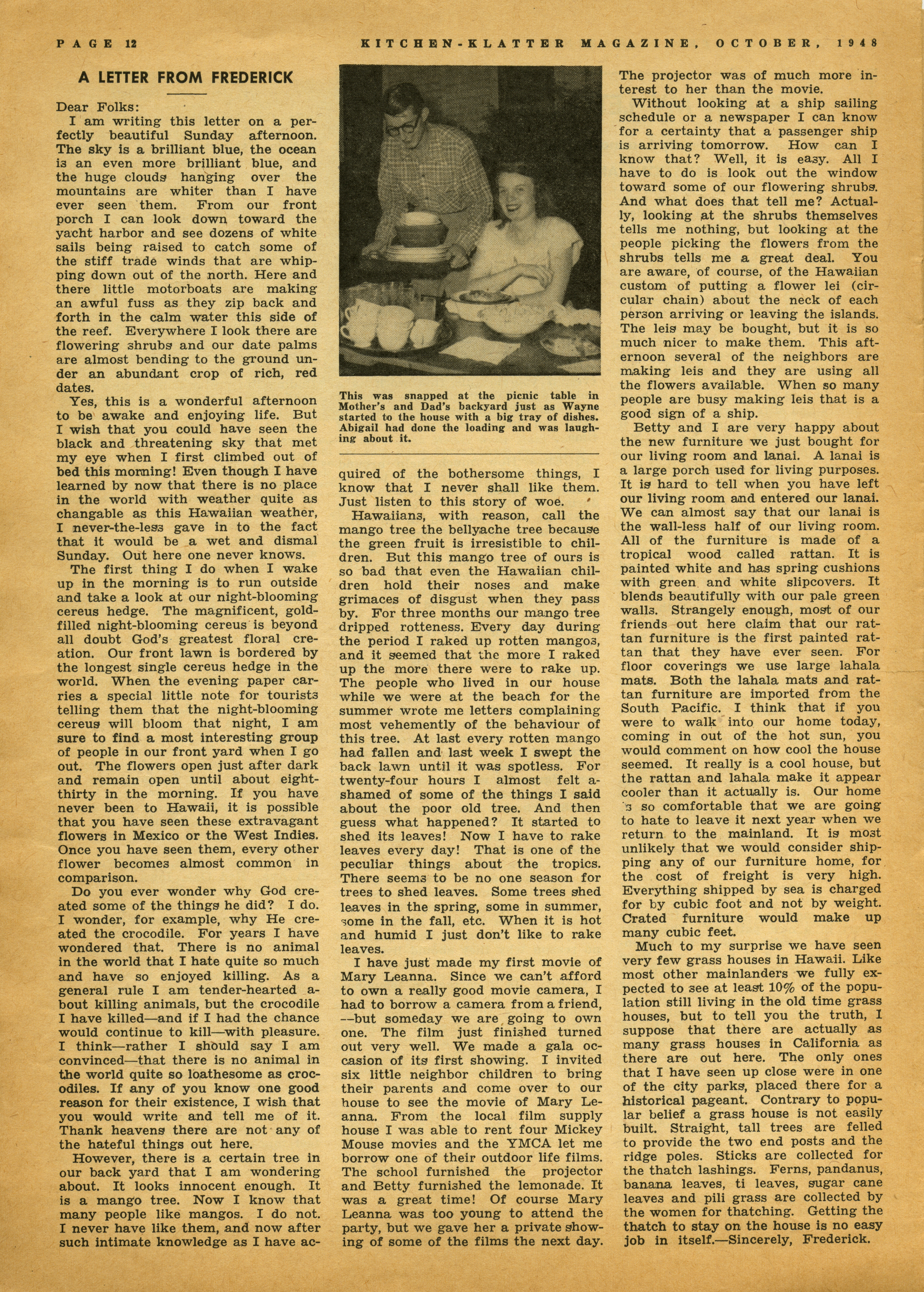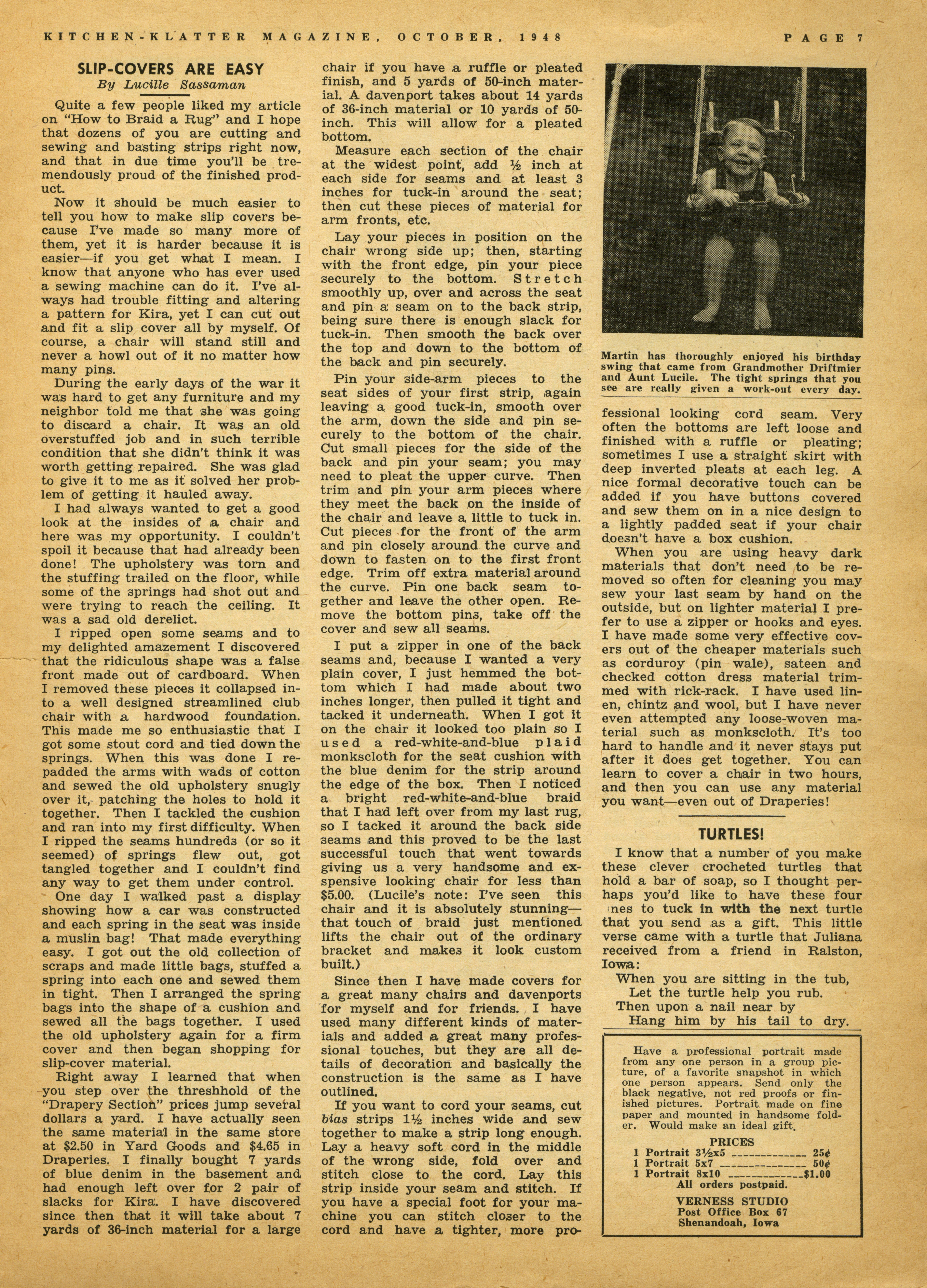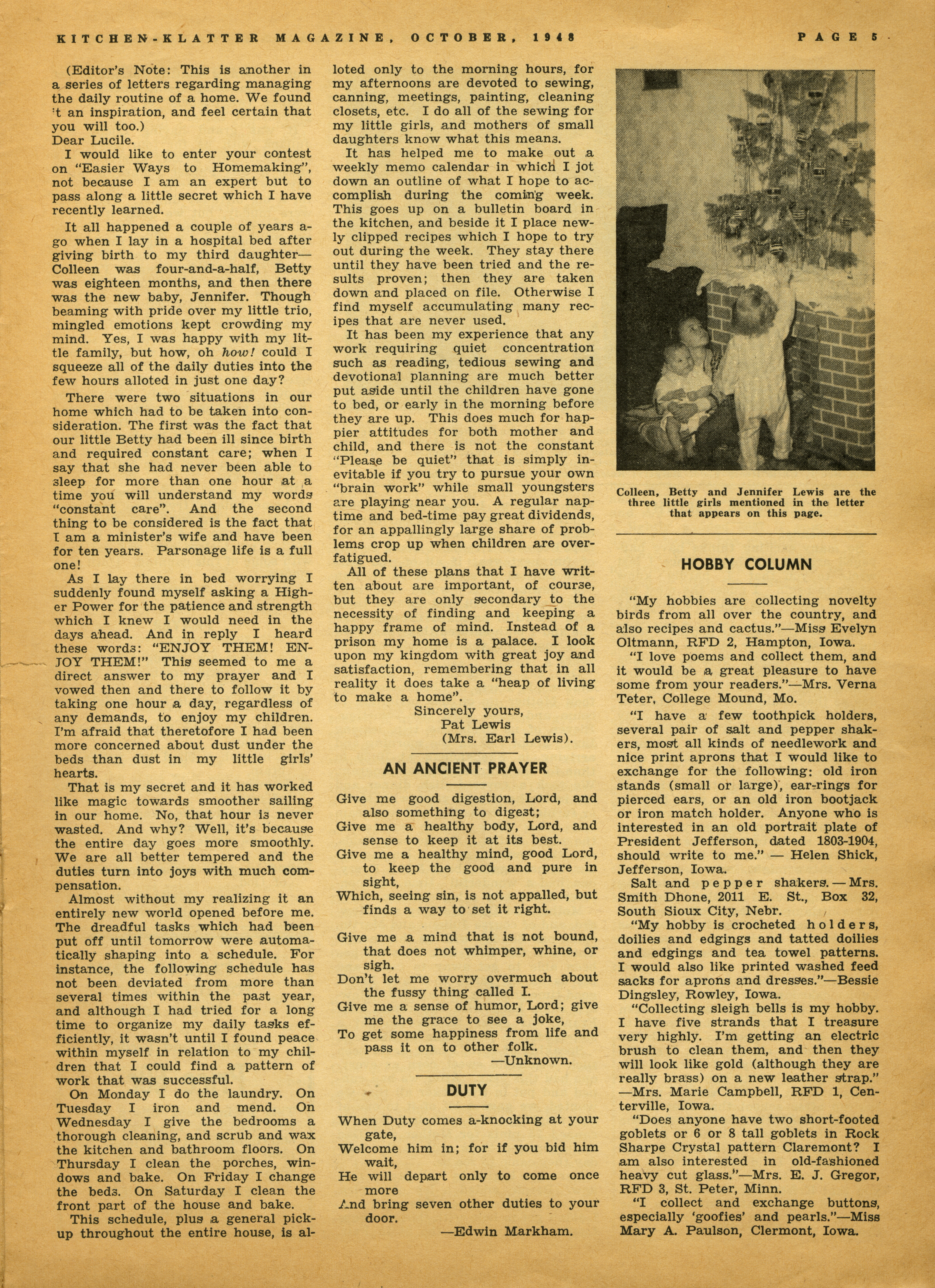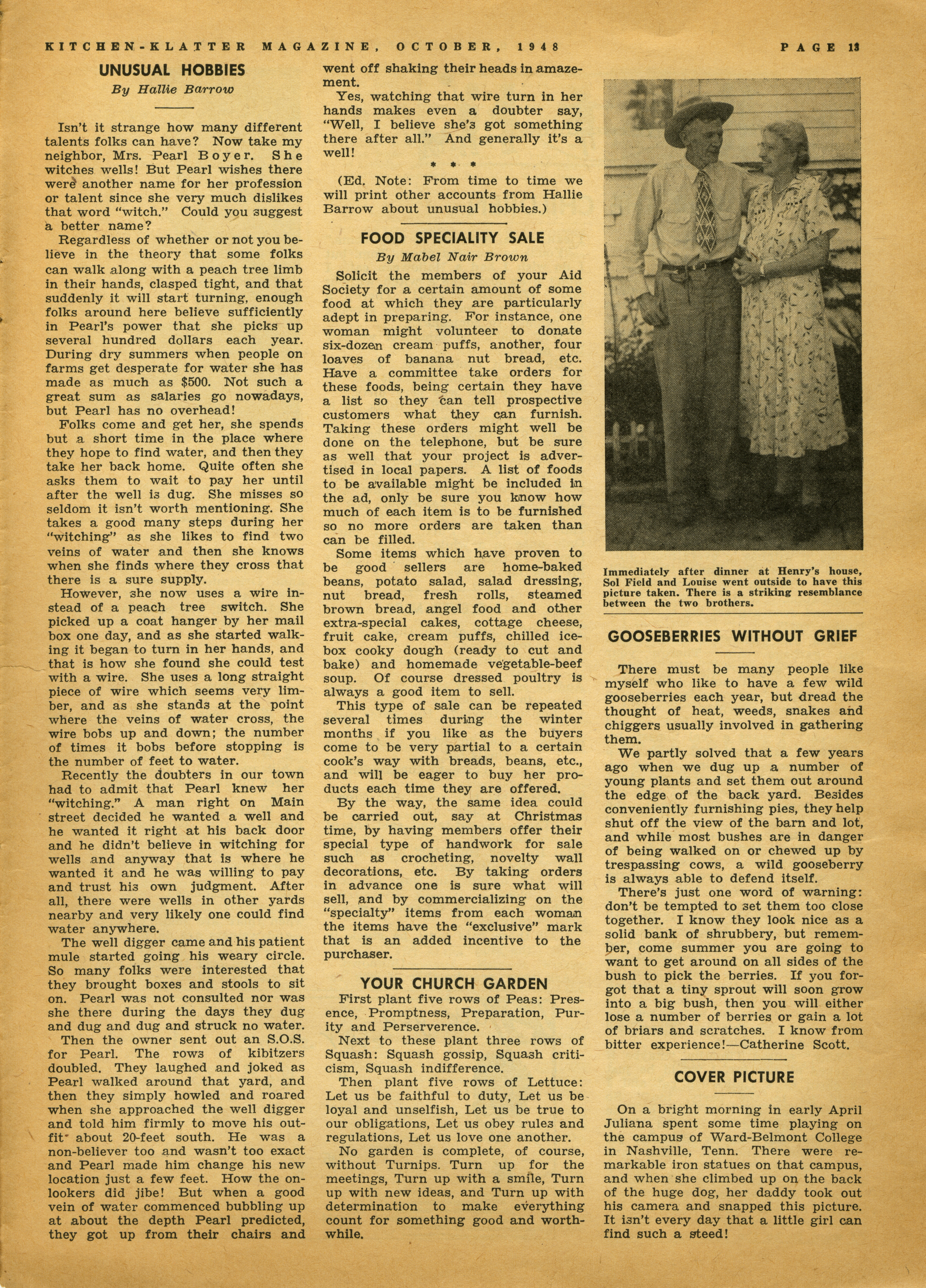 - "Kitchen-Klatter v. 13, n. 10, 1948", Kitchen-Klatter Magazine Issues, Iowa State University Library Digital Collections