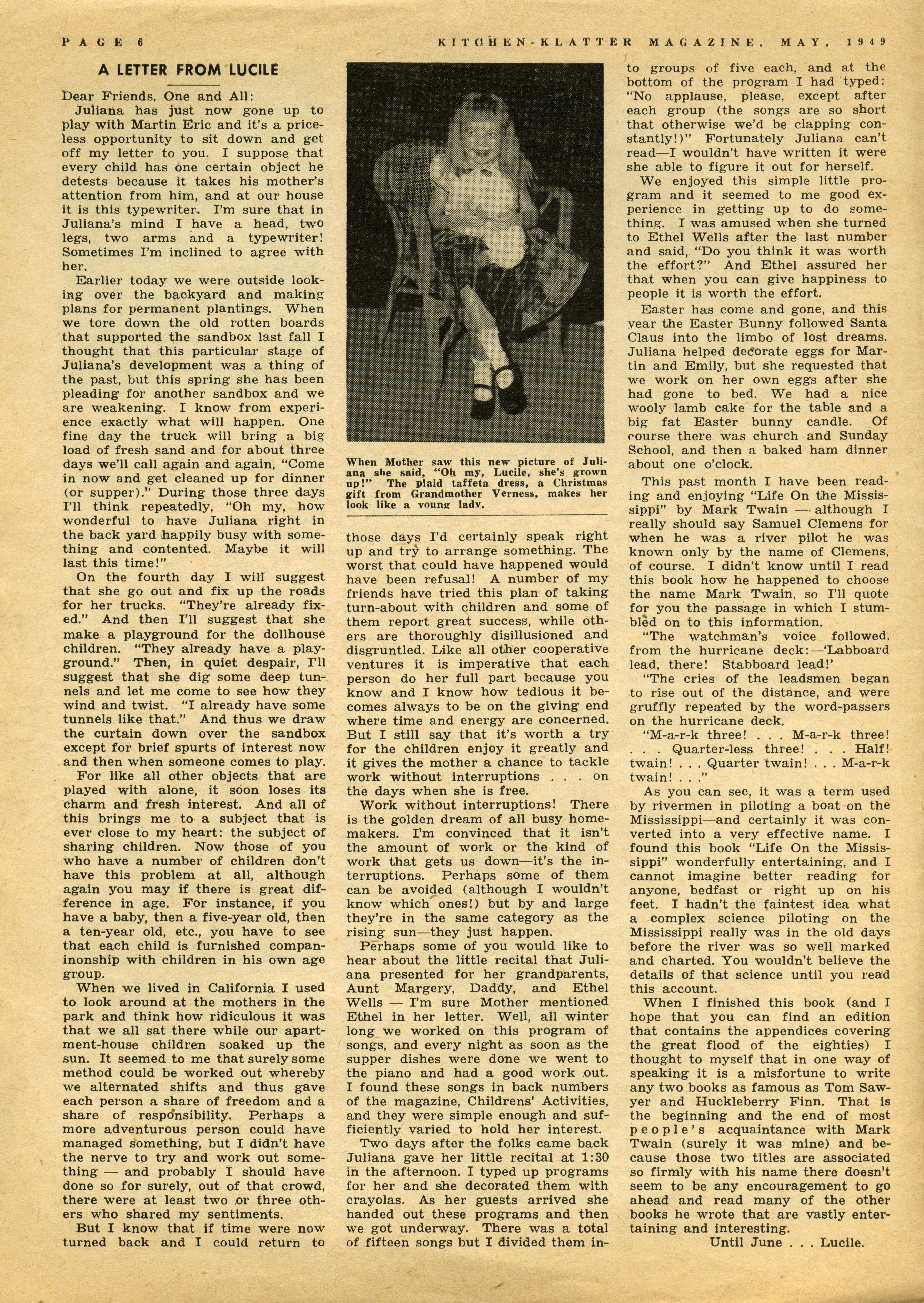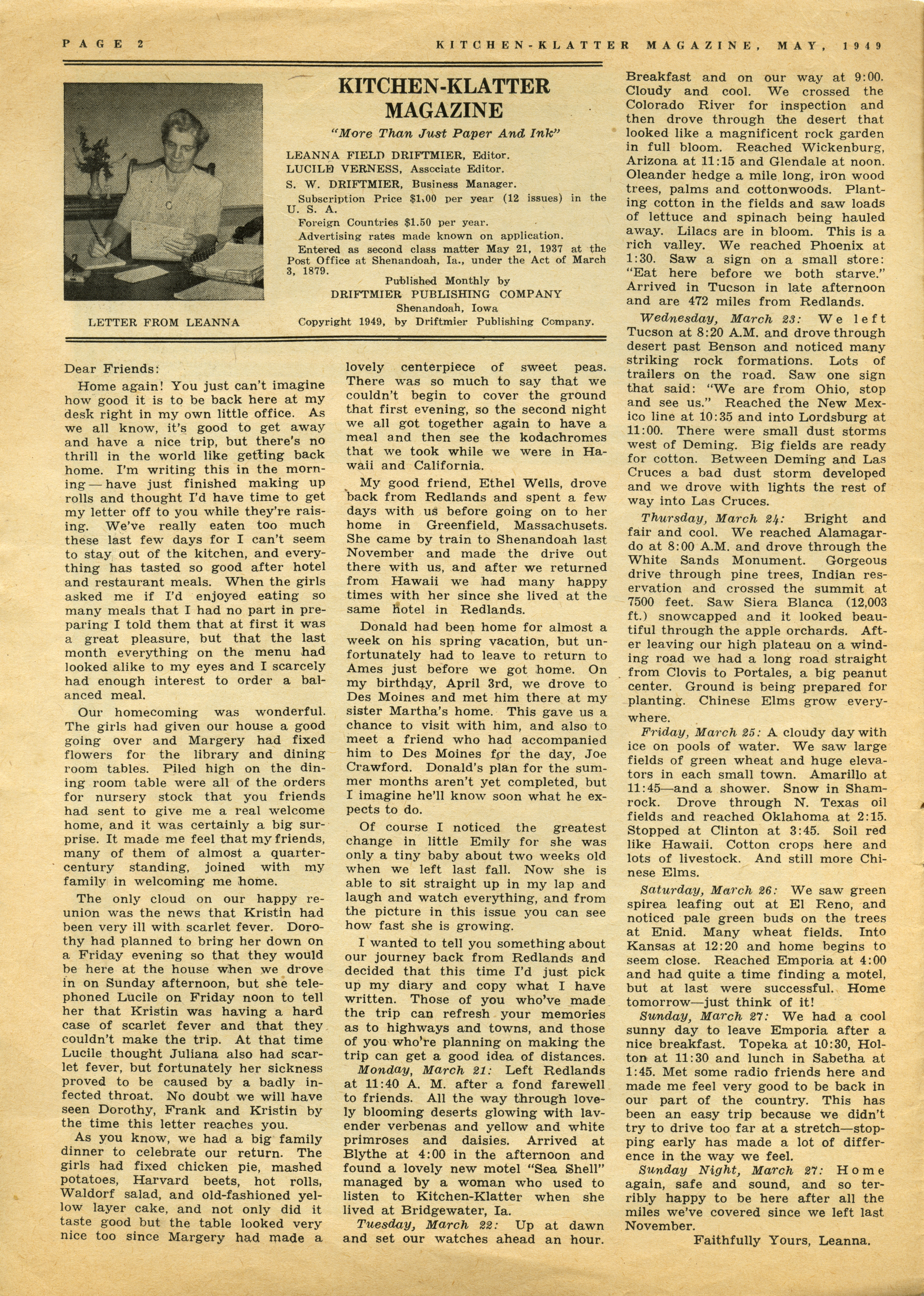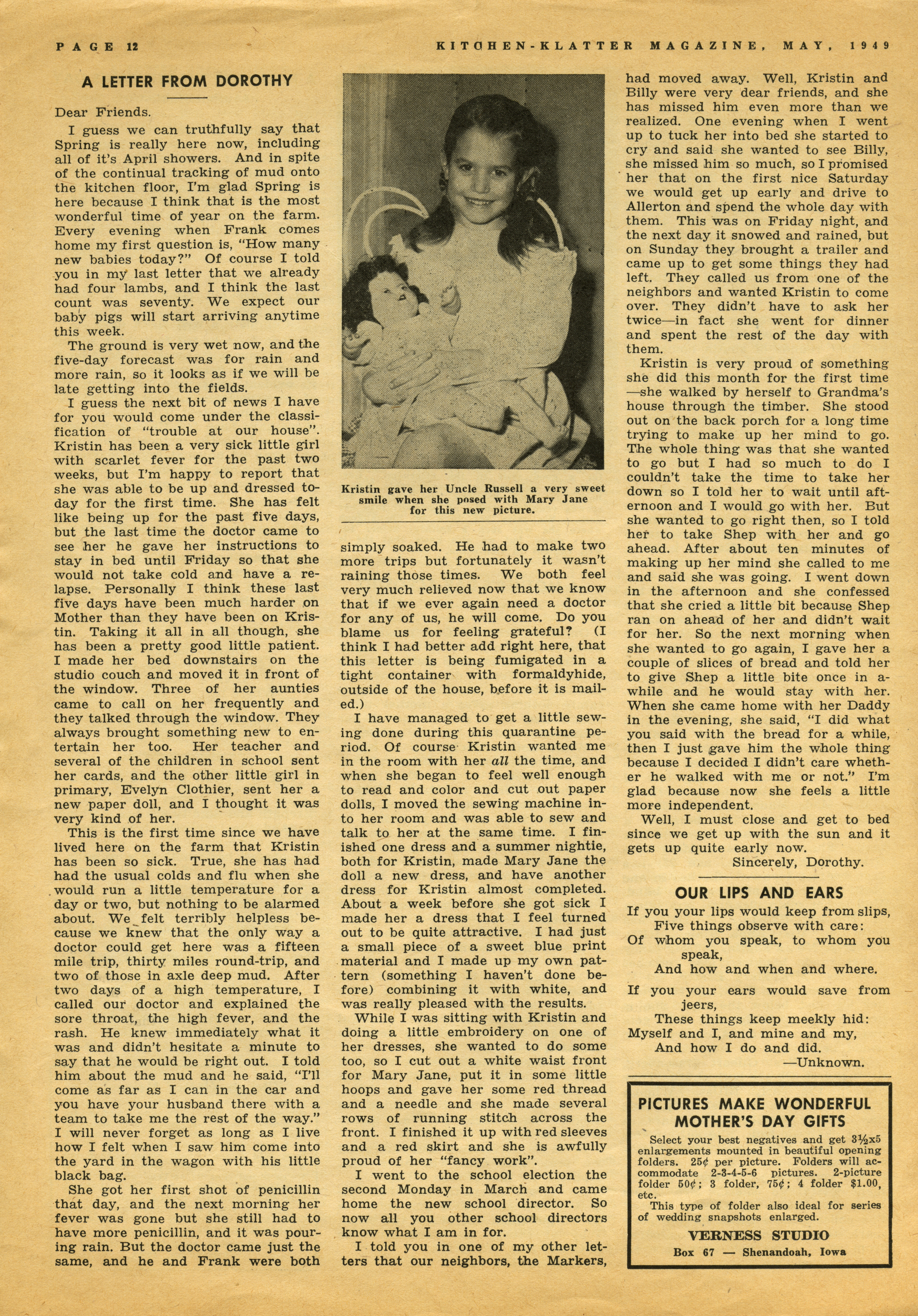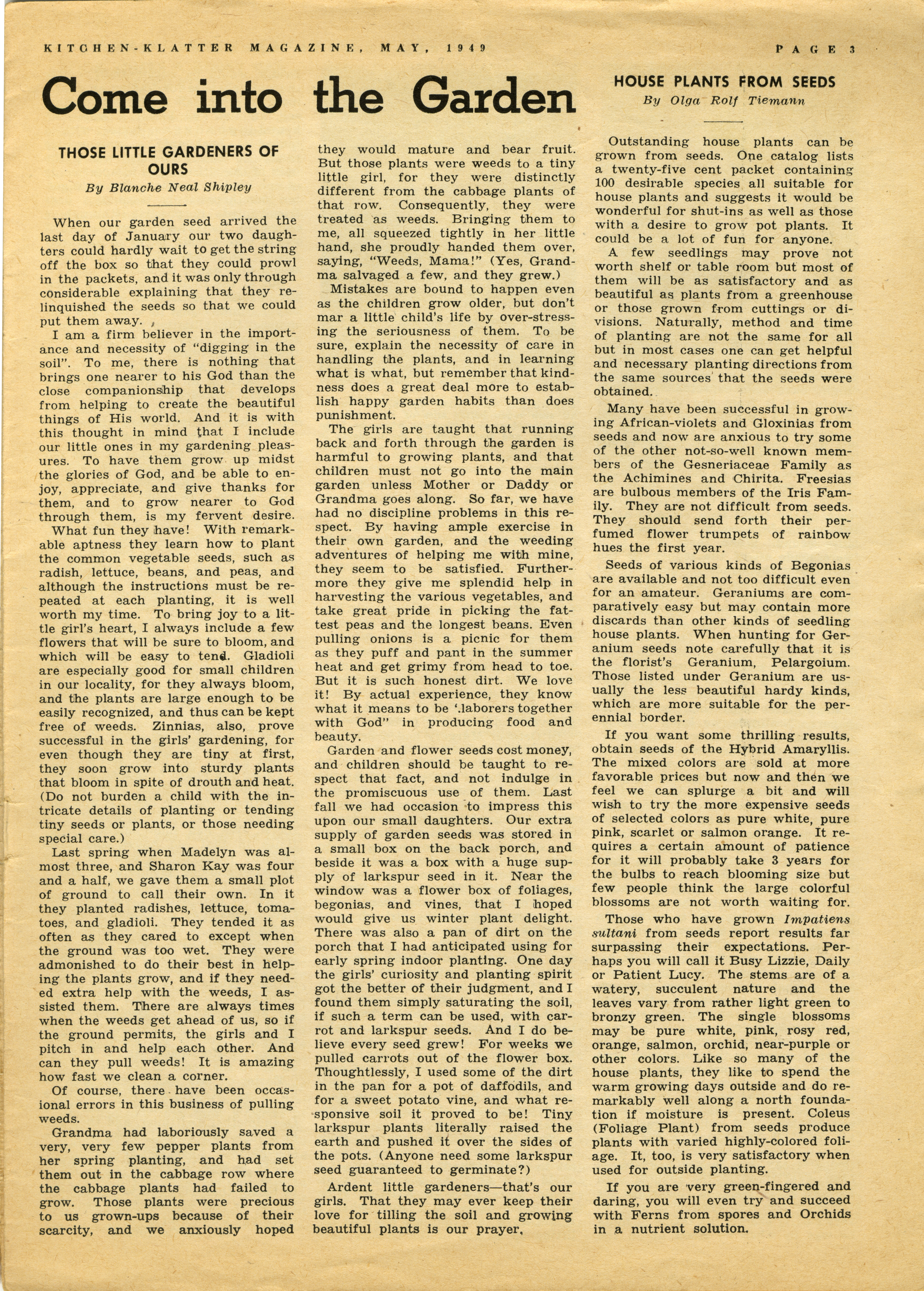 - "Kitchen-Klatter v. 14, n. 05, 1949", Kitchen-Klatter Magazine Issues, Iowa State University Library Digital Collections