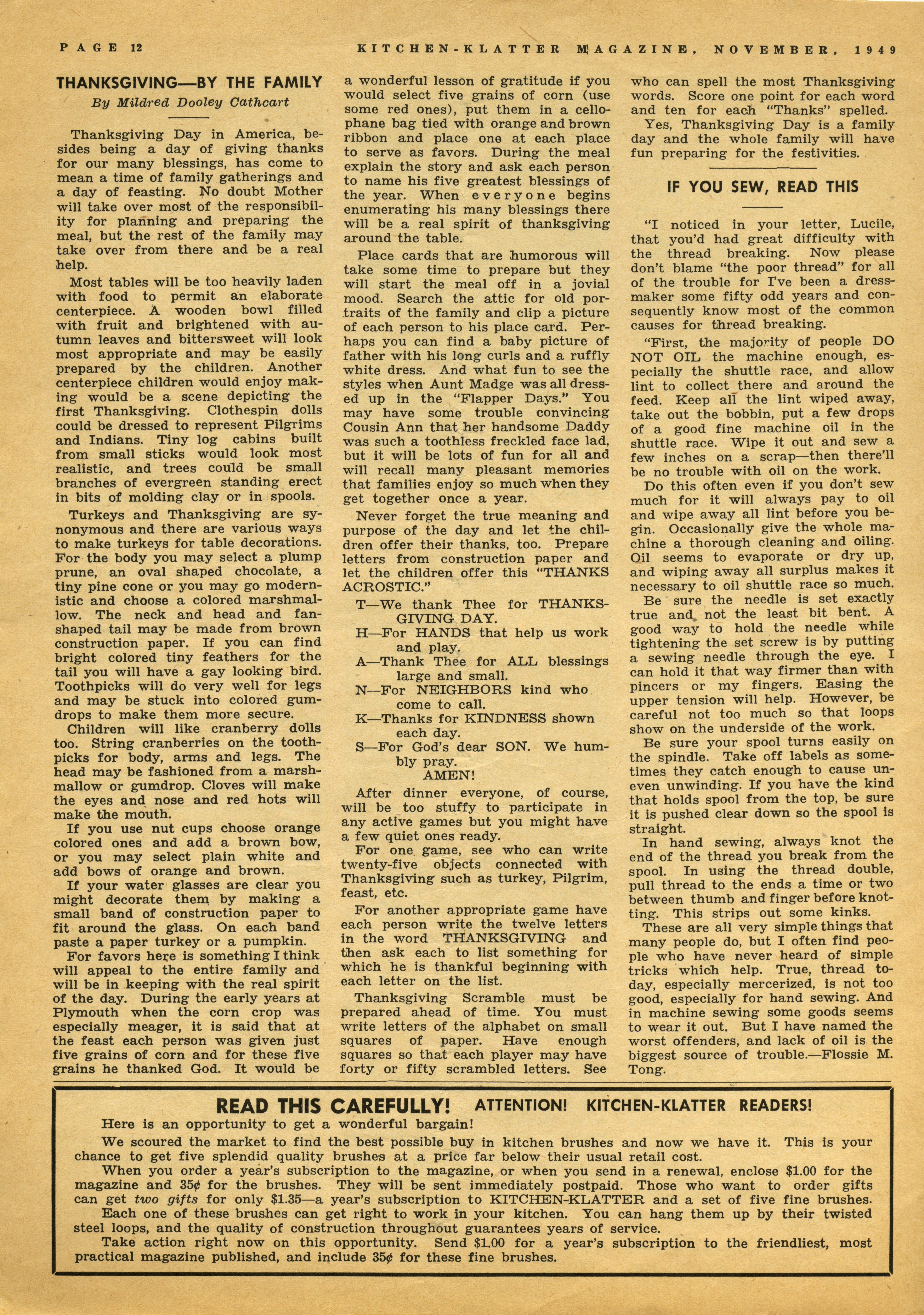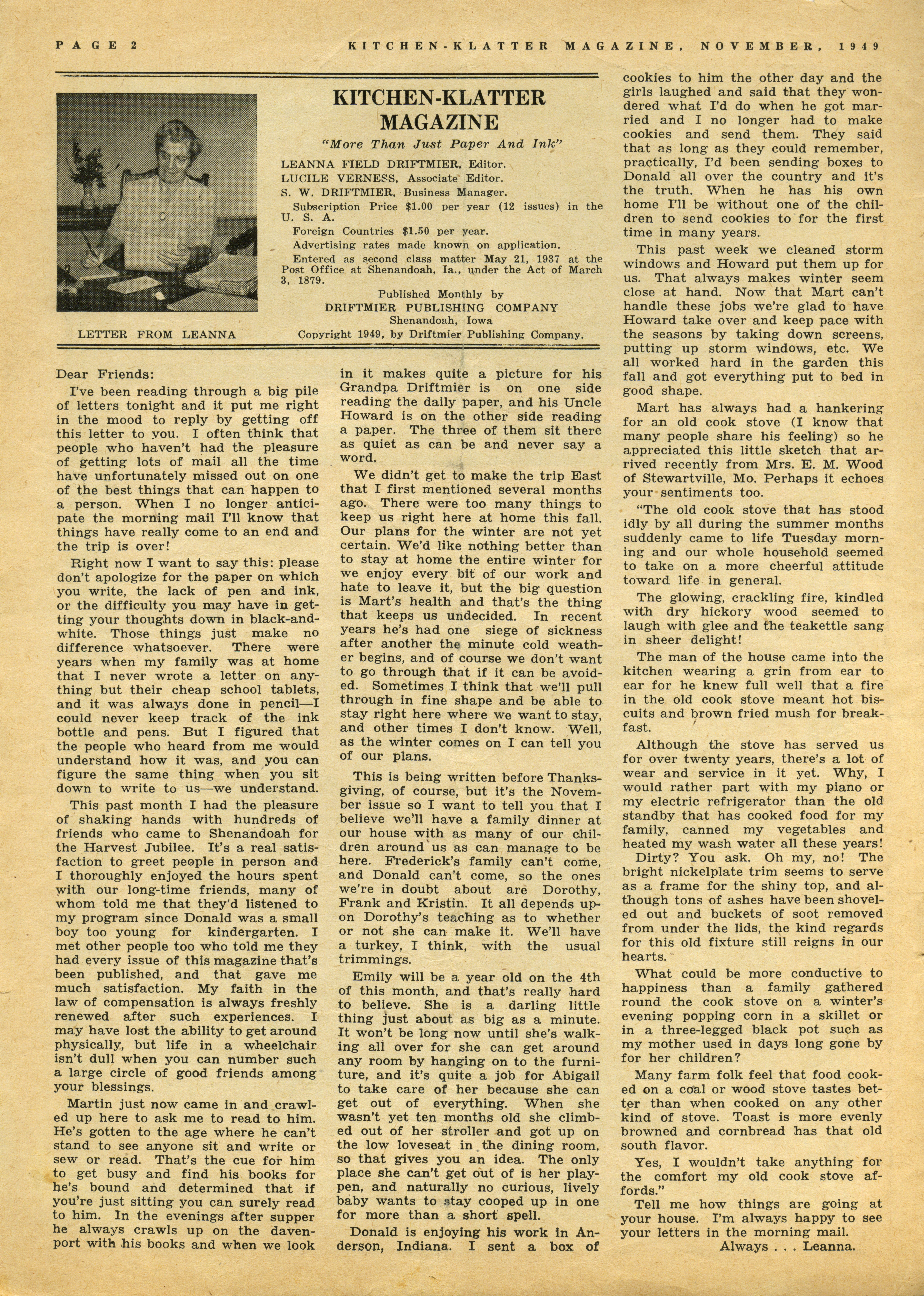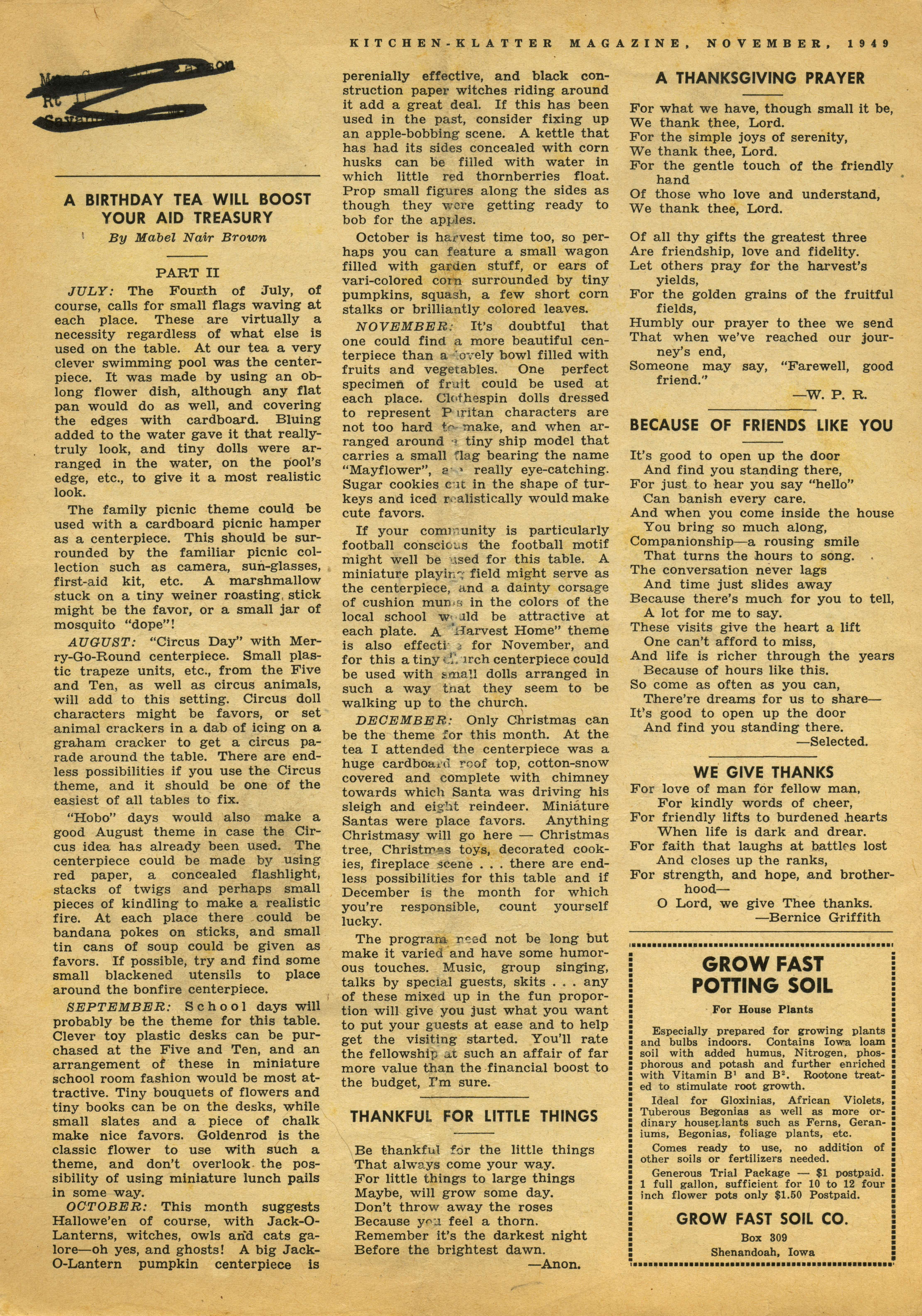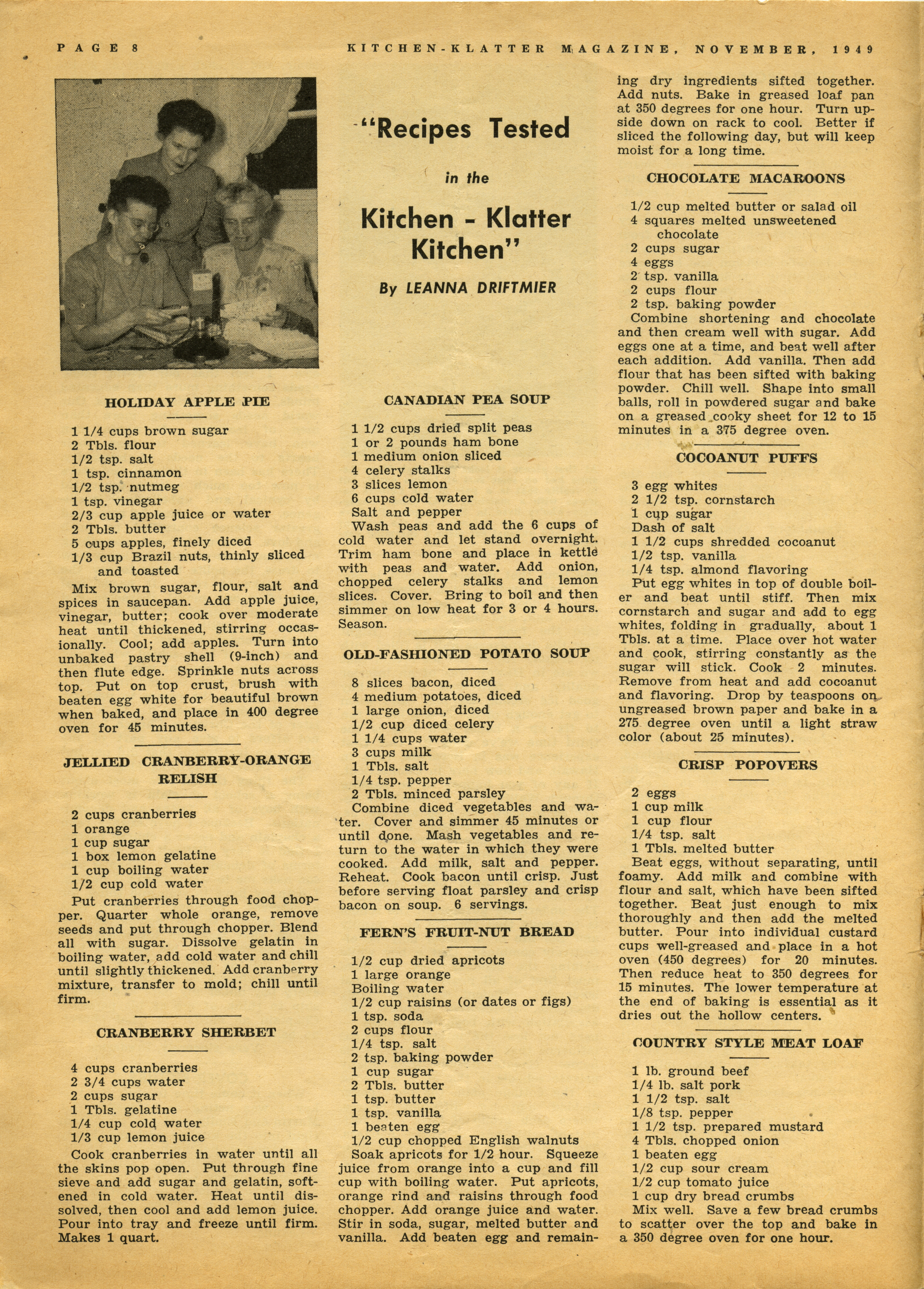 - "Kitchen-Klatter v. 14, n. 11, 1949", Kitchen-Klatter Magazine Issues, Iowa State University Library Digital Collections