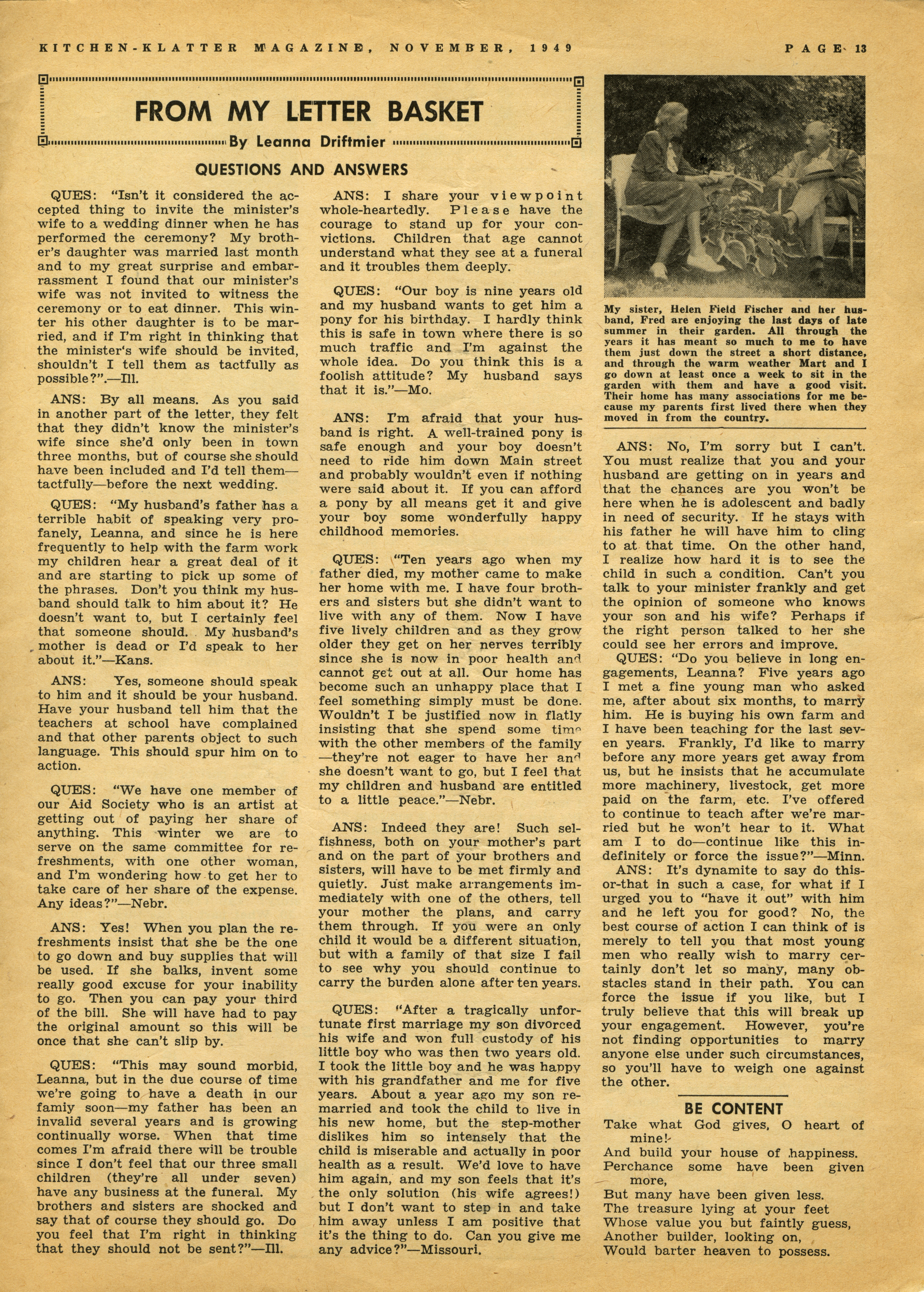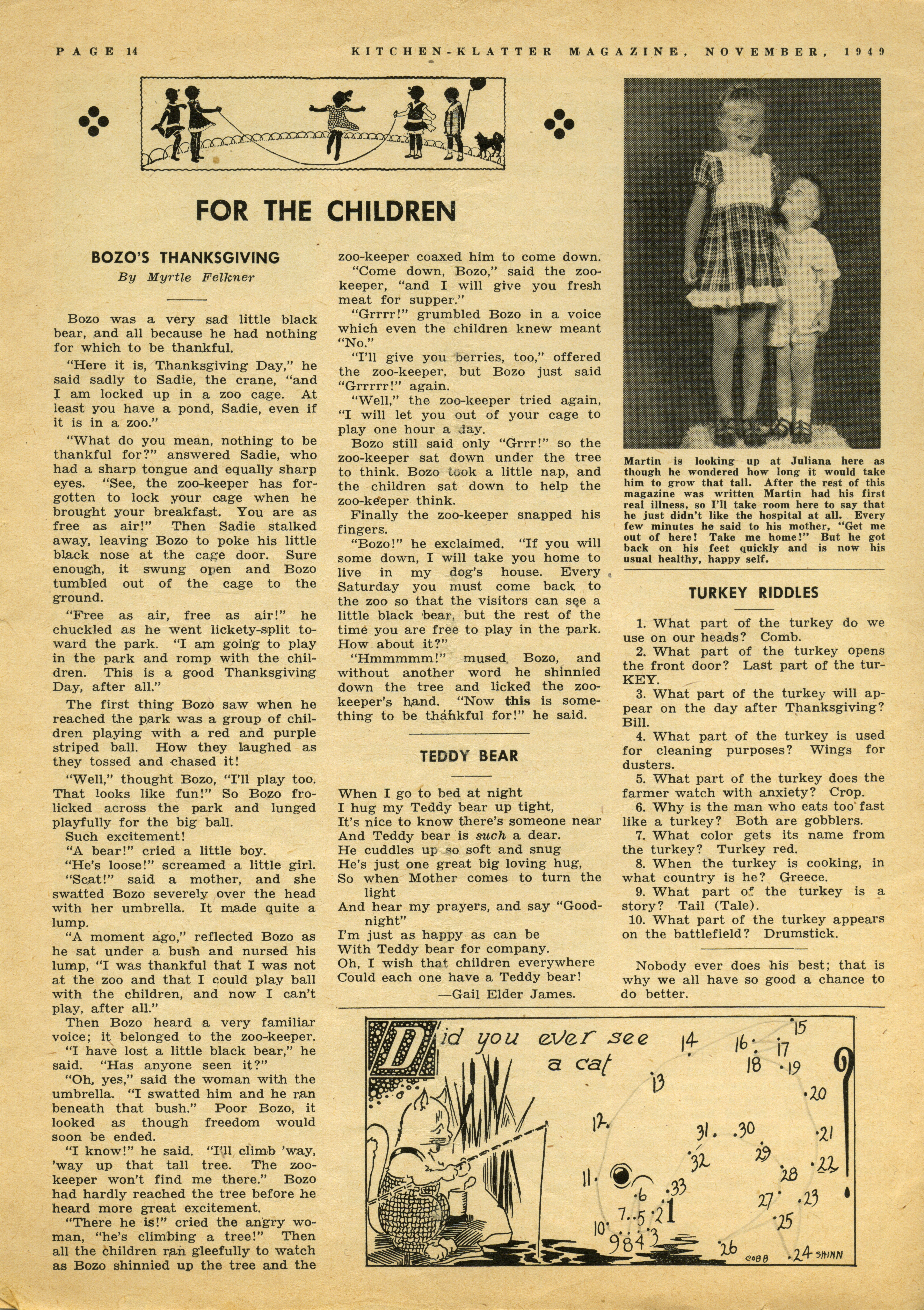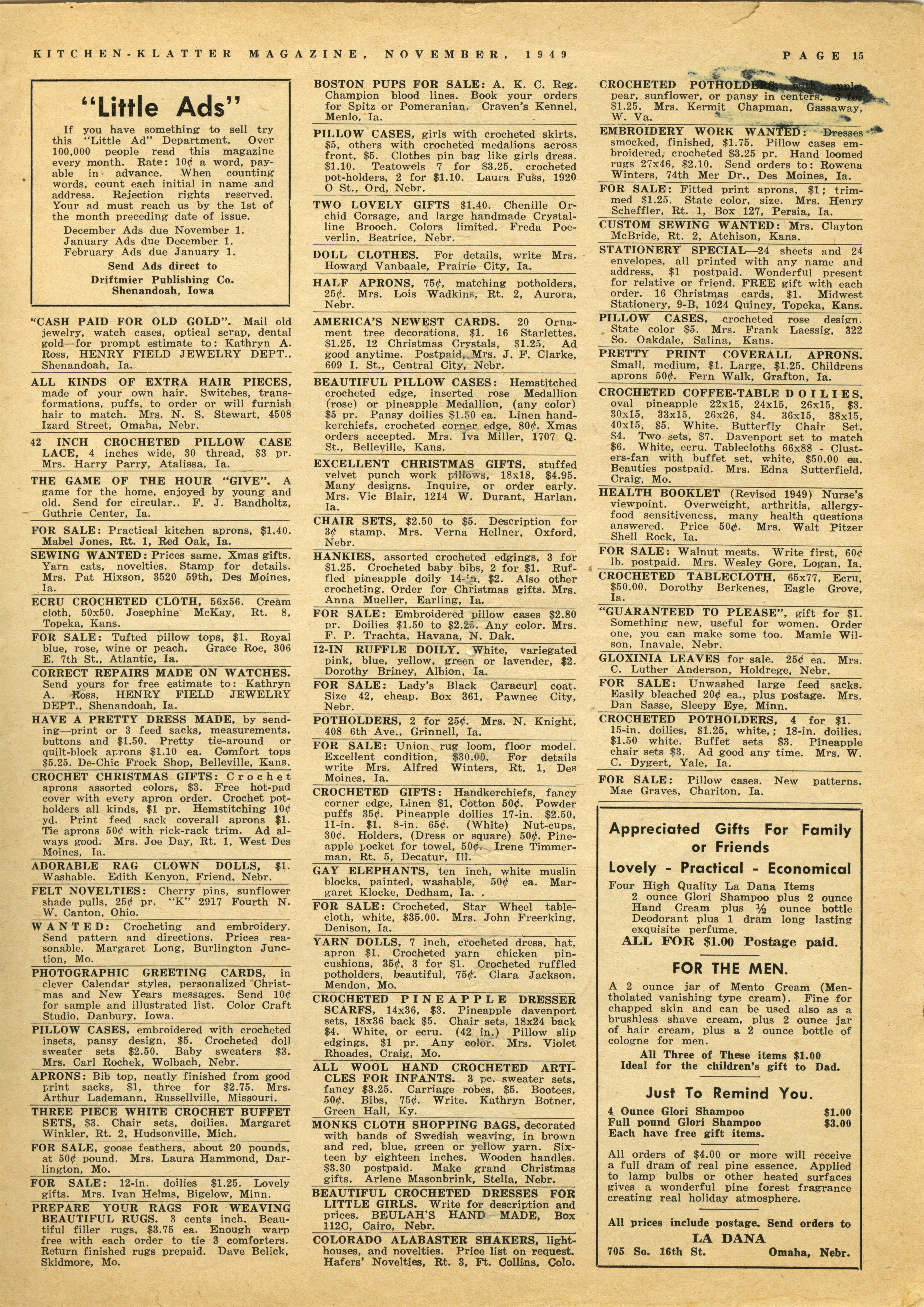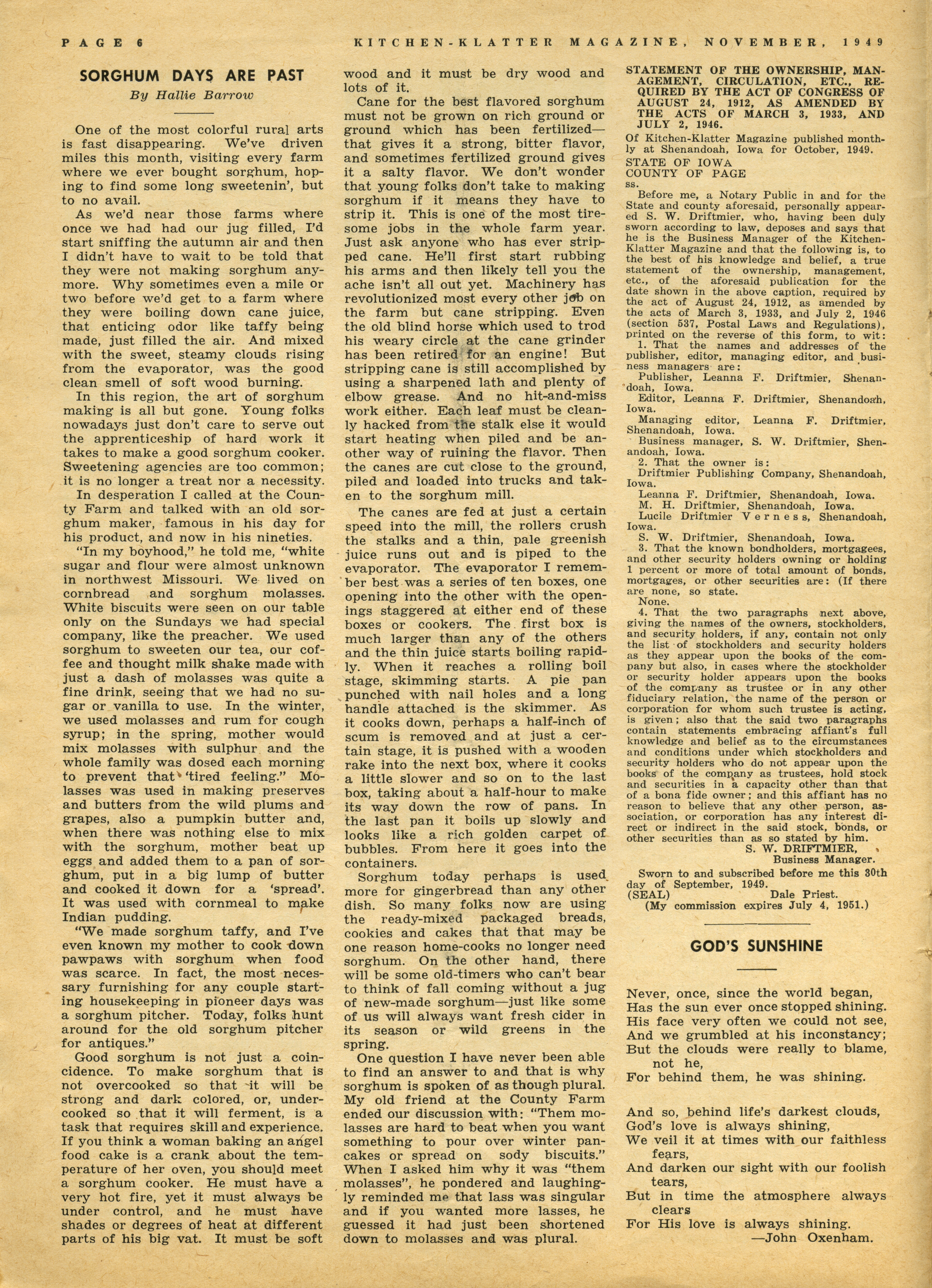 - "Kitchen-Klatter v. 14, n. 11, 1949", Kitchen-Klatter Magazine Issues, Iowa State University Library Digital Collections