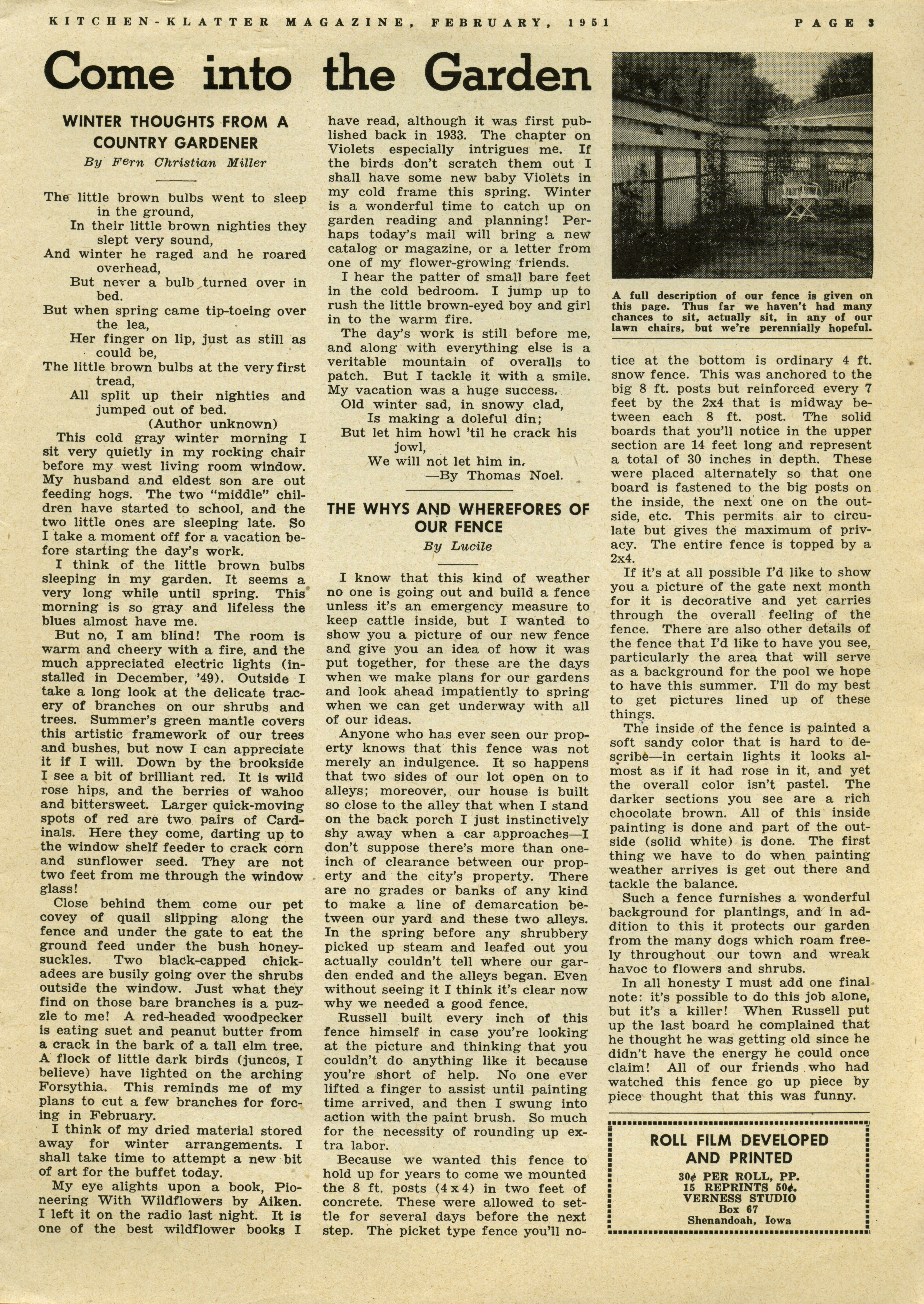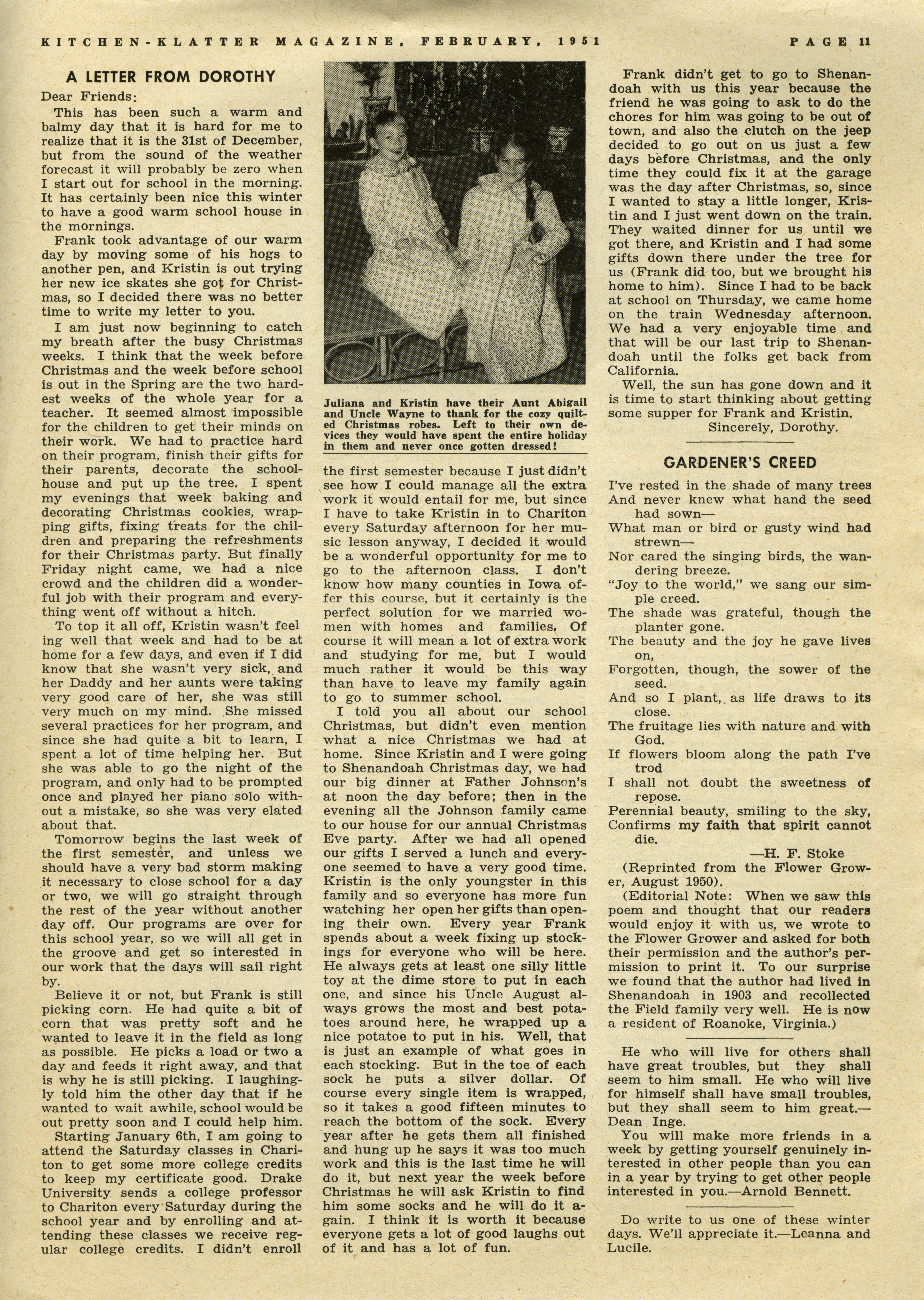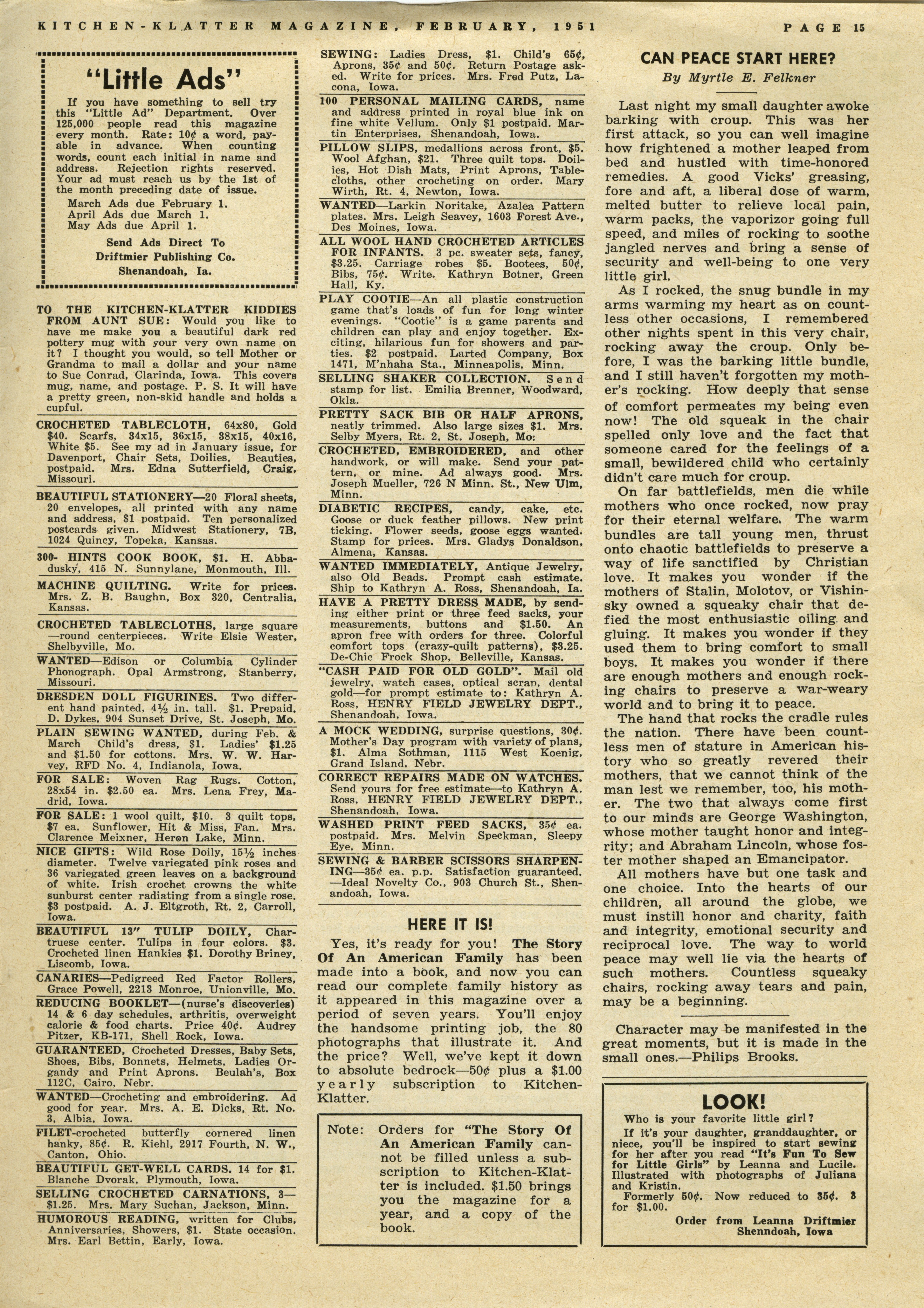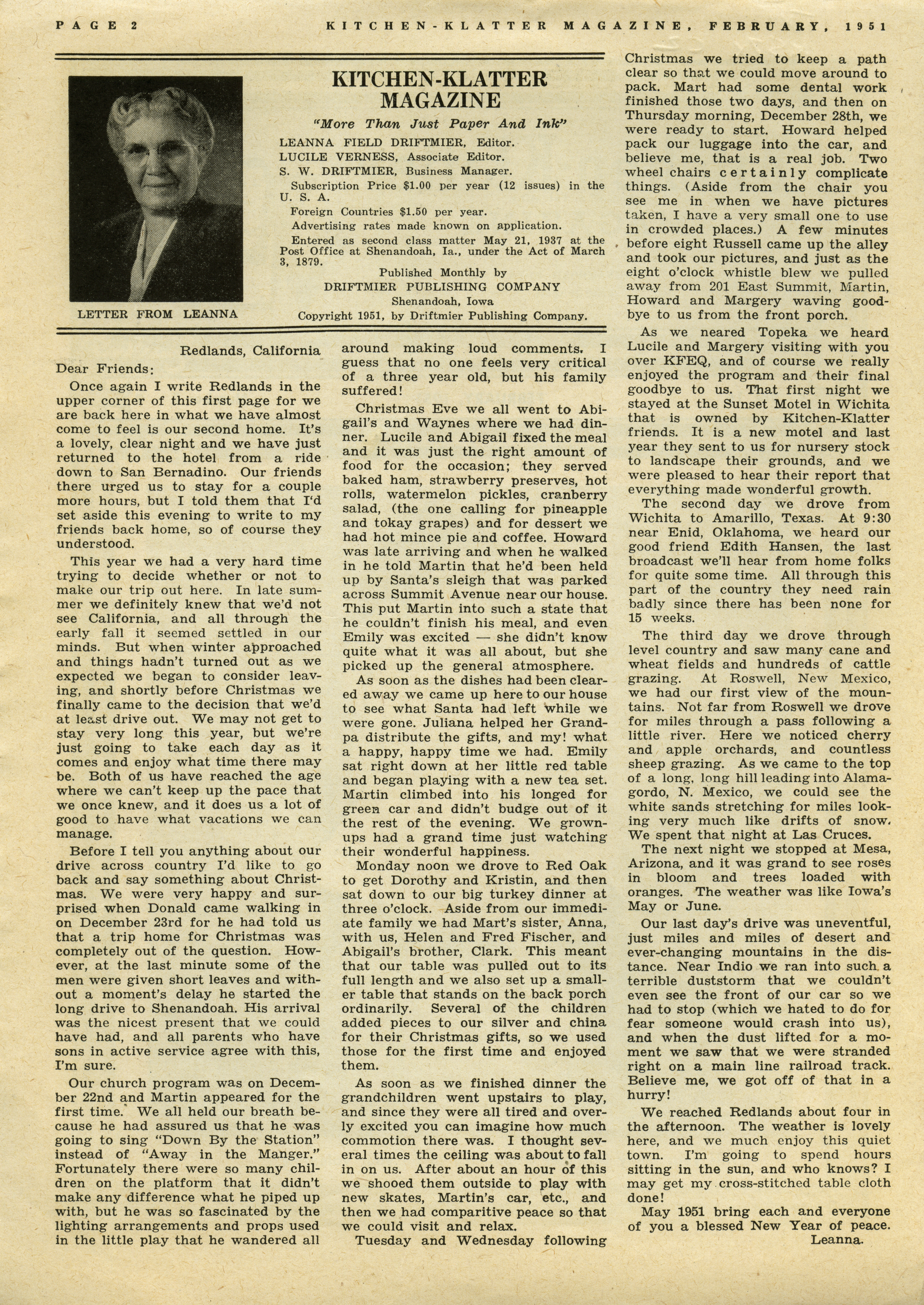 - "Kitchen-Klatter v. 16, n. 02, 1951", Kitchen-Klatter Magazine Issues, Iowa State University Library Digital Collections