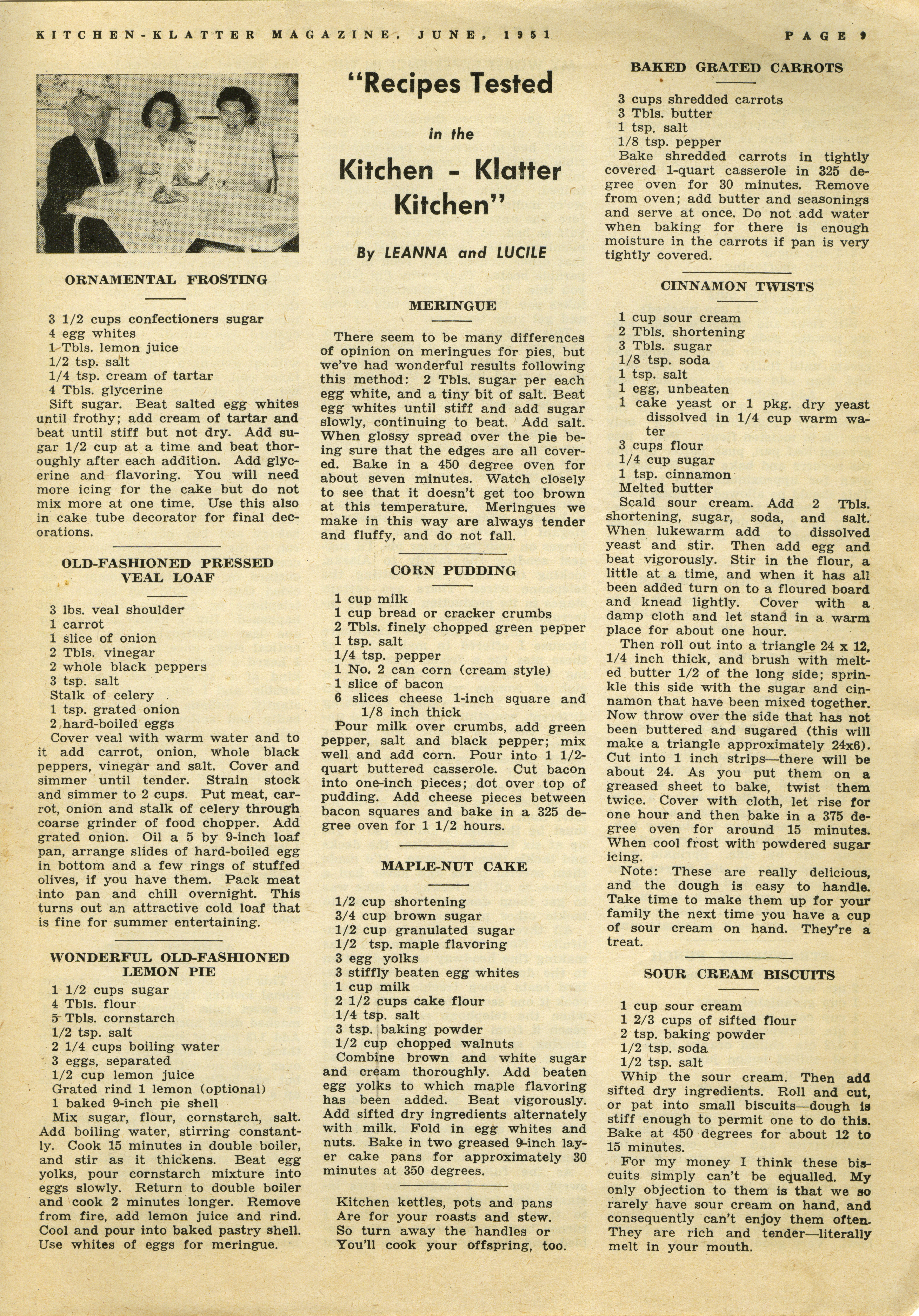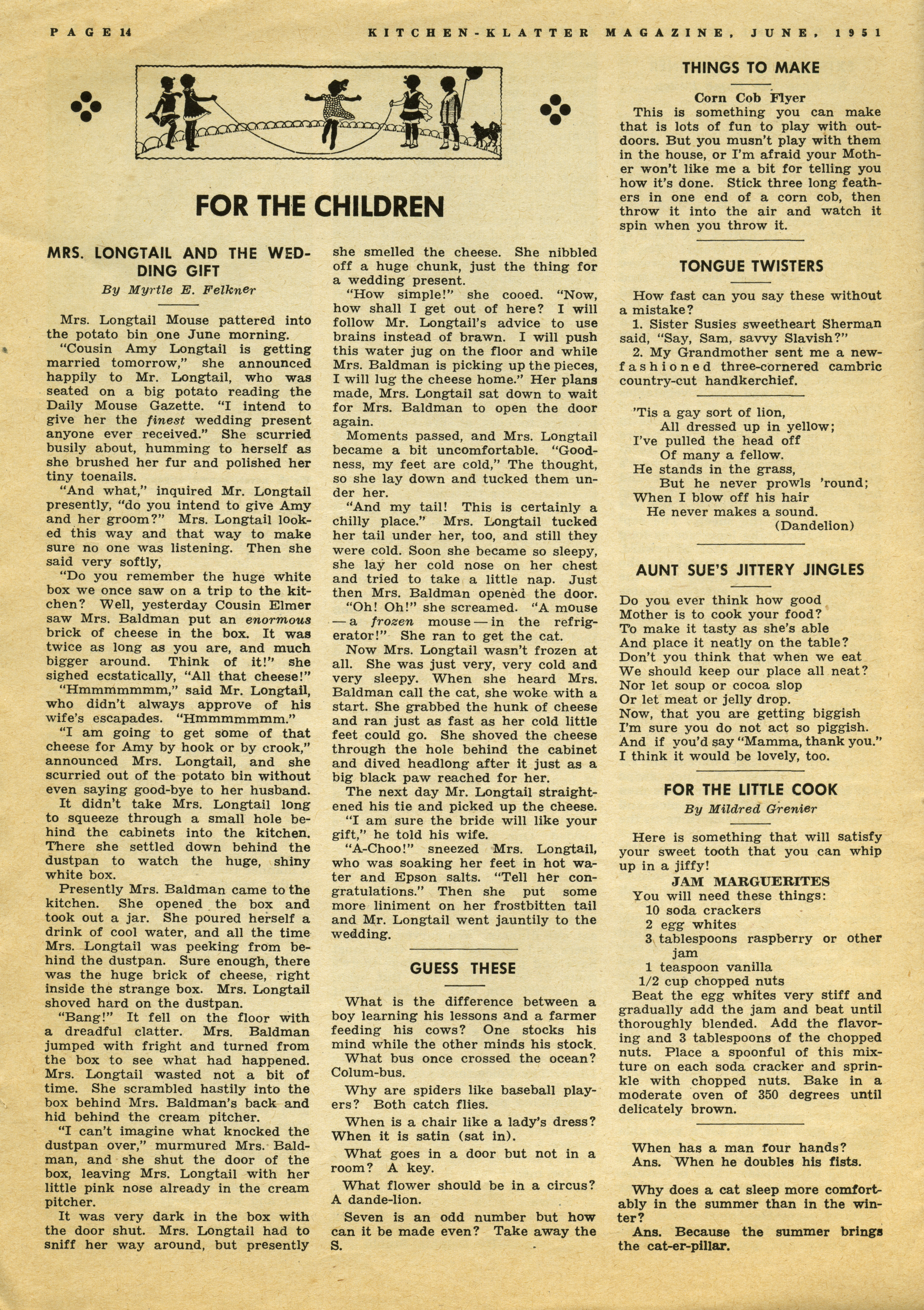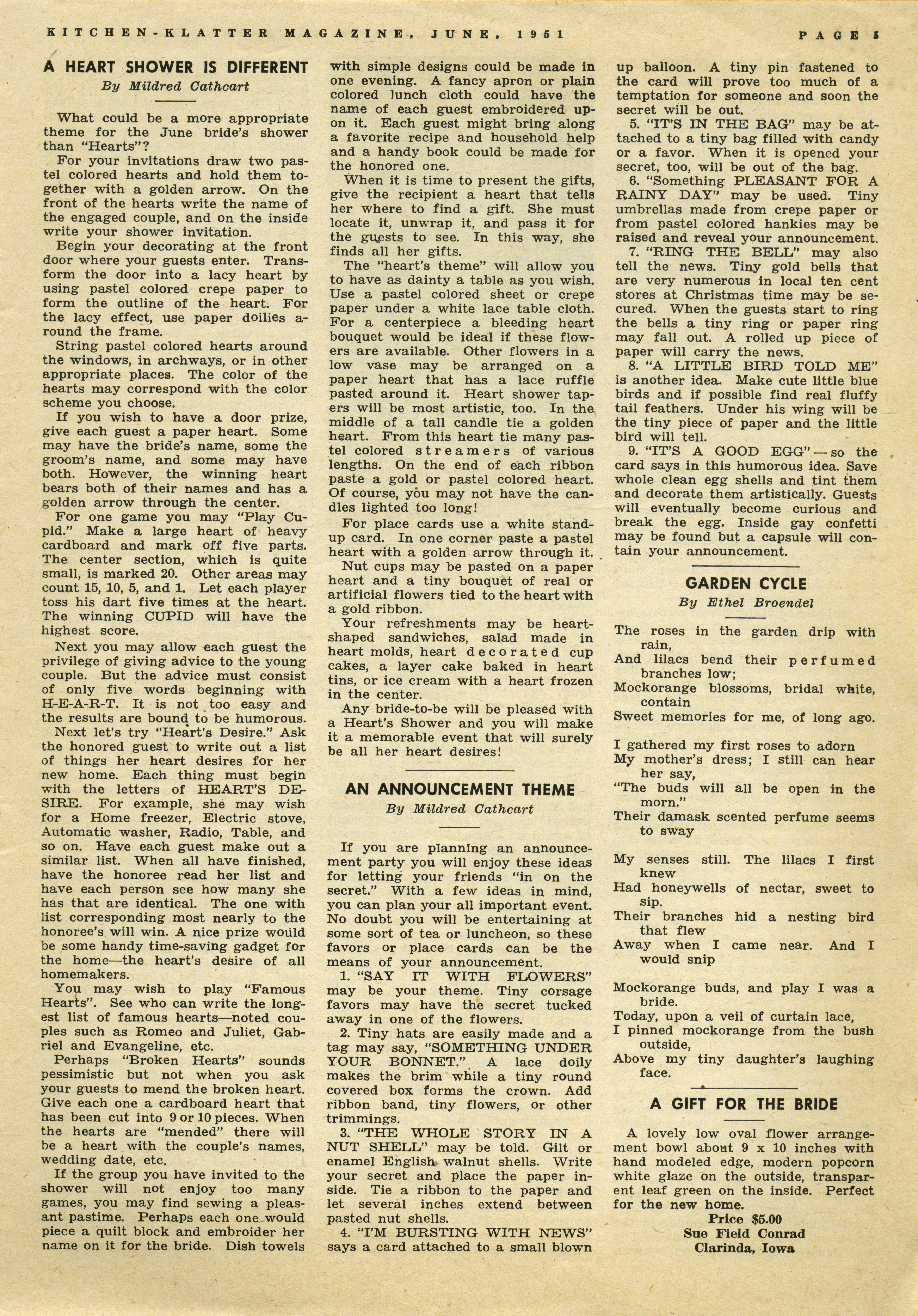 - "Kitchen-Klatter v. 16, n. 06, 1951", Kitchen-Klatter Magazine Issues, Iowa State University Library Digital Collections