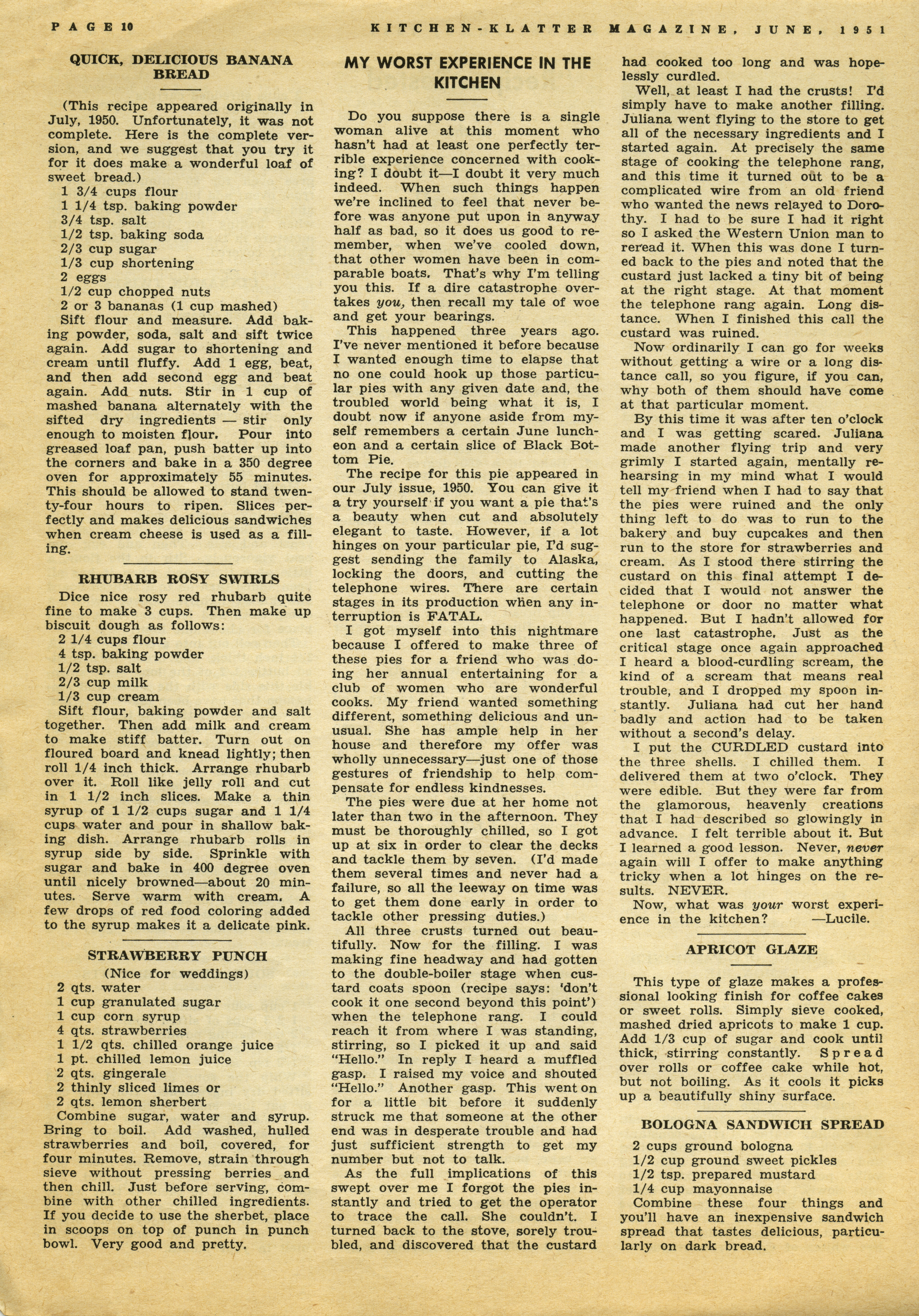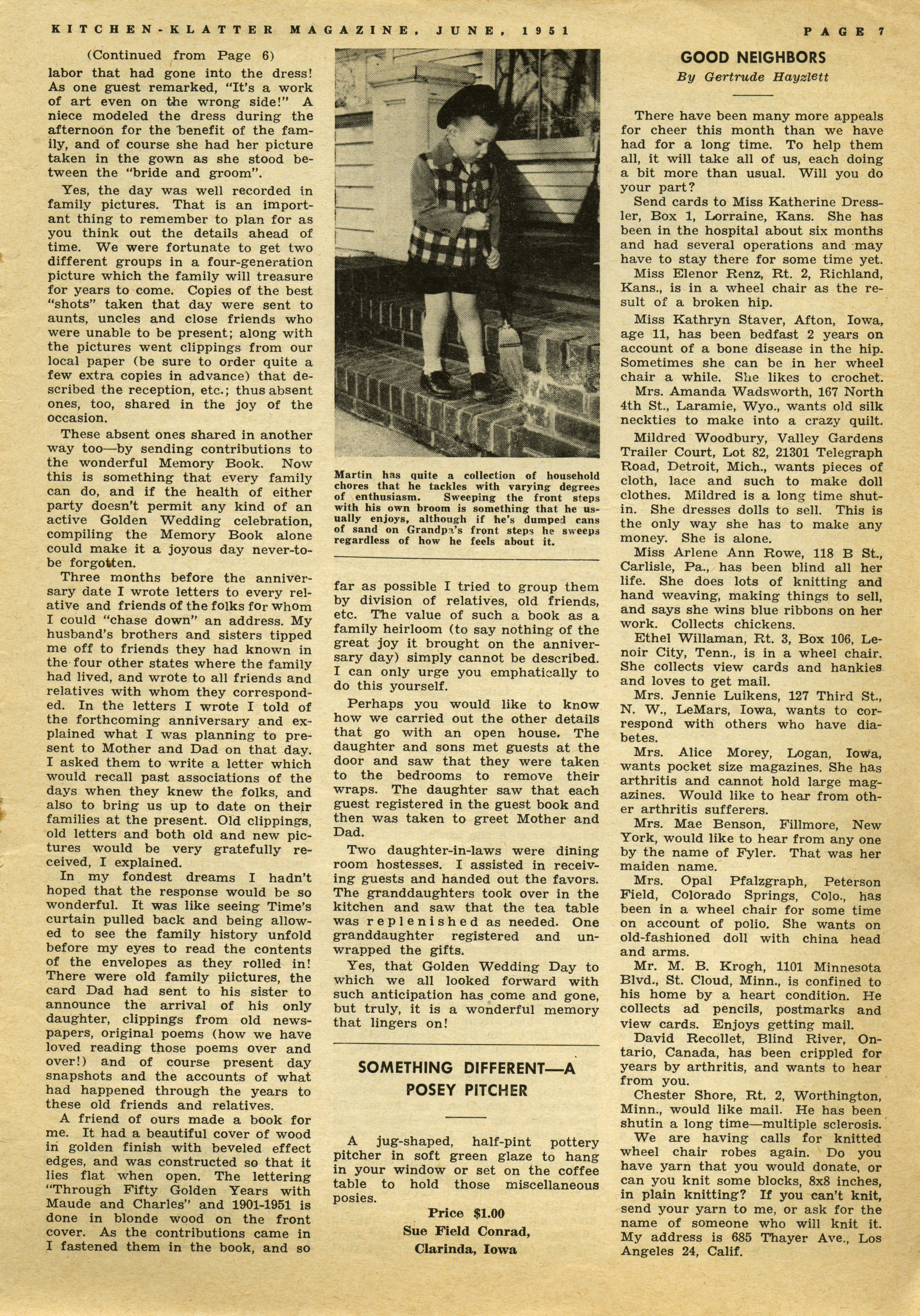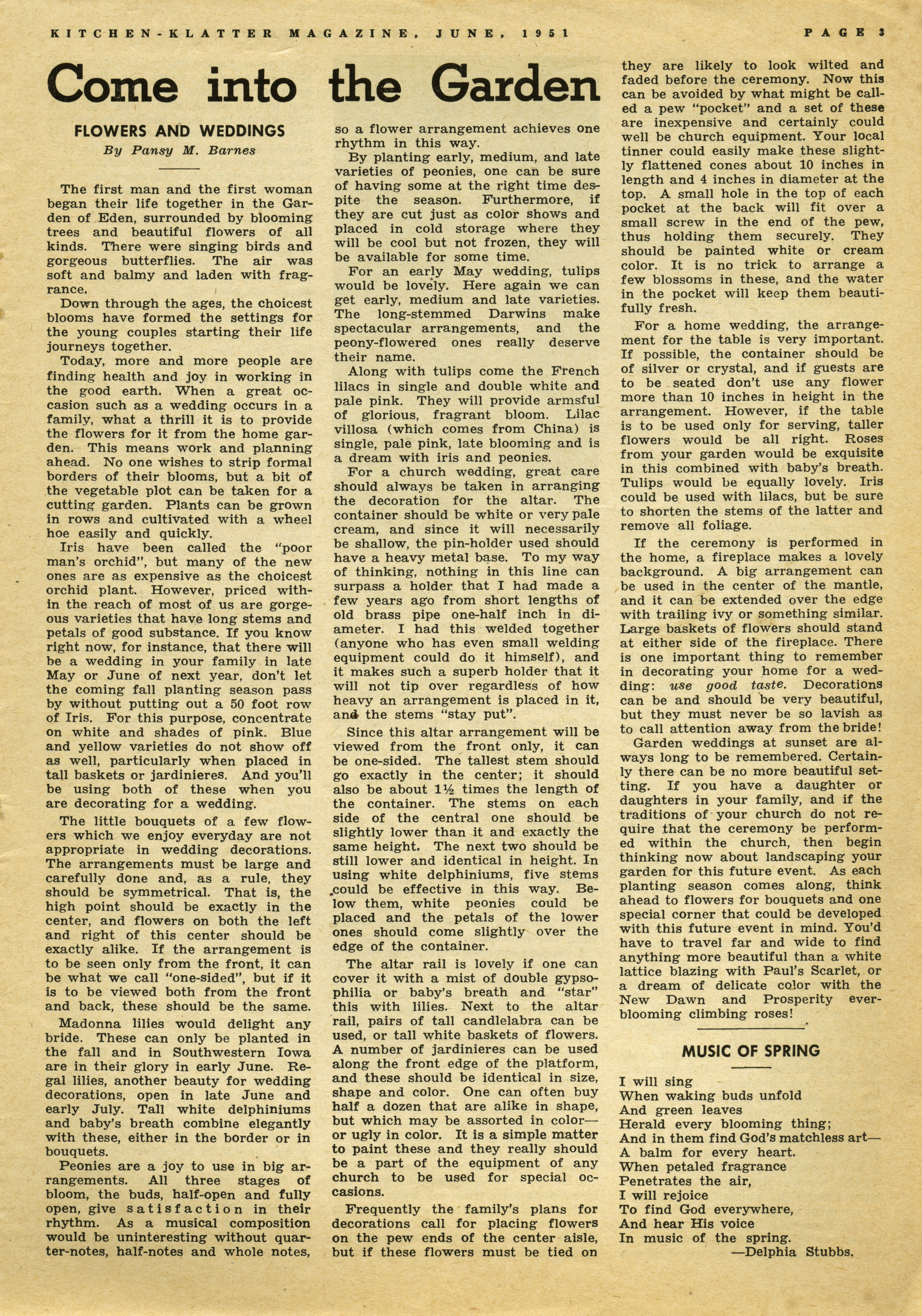 - "Kitchen-Klatter v. 16, n. 06, 1951", Kitchen-Klatter Magazine Issues, Iowa State University Library Digital Collections