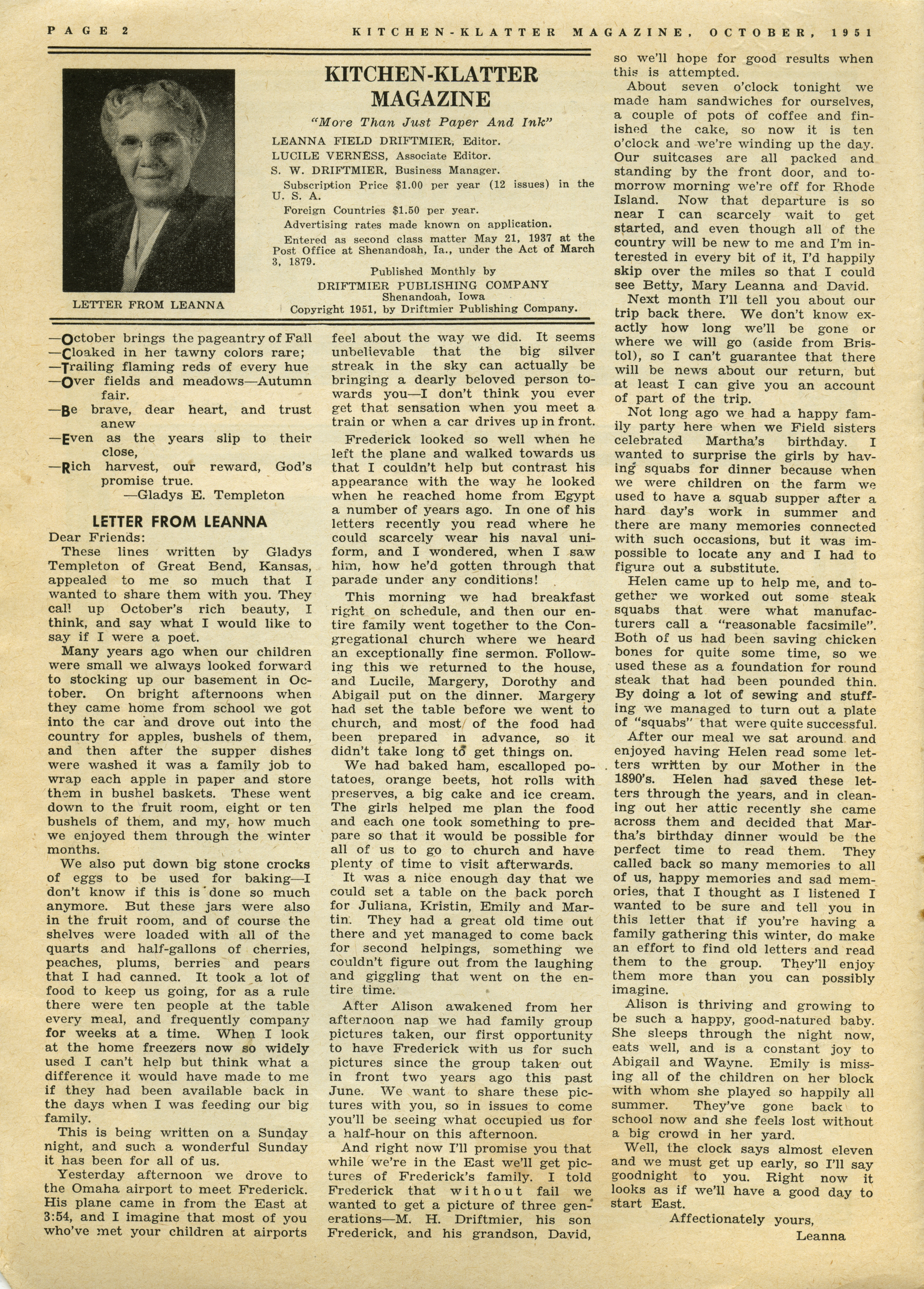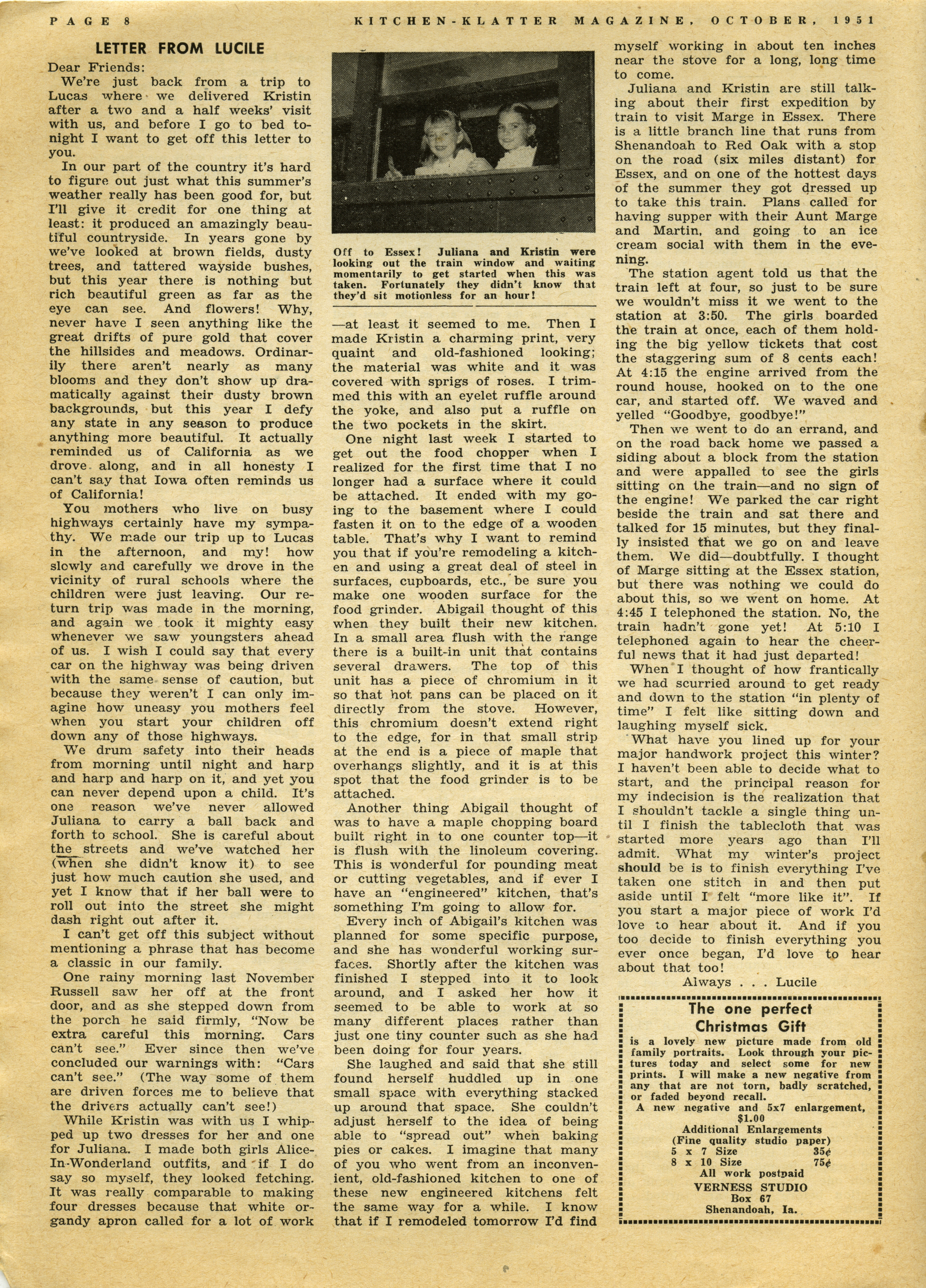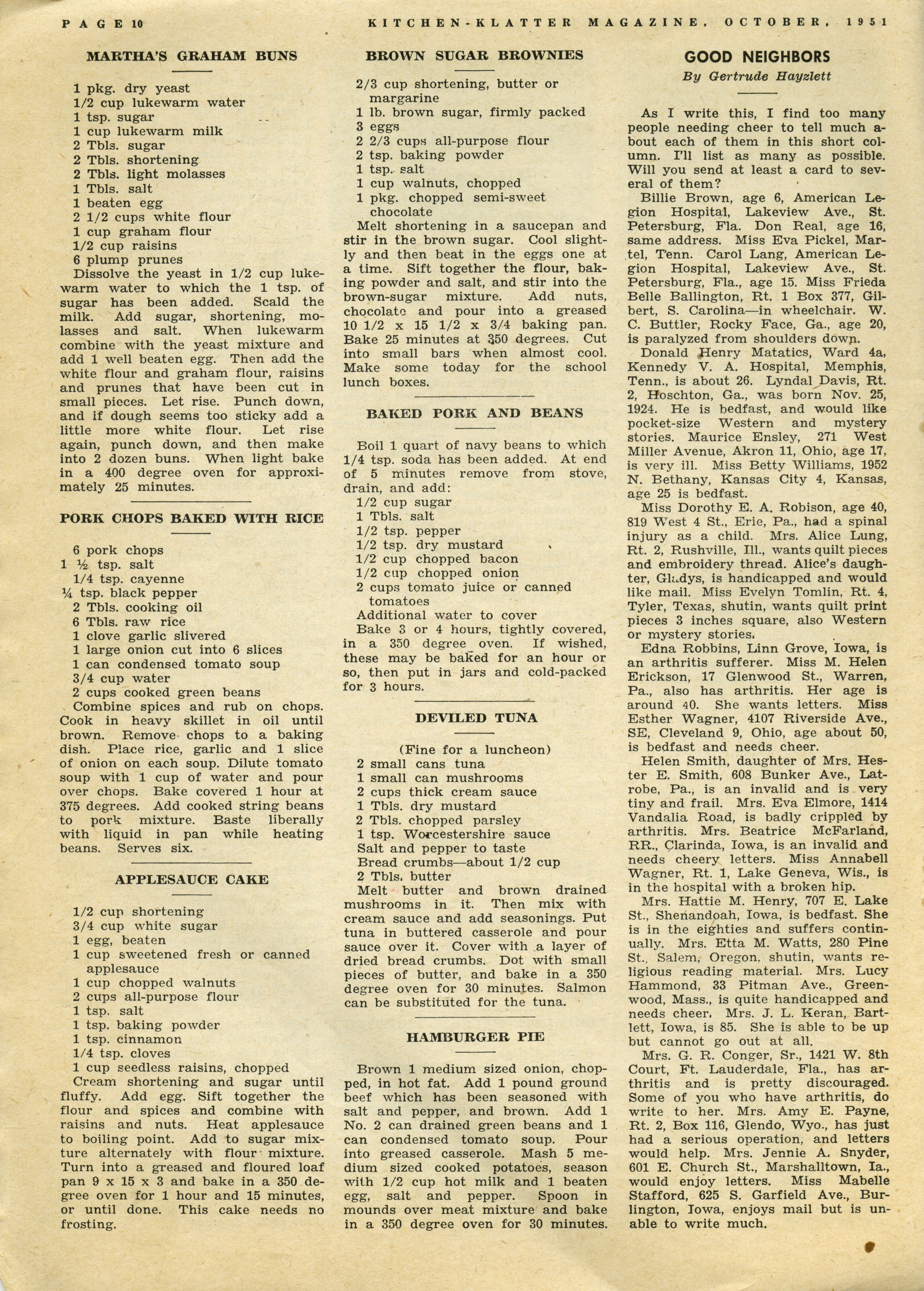 - "Kitchen-Klatter v. 16, n. 10, 1951", Kitchen-Klatter Magazine Issues, Iowa State University Library Digital Collections