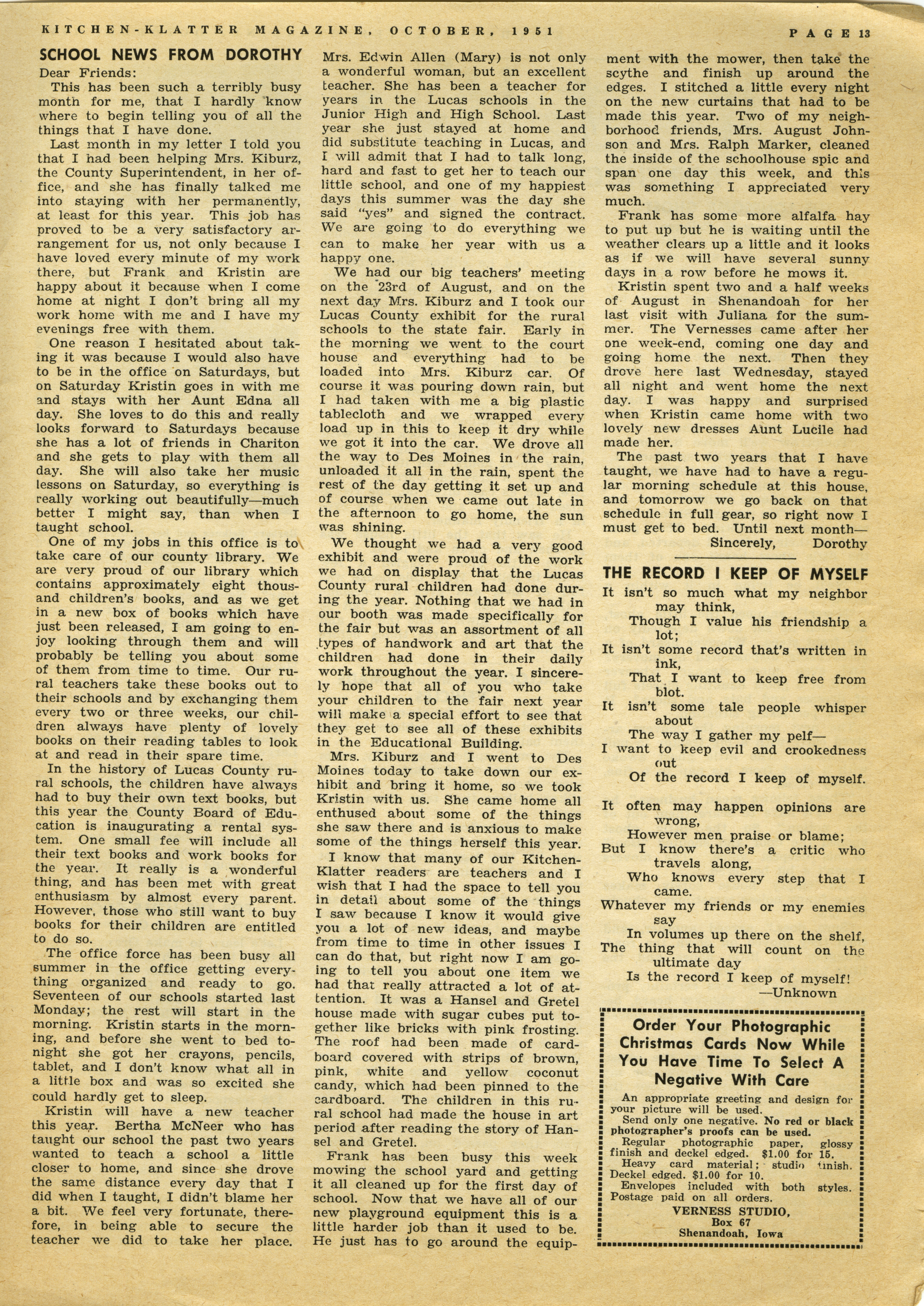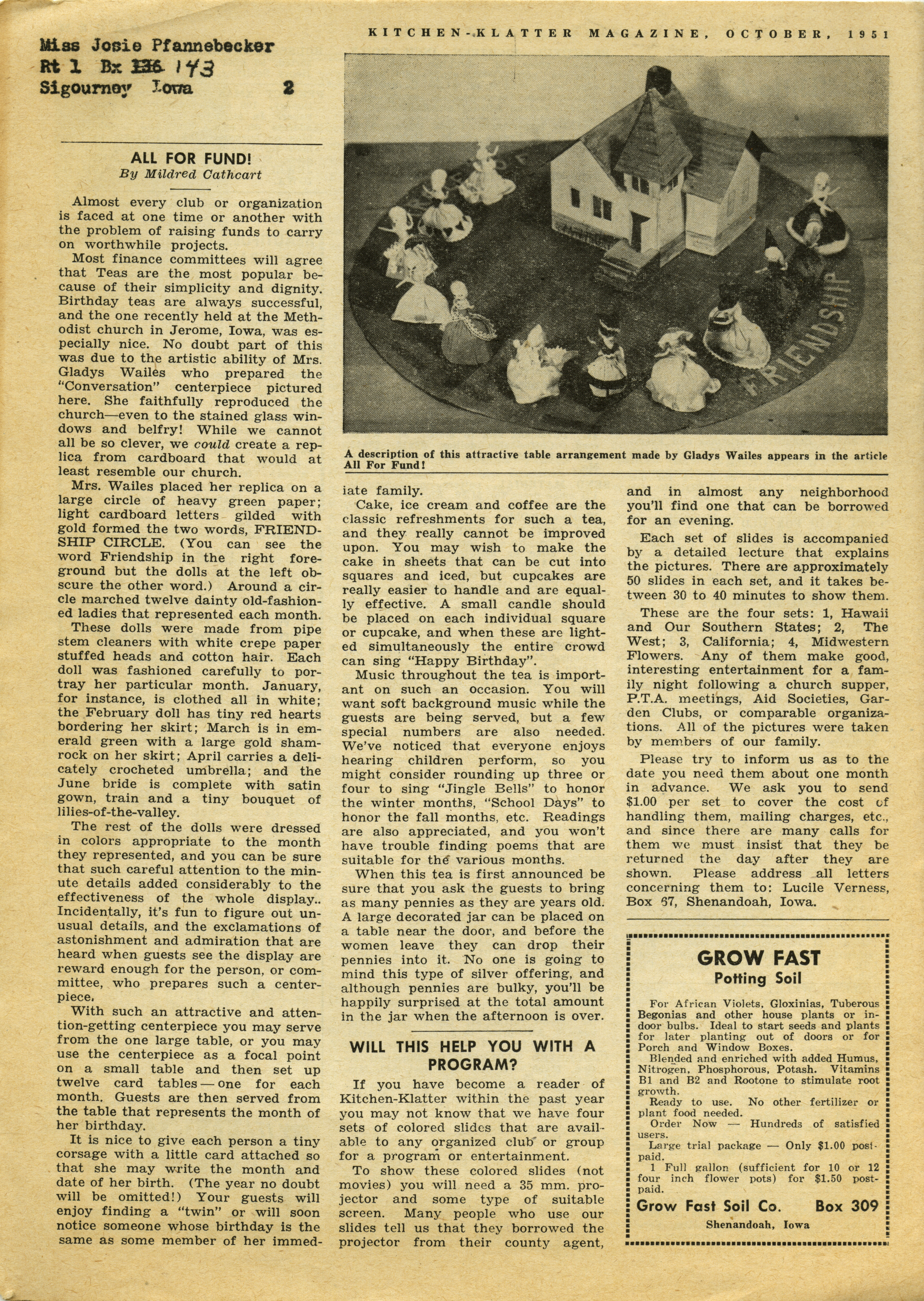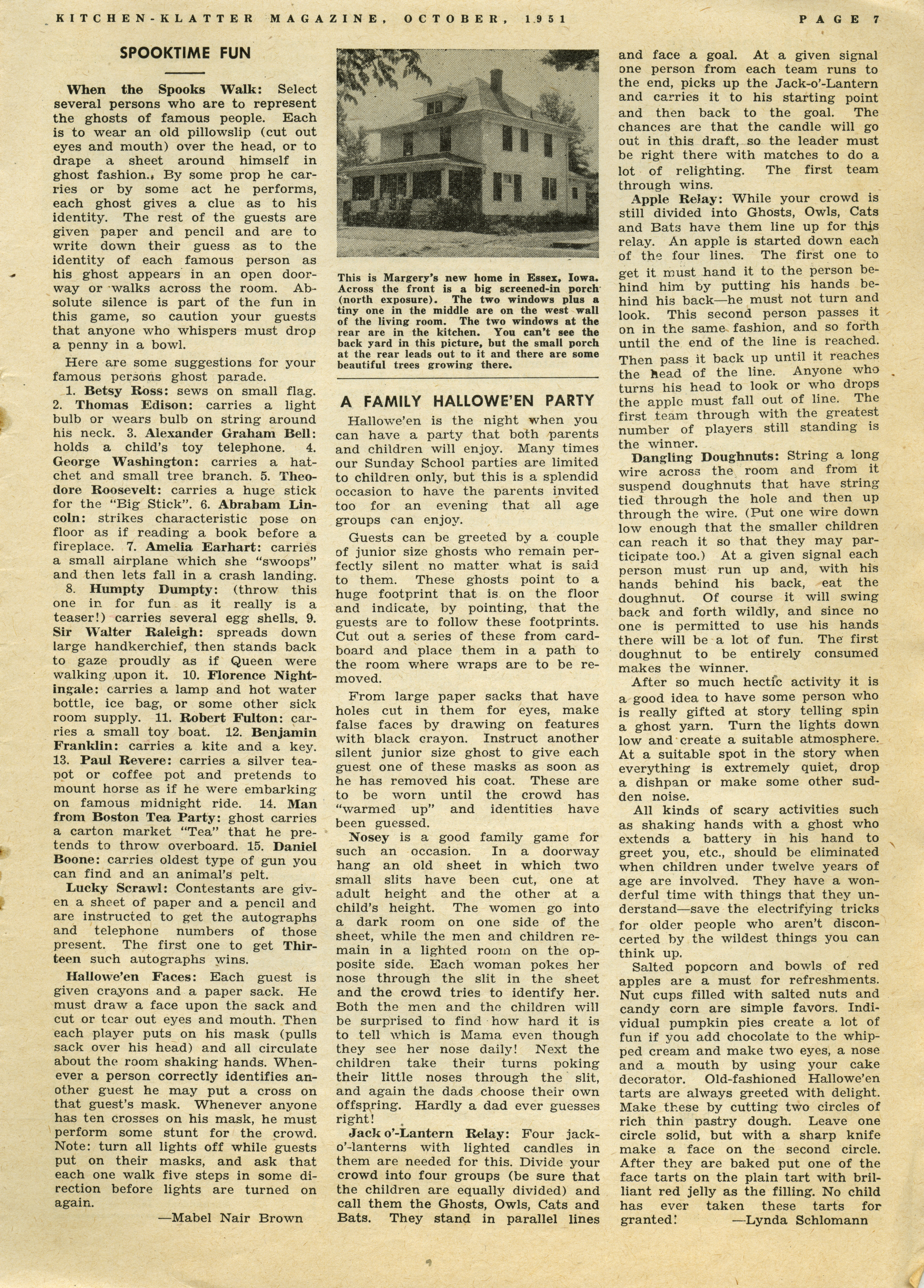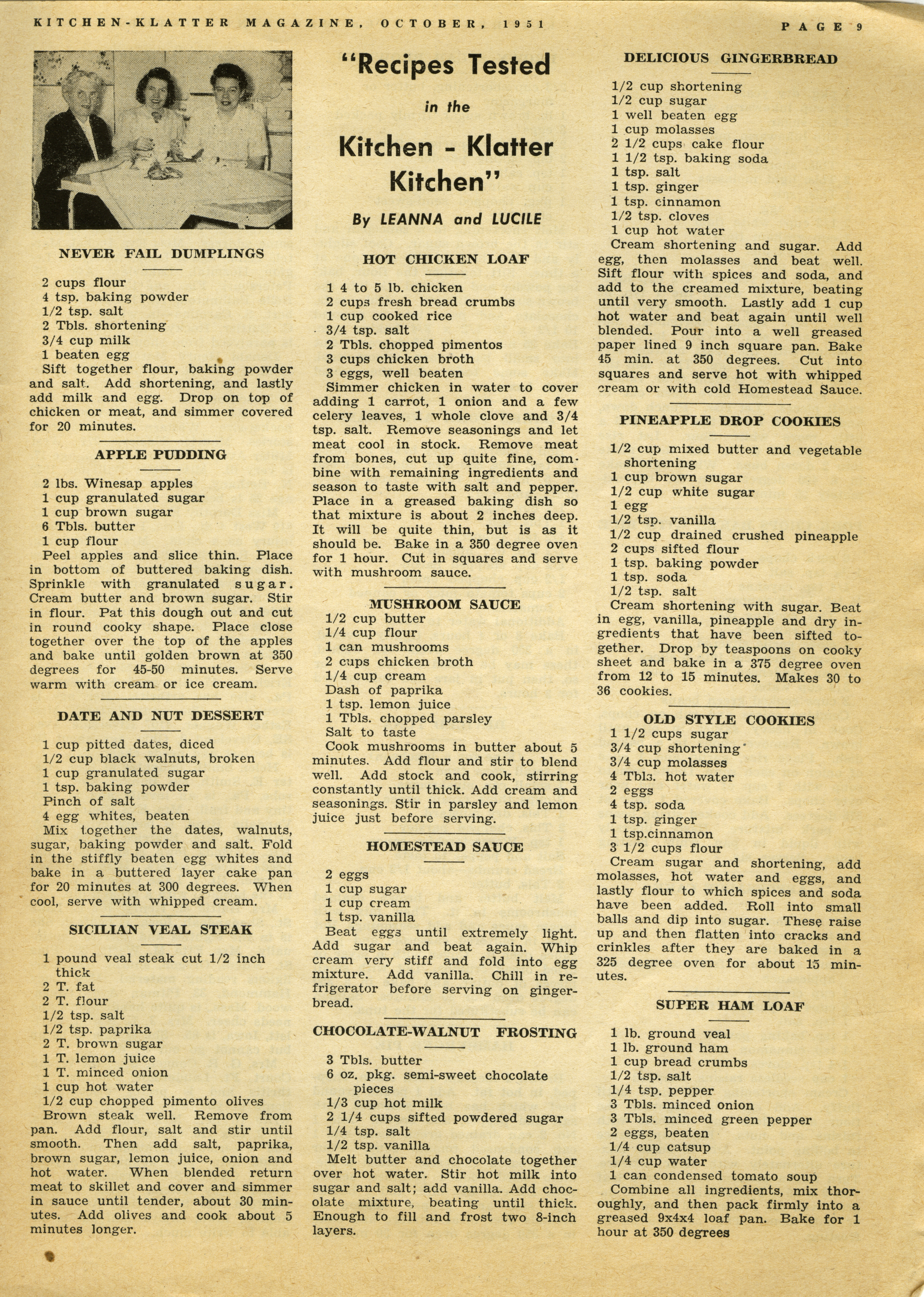 - "Kitchen-Klatter v. 16, n. 10, 1951", Kitchen-Klatter Magazine Issues, Iowa State University Library Digital Collections