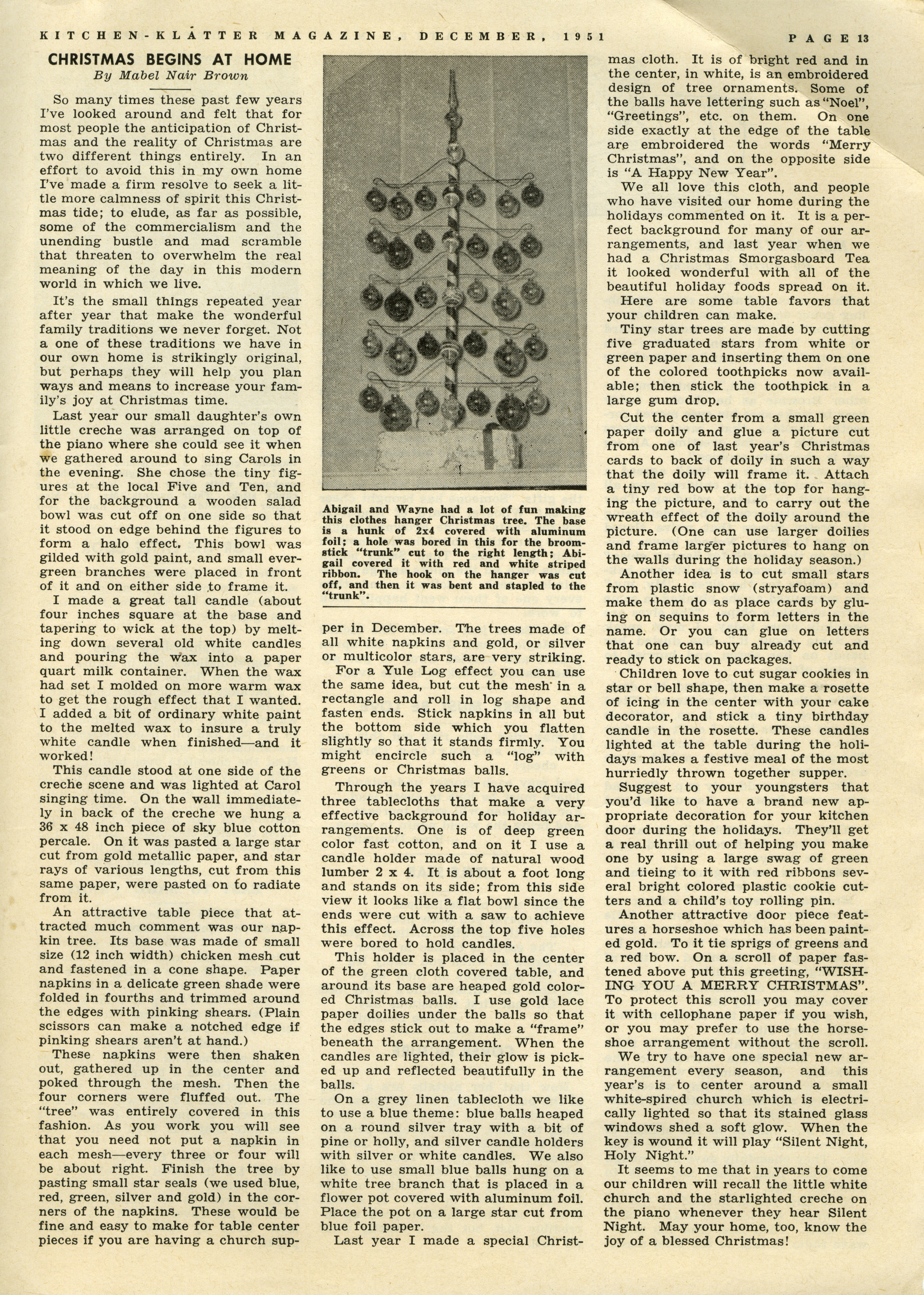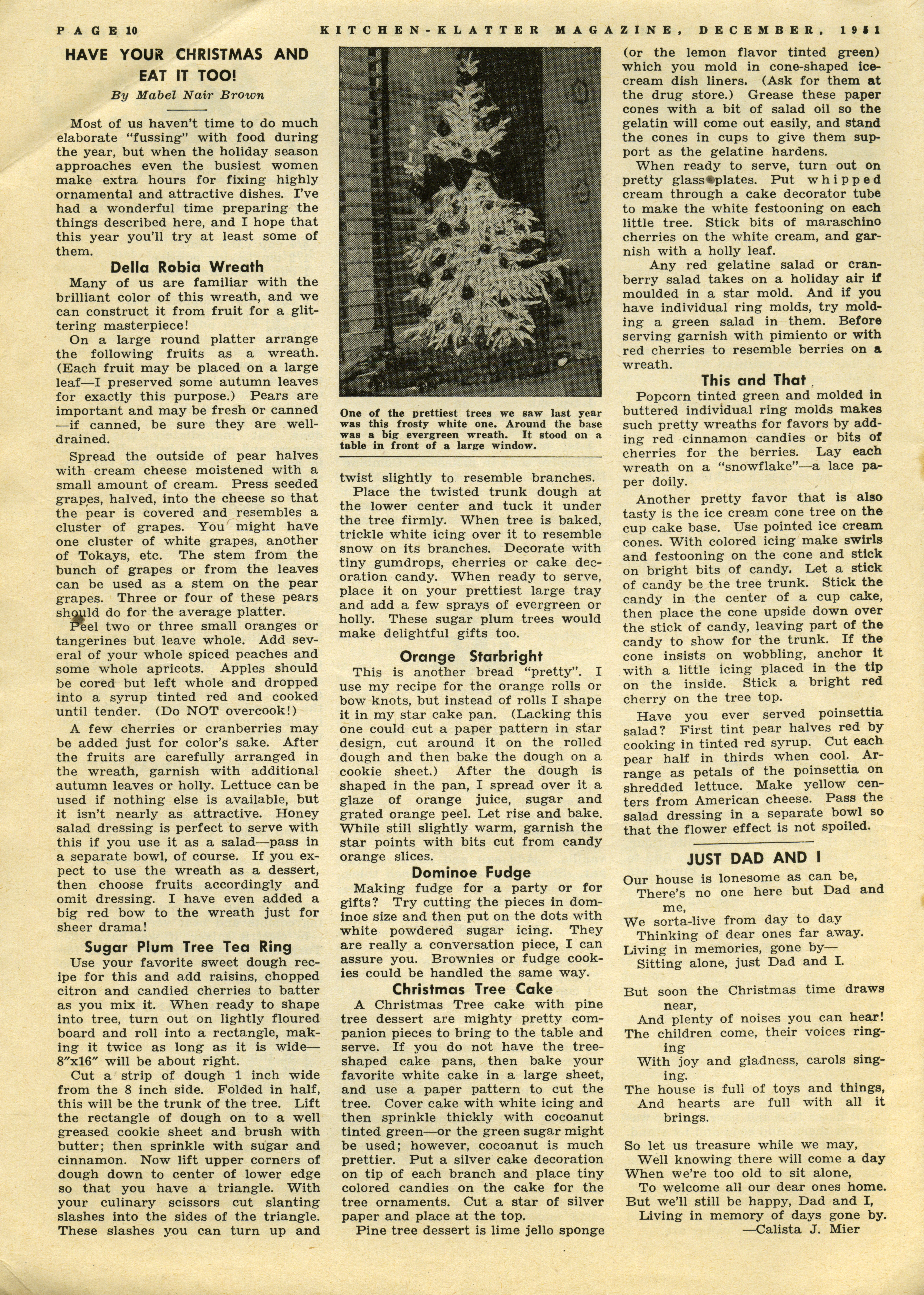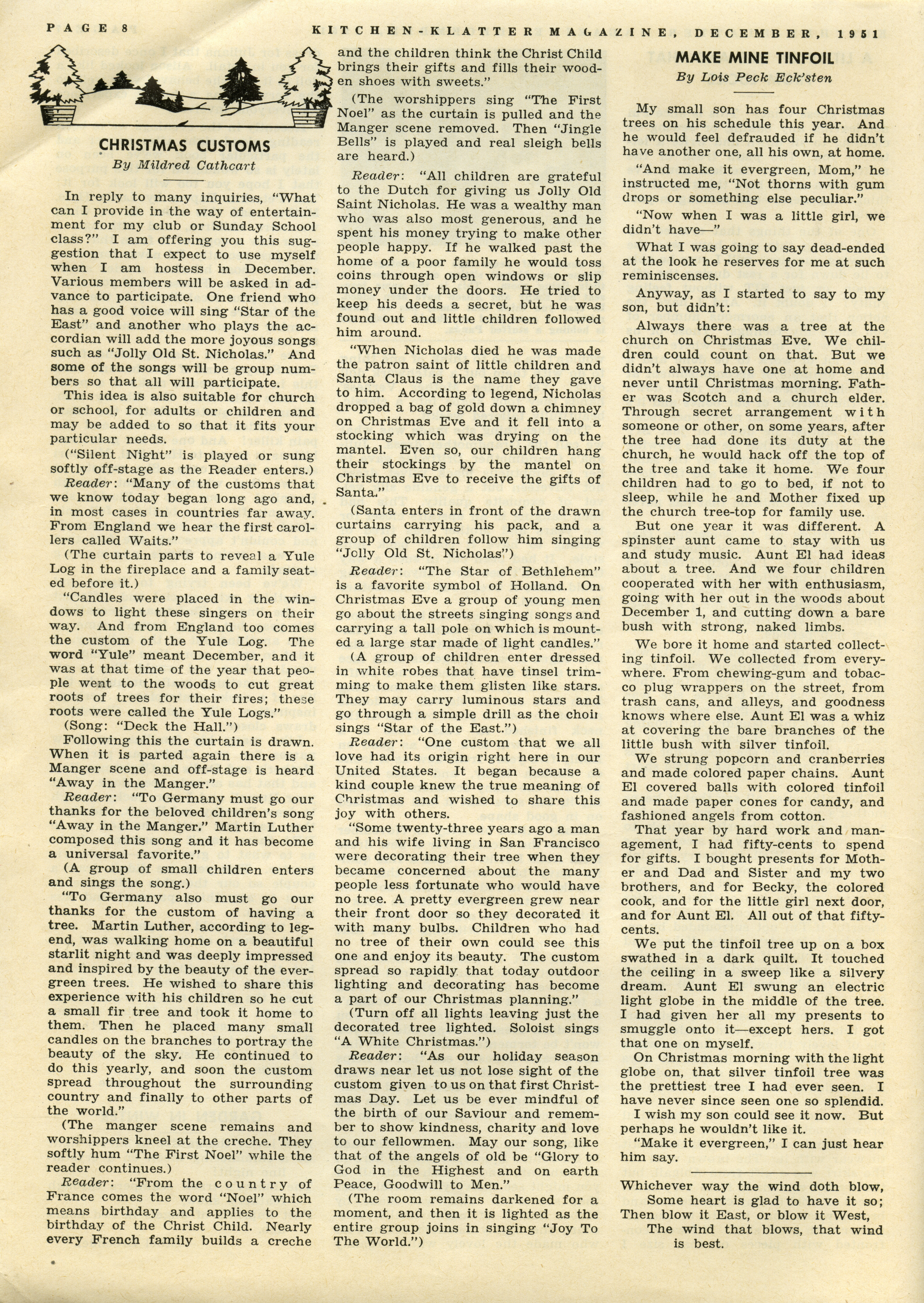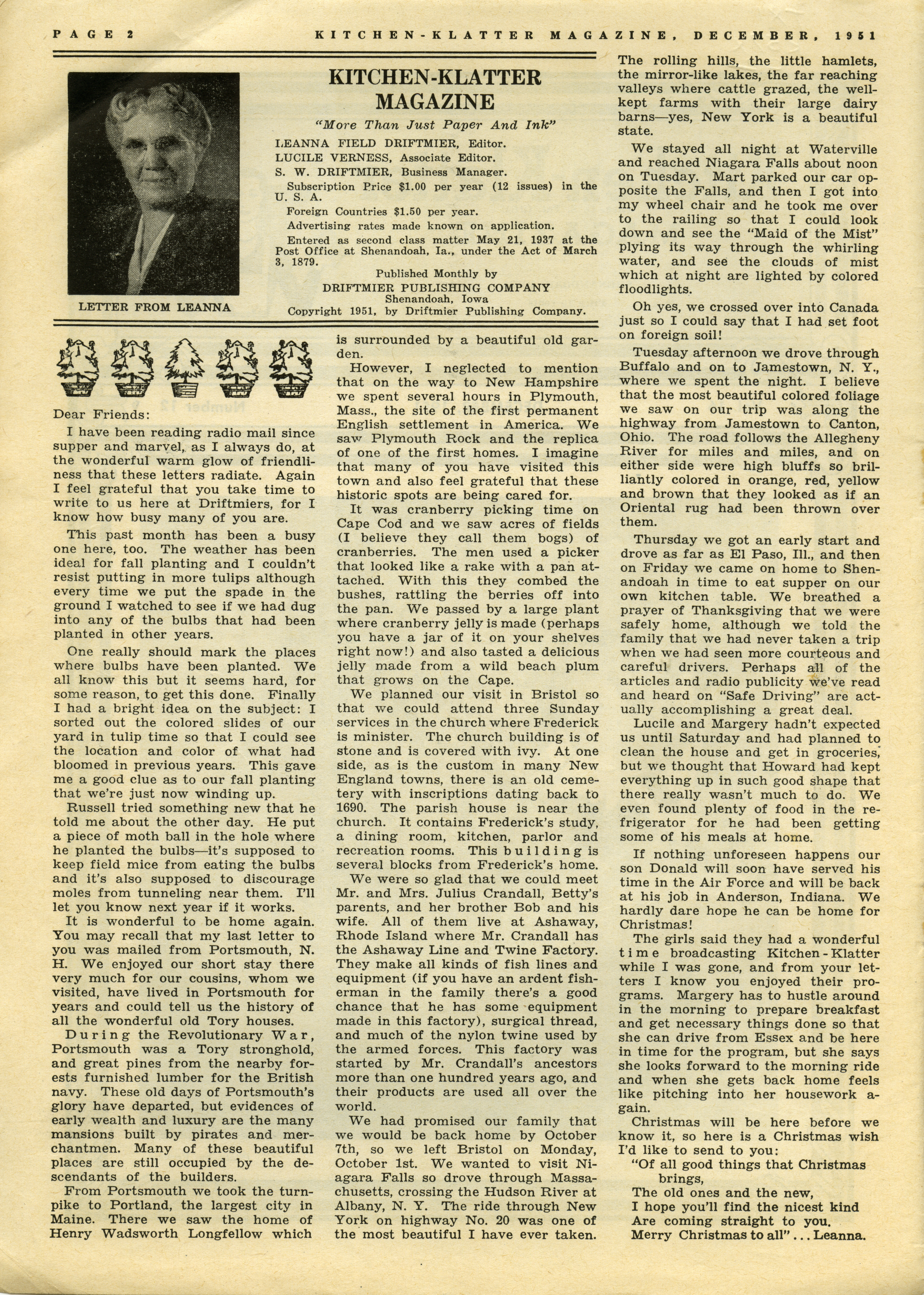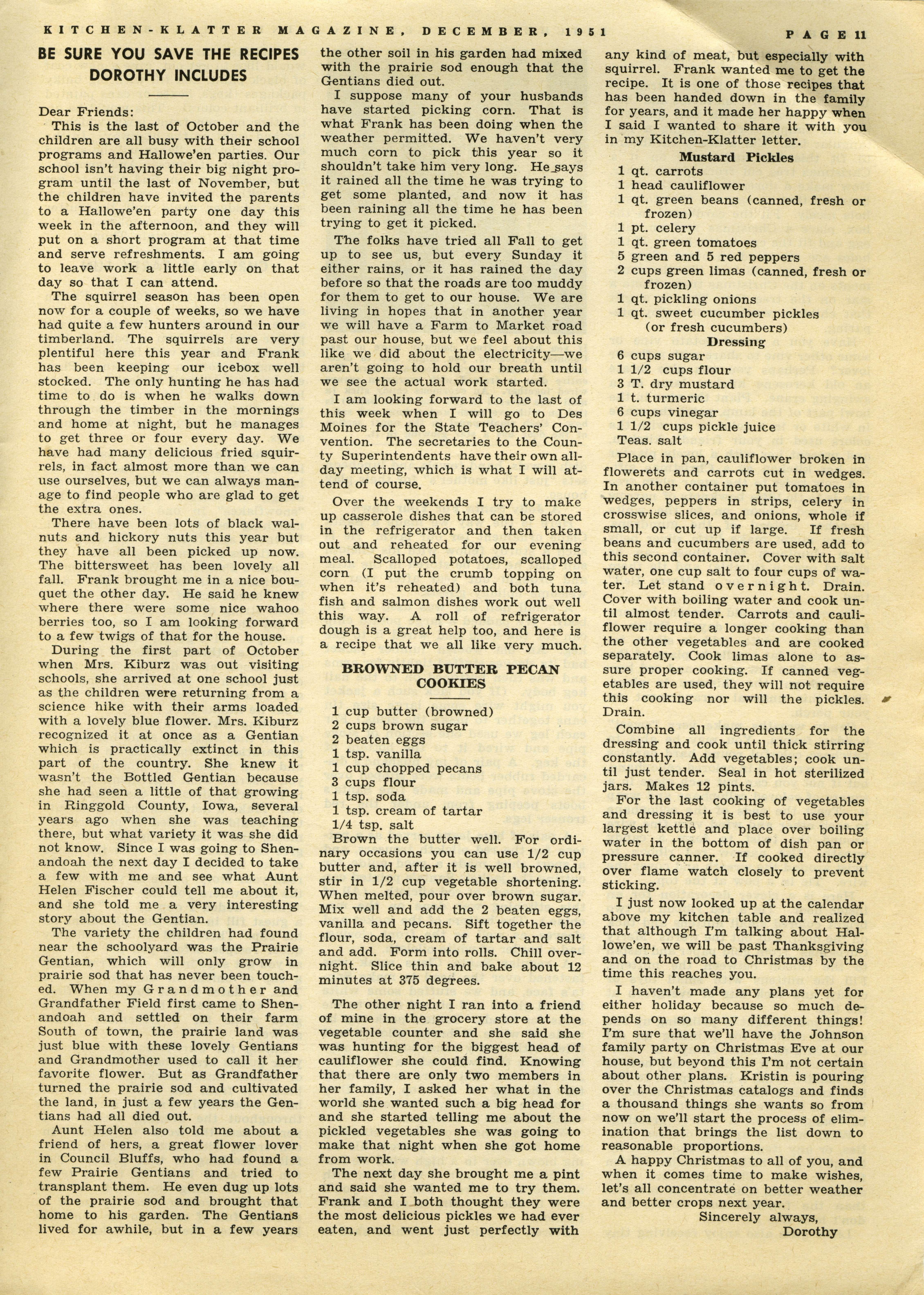 - "Kitchen-Klatter v. 16, n. 12, 1951", Kitchen-Klatter Magazine Issues, Iowa State University Library Digital Collections