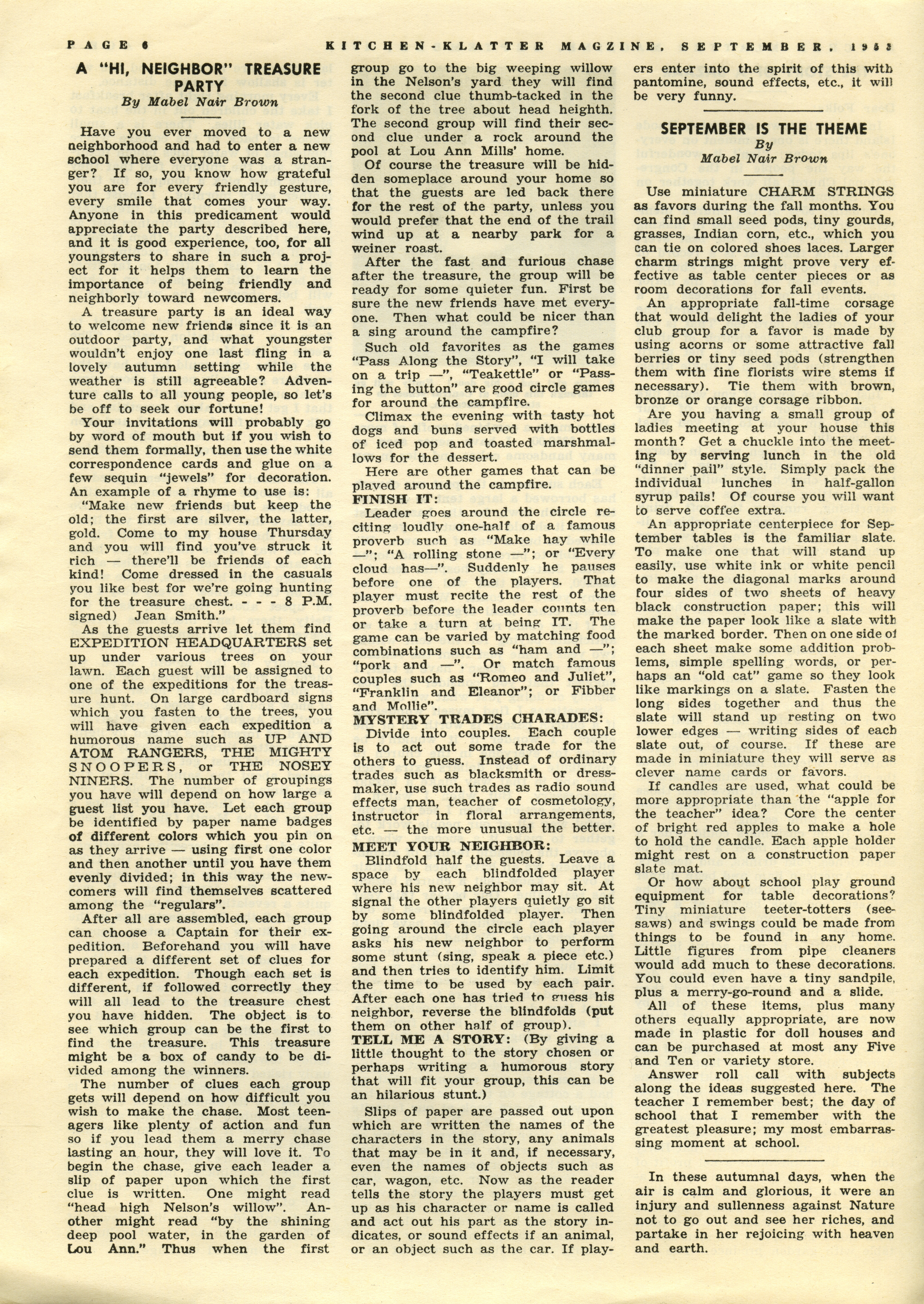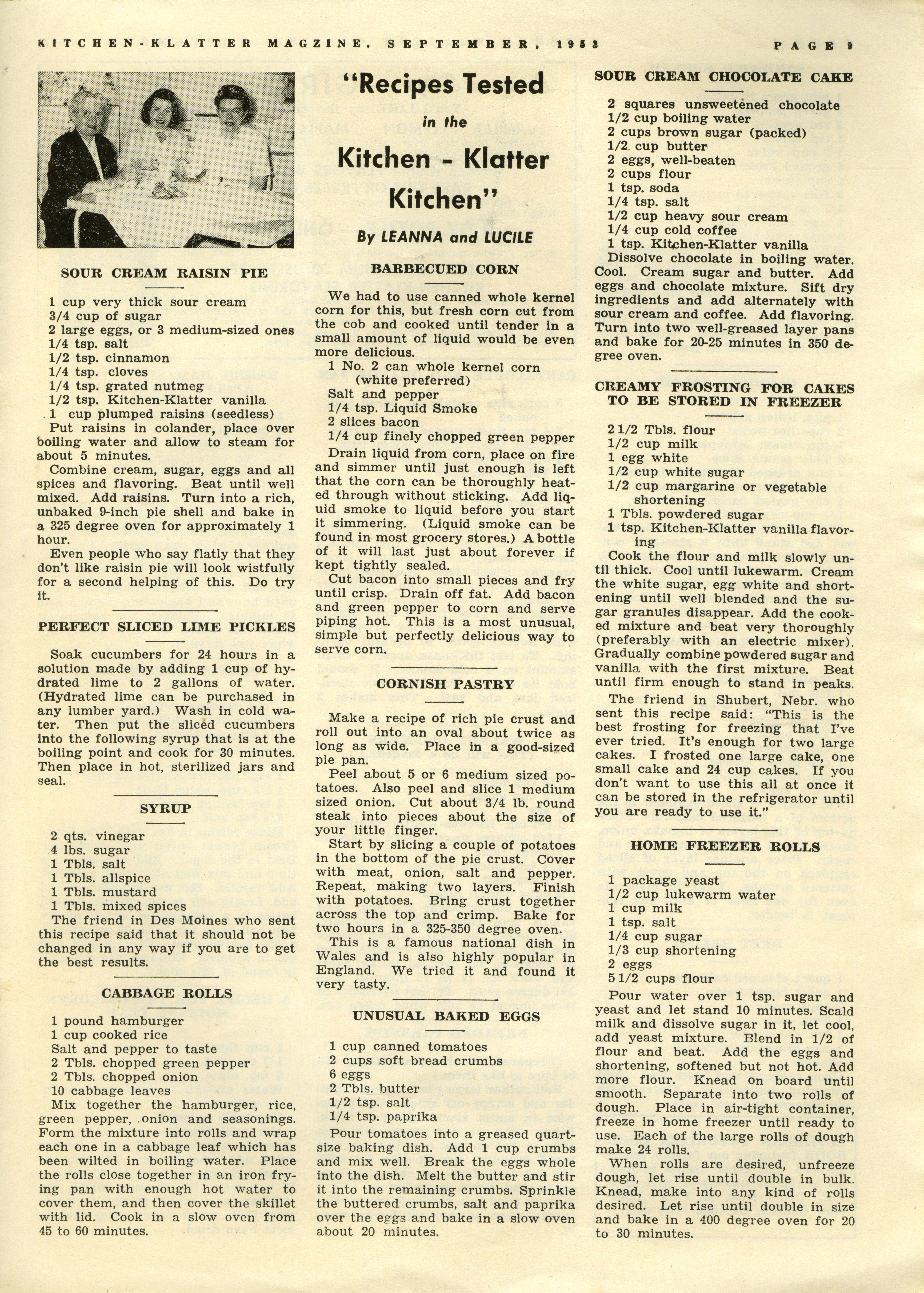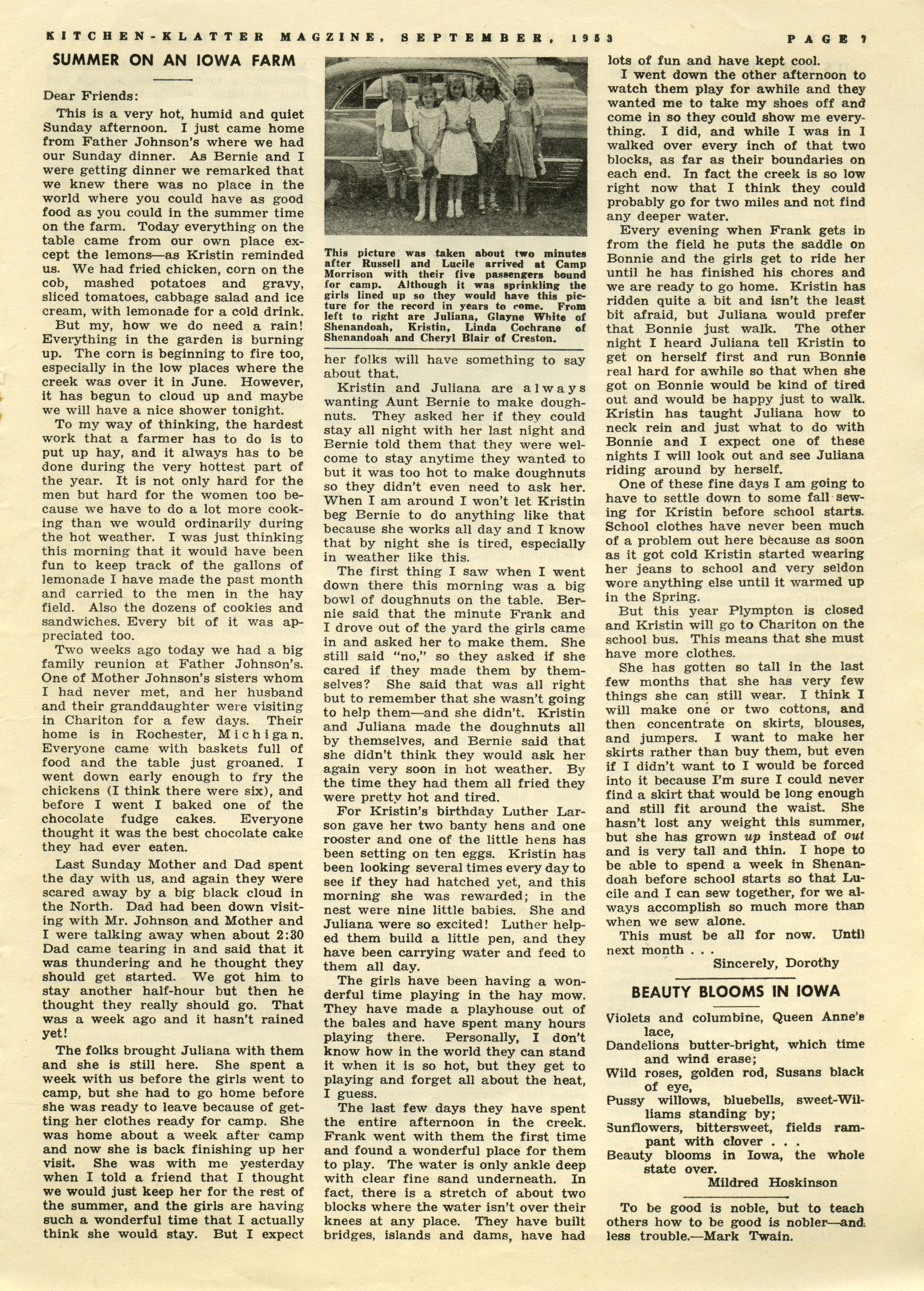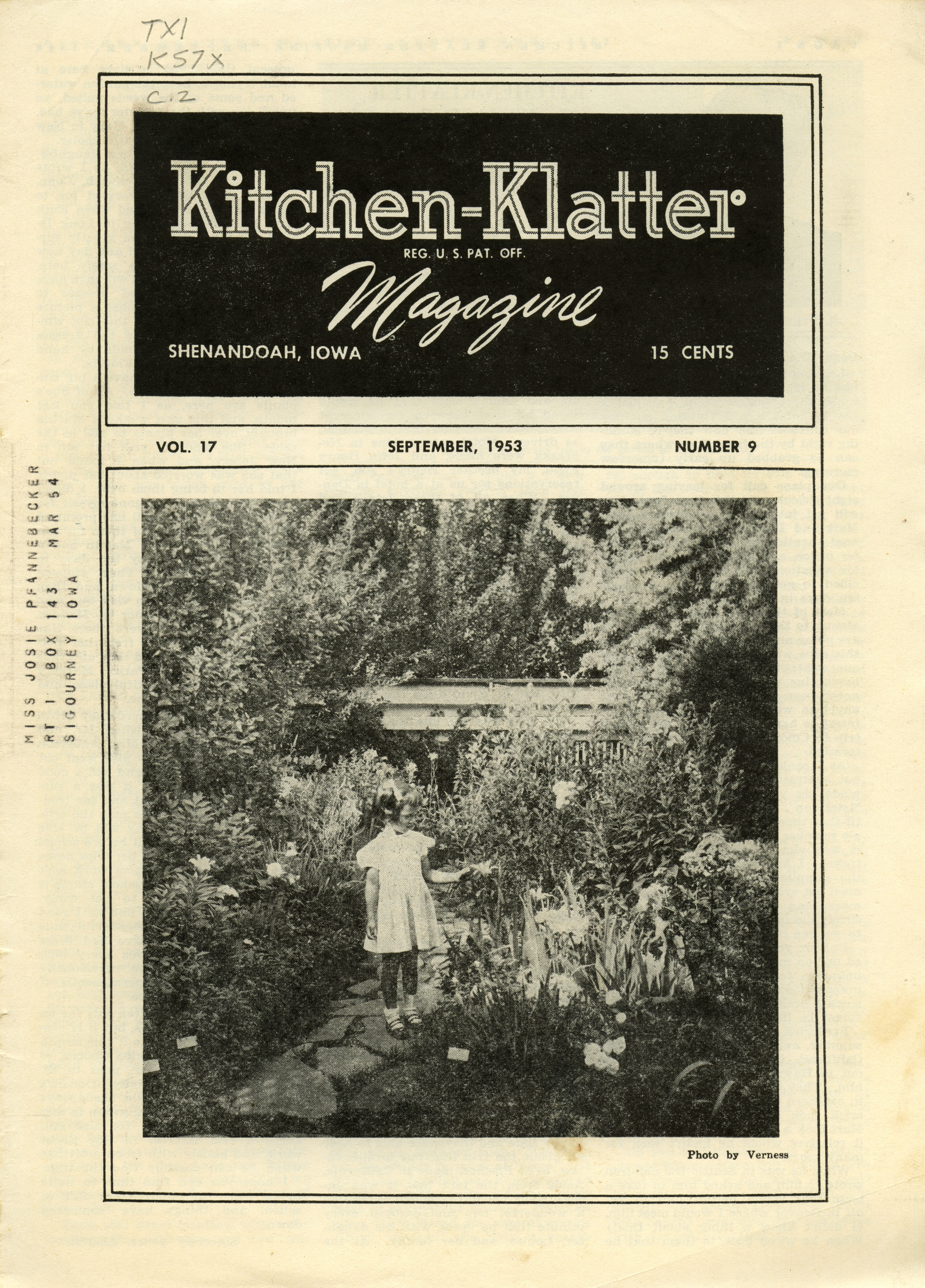 - "Kitchen-Klatter v. 17/18, n. 09, 1953", Kitchen-Klatter Magazine Issues, Iowa State University Library Digital Collections