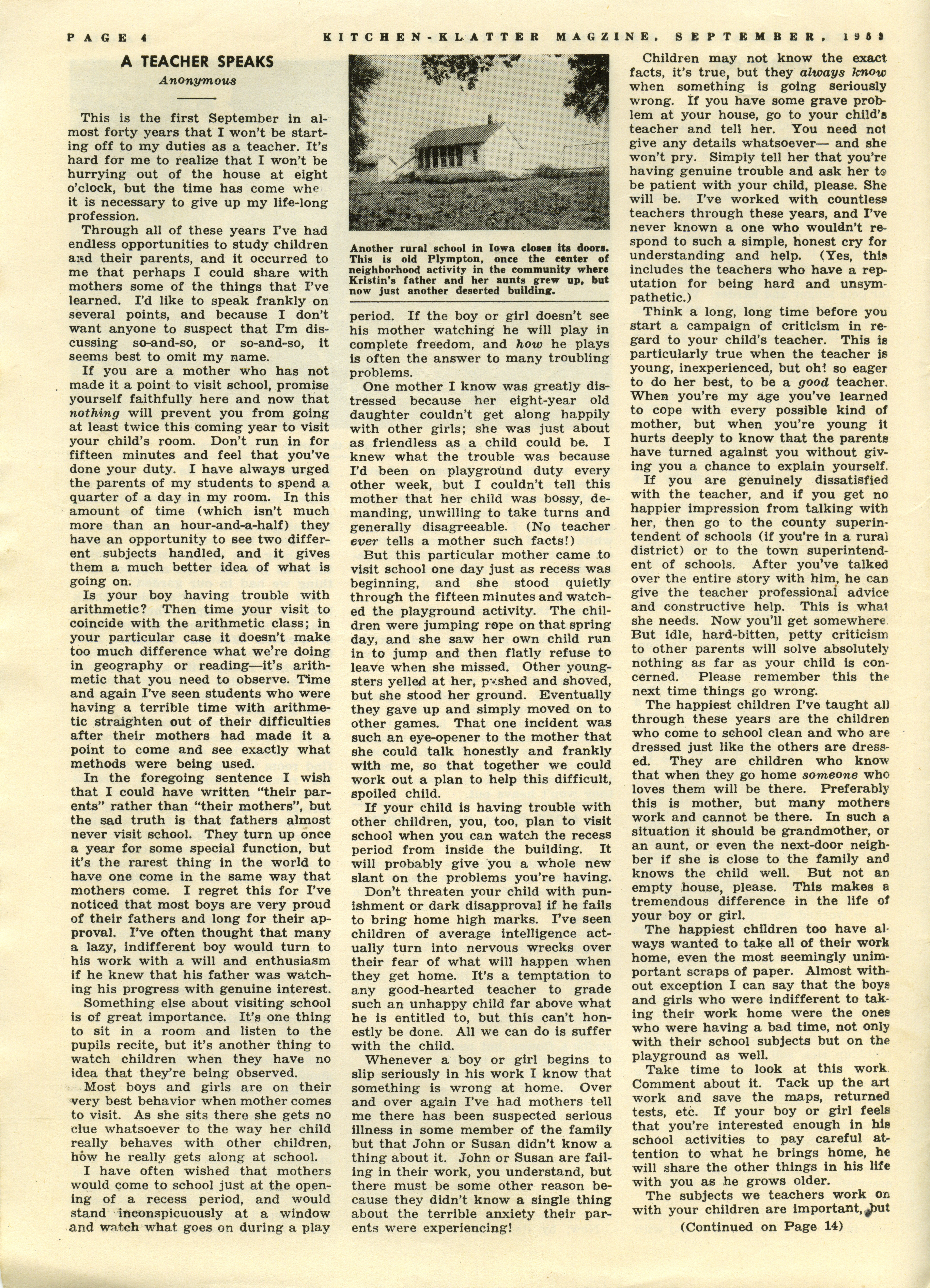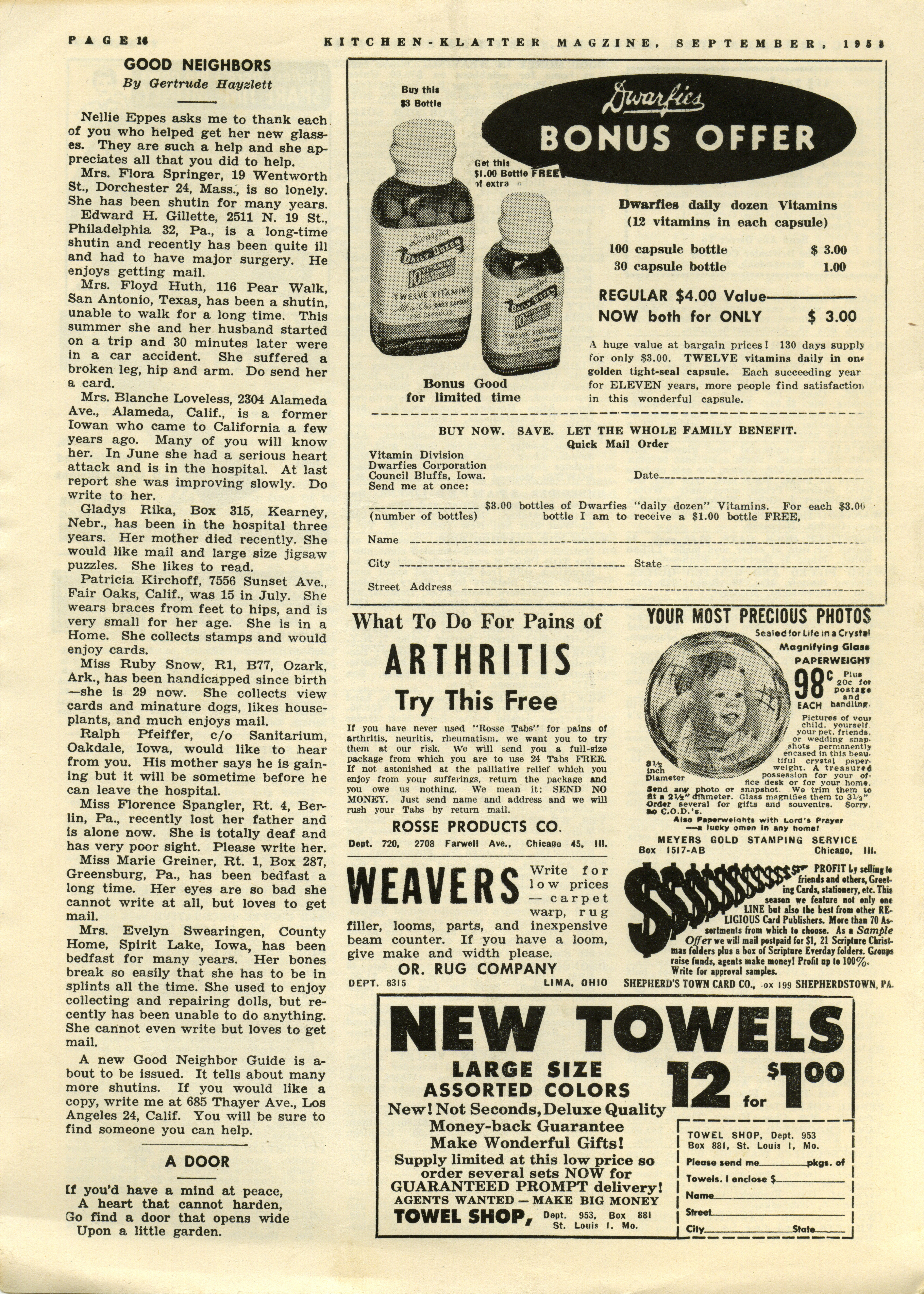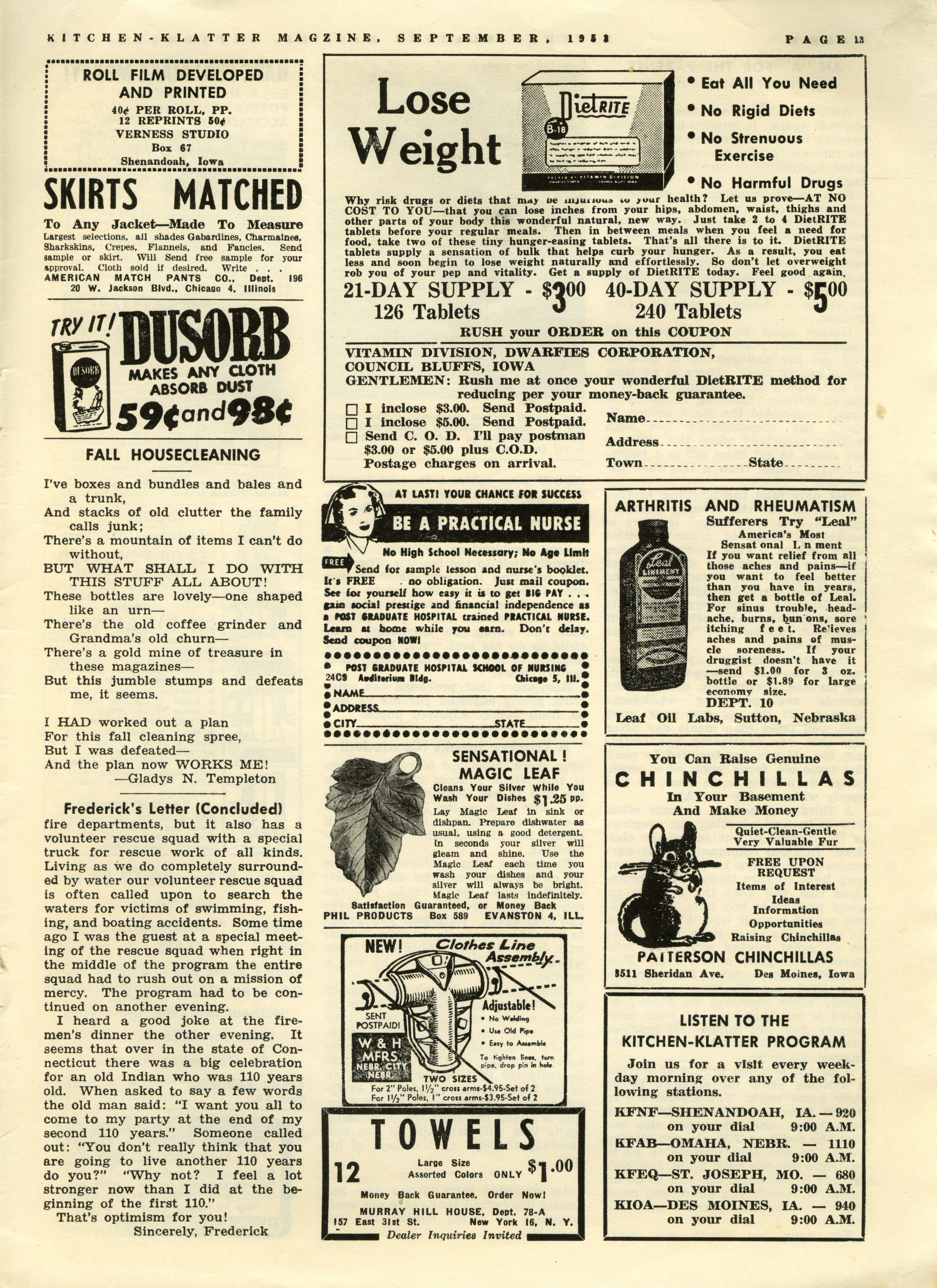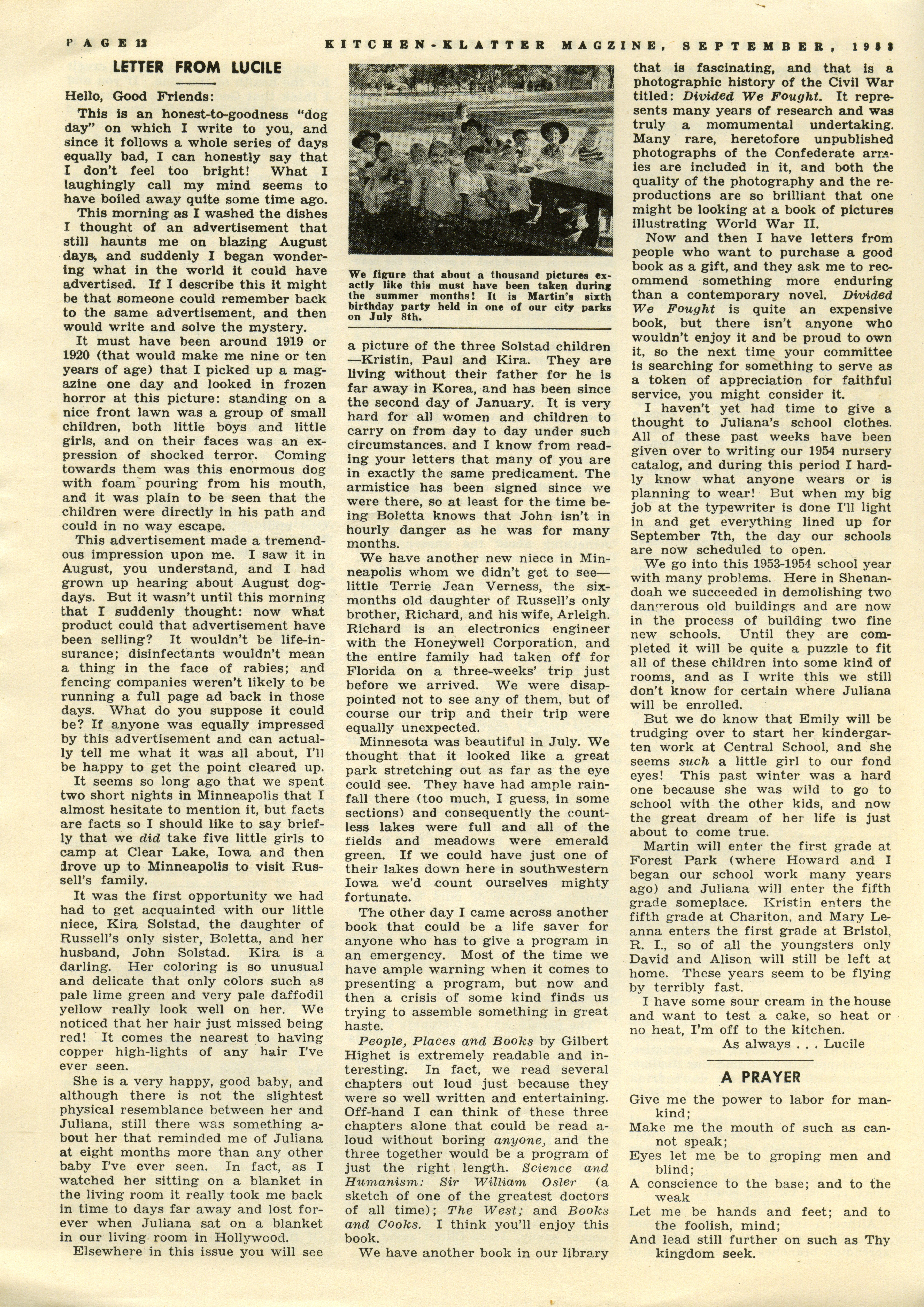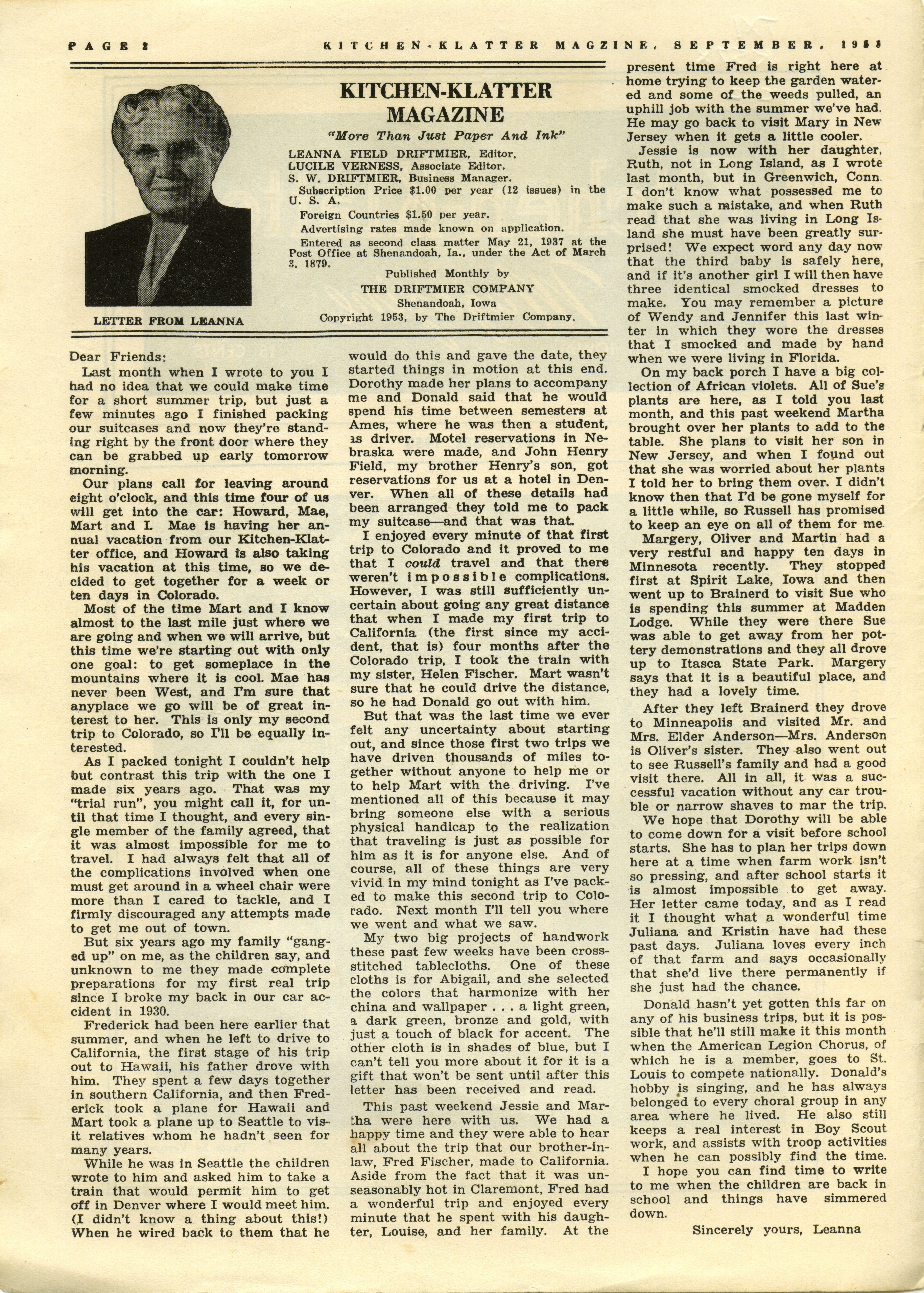 - "Kitchen-Klatter v. 17/18, n. 09, 1953", Kitchen-Klatter Magazine Issues, Iowa State University Library Digital Collections