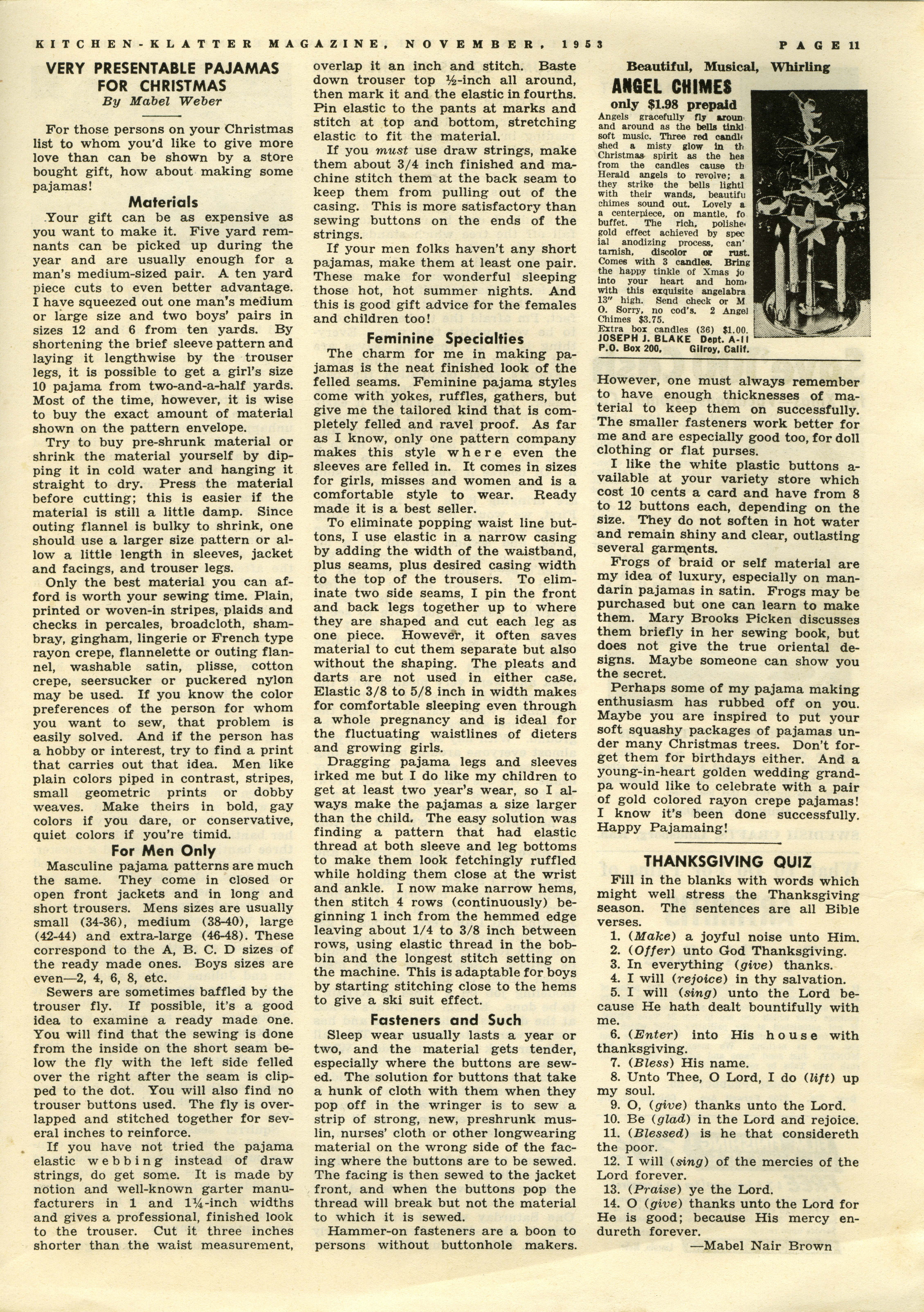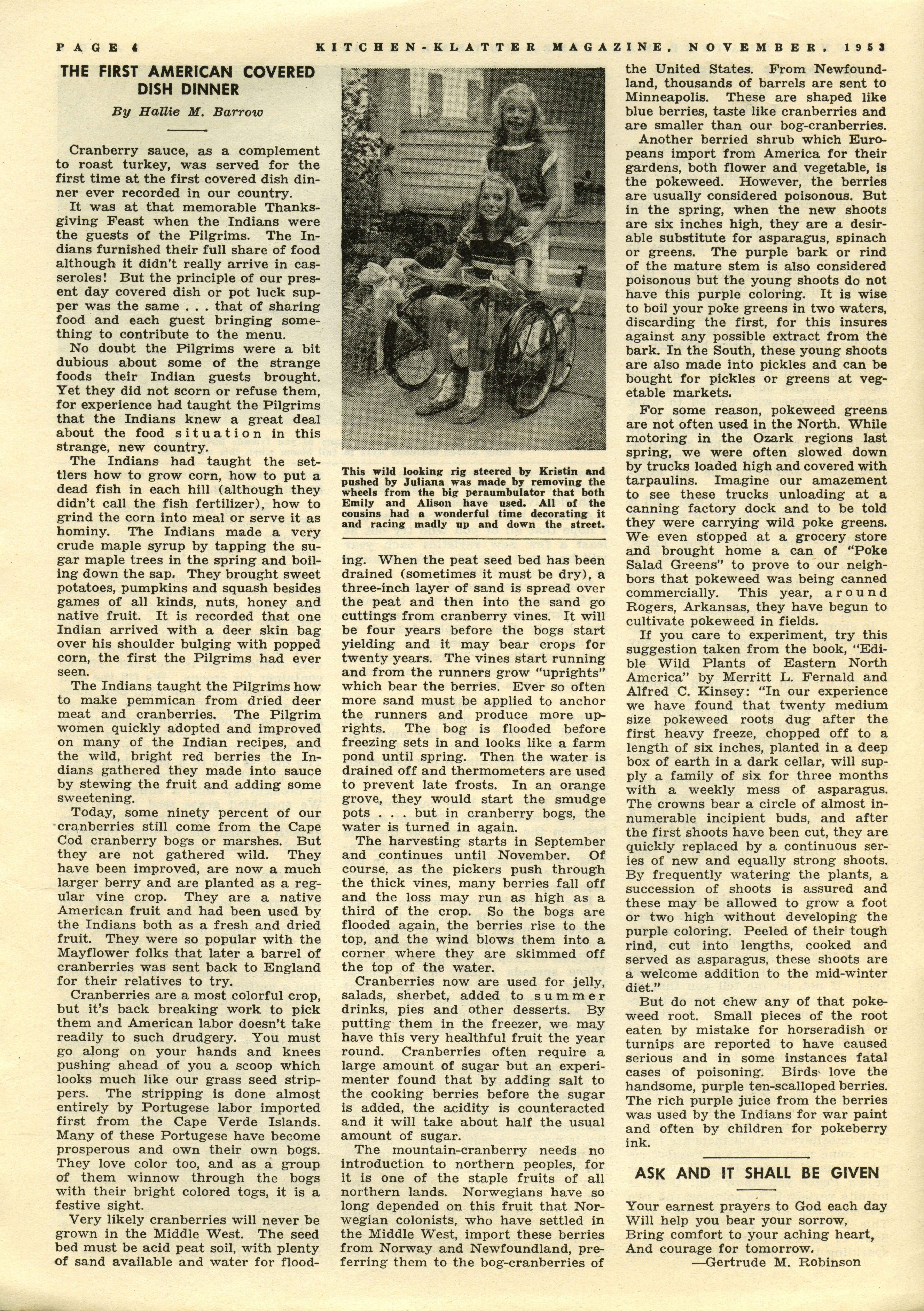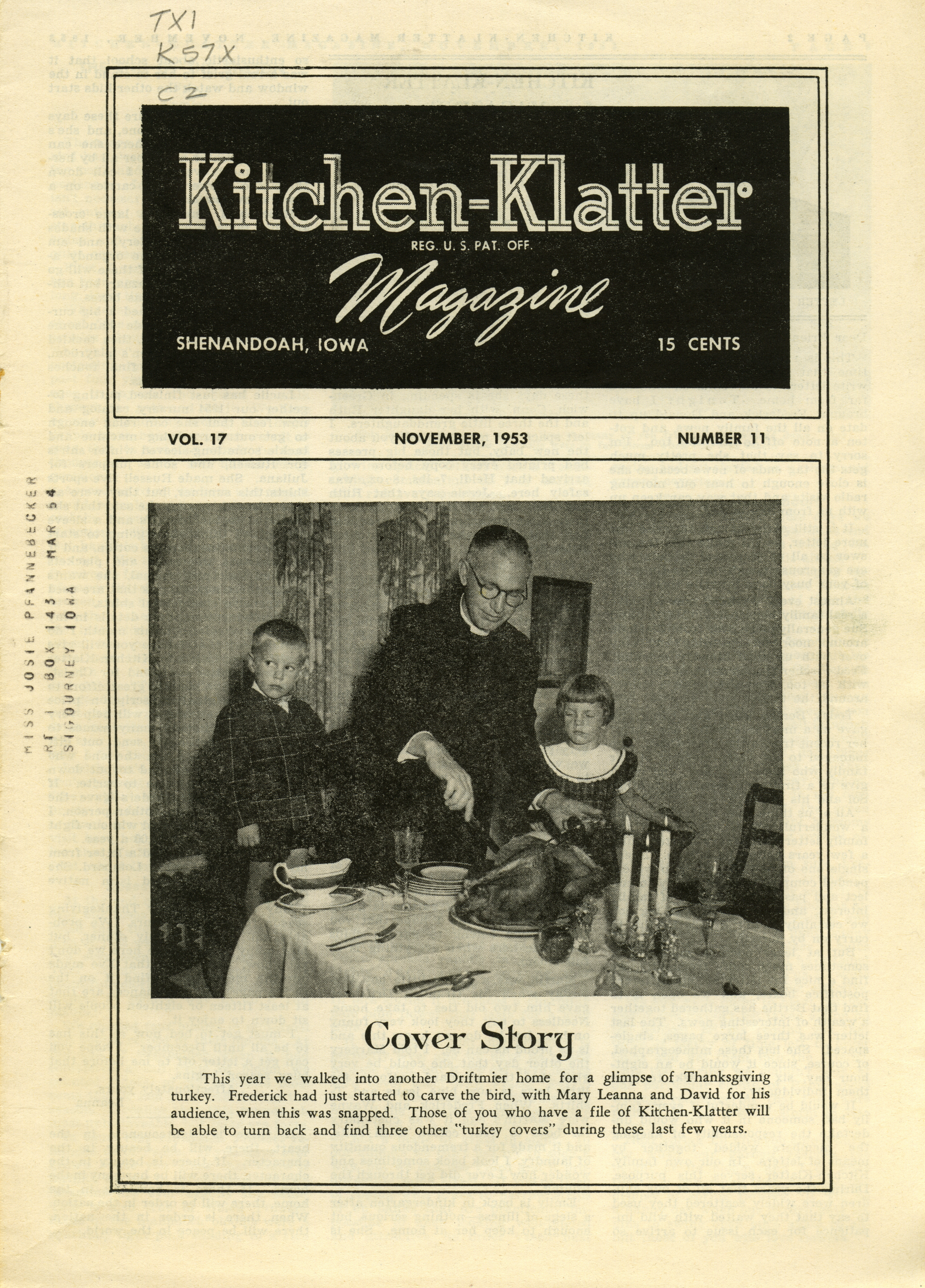 - "Kitchen-Klatter v. 17/18, n. 11, 1953", Kitchen-Klatter Magazine Issues, Iowa State University Library Digital Collections