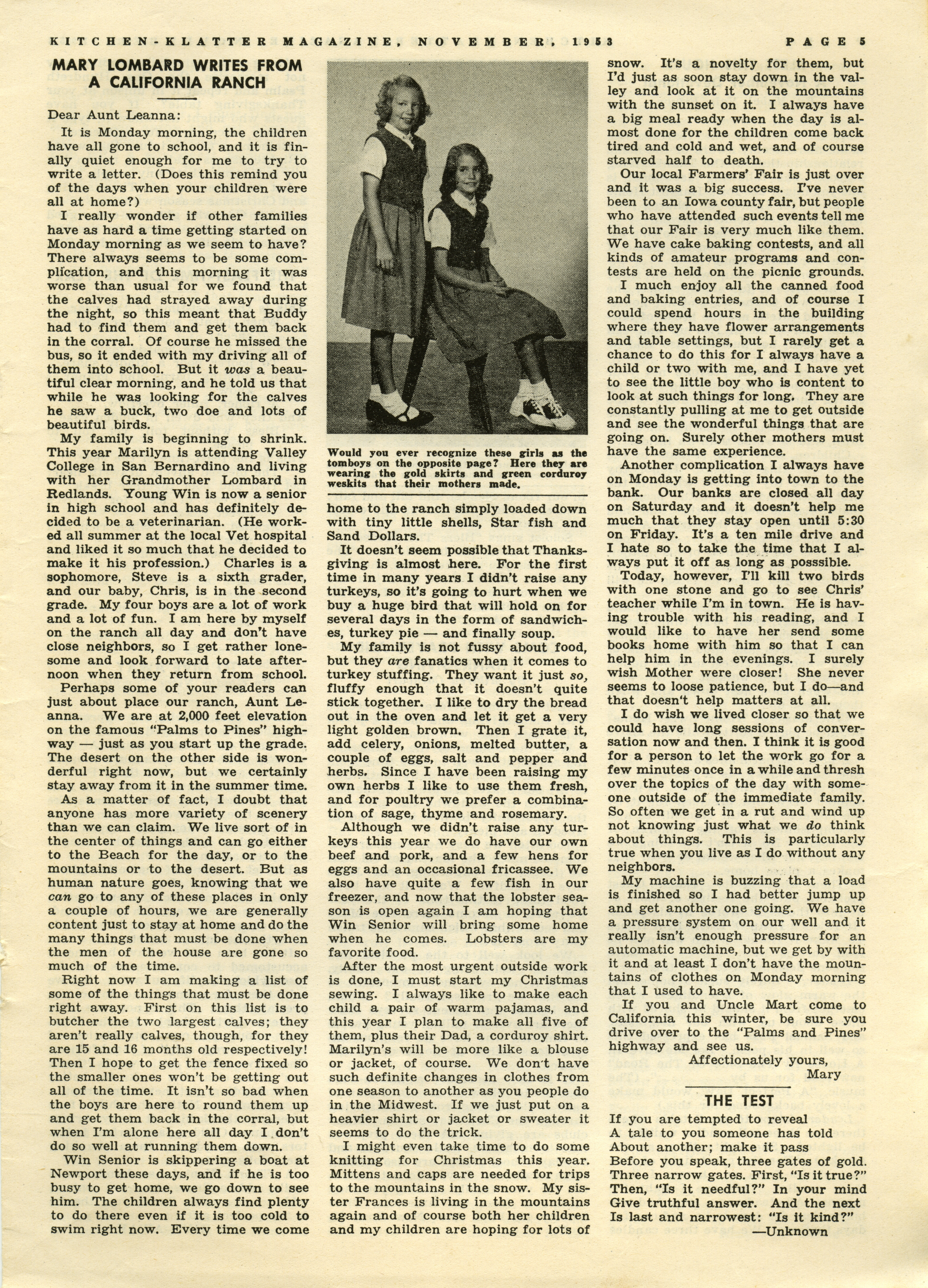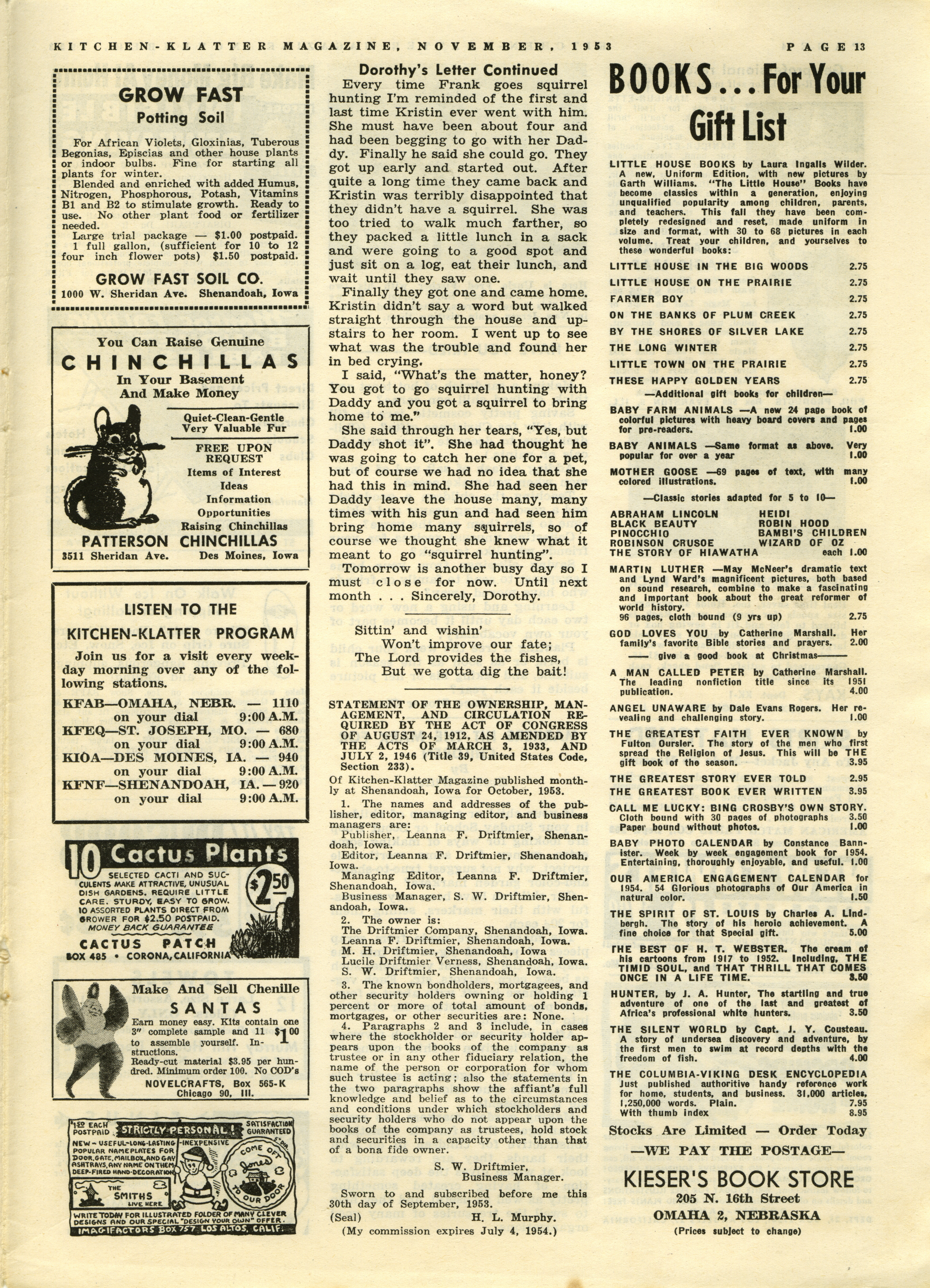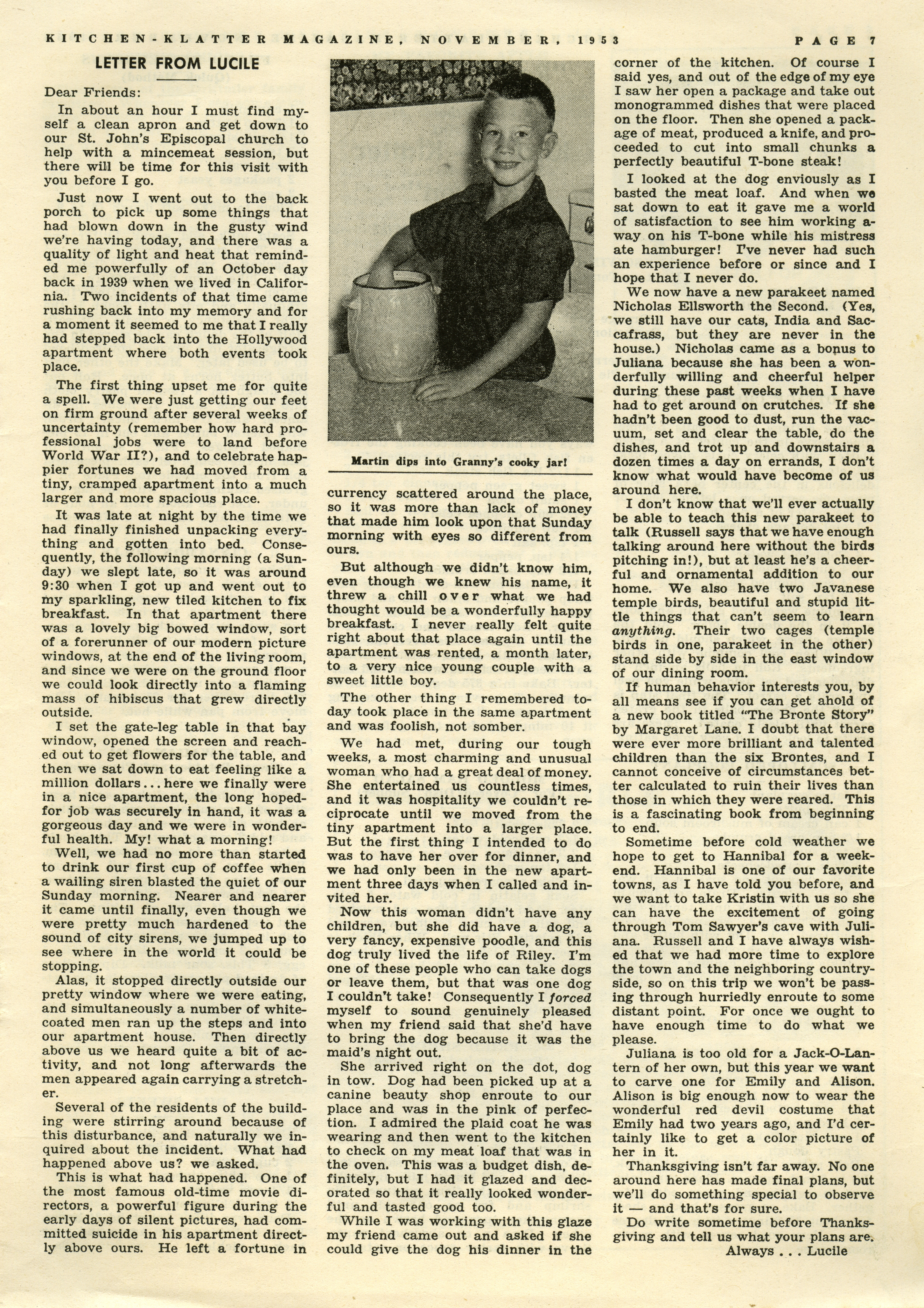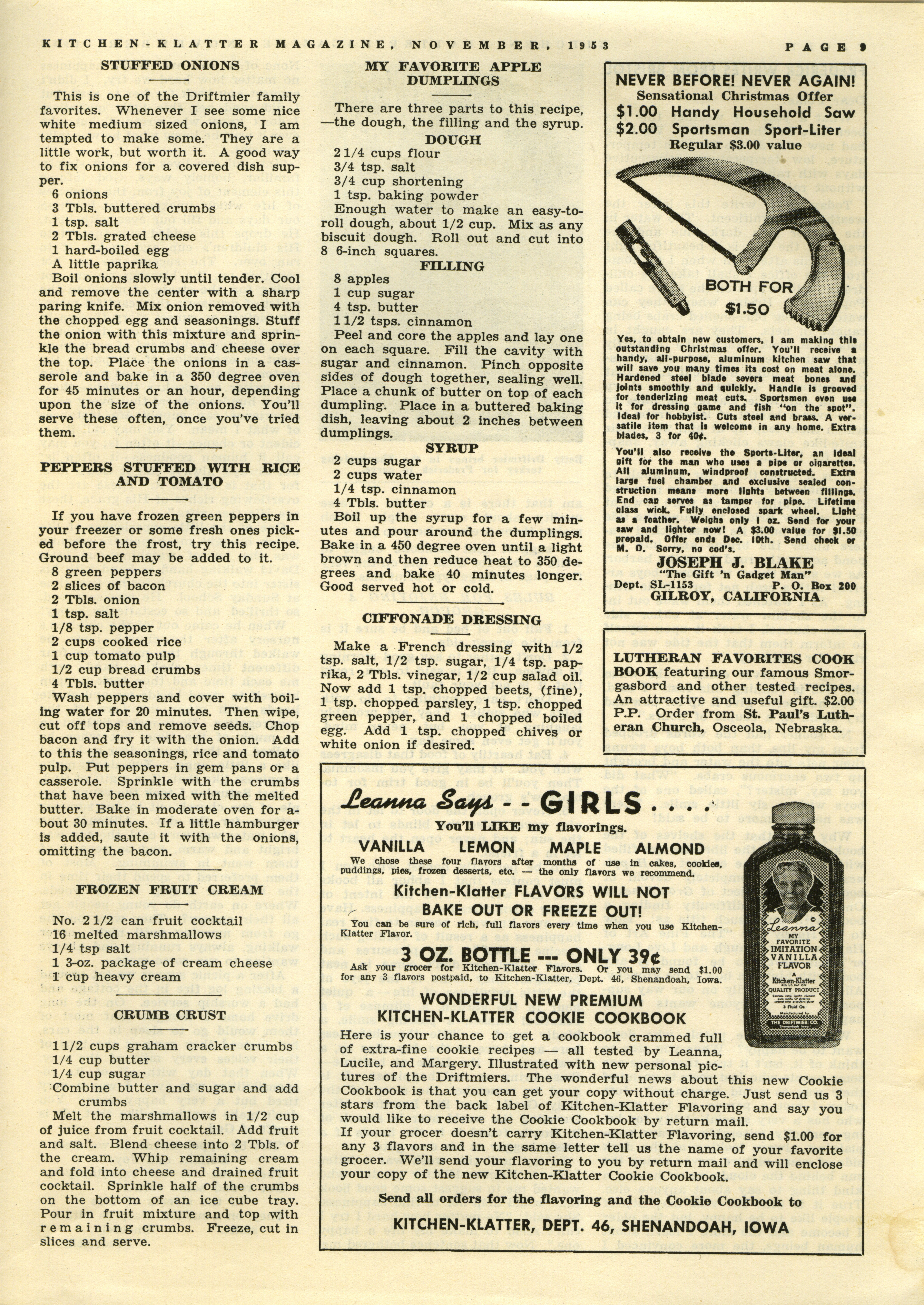 - "Kitchen-Klatter v. 17/18, n. 11, 1953", Kitchen-Klatter Magazine Issues, Iowa State University Library Digital Collections