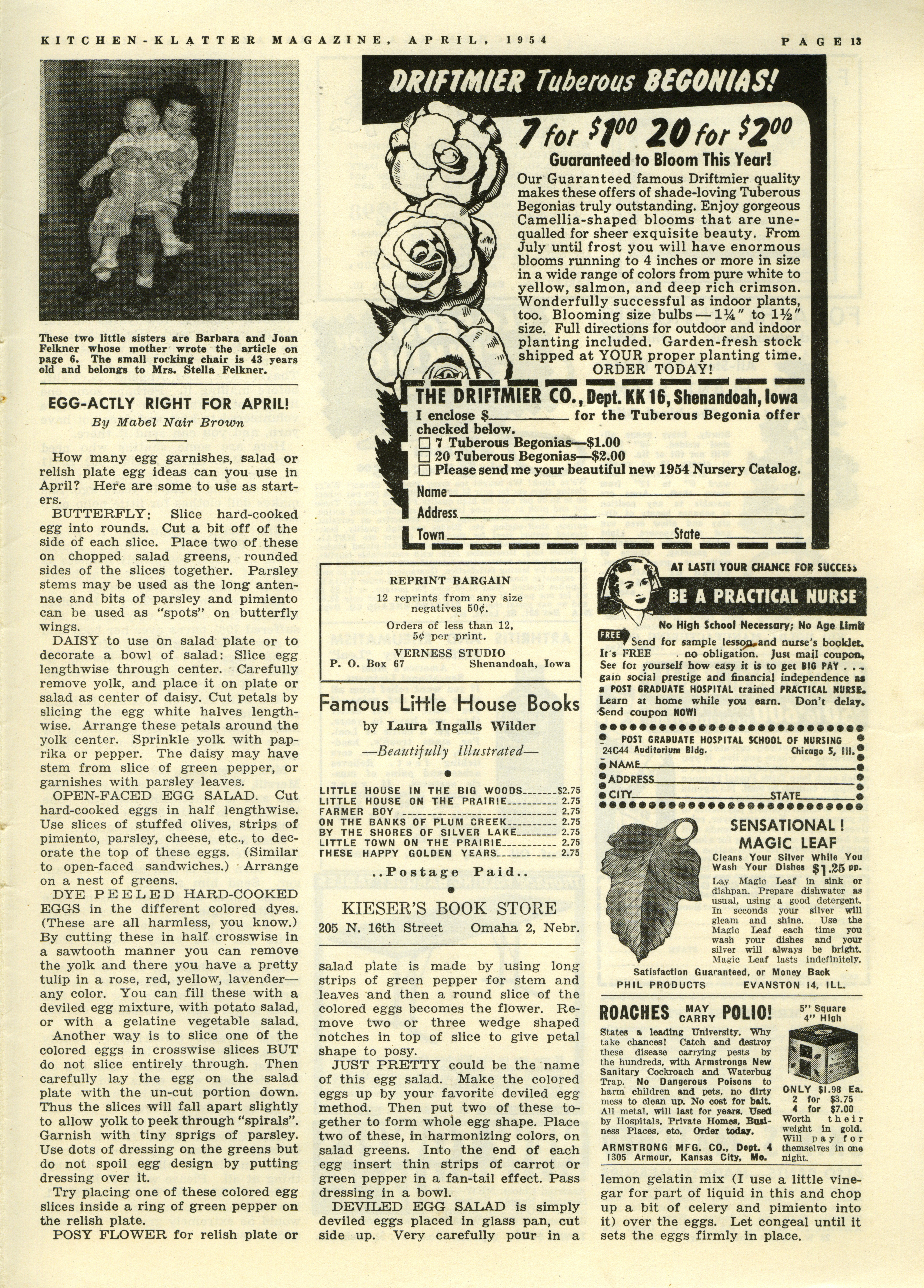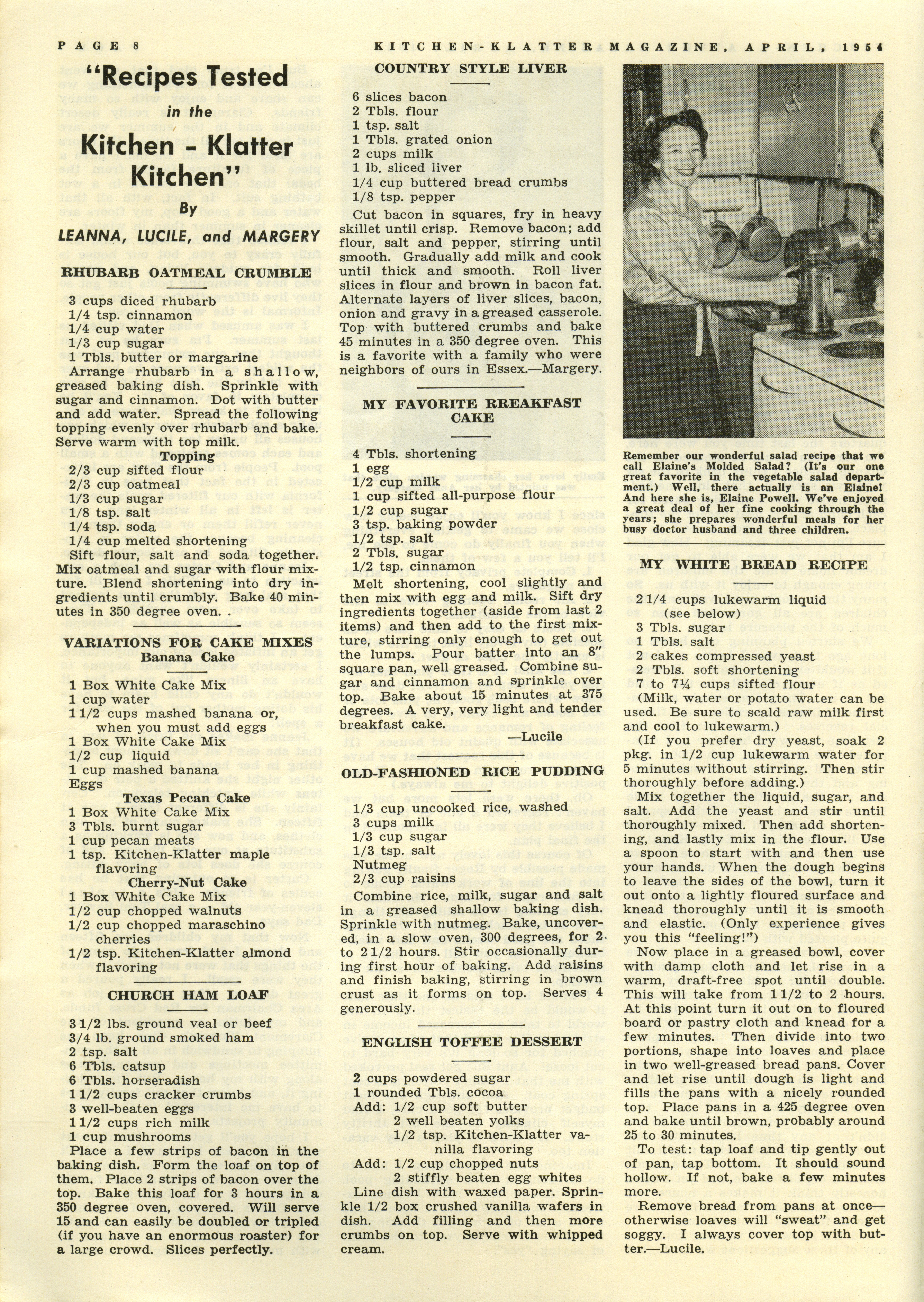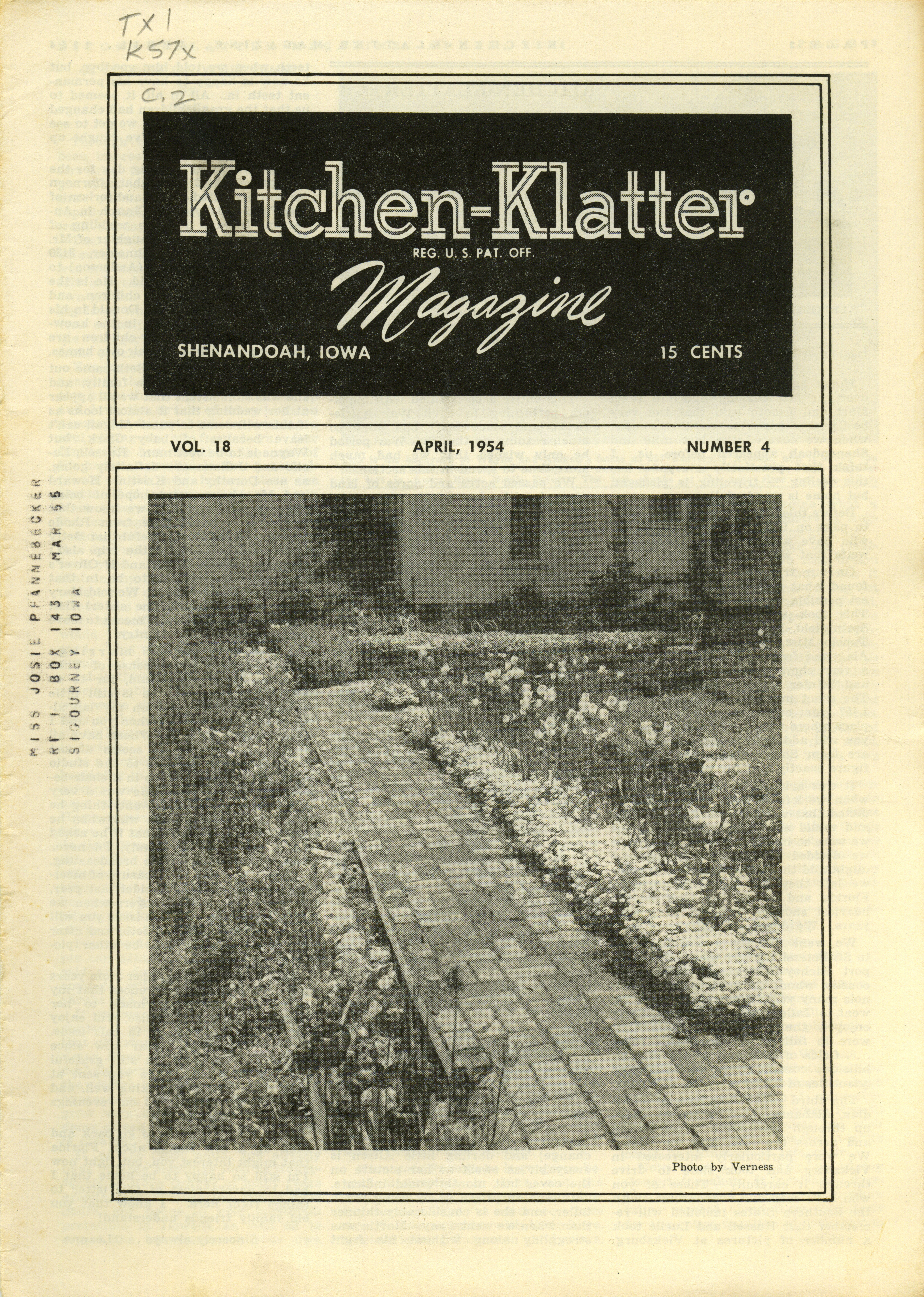 - "Kitchen-Klatter v. 18, n. 04, 1954", Kitchen-Klatter Magazine Issues, Iowa State University Library Digital Collections