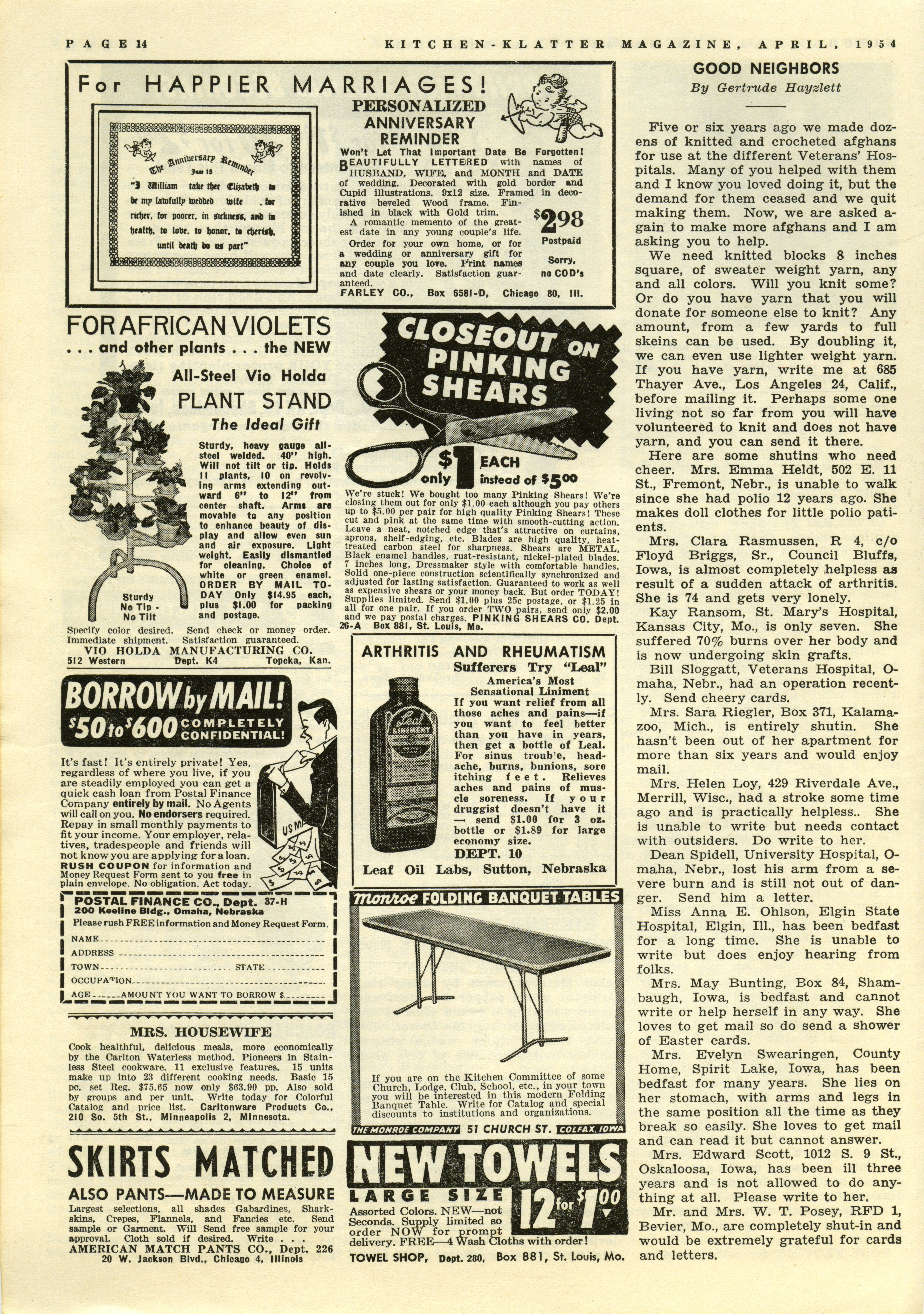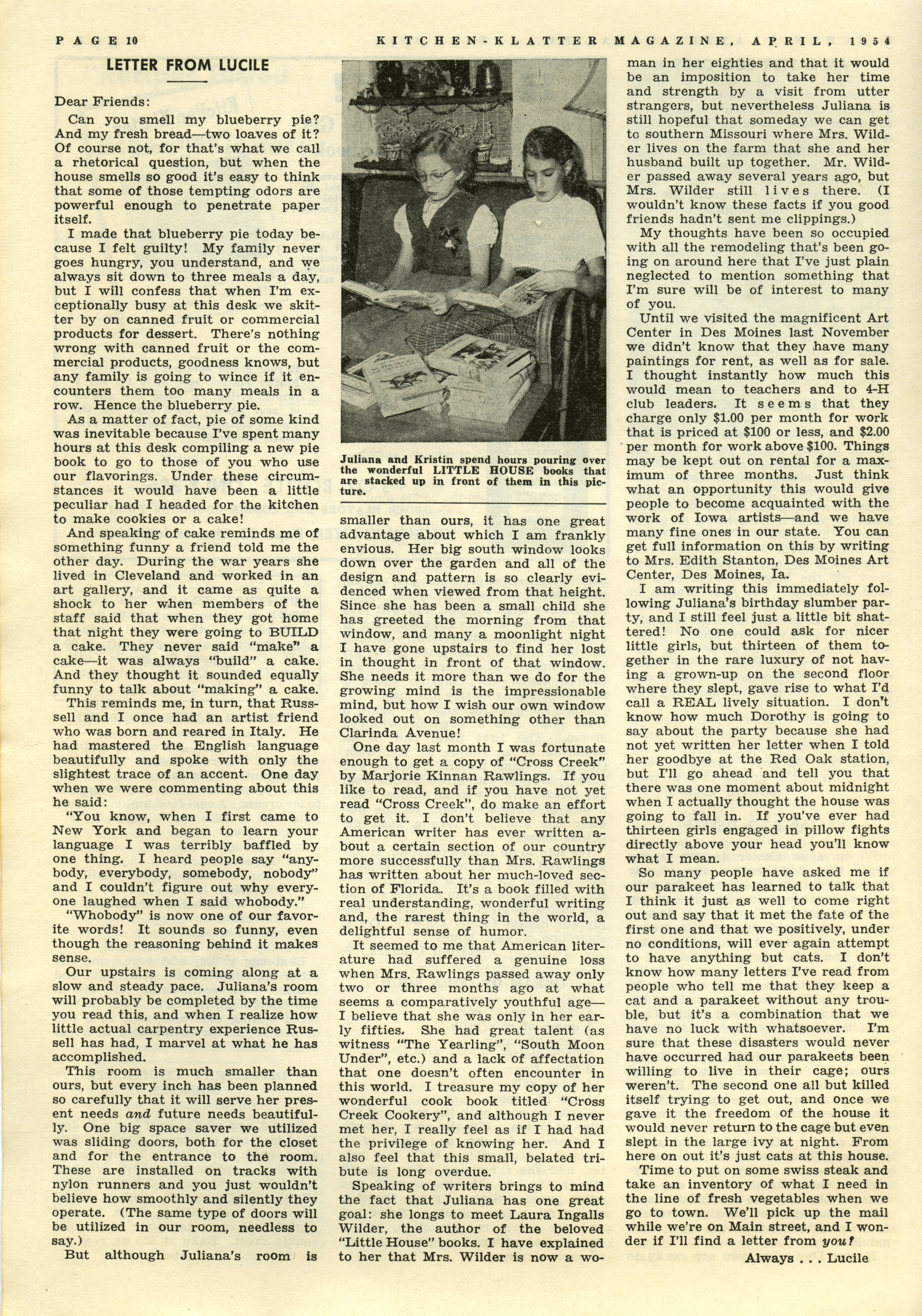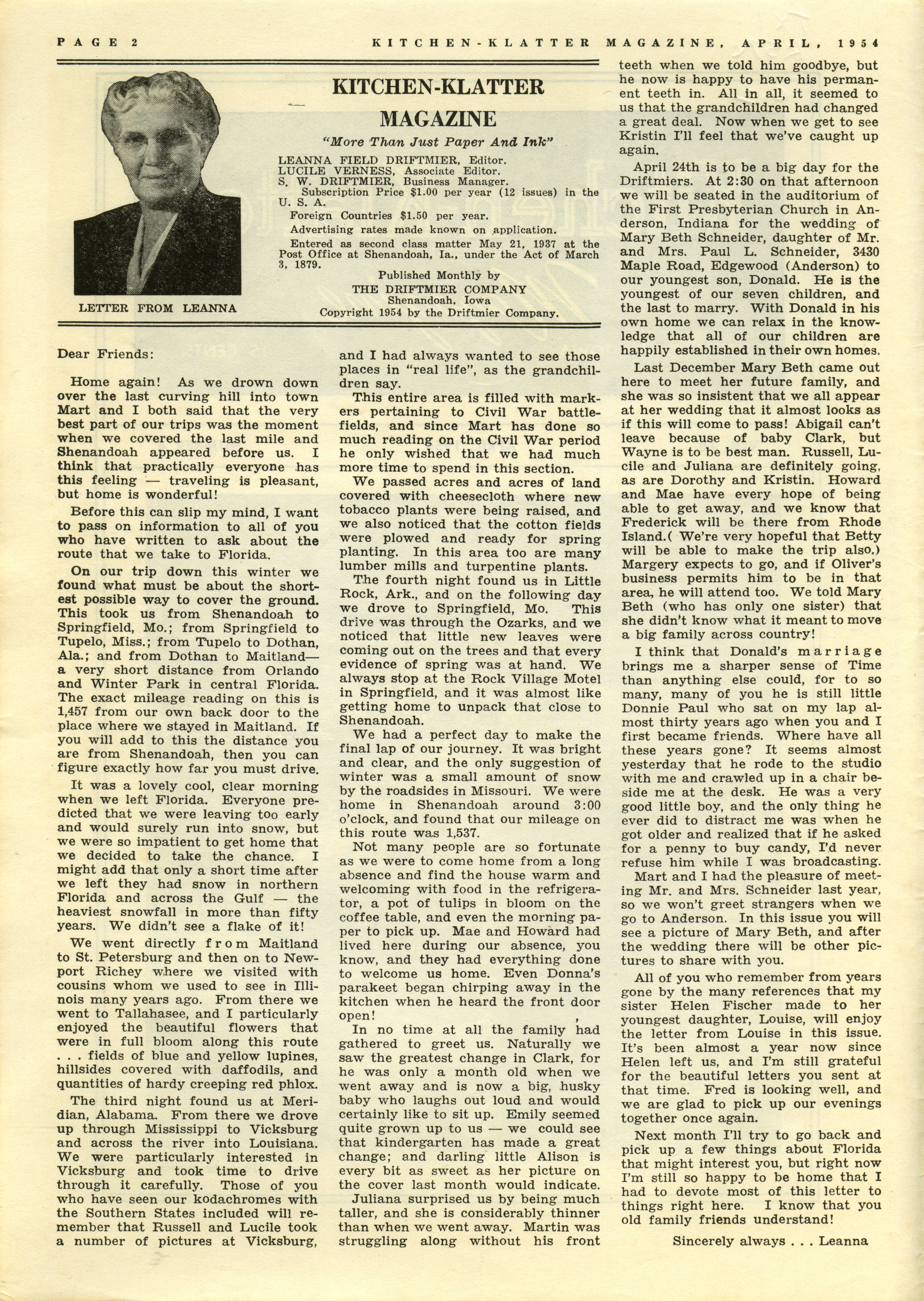 - "Kitchen-Klatter v. 18, n. 04, 1954", Kitchen-Klatter Magazine Issues, Iowa State University Library Digital Collections