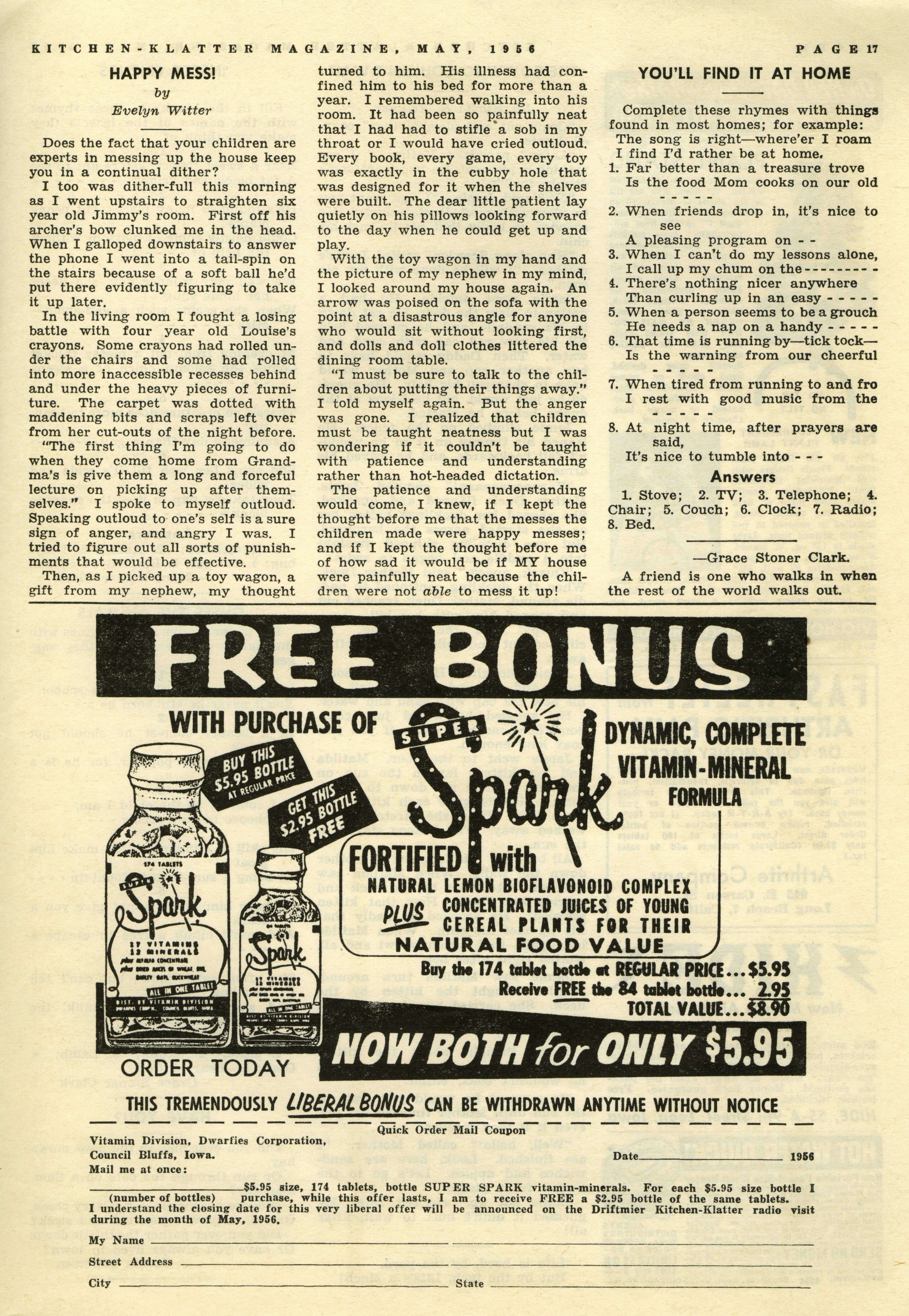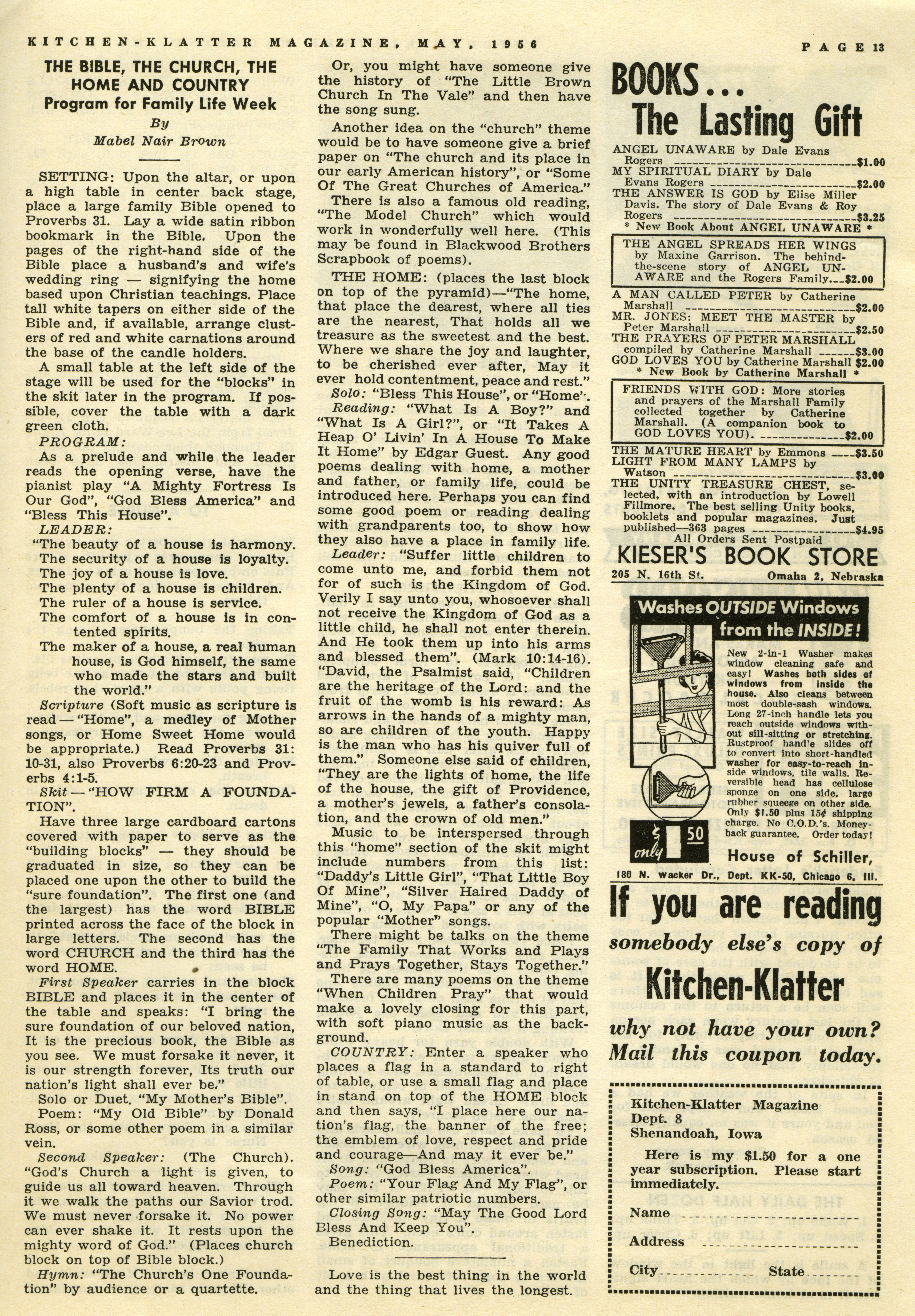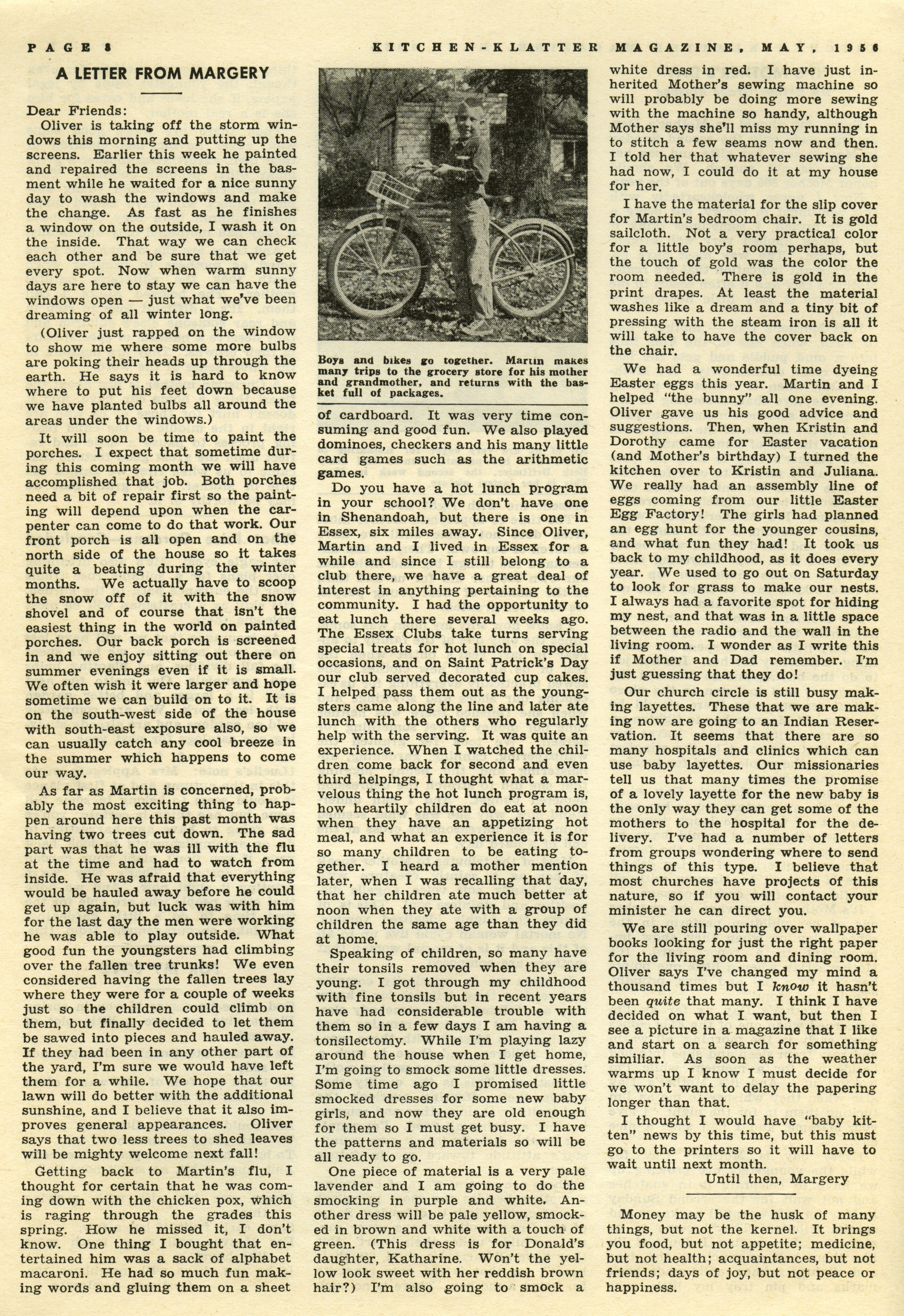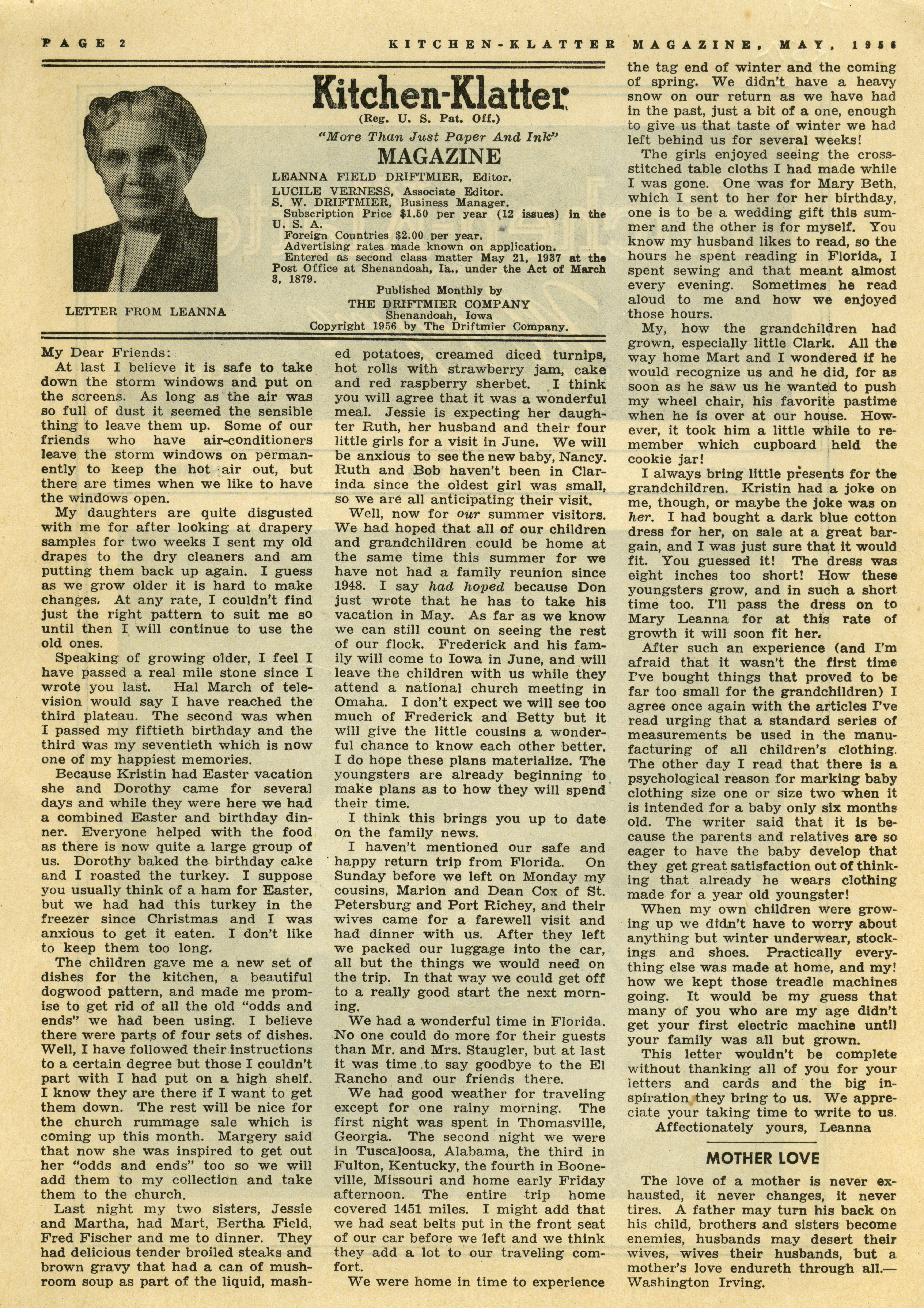 - "Kitchen-Klatter v. 20, n. 05, 1956", Kitchen-Klatter Magazine Issues, Iowa State University Library Digital Collections