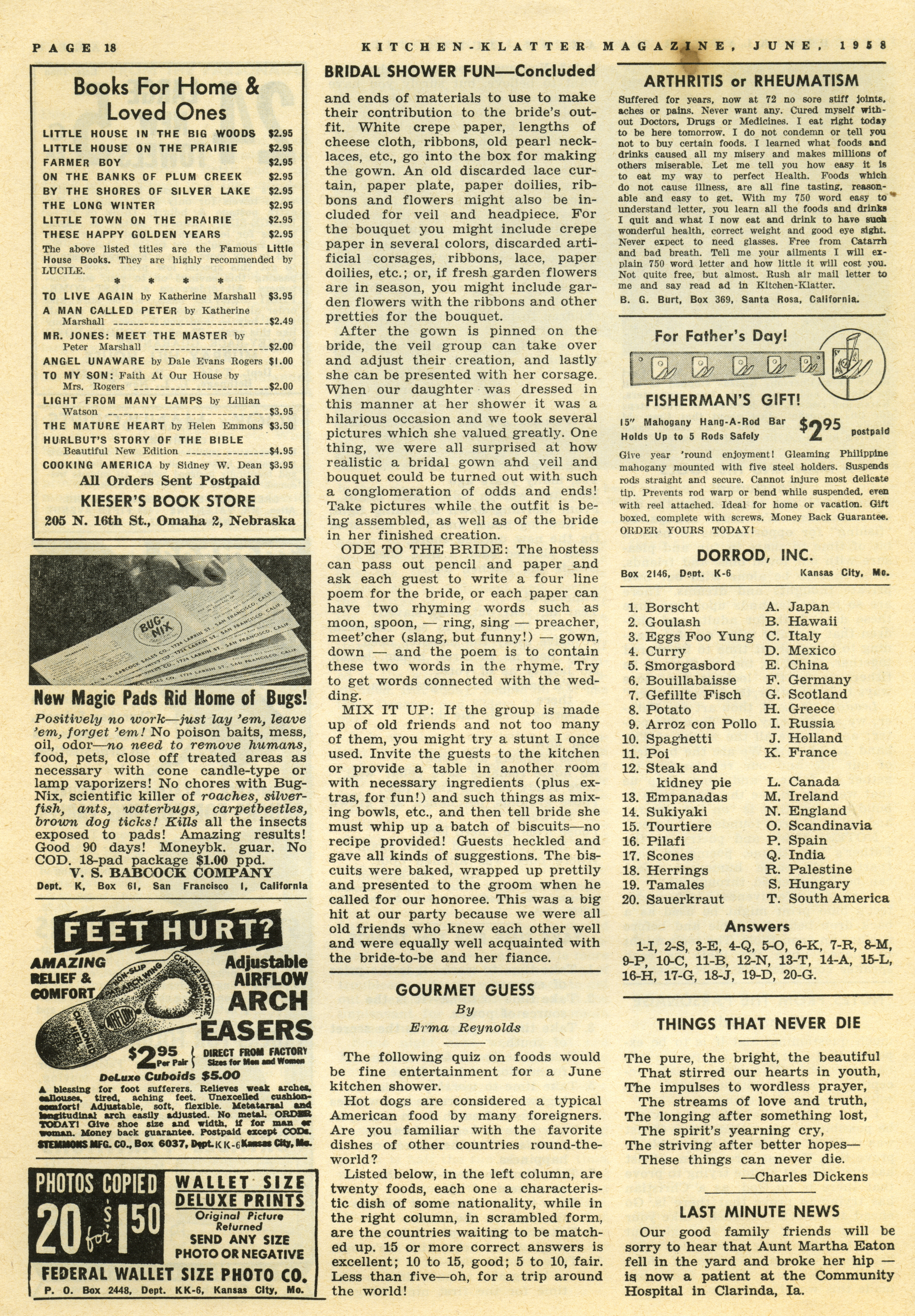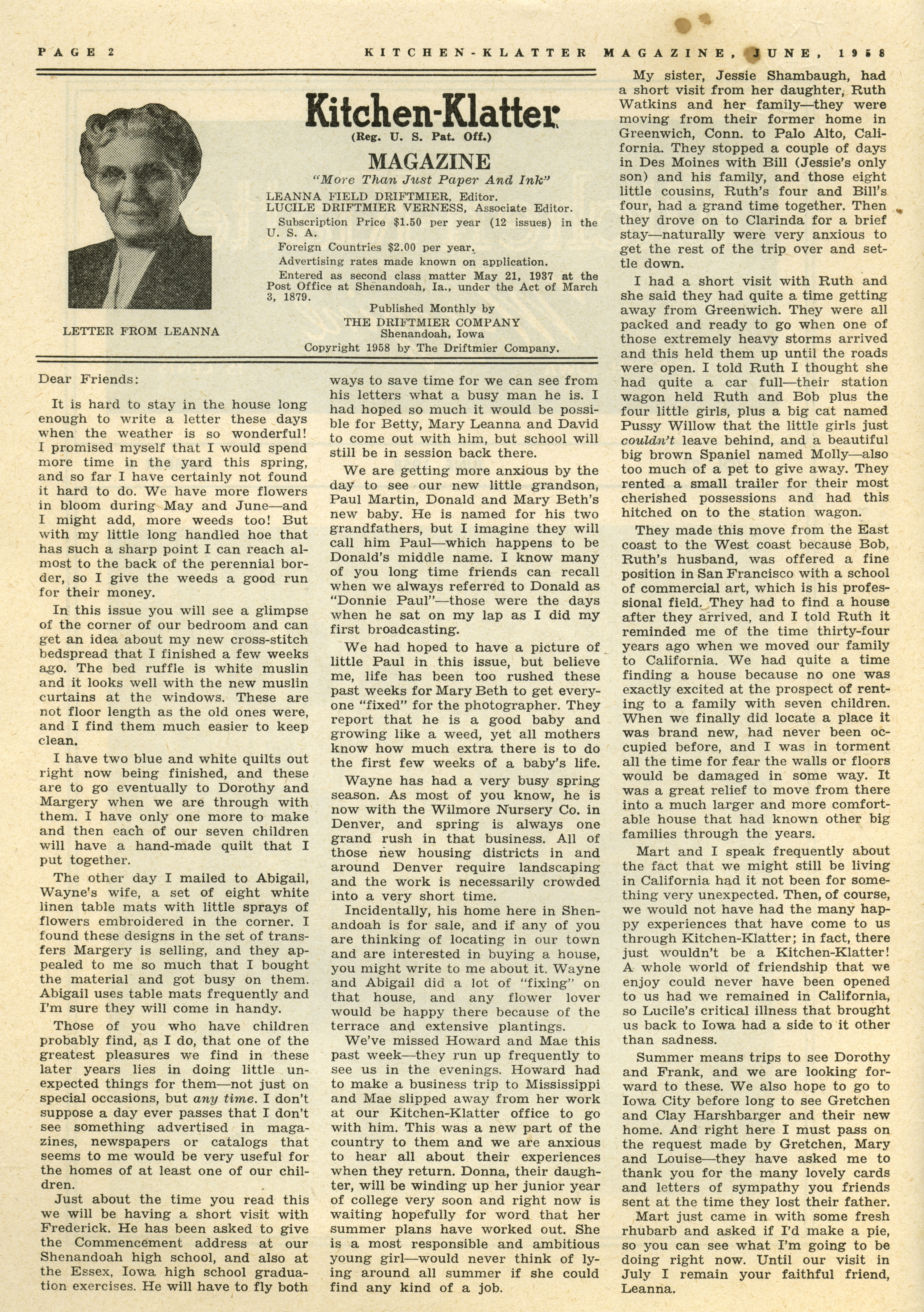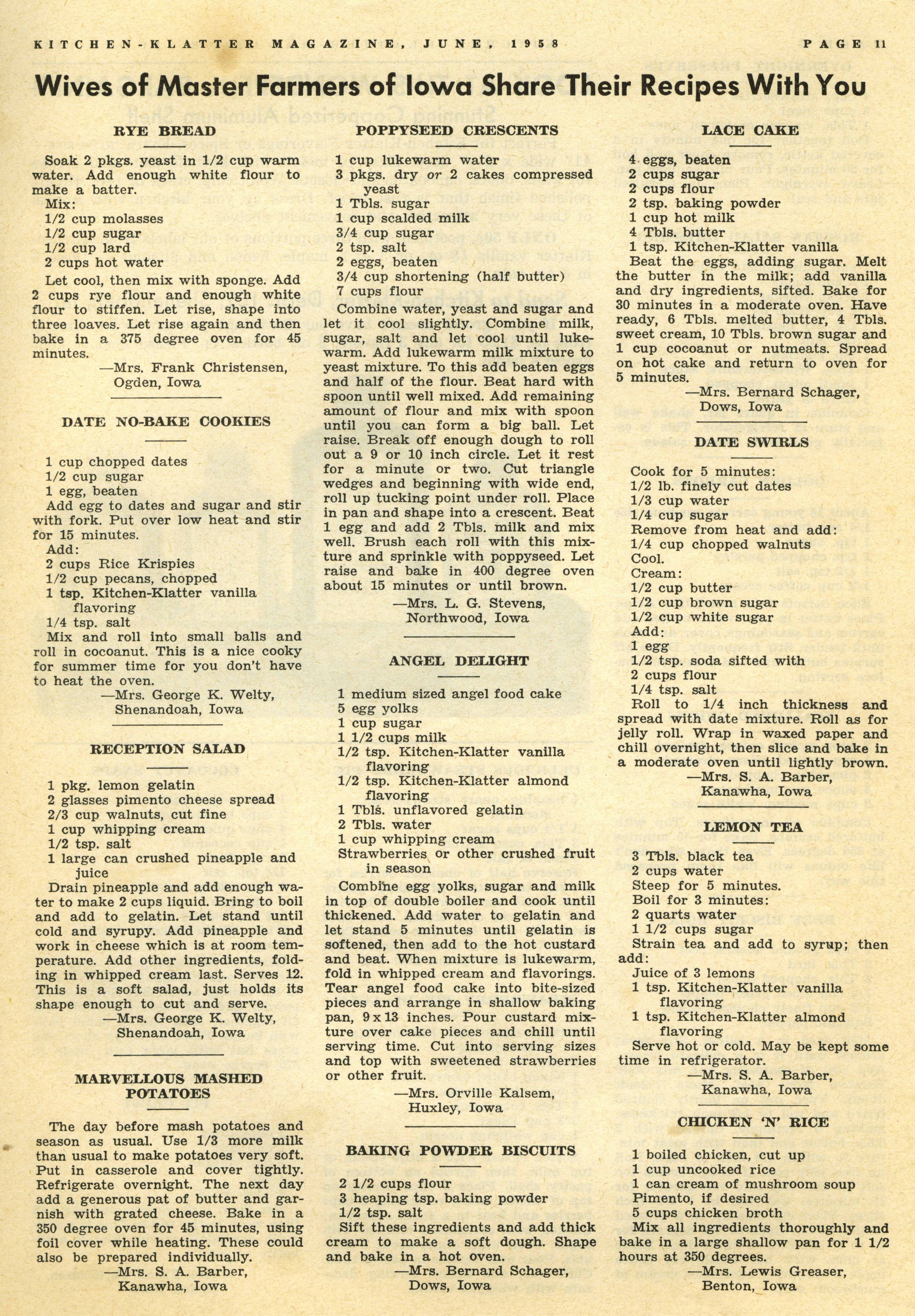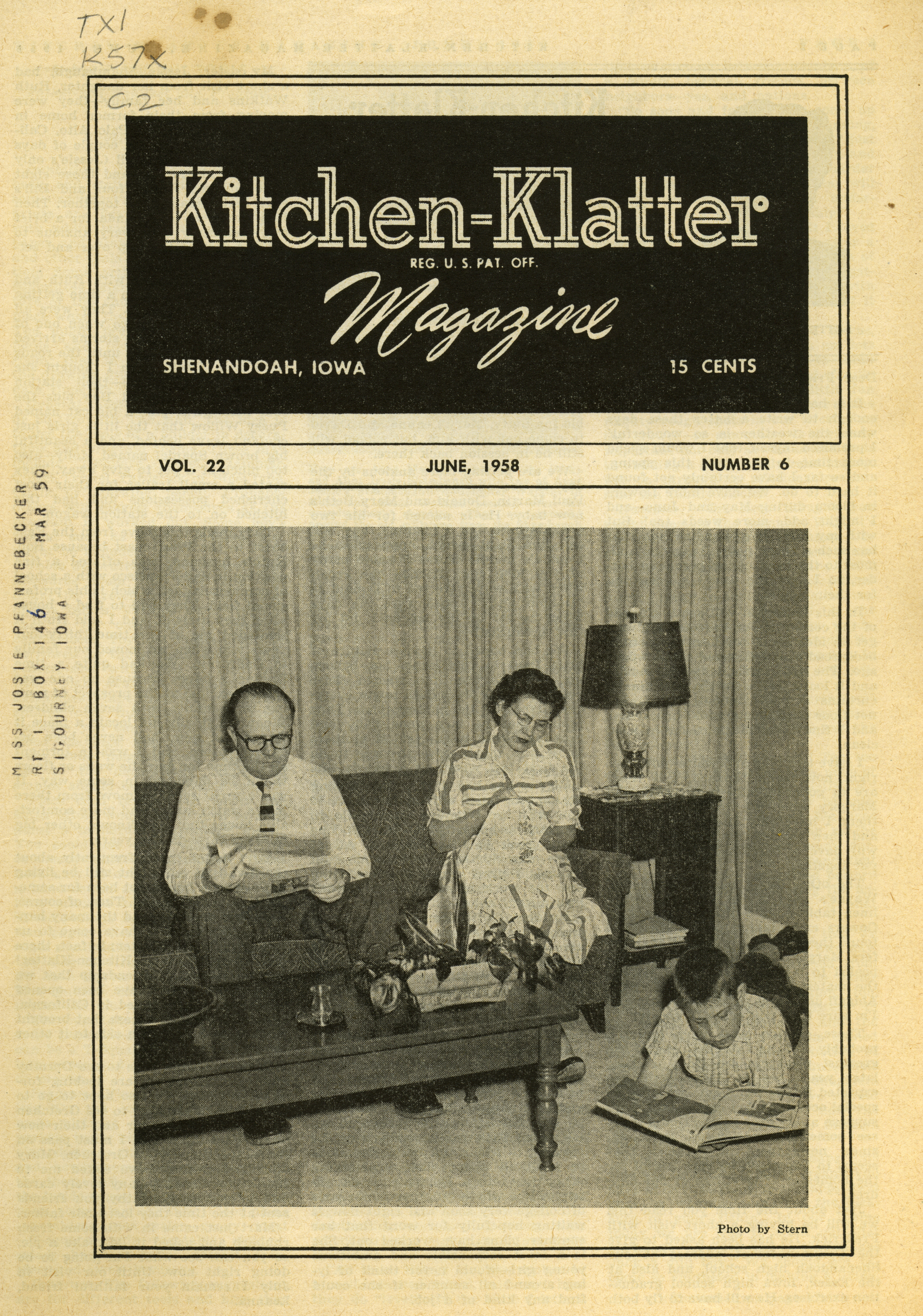 - "Kitchen-Klatter v. 22, n. 06, 1958", Kitchen-Klatter Magazine Issues, Iowa State University Library Digital Collections