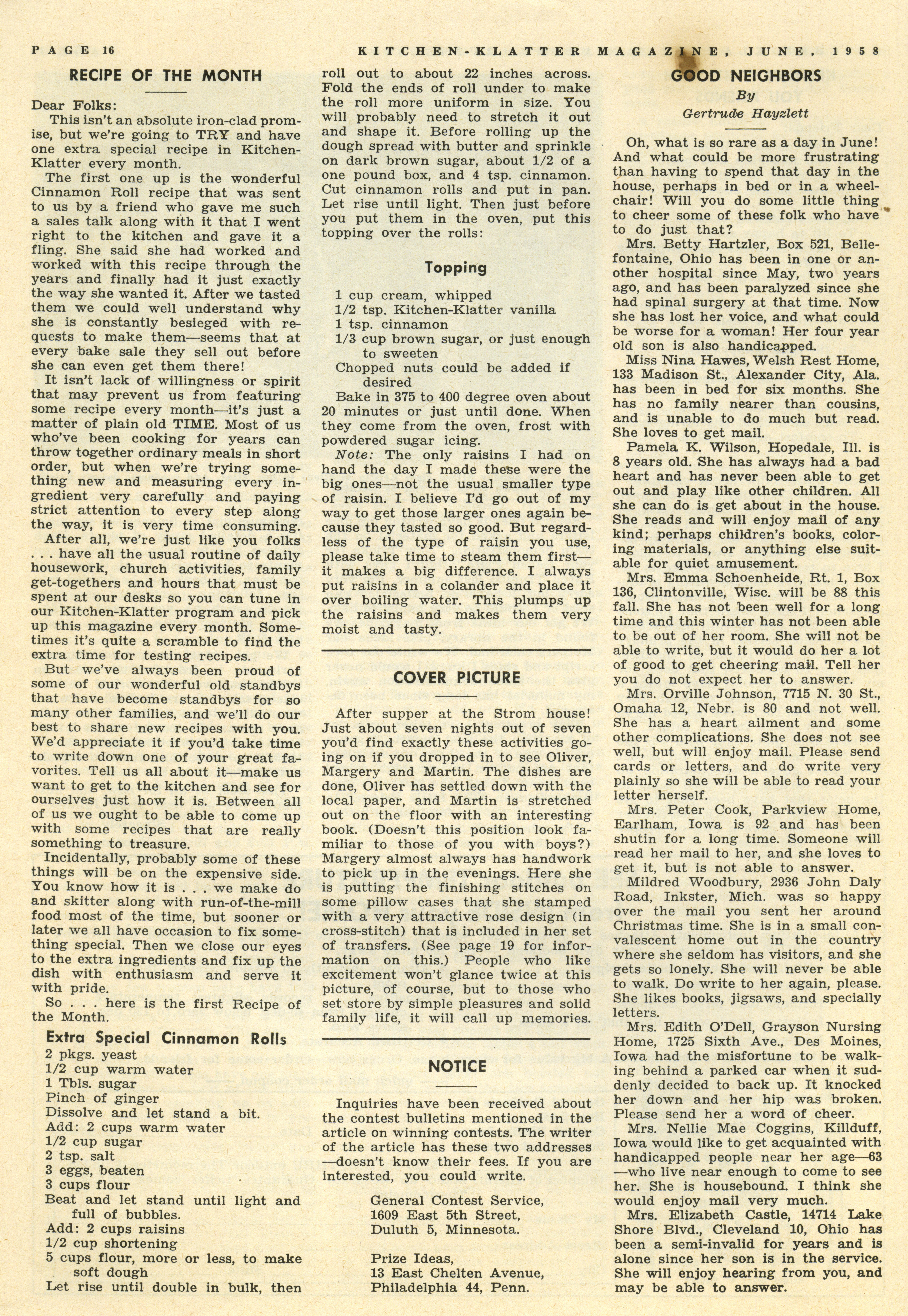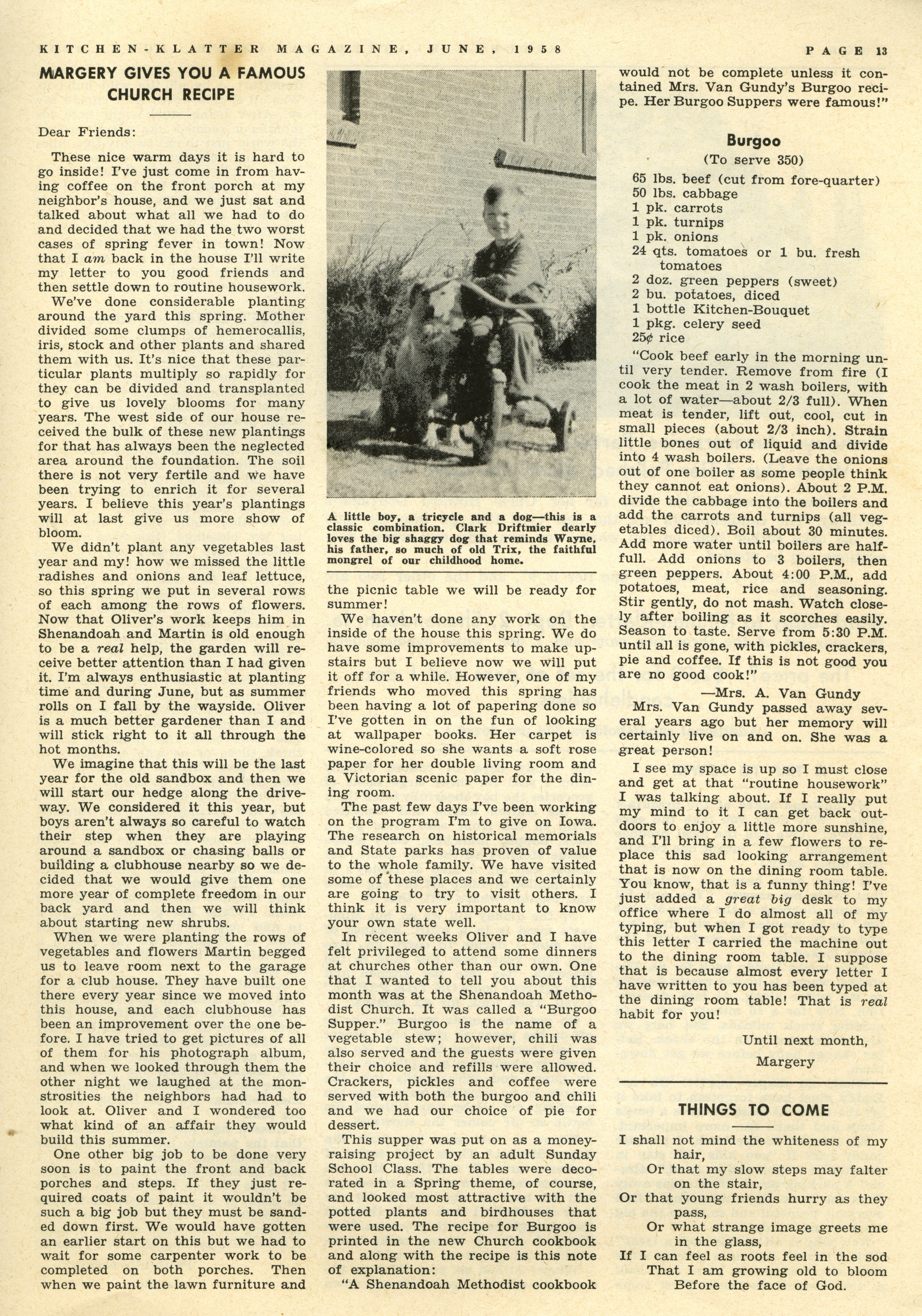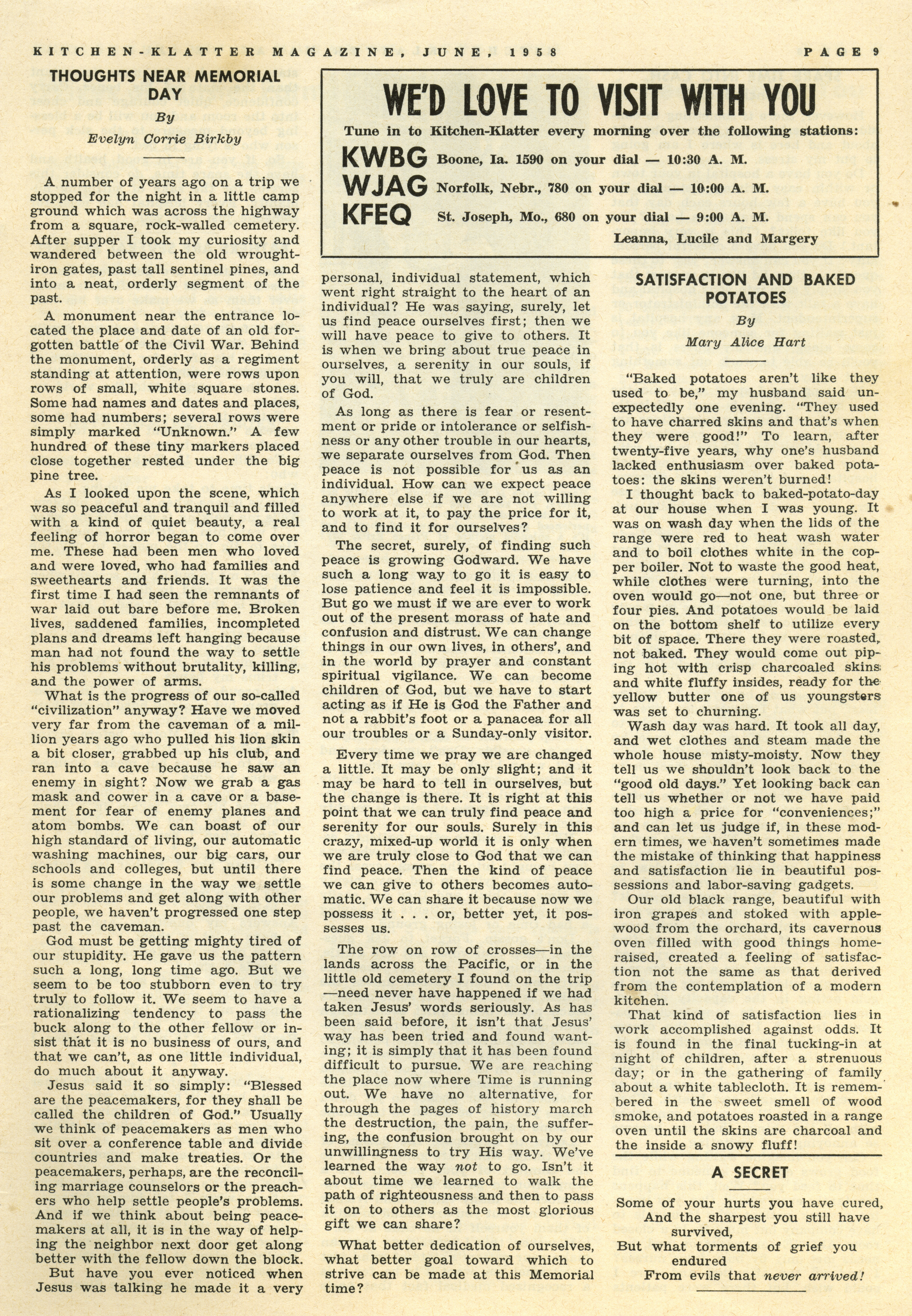 - "Kitchen-Klatter v. 22, n. 06, 1958", Kitchen-Klatter Magazine Issues, Iowa State University Library Digital Collections