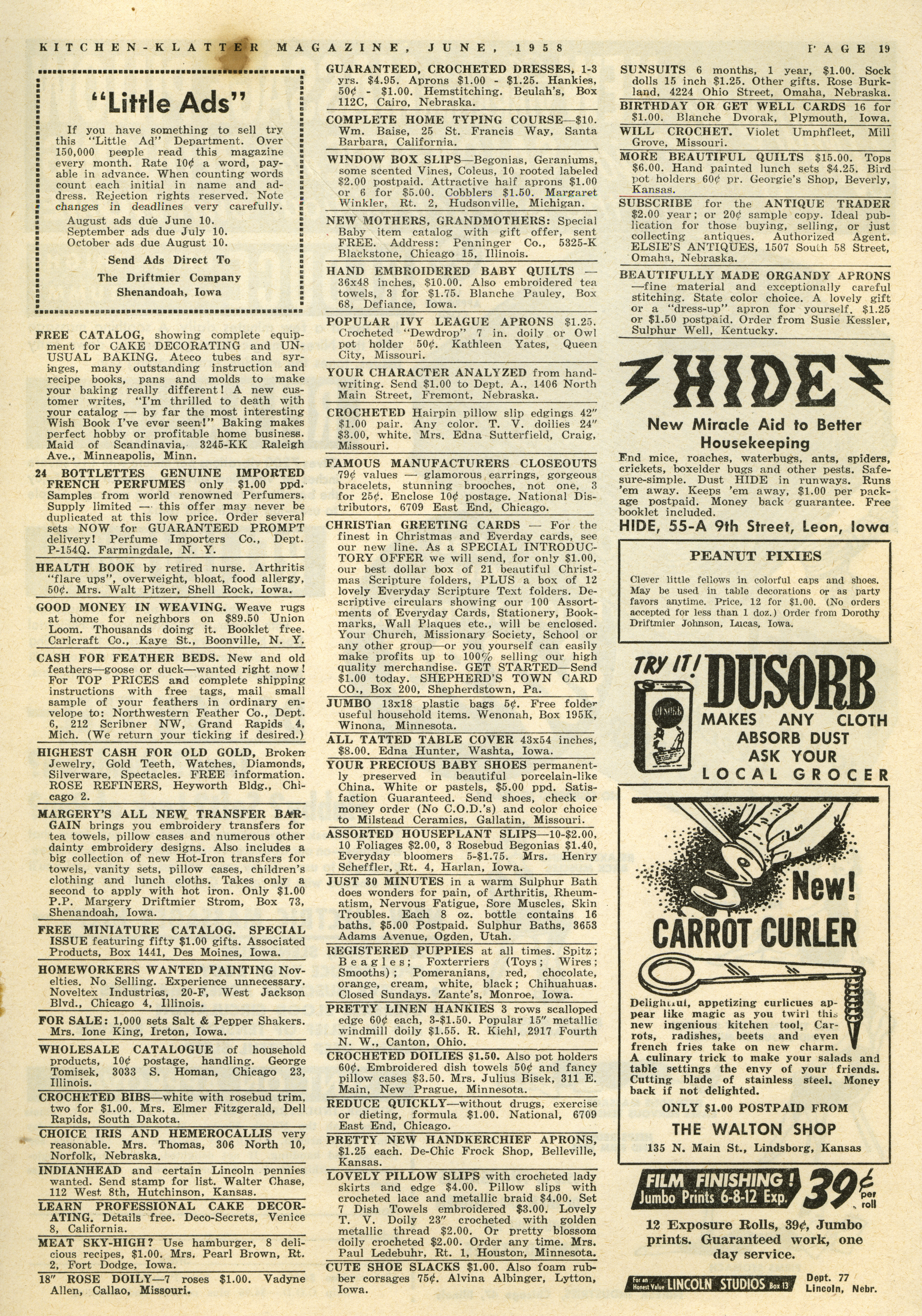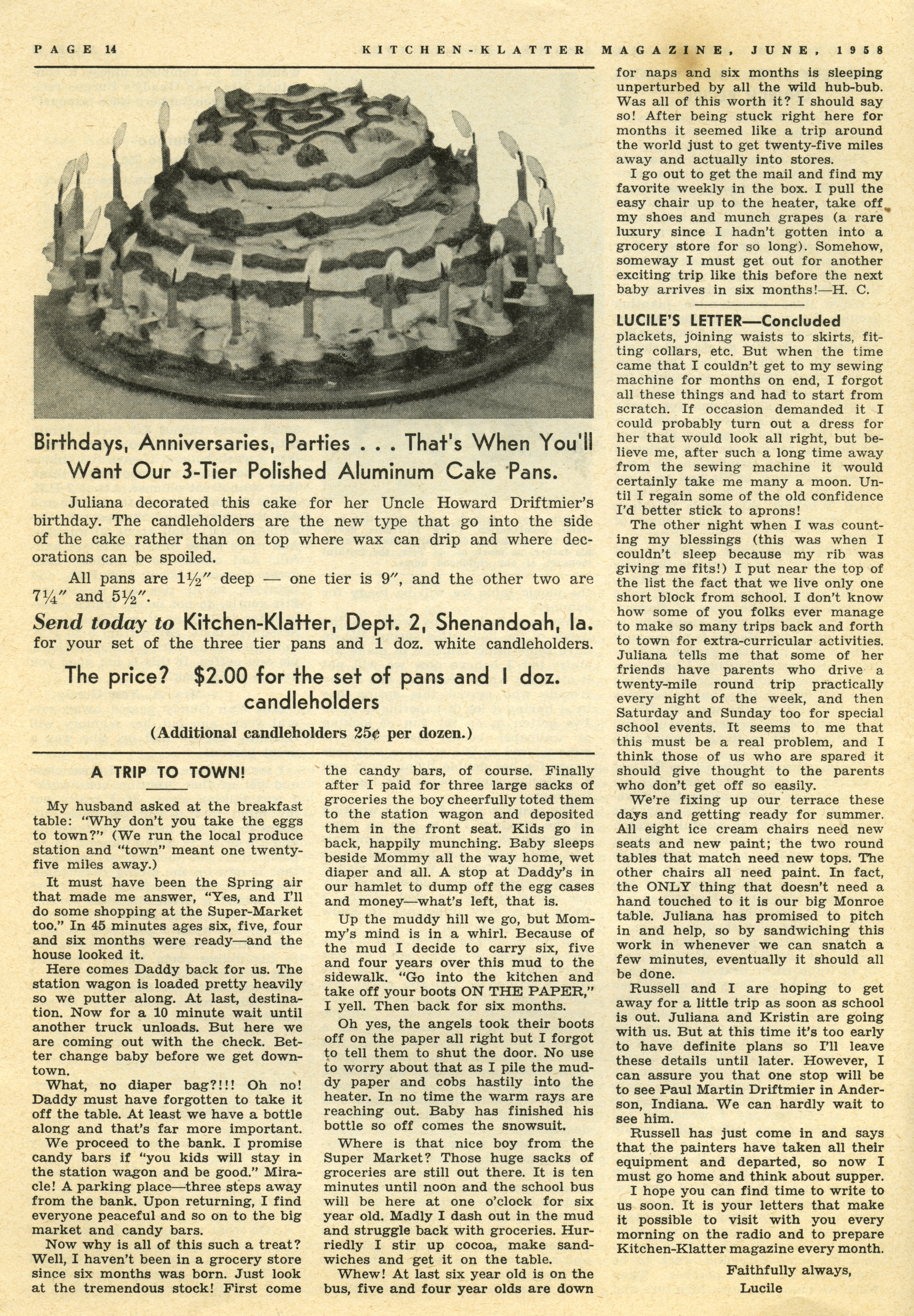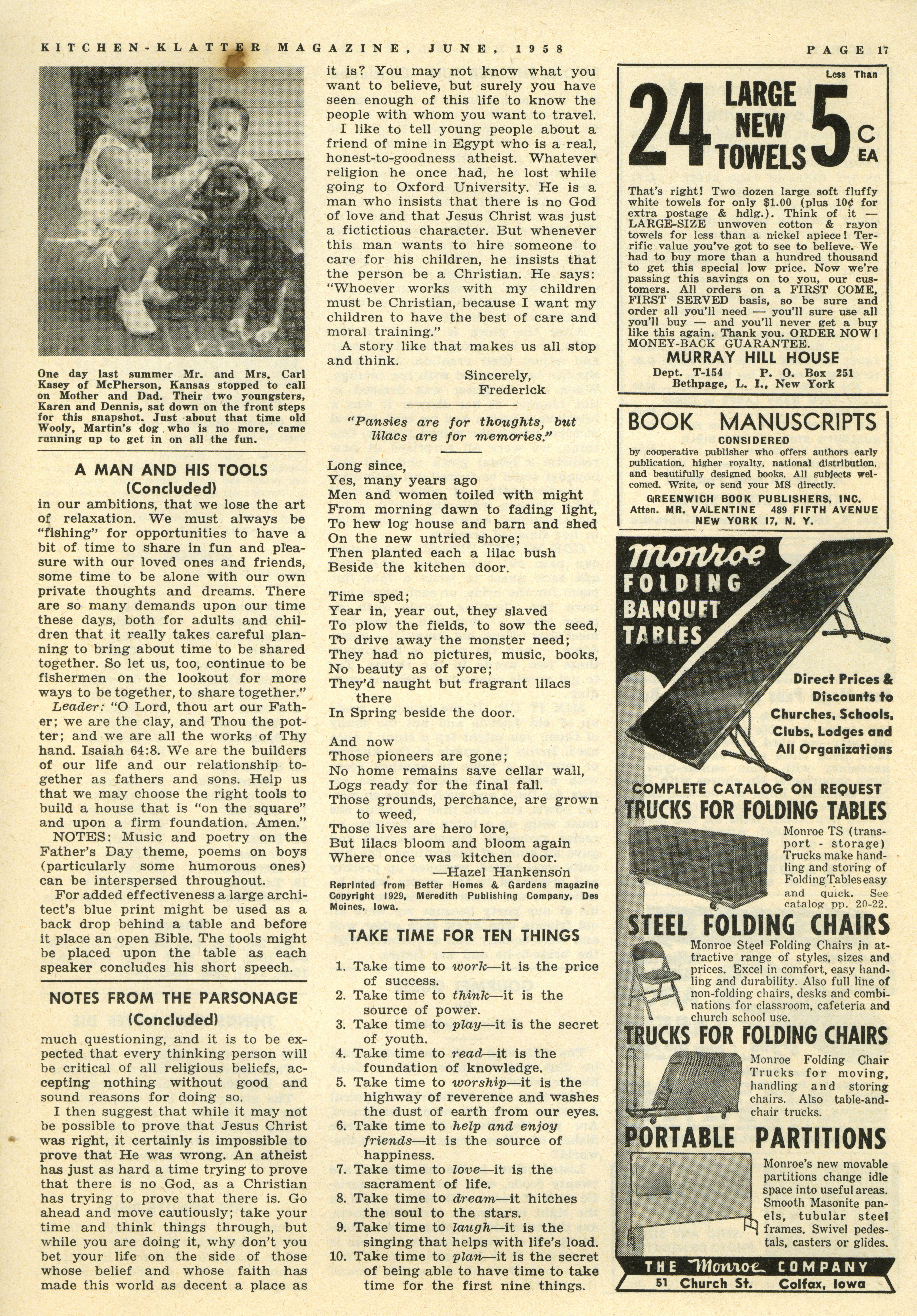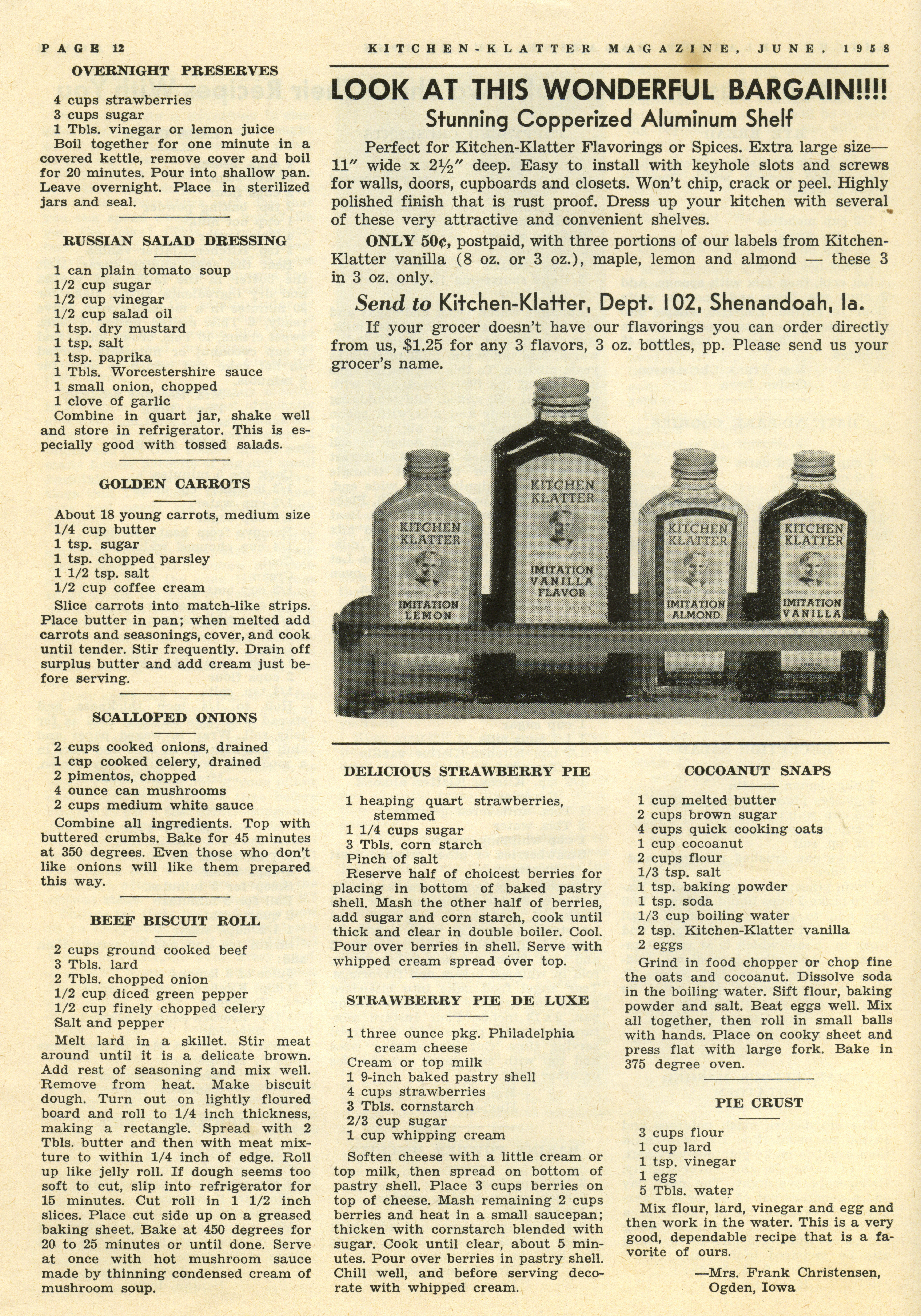 - "Kitchen-Klatter v. 22, n. 06, 1958", Kitchen-Klatter Magazine Issues, Iowa State University Library Digital Collections