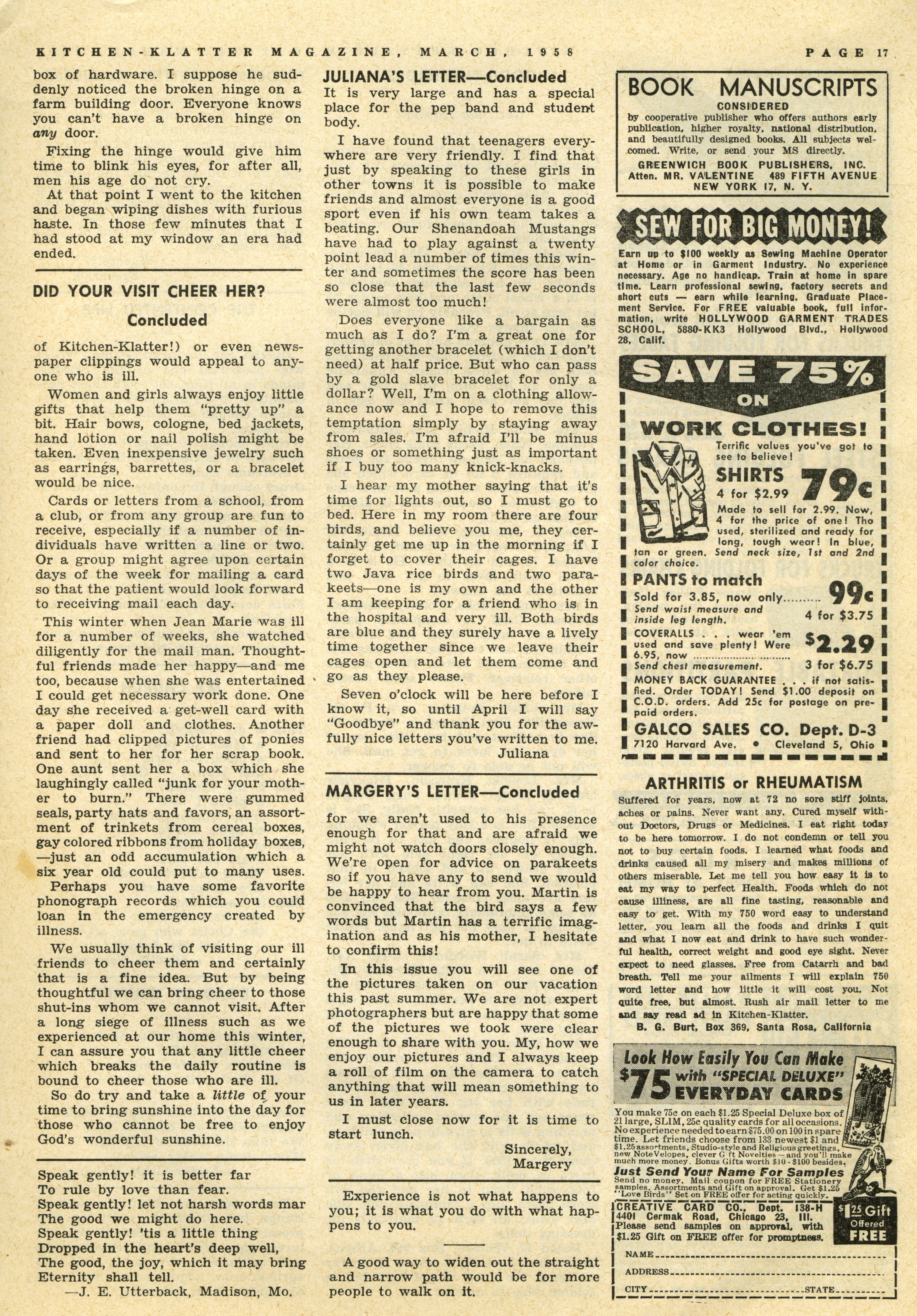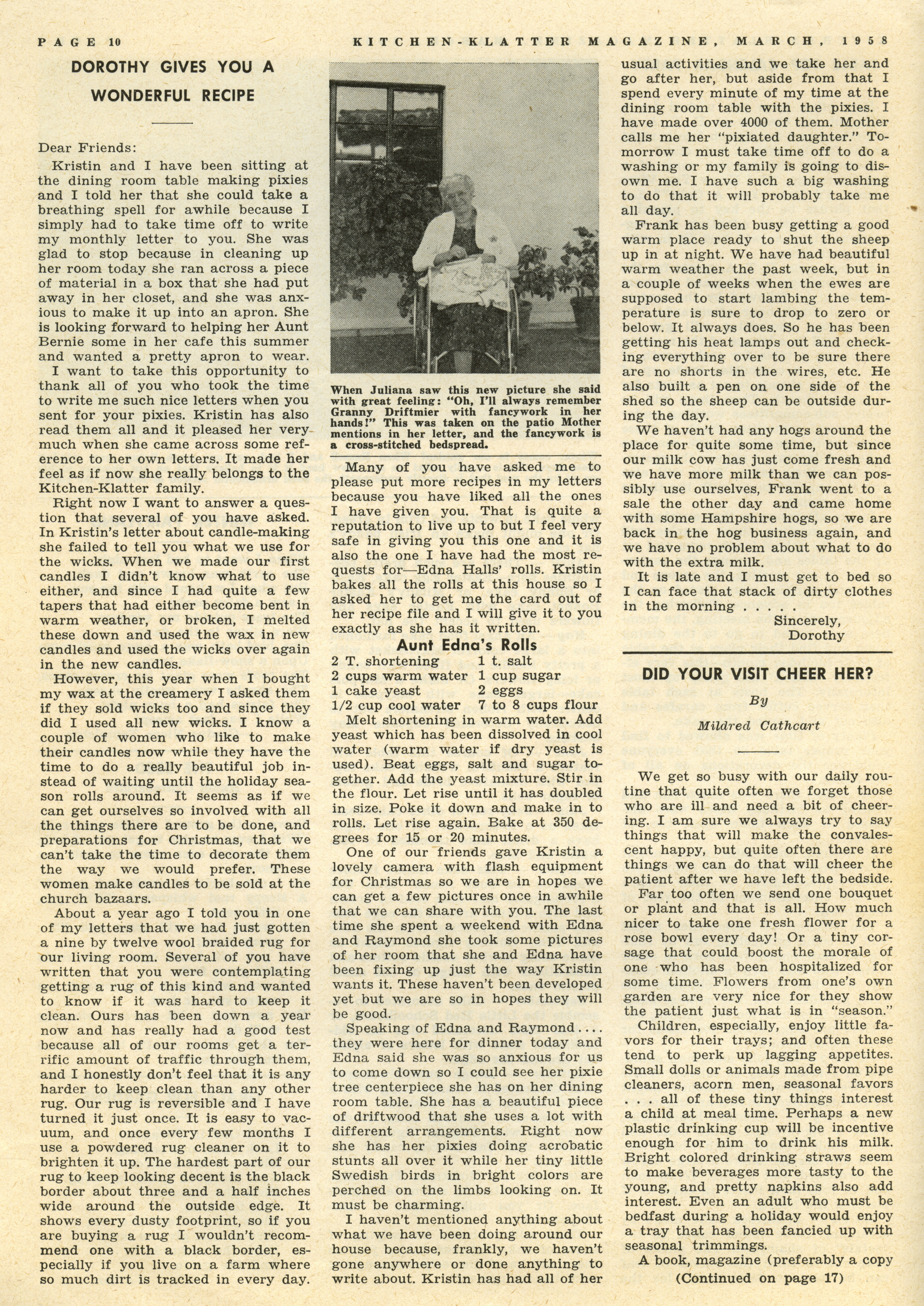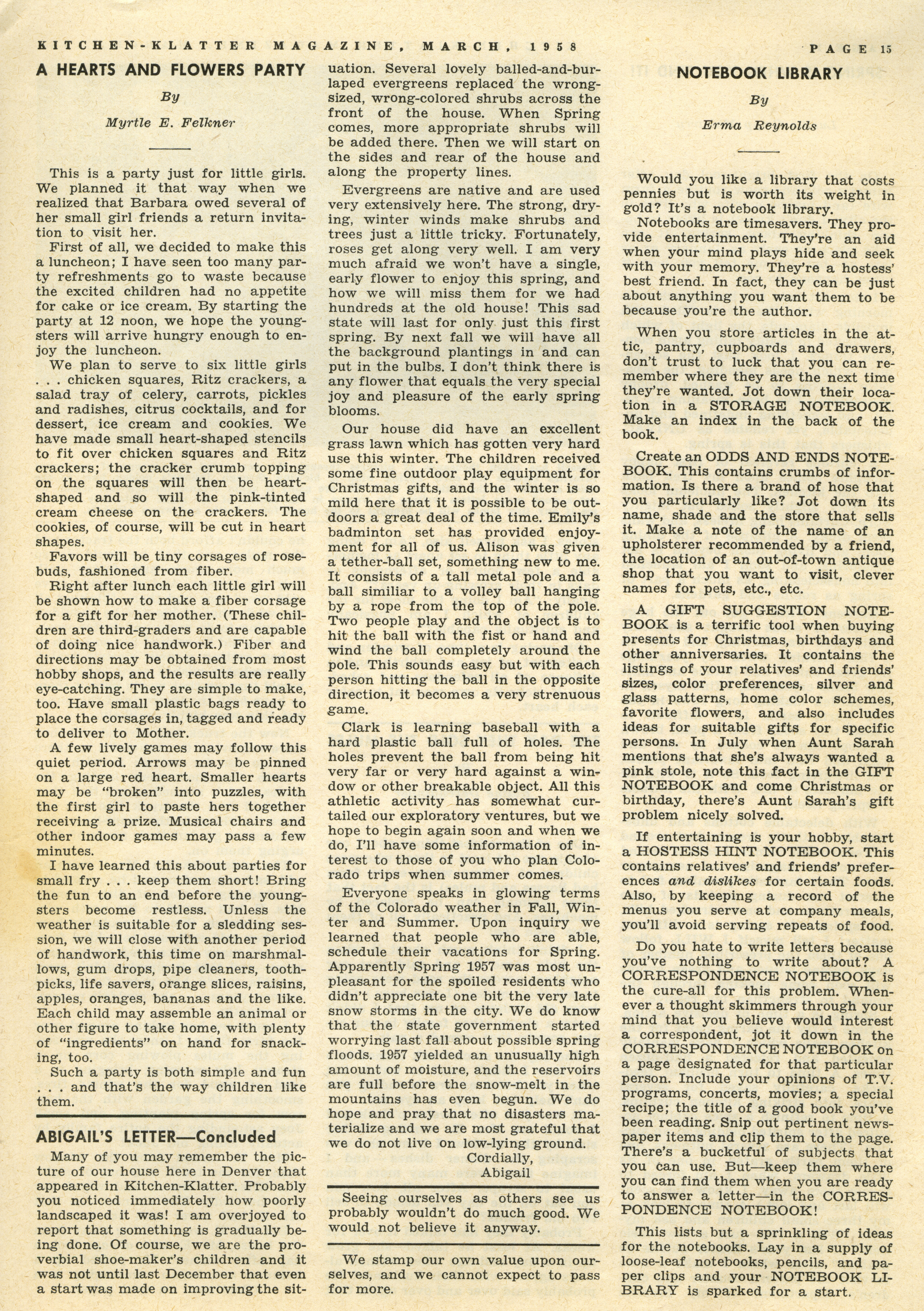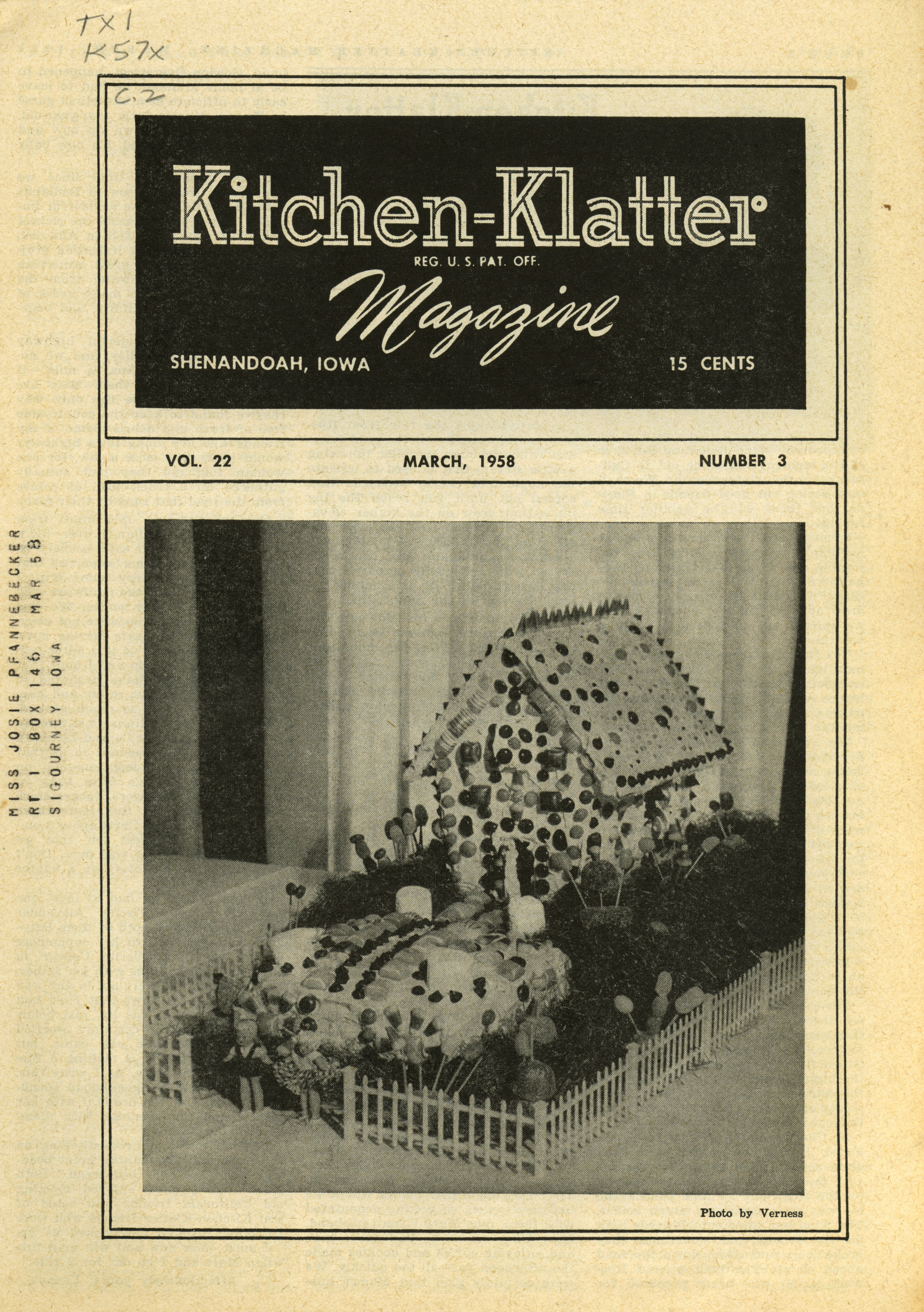 - "Kitchen-Klatter v. 22, n. 03, 1958", Kitchen-Klatter Magazine Issues, Iowa State University Library Digital Collections